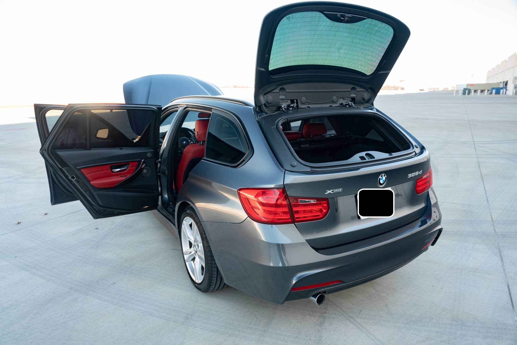 2014 BMW 328d xDrive Sports Wagon, finished in Mineral Grey Metallic with a Coral Red interior. A build sheet is provided in the photo gallery, and a partial list of notable equipment includes the M Sport, M Aerodynamics, Dynamic Handling, Premium, Lighting, Technology, Driving Assistance, Driving Assistance Plus, and Cold Weather packages, fine walnut wood interior trim, a Harman/Kardon sound system, and more as detailed below. Modifications include a factory BMW M3 tri-stitched steering wheel, IND color-matched front side markers, and an IND red start/stop button. The F31-generation is the last 3 Series wagon sold in the United States. It was introduced in 2013 and offered through 2019. The model was sold as the 328i, powered by a 2. 0-liter 4-cylinder turbo, and the 328d, powered by a turbo-diesel 4-cylinder also displacing 2. 0 liters. Power for this 328d comes from a "N47" 2. 0-liter TwinPower turbo-diesel inline-4 engine, which produces 180 horsepower and 280 lb-ft of torque. Output is sent to all four wheels via an 8-speed Steptronic sport automatic transmission.
