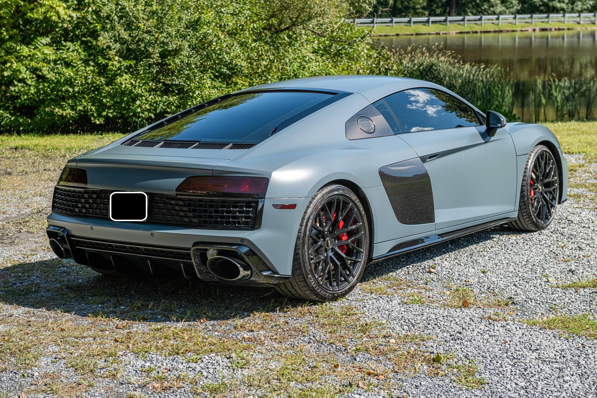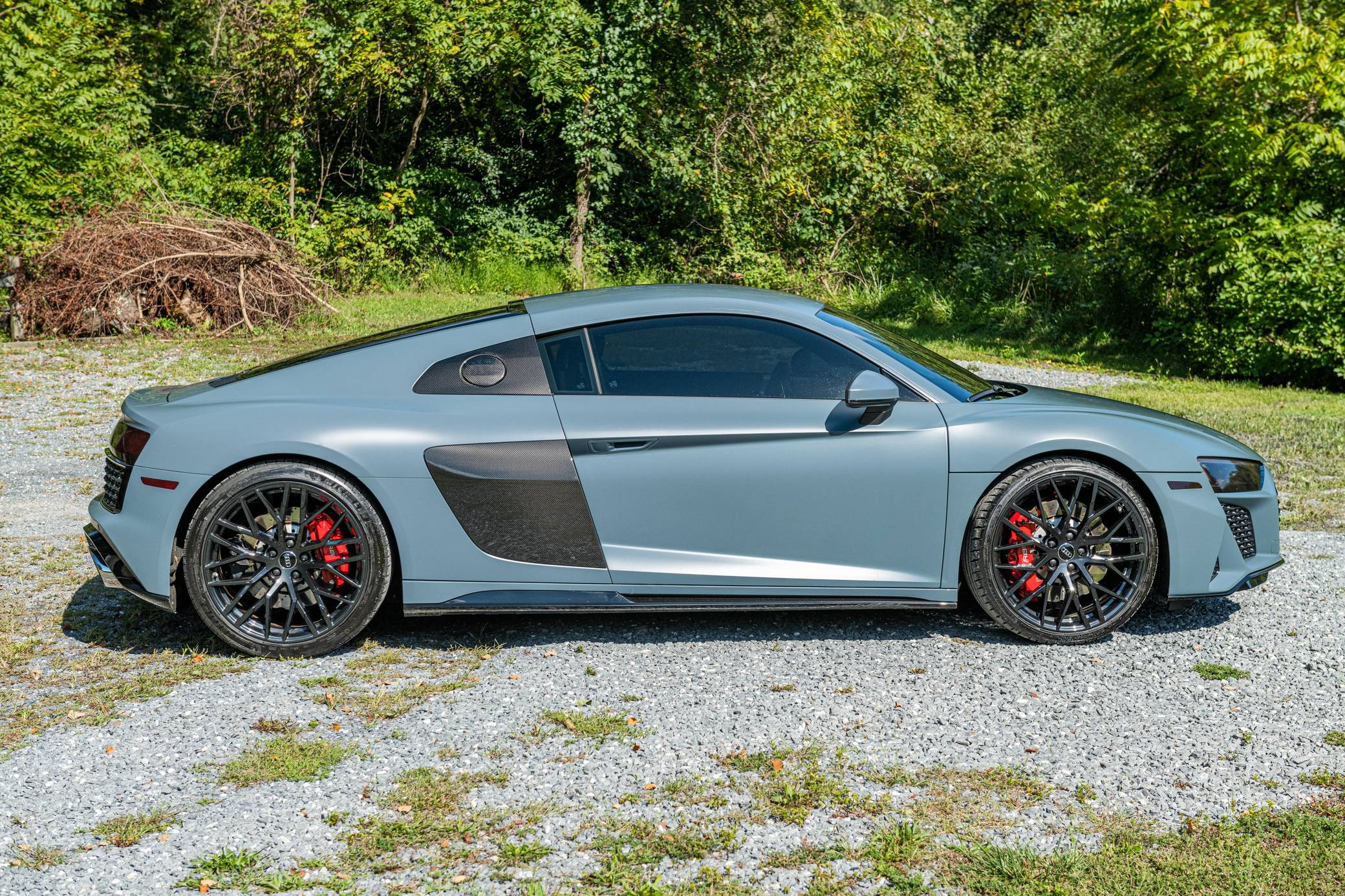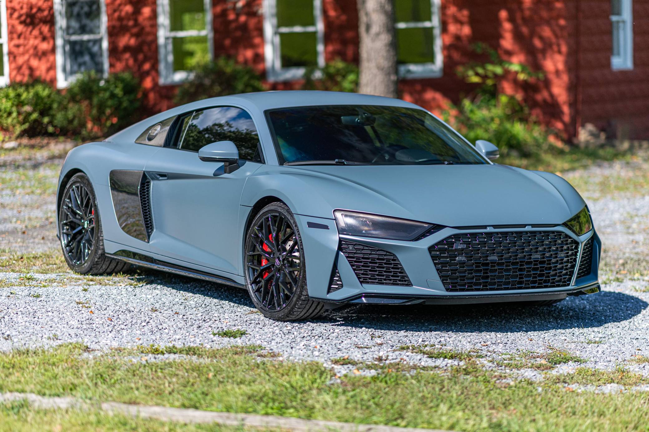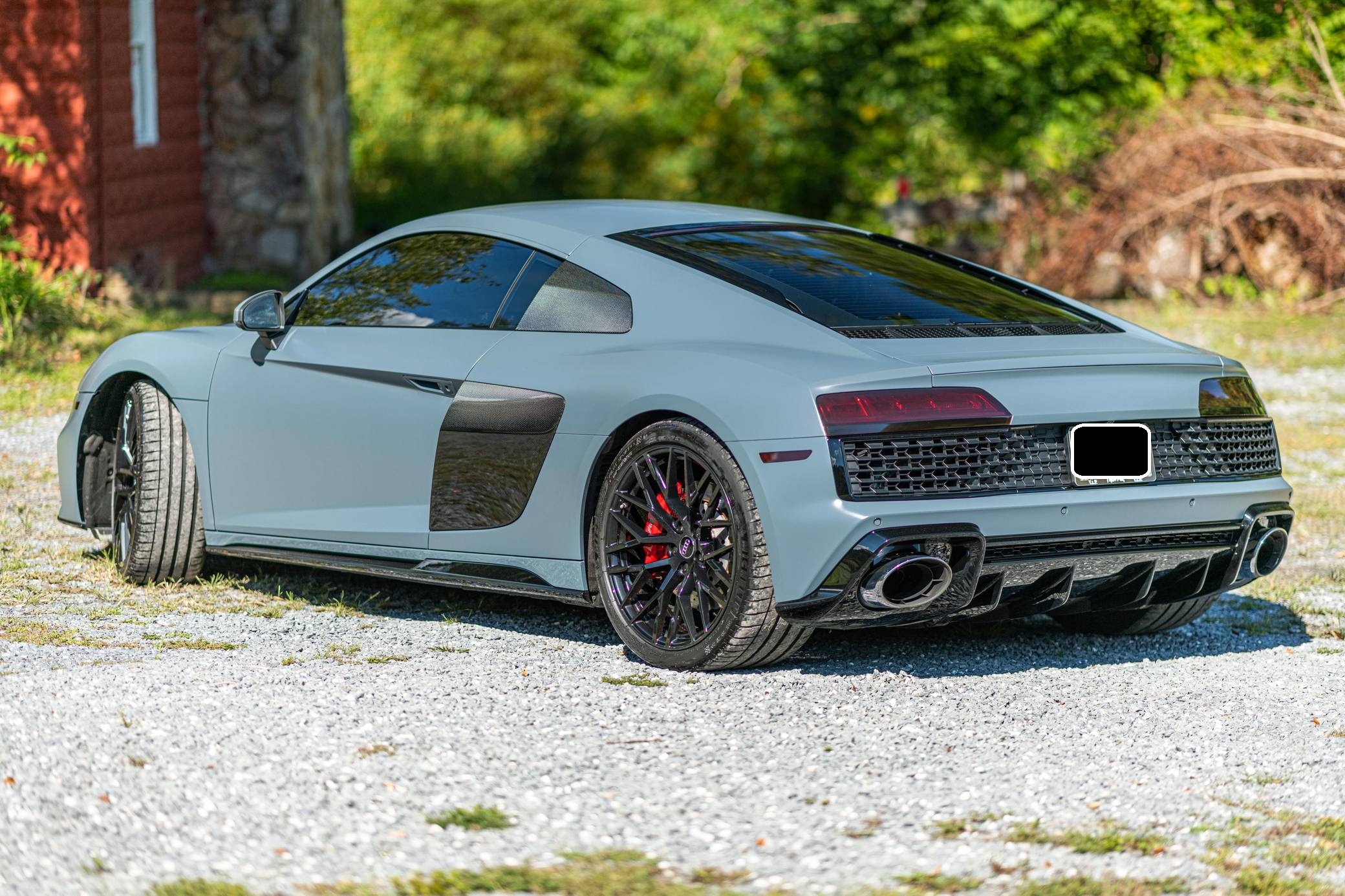 THIS. . . is a 2020 Audi R8 V10 Coupe, finished in Kemora Gray with a black interior. It also confirms that this is a one-owner car. Modifications reported by the seller include a VF Engineering supercharger kit, an RYFT titanium exhaust system, DYNOmatt matte finish paint protection film, and tinted windows. Introduced for 2017, the second-generation R8 received rave reviews from enthusiasts and journalists alike. It's powered by a naturally-aspirated, 5. 2-liter V10 that's closely related to the engine found in the Lamborghini Huracán, and it offers drivers a fun blend of mid-engined handling and all-wheel drive sure-footedness. 2020 brought a mid-cycle update that included styling revisions inspired by the racing version of the R8 and more power. Power for this R8 comes from a supercharged 5. 2-liter V10, rated at 562 horsepower and 406 lb-ft of torque when left stock and naturally-aspirated. Due to the supercharger kit installed on this R8, it likely produces more power, but a dyno sheet was not provided to confirm. It spins the four wheels via a 7-speed dual-clutch automatic transmission and Audi's permanent Quattro all-wheel drive system.