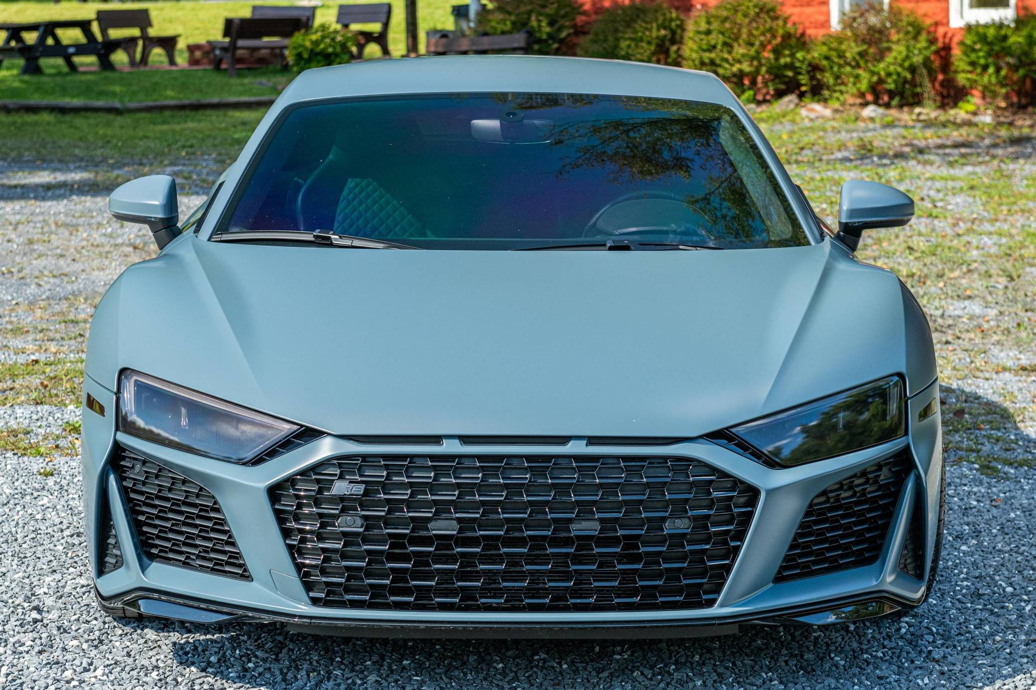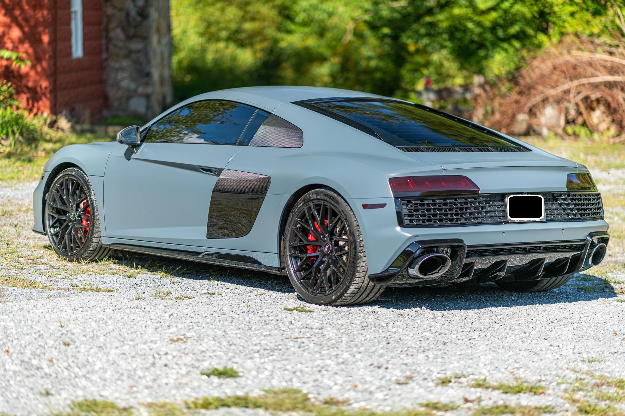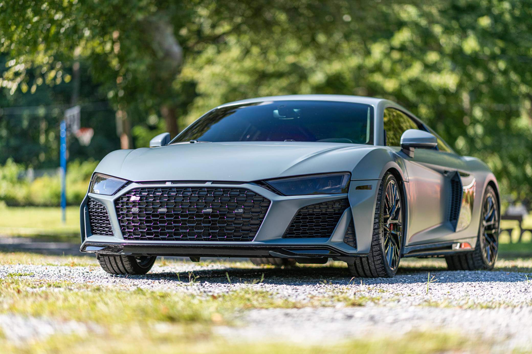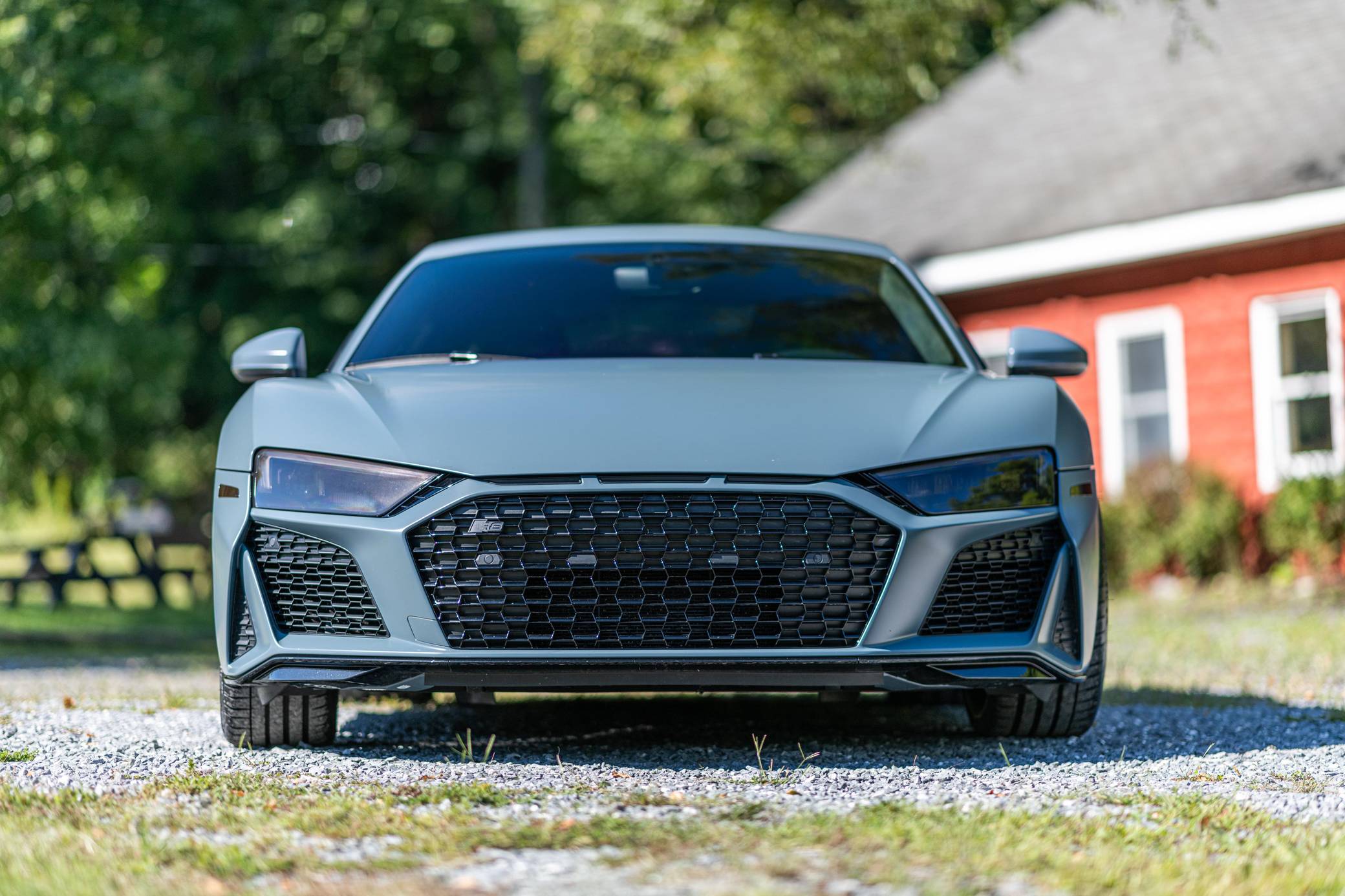THIS. . . is a 2020 Audi R8 V10 Coupe, finished in Kemora Gray with a black interior. It also confirms that this is a one-owner car. Modifications reported by the seller include a VF Engineering supercharger kit, an RYFT titanium exhaust system, DYNOmatt matte finish paint protection film, and tinted windows. Introduced for 2017, the second-generation R8 received rave reviews from enthusiasts and journalists alike. It's powered by a naturally-aspirated, 5. 2-liter V10 that's closely related to the engine found in the Lamborghini Huracán, and it offers drivers a fun blend of mid-engined handling and all-wheel drive sure-footedness. 2020 brought a mid-cycle update that included styling revisions inspired by the racing version of the R8 and more power. Power for this R8 comes from a supercharged 5. 2-liter V10, rated at 562 horsepower and 406 lb-ft of torque when left stock and naturally-aspirated. Due to the supercharger kit installed on this R8, it likely produces more power, but a dyno sheet was not provided to confirm. It spins the four wheels via a 7-speed dual-clutch automatic transmission and Audi's permanent Quattro all-wheel drive system.