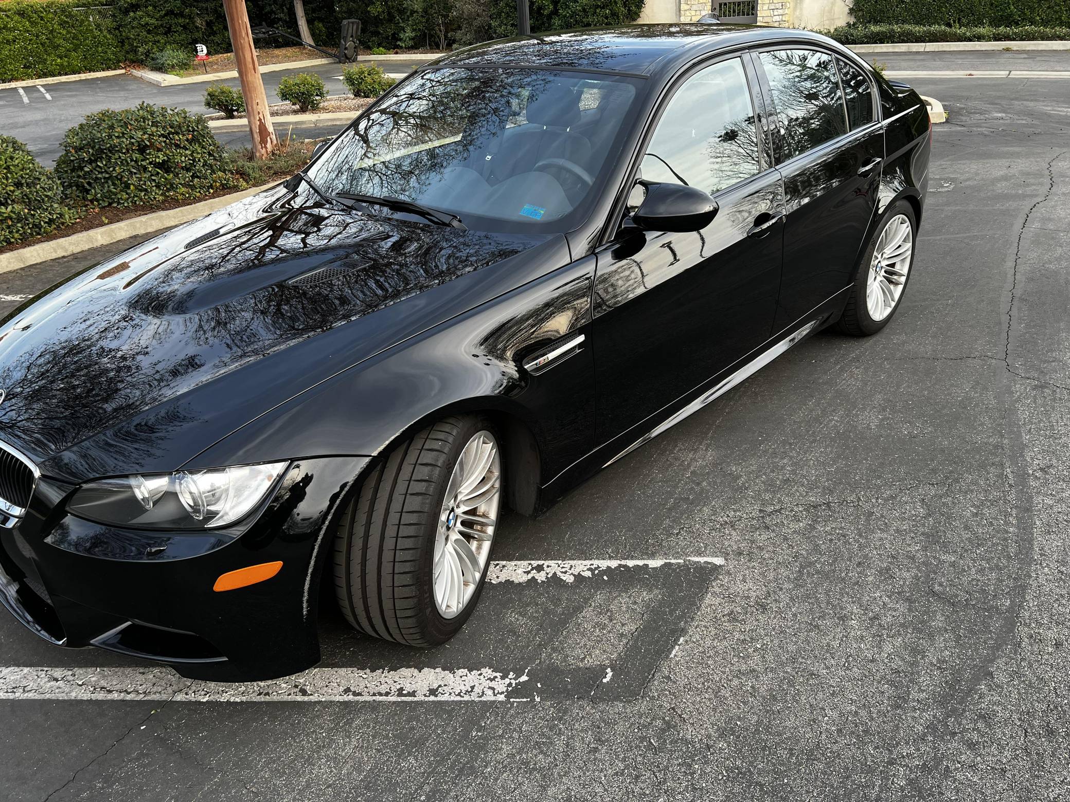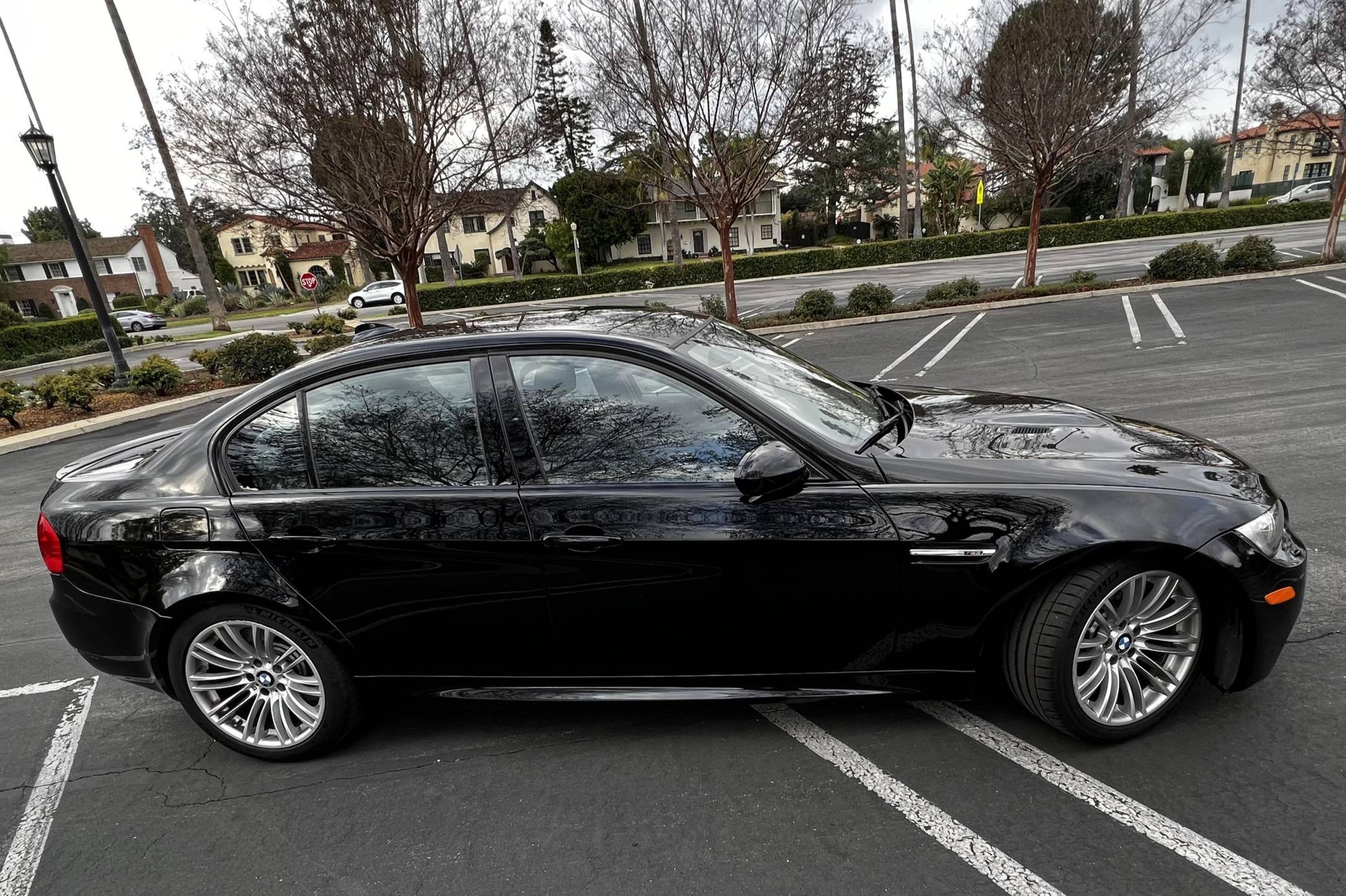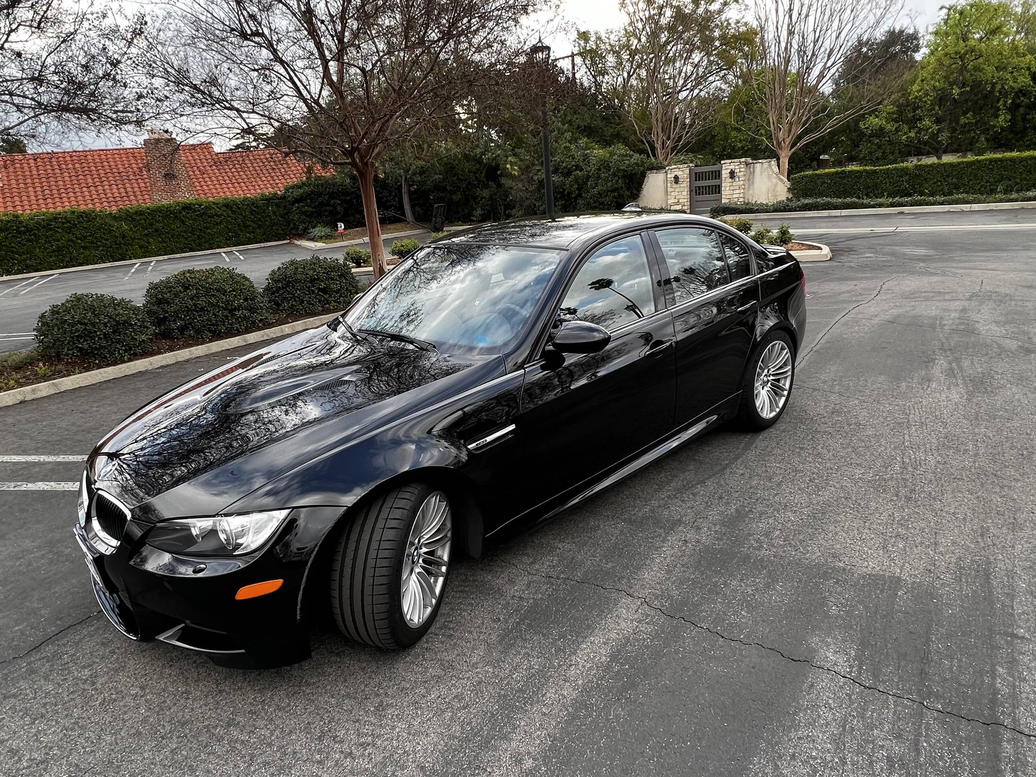 2011 BMW M3, finished in black with a black interior. This sedan is equipped with the desirable 6-speed manual transmission, and its odometer currently displays about 60,400 miles. Factory equipment includes 18-inch wheels, an adaptive suspension system, Shadowline exterior trim, adaptive xenon headlights, leather upholstery, heated and power-adjustable front seats, and a navigation system. This M3's build sheet is shown in the gallery. Modifications reported by the seller include H&R Special Springs lowering springs and an AutoSolutions short shifter kit. More details about the aftermarket parts installed on this M3 are provided below. Service records shown in the gallery detail some of the repairs and maintenance performed on this M3. Notably, the connecting rod bearings were replaced in April 2019 at 56,294 miles, while the throttle actuators were changed in April 2021 at 57,879 miles. BMW engineers had to balance horsepower and weight as they developed the first and only M3 equipped with a V8 engine. Released for 2008, and based on the E90-generation 3 Series, it won over skeptical enthusiasts by offering performance that approached supercar levels in a practical, daily-drivable, and relatively subtle package. Sedan, coupe, and convertible variants were offered. Power comes from a 4. 0-liter V8, rated at 414 horsepower and 295 lb-ft of torque. Called "S65" internally, it spins the rear wheels via a 6-speed manual transmission.