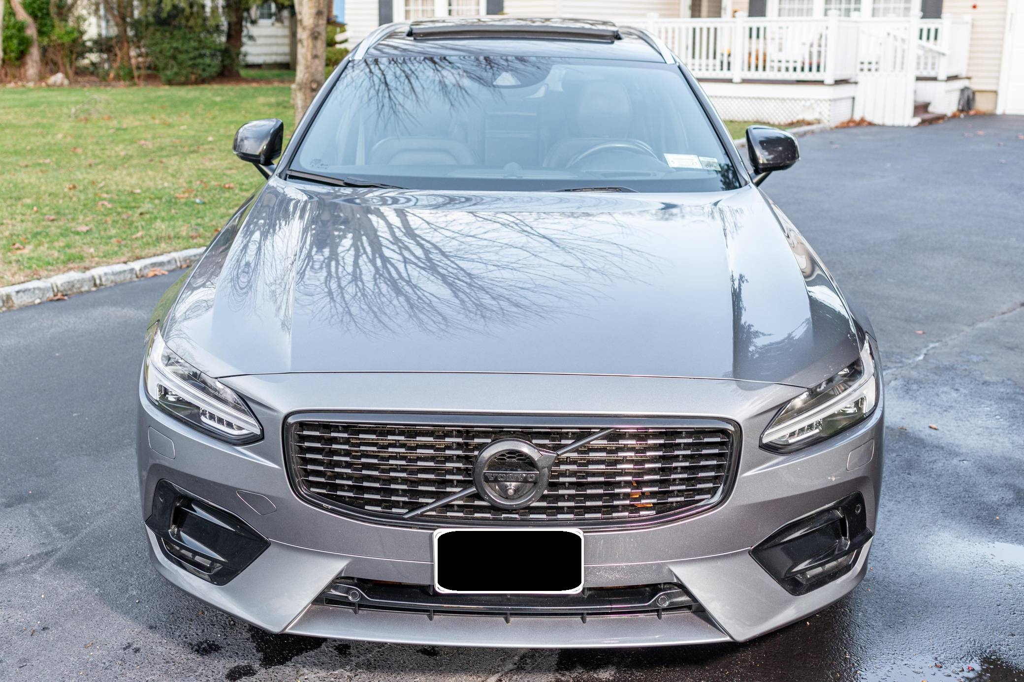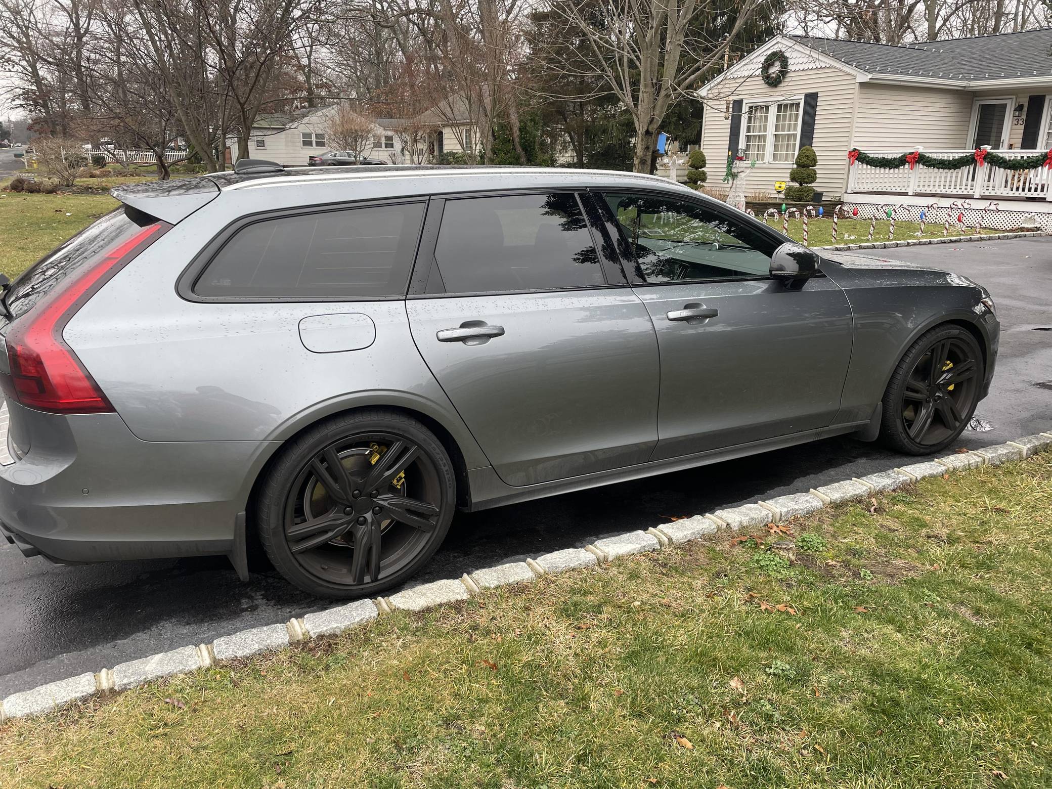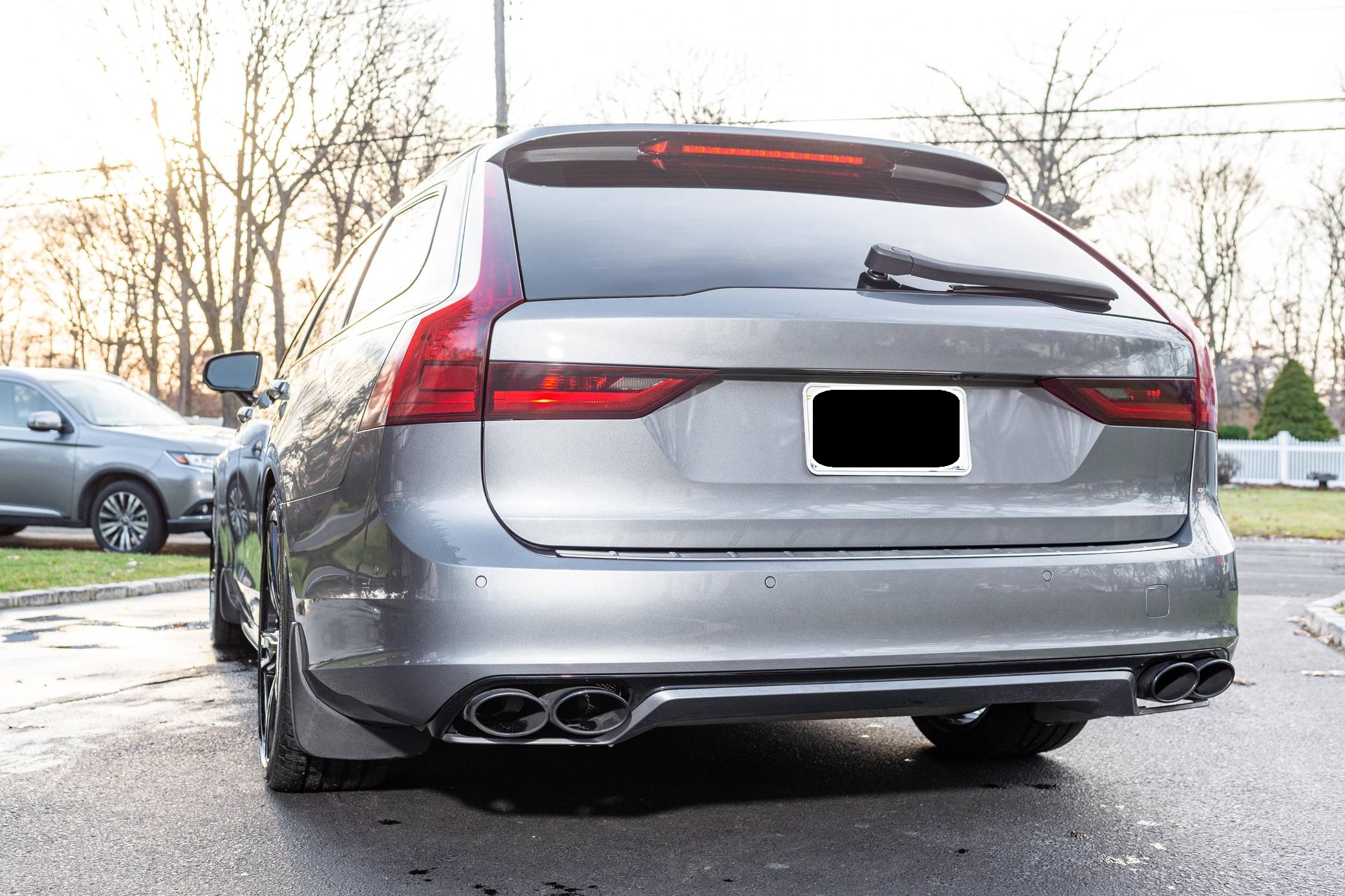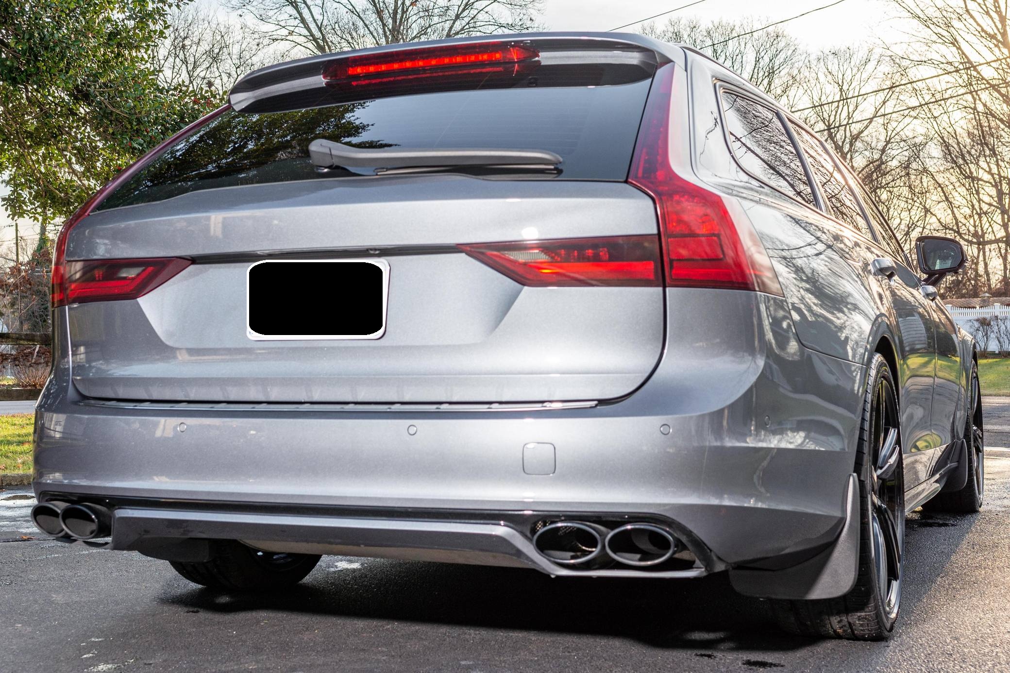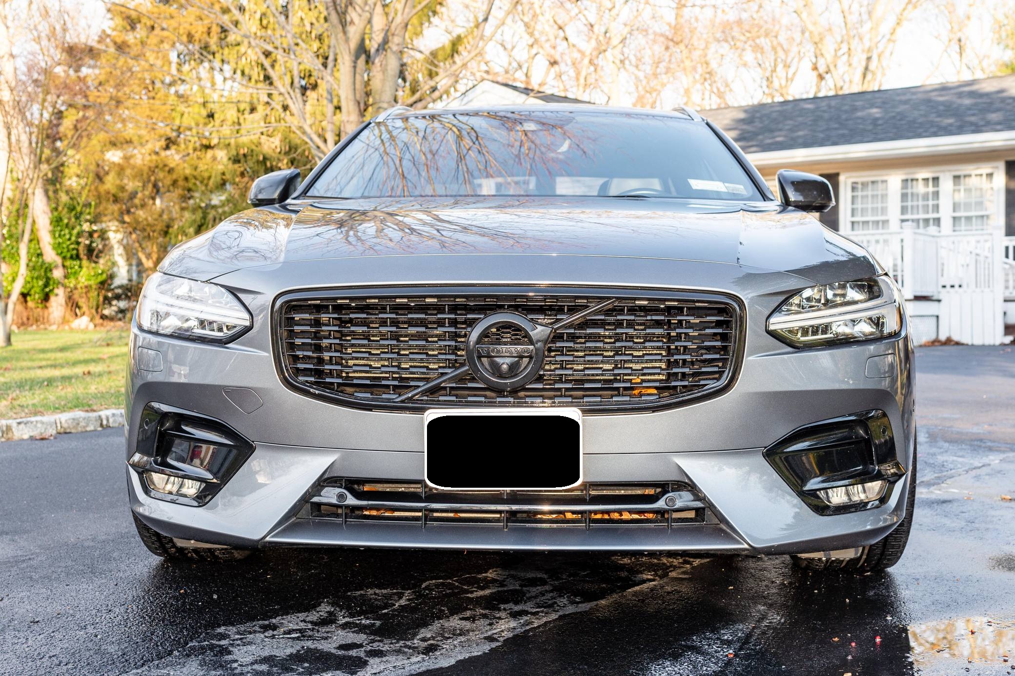 2019 Volvo V90 T-6 R-Design AWD, finished in Osmium Grey Metallic with a Charcoal interior. Equipped with the Advanced Package (head-up display, 360-degree camera, LED headlights with washers, park assist), the Protection Package Premier, 20-inch R-Design wheels, Polestar engine optimization, heated front and rear seats, a heated steering wheel, a Bowers and Wilkins audio system, and more as detailed below. Modifications reported by the seller are limited to black-painted wheels, front grille, and side view mirrors, yellow-painted brake calipers, and the removal of the rear badges. The V90 is Volvo's full-size wagon, and it was introduced for the 2017 model year in standard and high-riding Cross Country forms. T6 versions use a turbo- and supercharged inline-4, while the R-Design package adds unique styling inside and out. Power comes from a 2. 0-liter turbocharged and supercharged inline-4, rated at approximately 330 horsepower and 325 lb-ft of torque with the Polestar engine optimization fitted here. Output is sent to all four wheels through an 8-speed automatic transmission.
