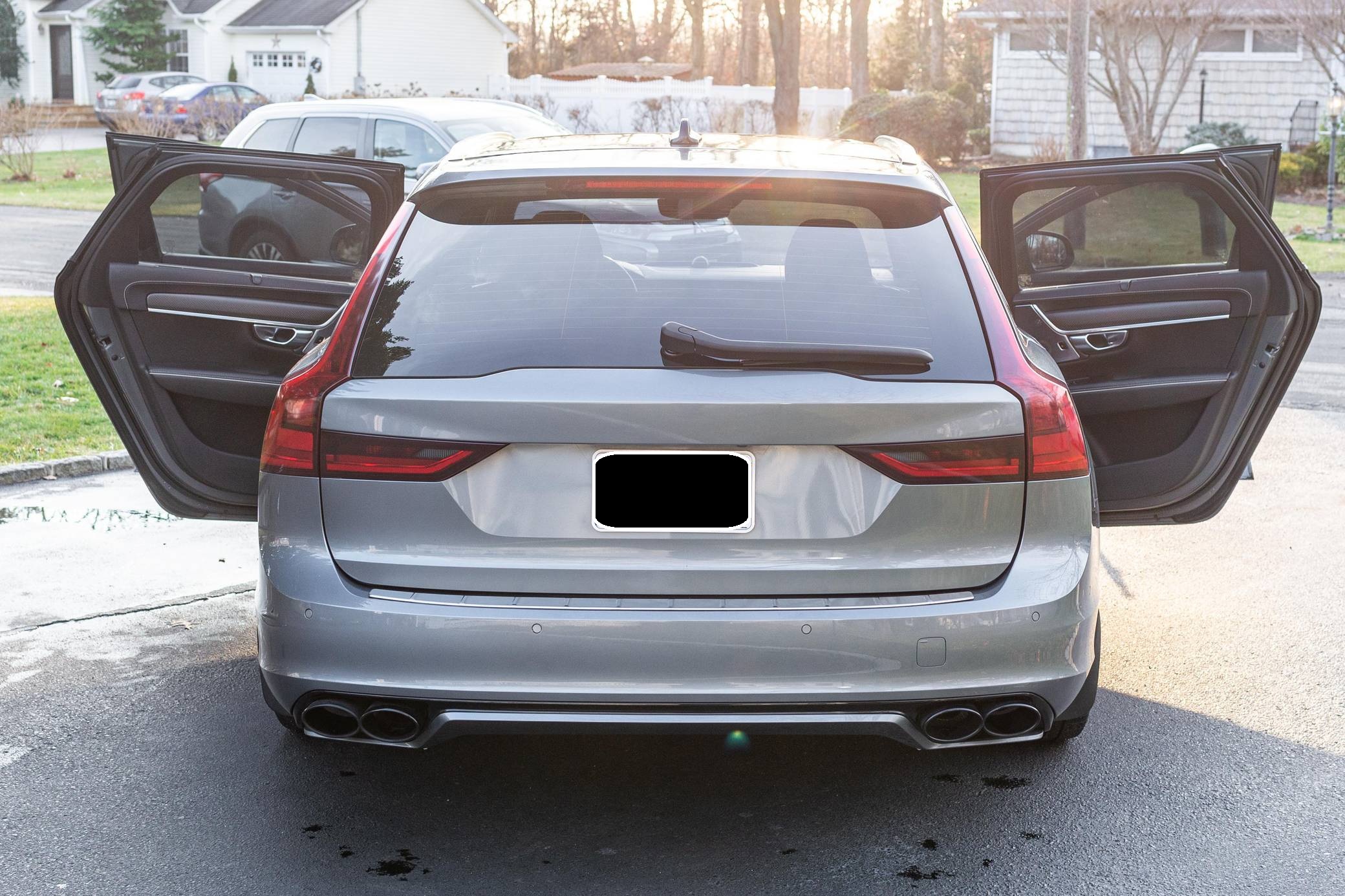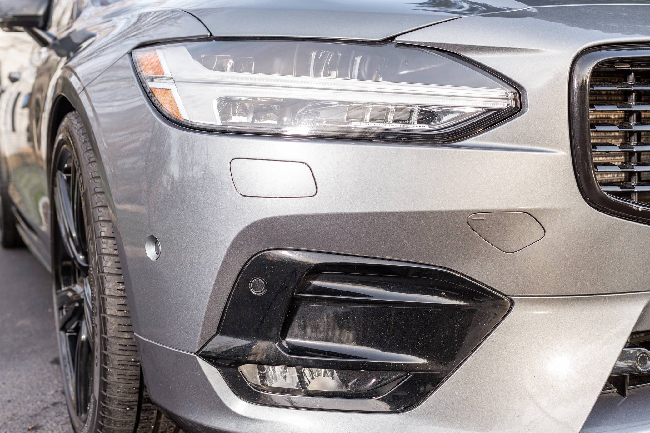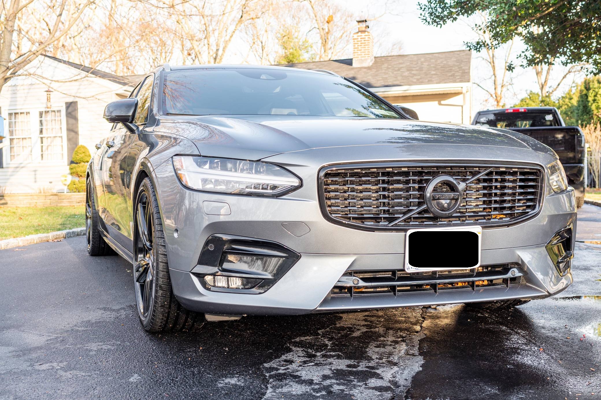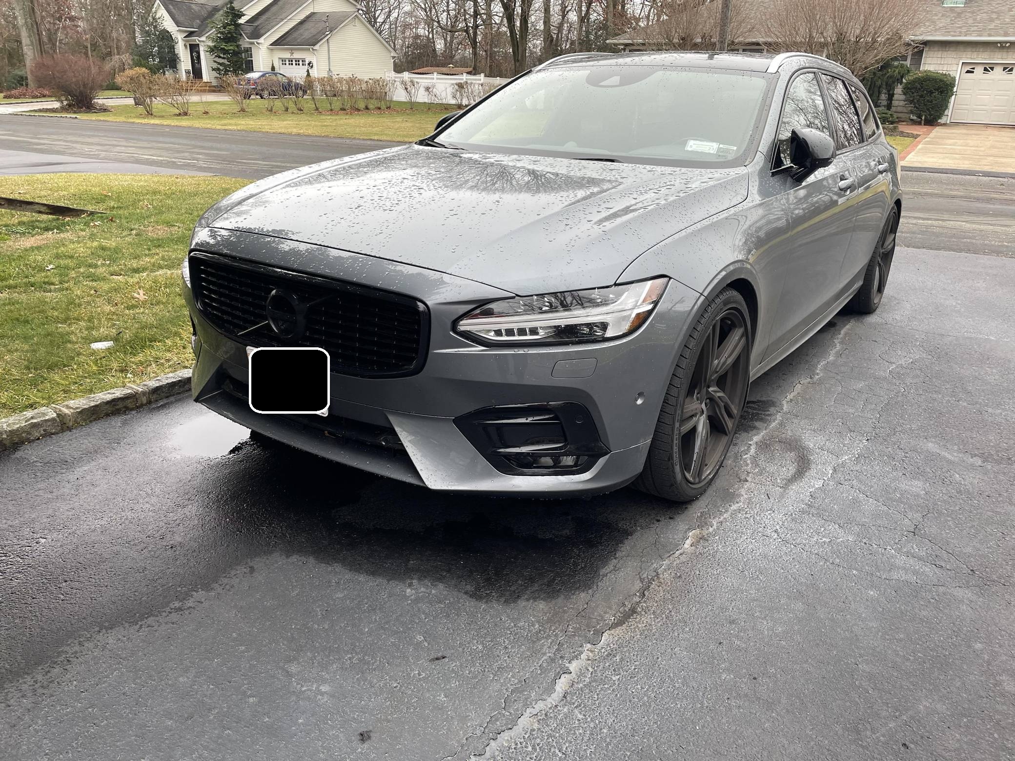 2019 Volvo V90 T-6 R-Design AWD, finished in Osmium Grey Metallic with a Charcoal interior. Equipped with the Advanced Package (head-up display, 360-degree camera, LED headlights with washers, park assist), the Protection Package Premier, 20-inch R-Design wheels, Polestar engine optimization, heated front and rear seats, a heated steering wheel, a Bowers and Wilkins audio system, and more as detailed below. Modifications reported by the seller are limited to black-painted wheels, front grille, and side view mirrors, yellow-painted brake calipers, and the removal of the rear badges. The V90 is Volvo's full-size wagon, and it was introduced for the 2017 model year in standard and high-riding Cross Country forms. T6 versions use a turbo- and supercharged inline-4, while the R-Design package adds unique styling inside and out. Power comes from a 2. 0-liter turbocharged and supercharged inline-4, rated at approximately 330 horsepower and 325 lb-ft of torque with the Polestar engine optimization fitted here. Output is sent to all four wheels through an 8-speed automatic transmission.