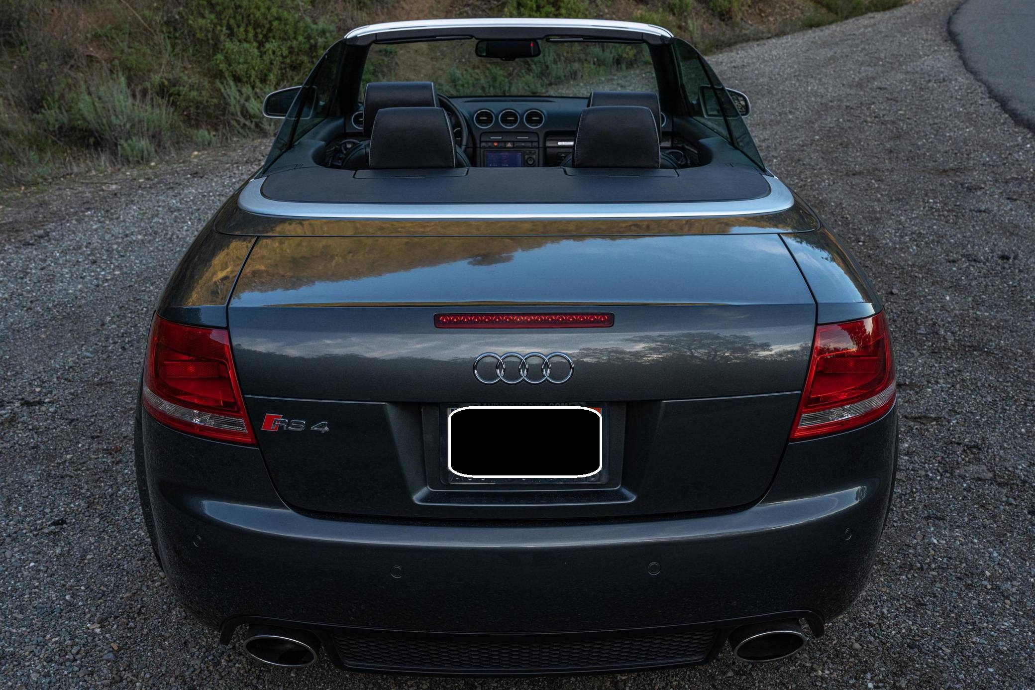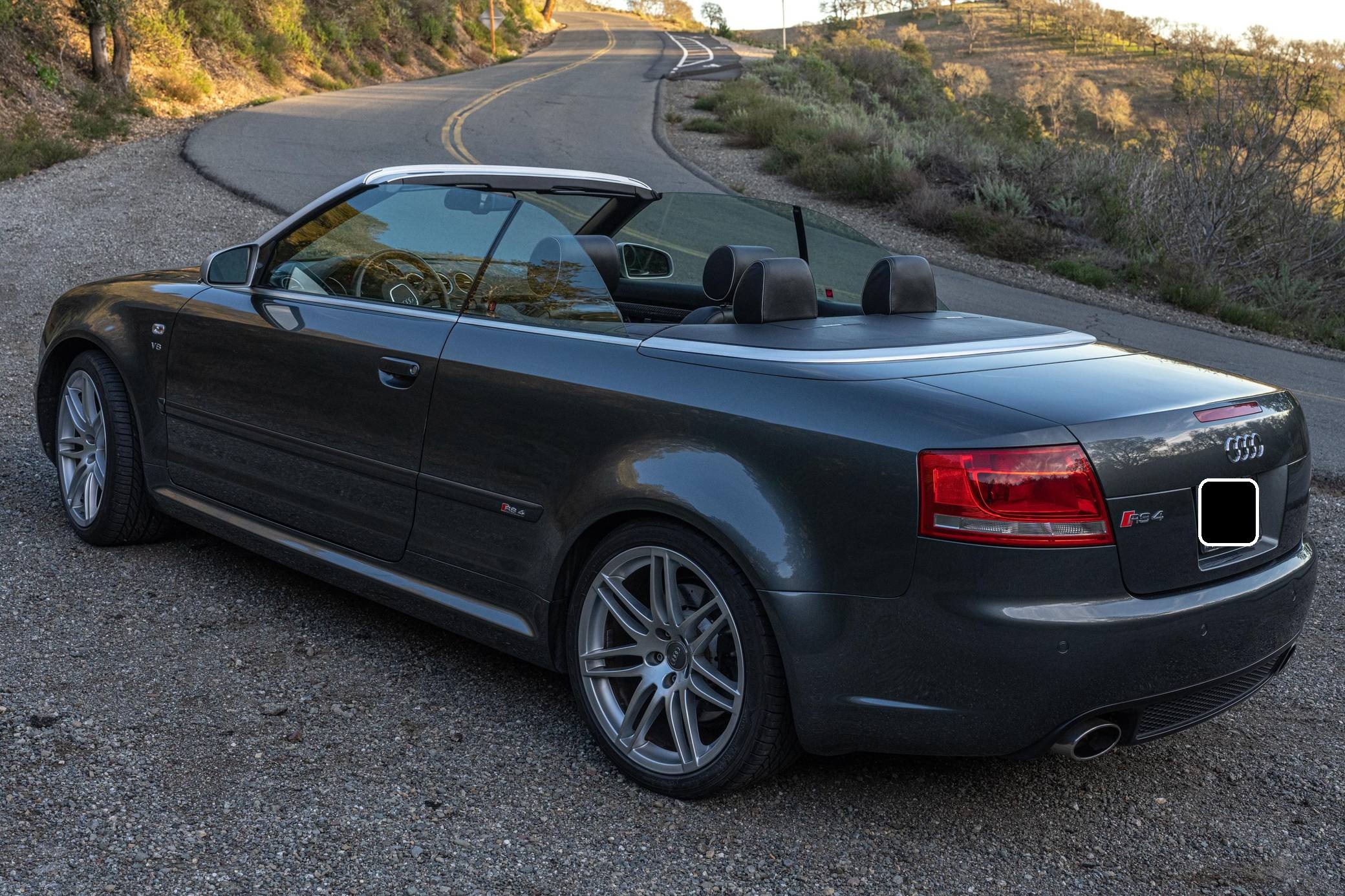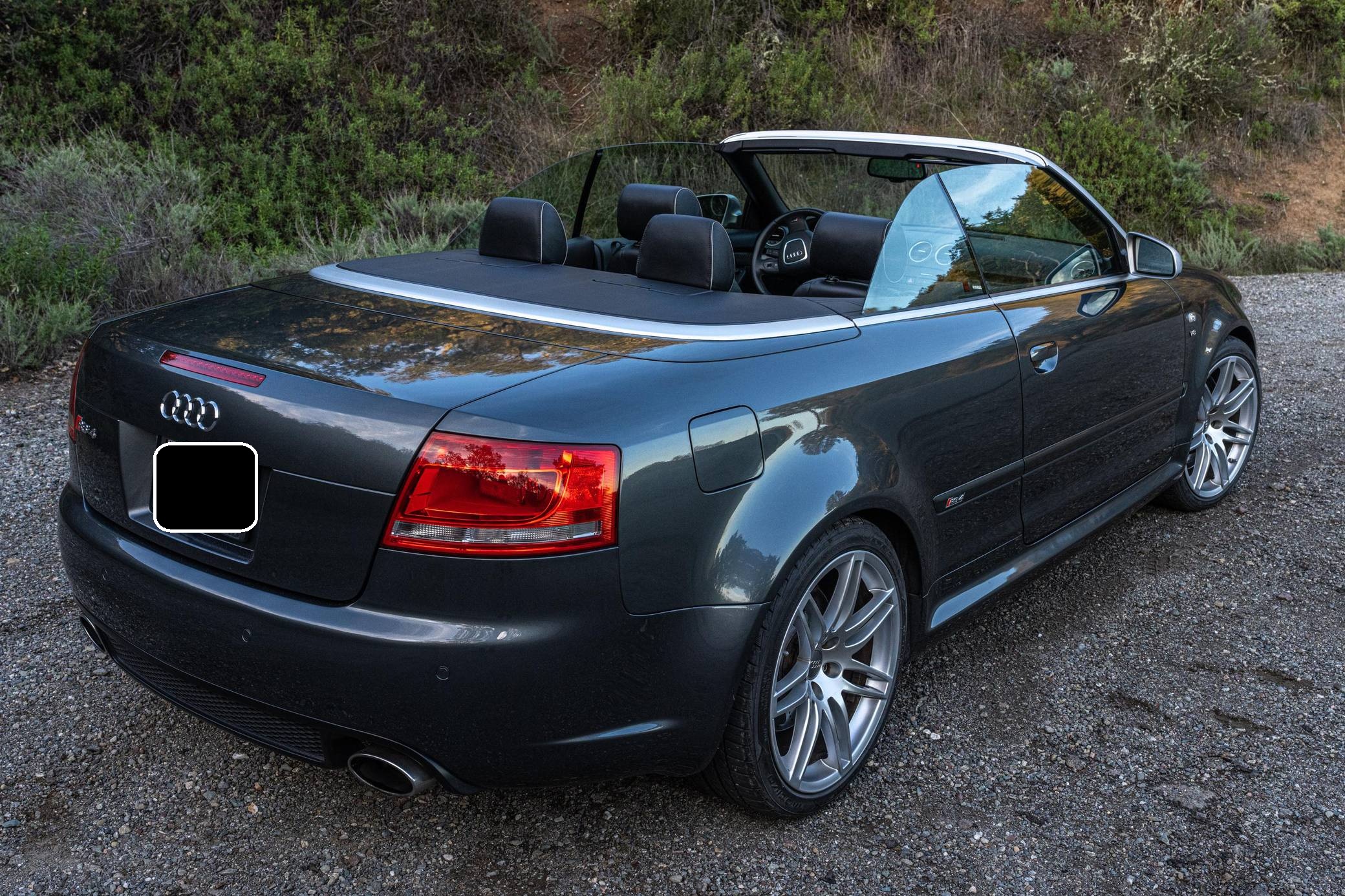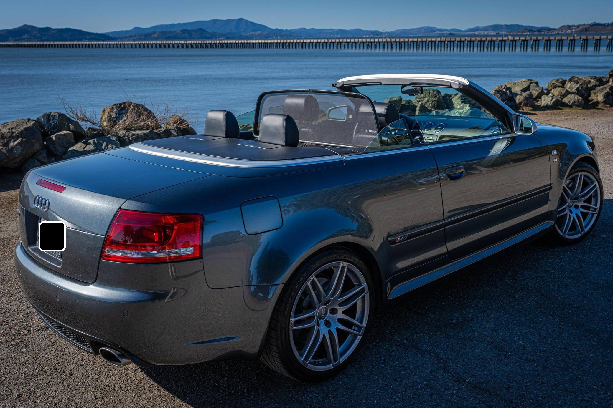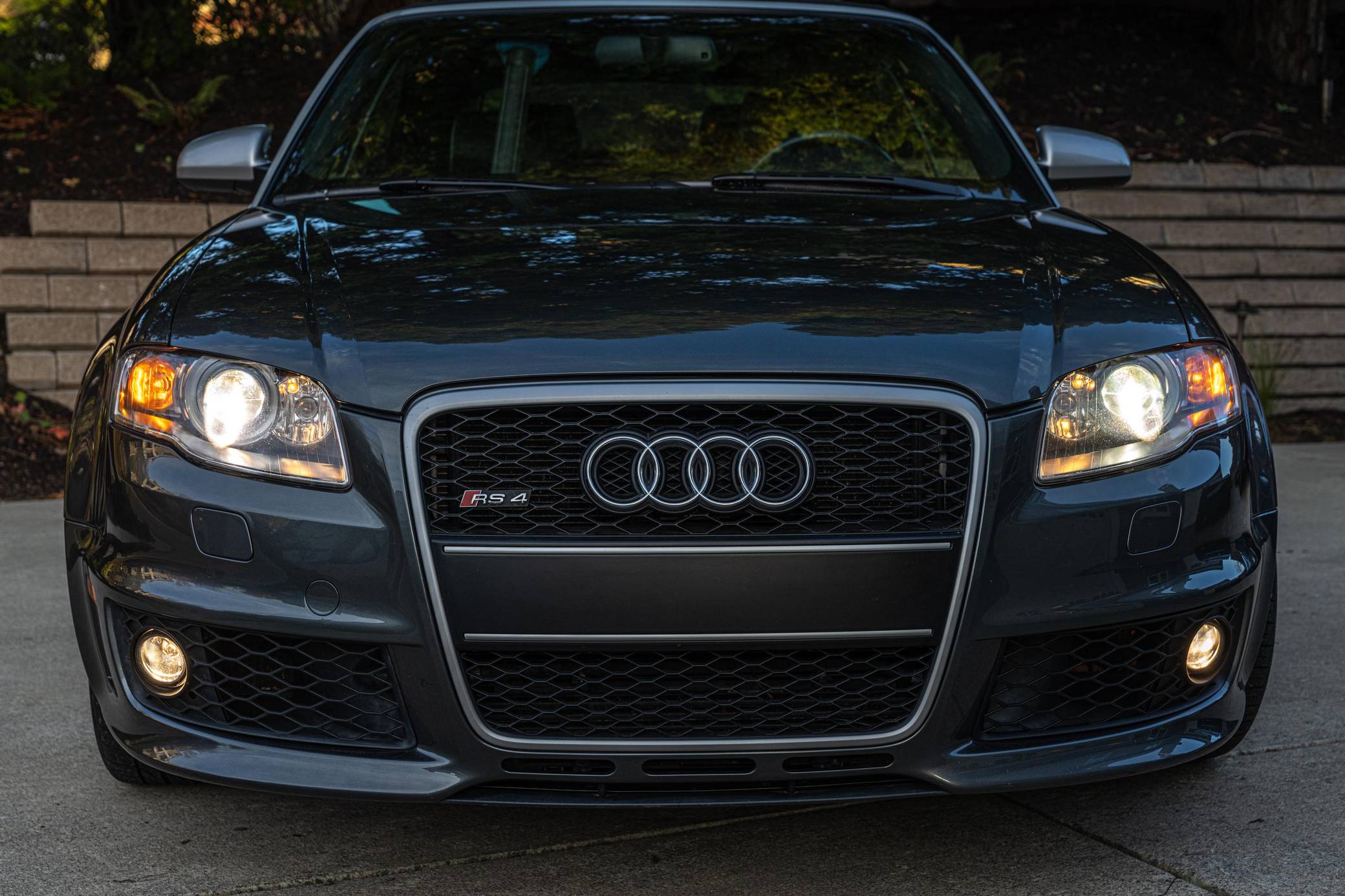 THIS… is a 2008 Audi RS4 Cabriolet, finished in Daytona Gray with a black interior. This RS4 is equipped with a 6-speed manual transmission, and its odometer currently displays about 45,600 miles. It also confirms that this is a one-owner car that's been registered in California from new. Factory equipment includes 19-inch alloy wheels, RS4-specific sport suspension, bi-xenon headlights, a power-retractable soft top, Silk Nappa leather upholstery, carbon fiber interior trim, heated front seats, a Bose premium sound system, and a navigation system. The seller reports no modifications. Audi sold the "B7" generation RS4 in the United States during the 2007 and 2008 model years. Offered as a sedan and as a convertible, both body styles were exclusively equipped with a 6-speed manual transmission. Audi hasn't made another RS4 available in America since, largely because the next two generations were only made as station wagons. Power comes from a 4. 2-liter V8, rated at 420 horsepower and 317 lb-ft of torque. Output is sent to all four wheels via a 6-speed manual transmission and Audi's Quattro permanent all-wheel drive system.