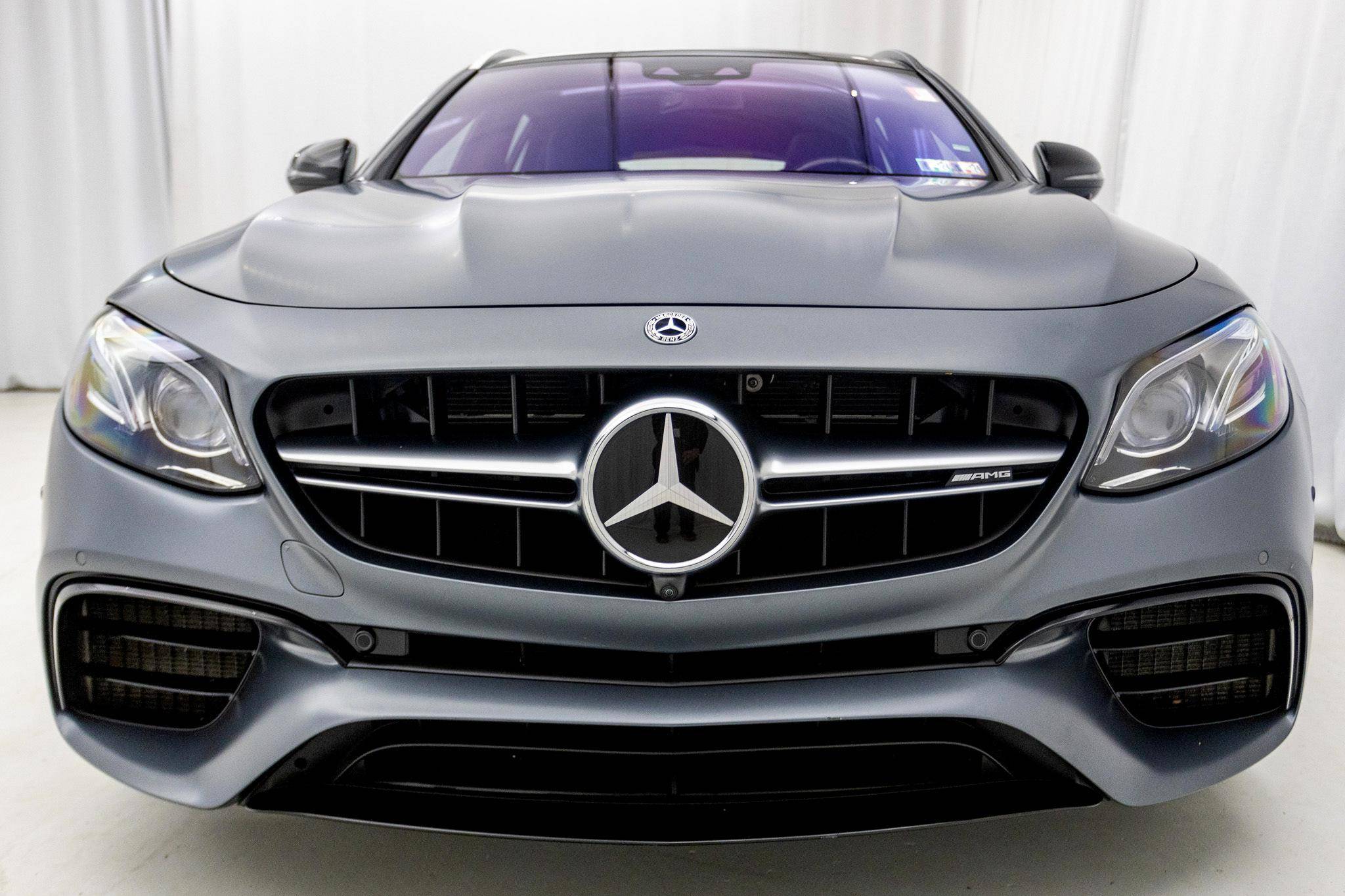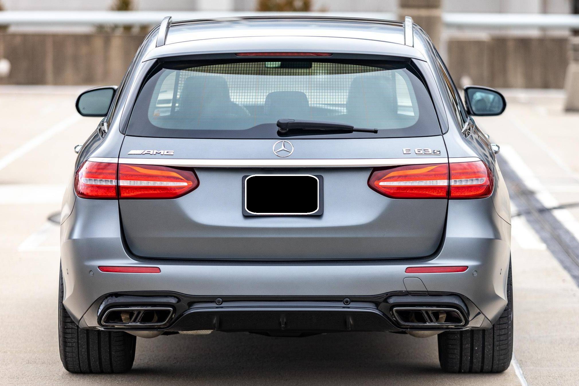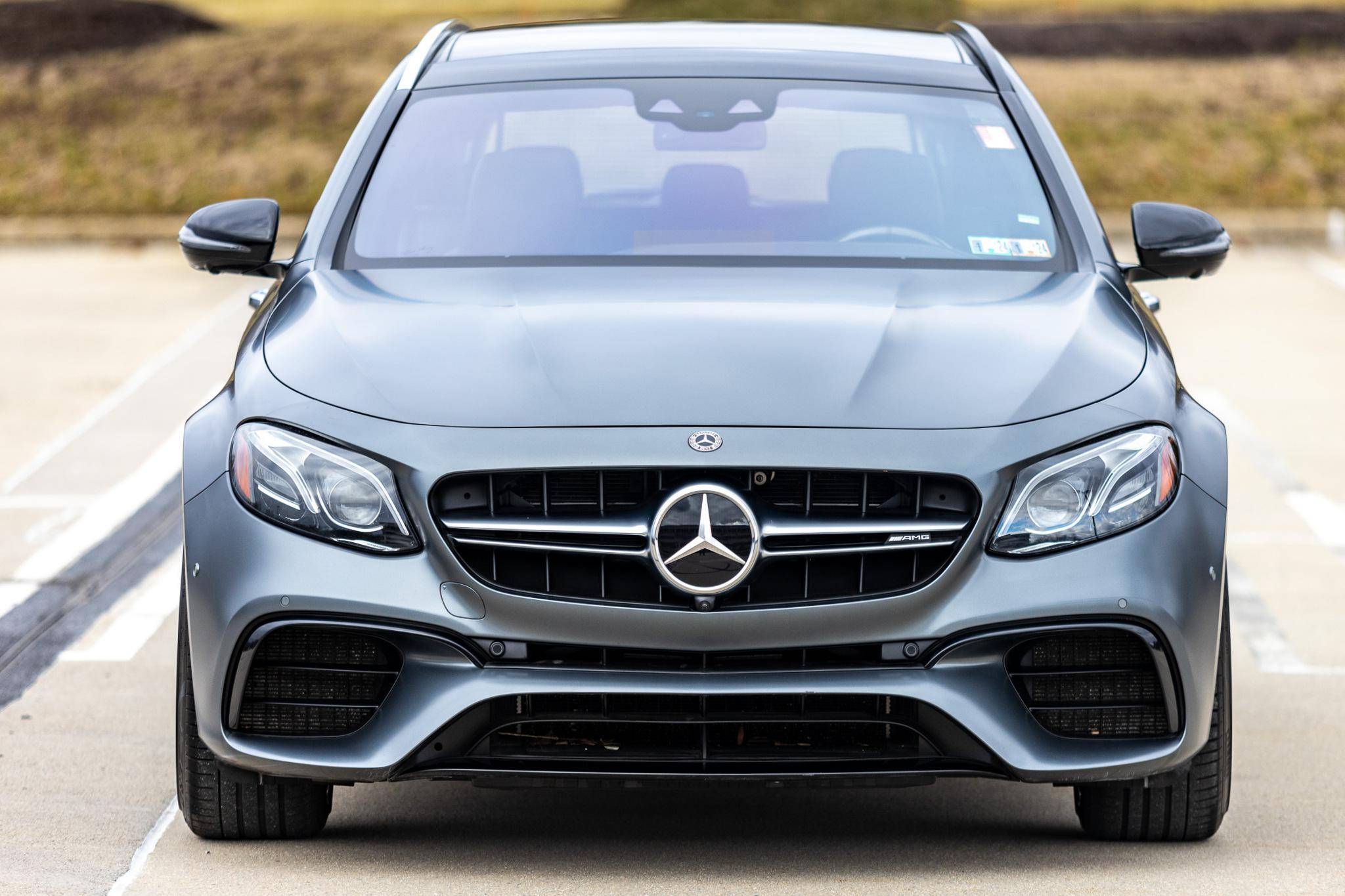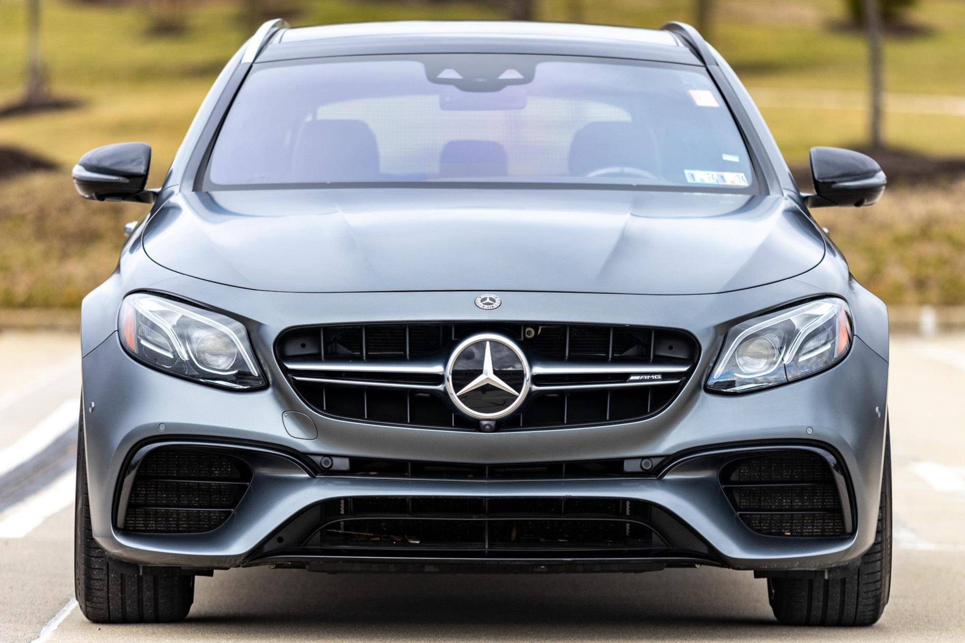 THIS… is a 2020 Mercedes-AMG E63 S Wagon, finished in Designo Selenite Grey Magno with a black interior. The seller reports no modifications. Released for 2018, the "W213"-based E63 and E63 S arrived with a more fluid design, a smaller yet more powerful engine, and a drift mode that can send 100% of the engine's torque to the rear wheels. The wagon variant (called "S213" internally) was exclusively offered in S tune, so it landed as the most expensive member of the E-Class range. Power comes from an "M177" twin-turbocharged 4. 0-liter V8, rated at 603 horsepower and 627 lb-ft of torque. Hand-built, it spins the four wheels via a 9-speed automatic transmission and Mercedes-Benz's 4Matic permanent all-wheel drive system.