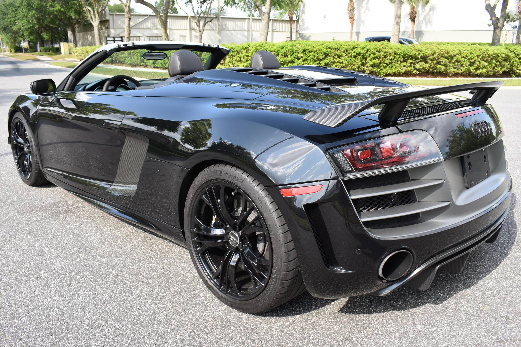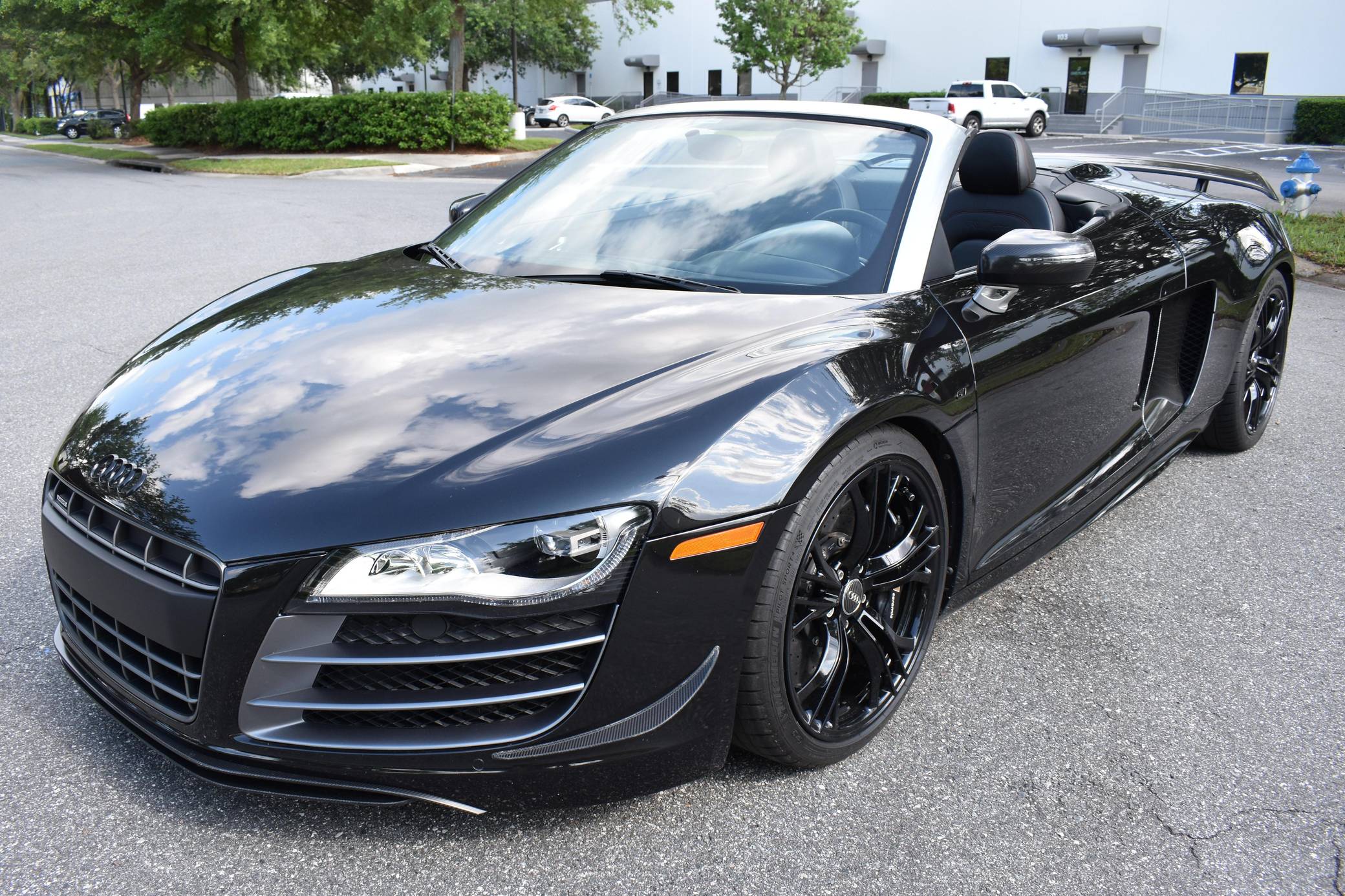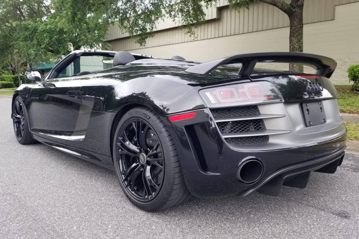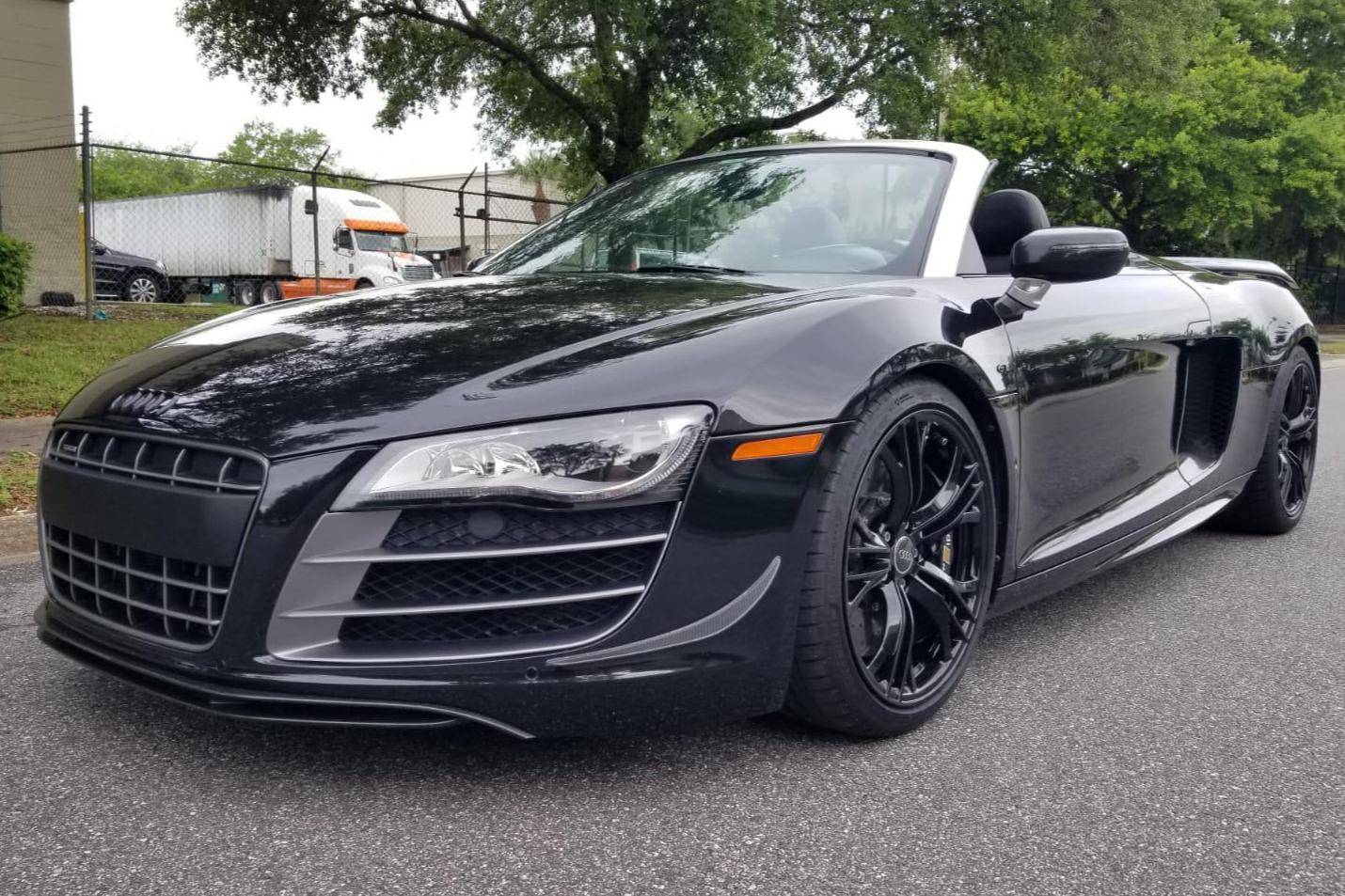 THIS… is a 2012 Audi R8 GT Spyder, finished in Phantom Black Pearl with a black soft top and a black interior. This Audi R8 is number 150 of 333, as shown on the gear select knob. According to the build sheet provided in the gallery, factory equipment includes a 5. 2-liter V10 engine, 6-speed single-clutch transmission, all-wheel-drive system, electronically folding soft top, 19-inch alloy wheels, leather upholstery, navigation system, and more as detailed below. Modifications mentioned by the seller include a valved iPE Innotech exhaust system. Audi broke new ground when it released the original R8 for 2008. Low and wide, the R8 benefitted from Audi's expertise in using aluminum to save weight, and it launched with a V8 mounted behind the cabin; the V10 appeared for 2010. It shared several parts with the Lamborghini Gallardo, though it was a fundamentally different car. Production of the original R8 (called "Type 42" internally) ended in 2015. The R8 GT shaves 265-lbs from the standard car by use of carbon fiber and aluminum parts. Power comes from a 5. 2-liter "FSI" V10, rated at 560 horsepower and 398 lb-ft of torque. It spins the four wheels via a 6-speed automatic transmission and Audi's permanent Quattro all-wheel-drive system.