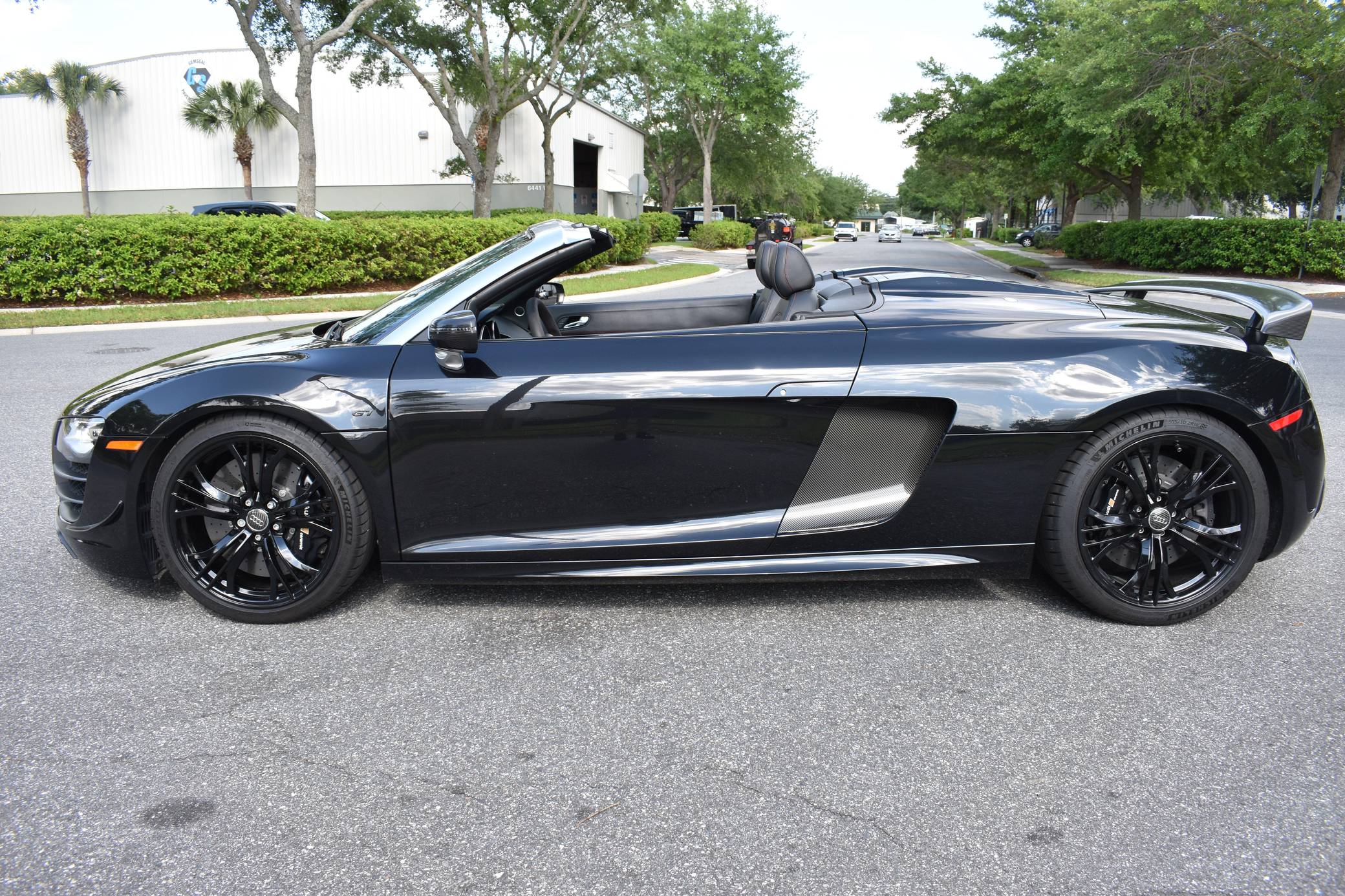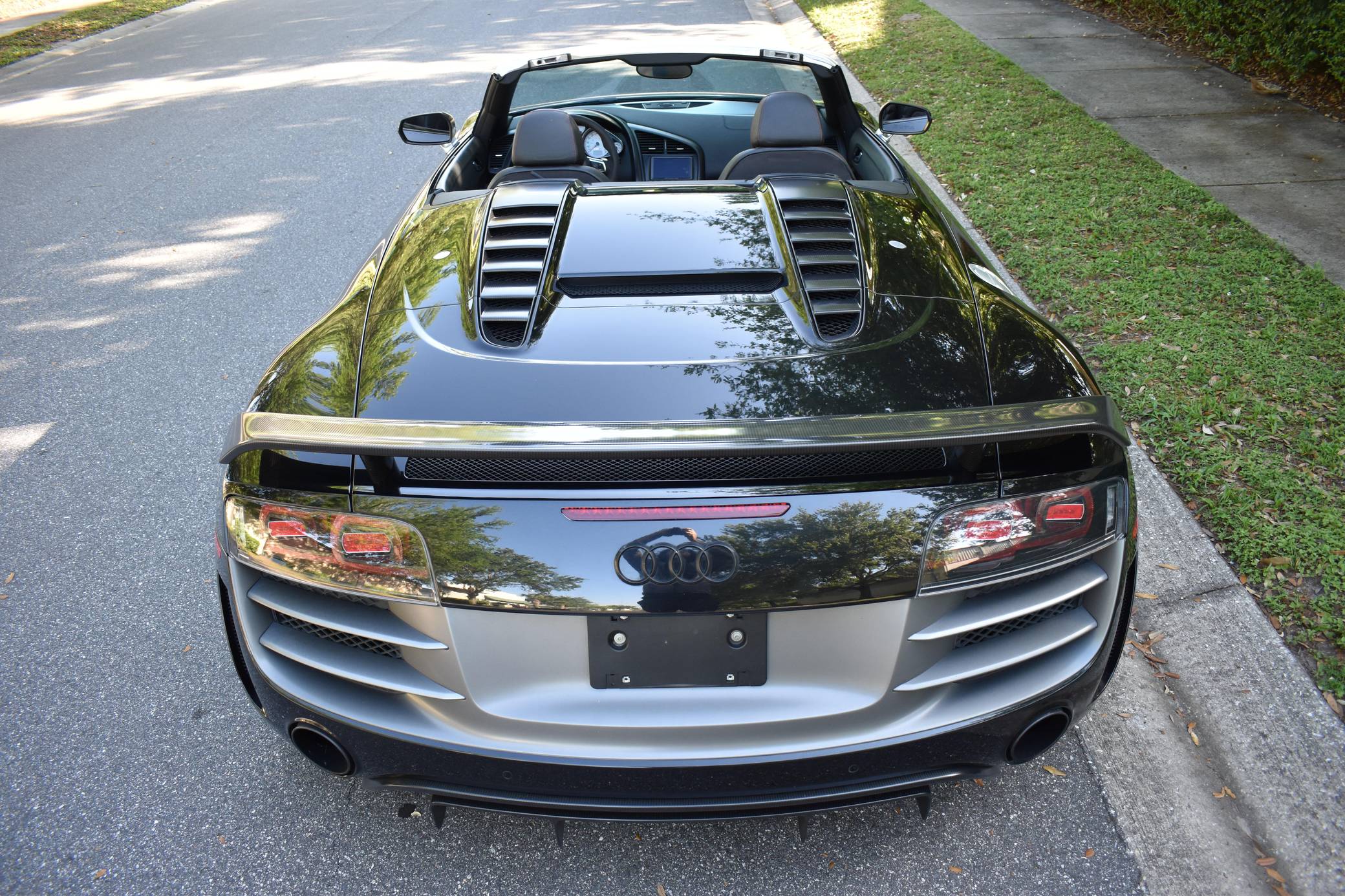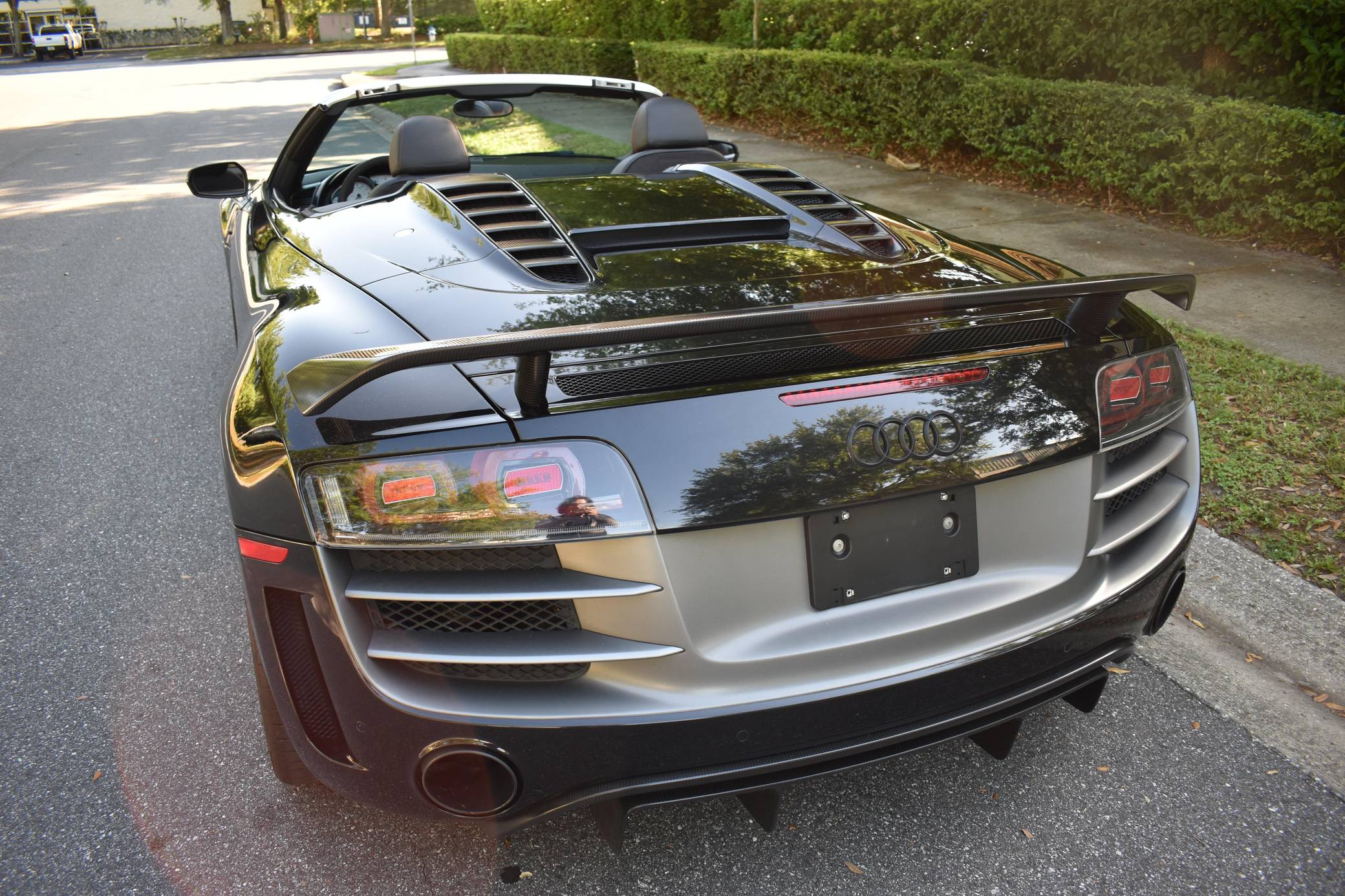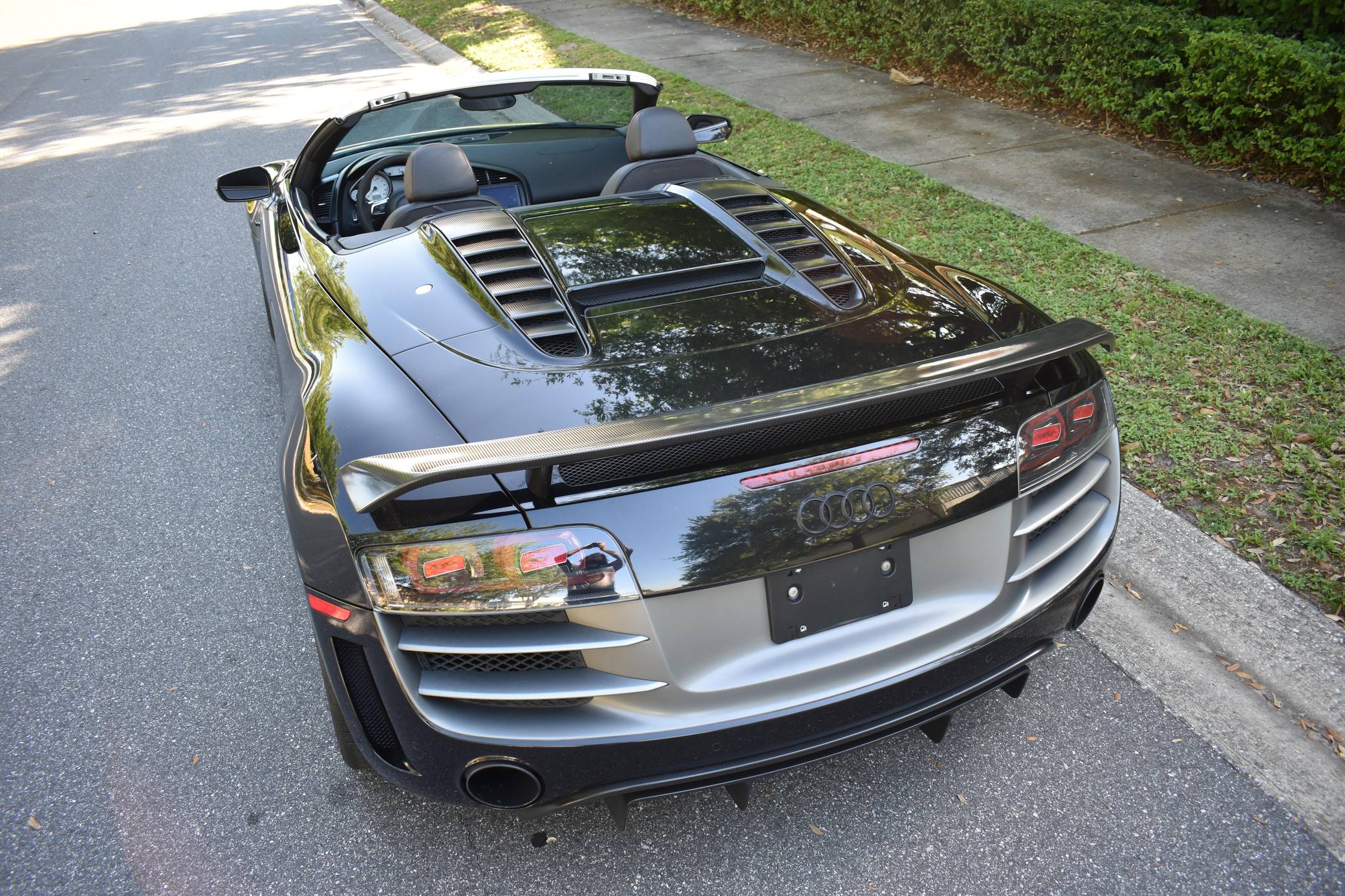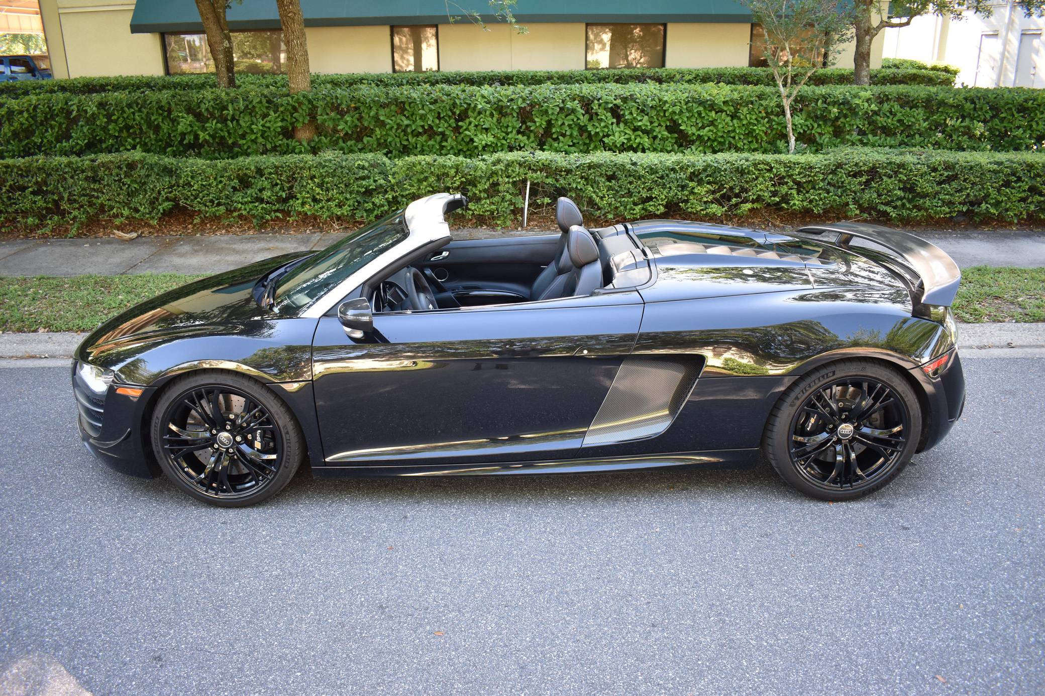 THIS… is a 2012 Audi R8 GT Spyder, finished in Phantom Black Pearl with a black soft top and a black interior. This Audi R8 is number 150 of 333, as shown on the gear select knob. According to the build sheet provided in the gallery, factory equipment includes a 5. 2-liter V10 engine, 6-speed single-clutch transmission, all-wheel-drive system, electronically folding soft top, 19-inch alloy wheels, leather upholstery, navigation system, and more as detailed below. Modifications mentioned by the seller include a valved iPE Innotech exhaust system. Audi broke new ground when it released the original R8 for 2008. Low and wide, the R8 benefitted from Audi's expertise in using aluminum to save weight, and it launched with a V8 mounted behind the cabin; the V10 appeared for 2010. It shared several parts with the Lamborghini Gallardo, though it was a fundamentally different car. Production of the original R8 (called "Type 42" internally) ended in 2015. The R8 GT shaves 265-lbs from the standard car by use of carbon fiber and aluminum parts. Power comes from a 5. 2-liter "FSI" V10, rated at 560 horsepower and 398 lb-ft of torque. It spins the four wheels via a 6-speed automatic transmission and Audi's permanent Quattro all-wheel-drive system.