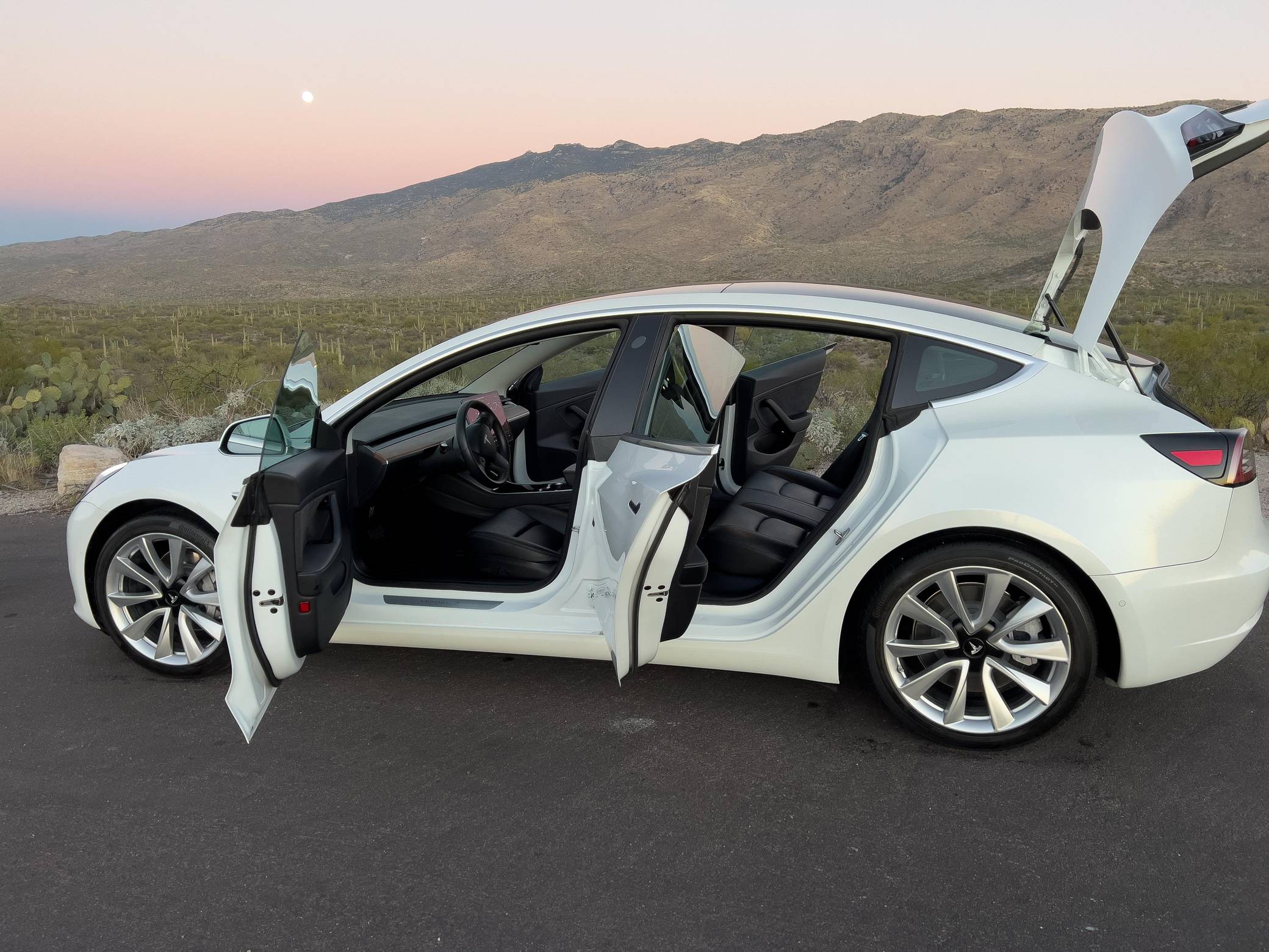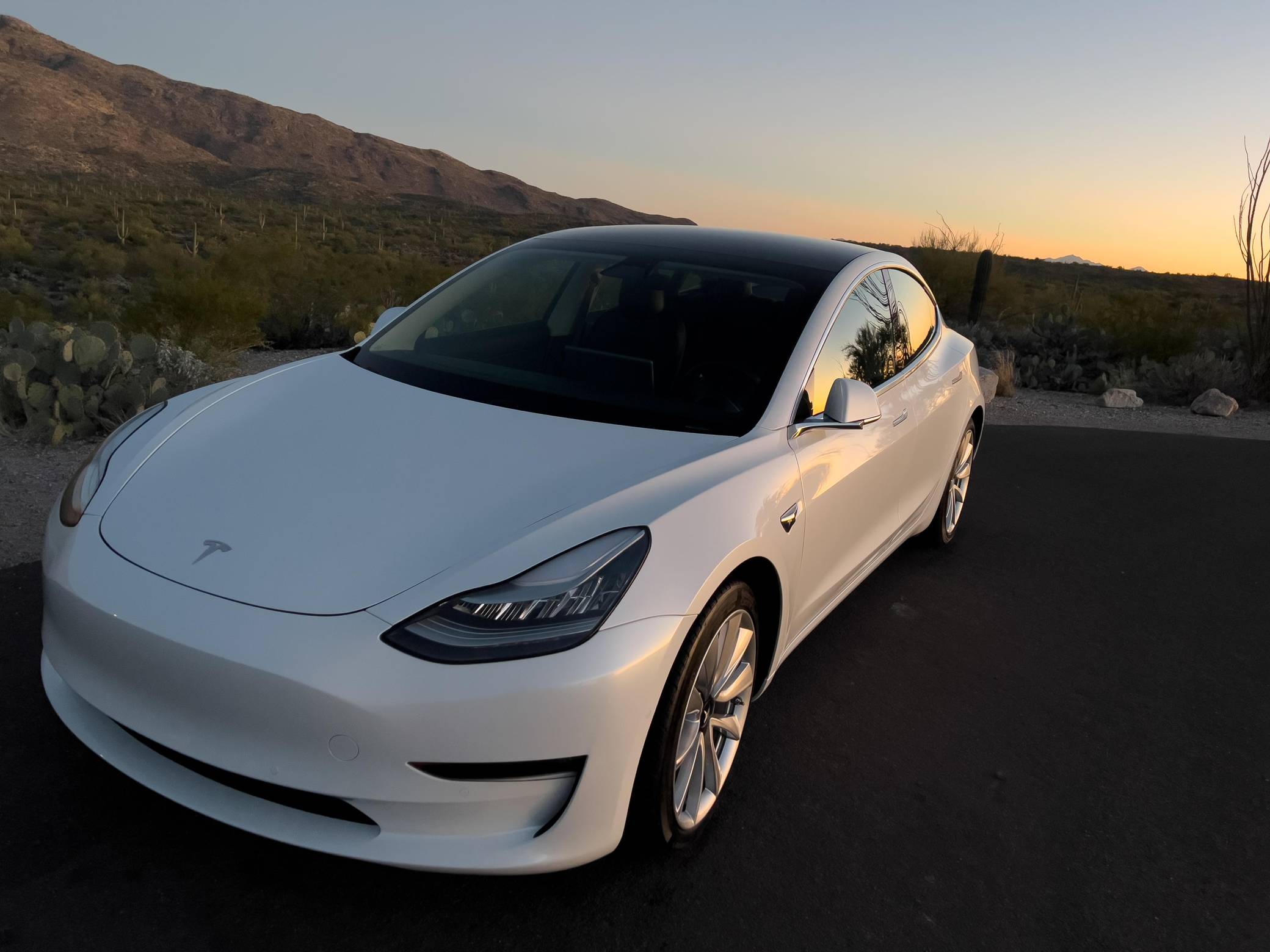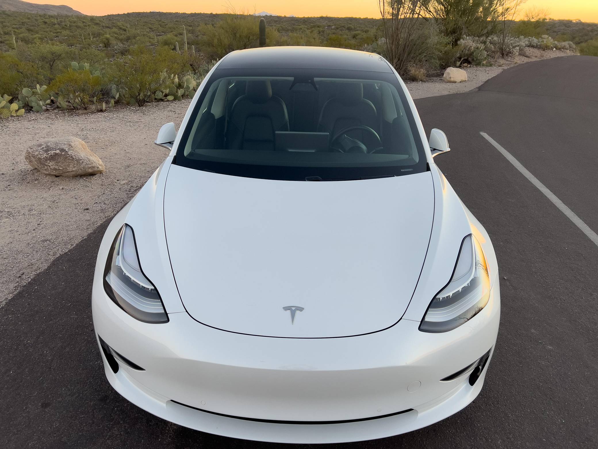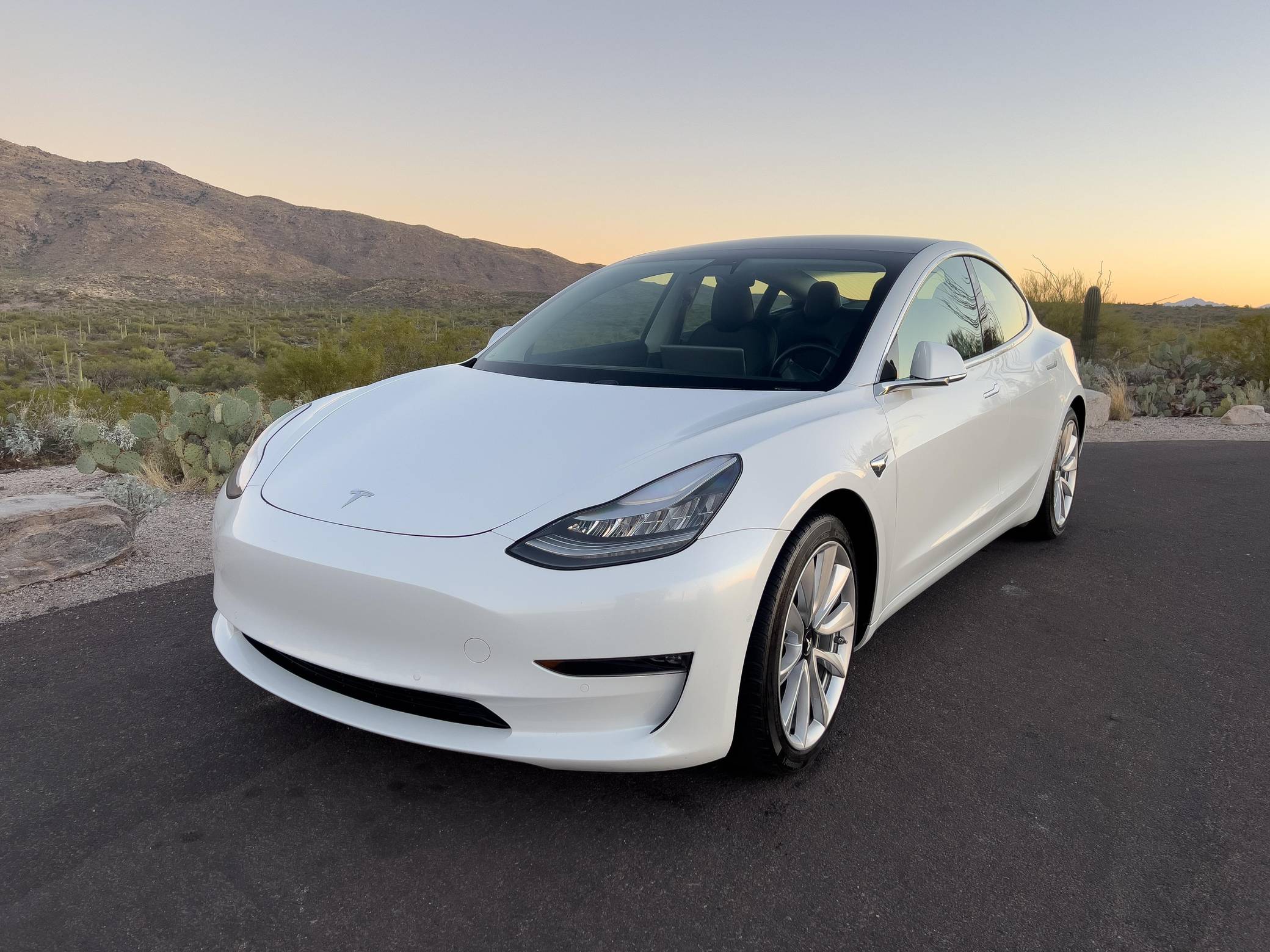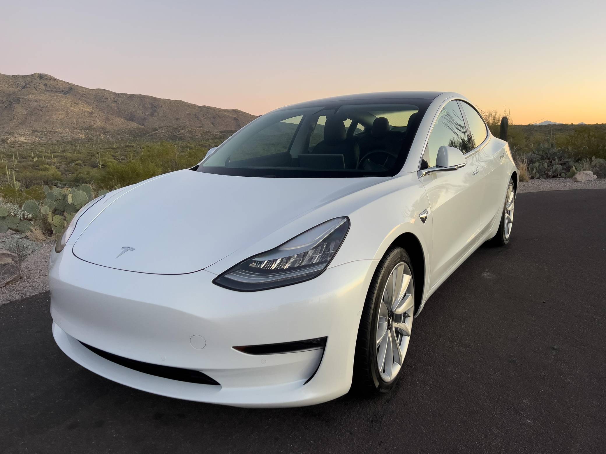2019 Tesla Model 3 Long Range AWD, finished in Pearl White with a black interior. Equipment includes the Premium Interior Package (LED fog lights, heated and power-adjustable front seats, heated rear seats, floor mats, and upgraded sound system), 19-inch wheels, a panoramic roof, synthetic leather upholstery, a 15-inch touchscreen, navigation system, Full Self-Driving Capability, and more as detailed below. This Model 3 is also equipped with the Acceleration Boost option, which enables a 0-60 mph sprint of approximately 3. 7 seconds, according to Tesla. At launch, the Model 3 was presented as a premium EV with a usable driving range and respectable performance, all at a reasonably attainable price. It was Tesla's entry-level car. It's still available today, and it has gone through several evolutions (including many software updates) since its introduction. Power comes from a pair of electric motors that draw electricity from a 75-kilowatt-hour lithium-ion battery pack to zap all four wheels with 346 horsepower and 389 lb-ft of torque, according to third-party estimates. In 2019, the Long Range received a maximum driving range rating of 310 miles from the EPA.