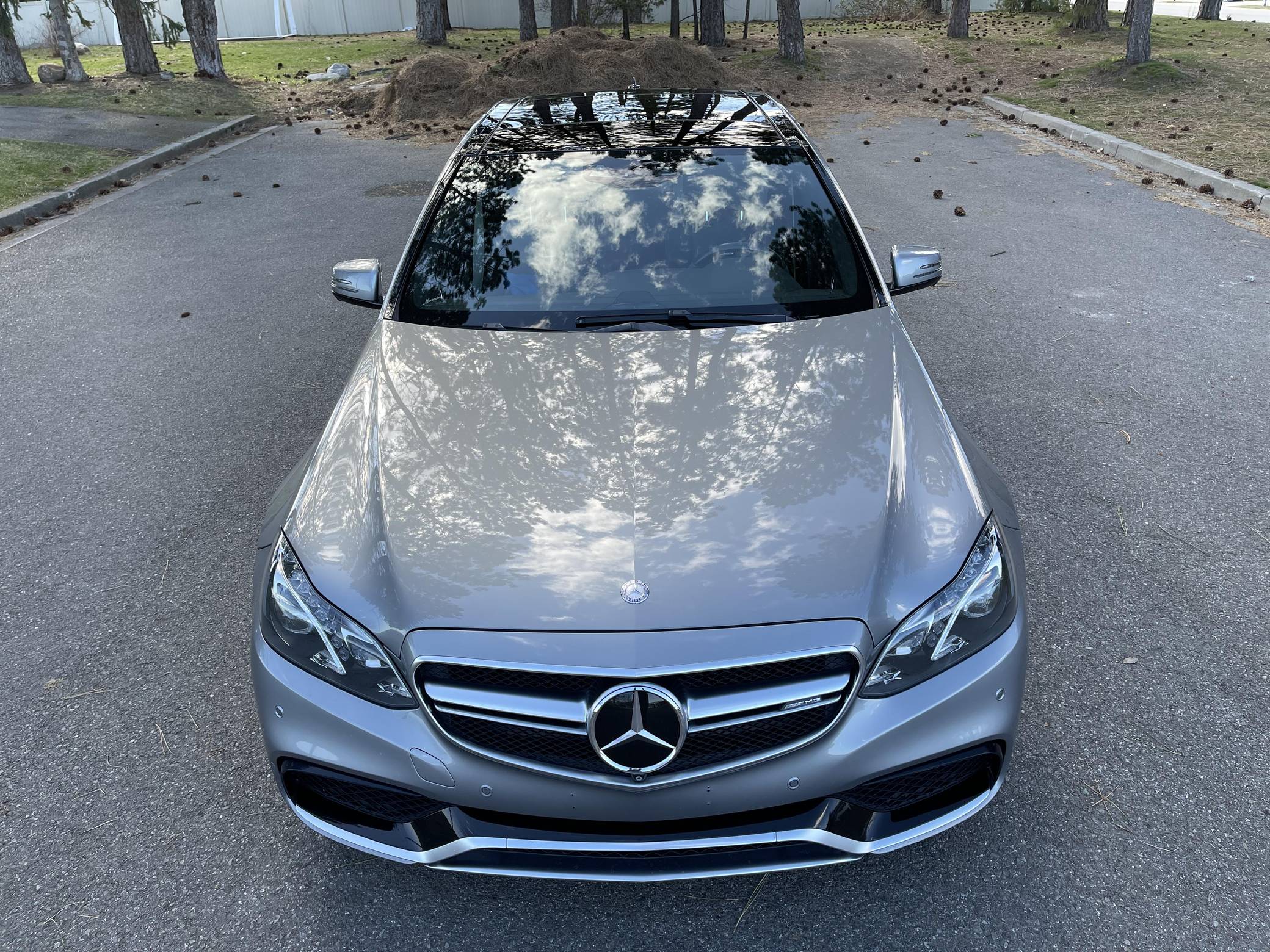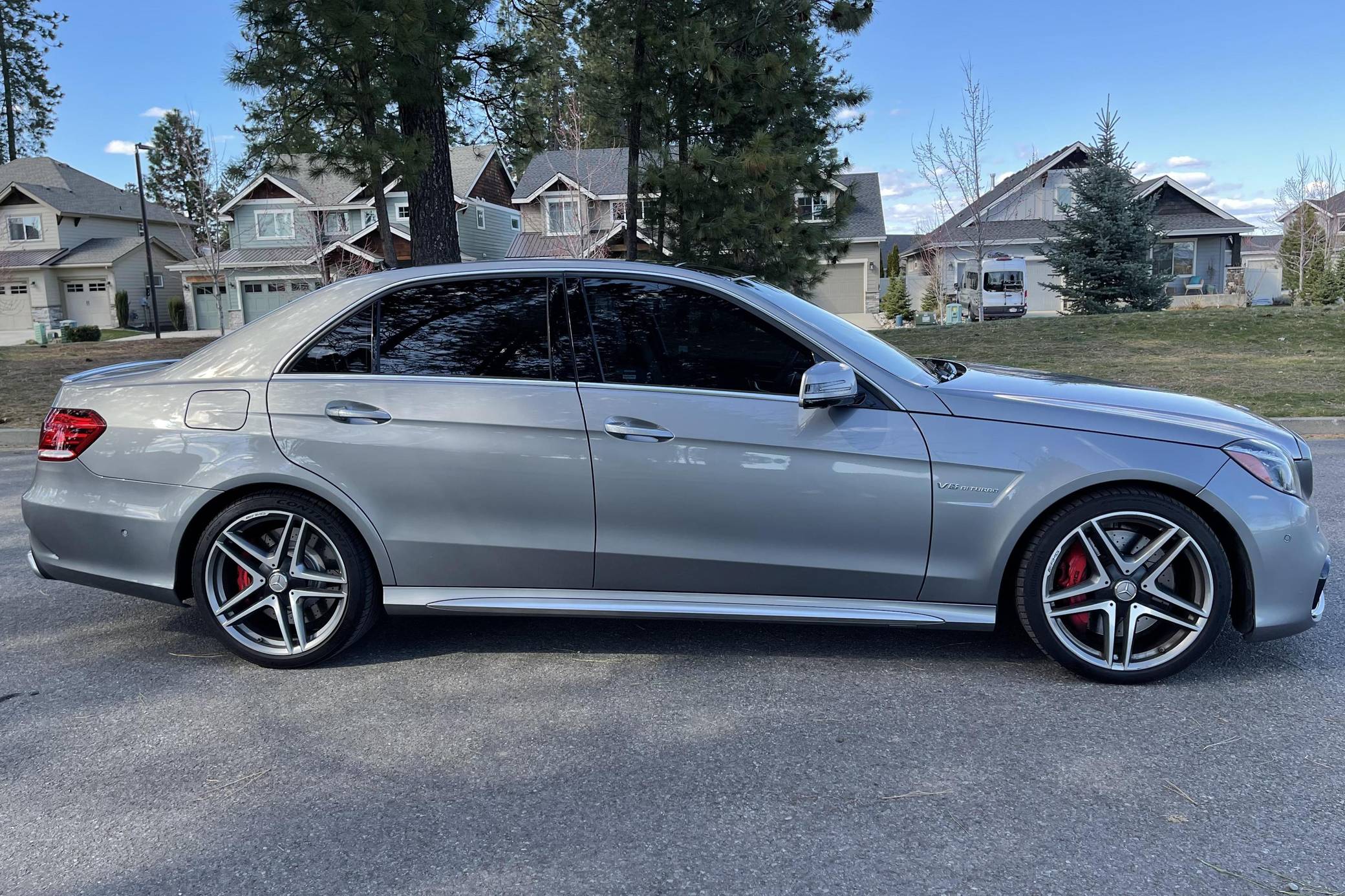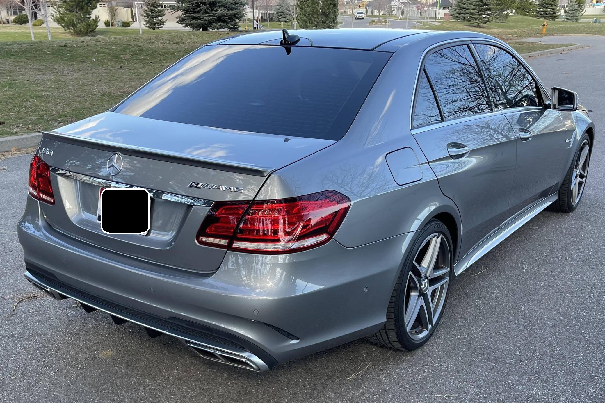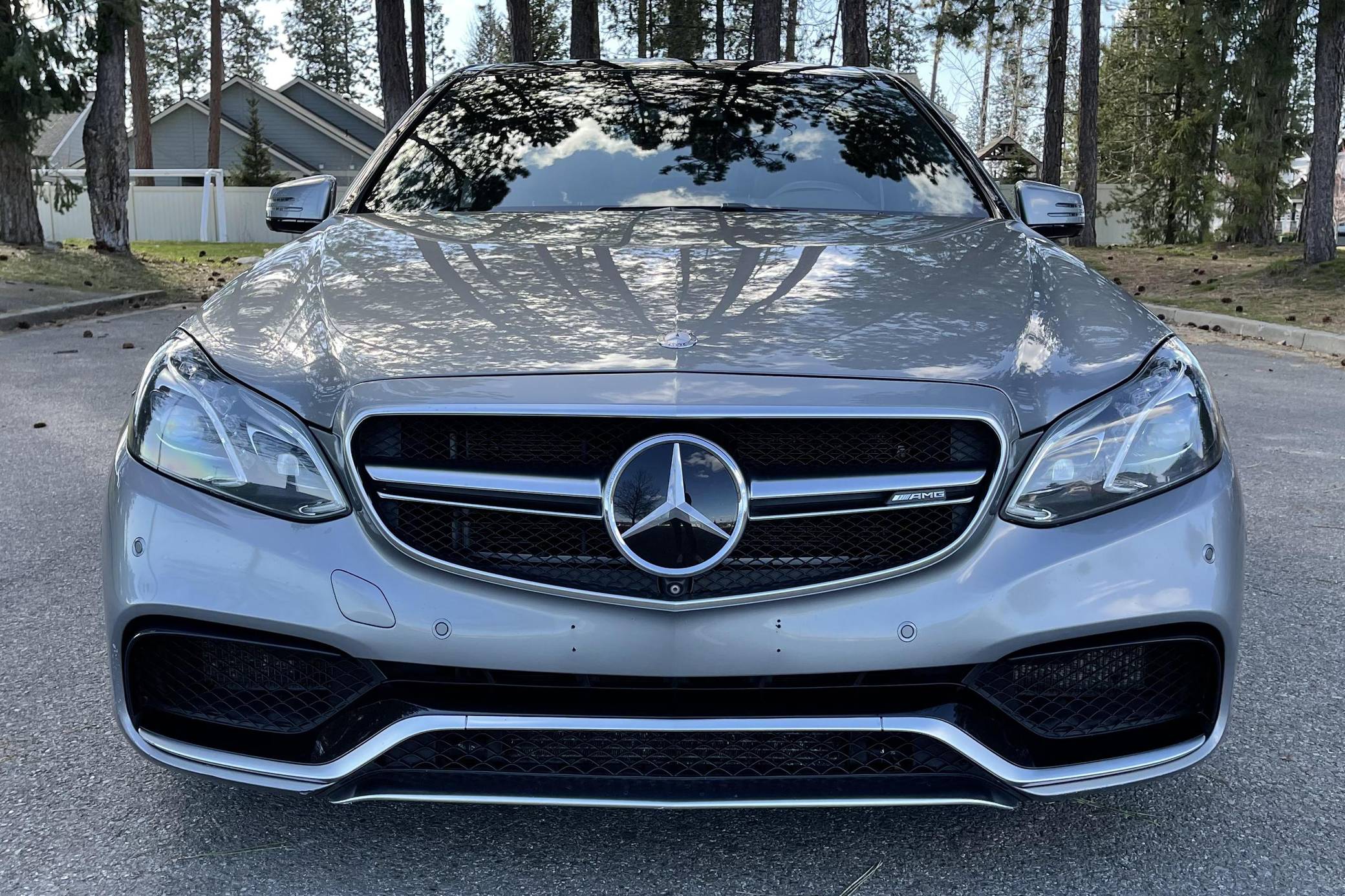 2015 Mercedes-Benz E63 S AMG, finished in Palladium Silver Metallic with a black interior. Factory equipment includes 19-inch wheels, a limited-slip differential, LED headlights, a power-operated sunroof, Nappa leather upholstery, power-adjustable heated and ventilated front Dynamic seats, and more as listed below. Modifications reported by the seller are limited to tinted windows. Mercedes-Benz released the "W212"-based E63 AMG for 2010, and it gave the model a round of significant updates for 2014. The changes included a new-look exterior design, a more powerful V8 available in two states of tune, and a rear-biased 4Matic all-wheel-drive system to help route the engine's full output to the pavement. Sedan and wagon models were available until production ended in 2016. Power comes from an “M157” twin-turbocharged 5. 5-liter V8, rated at 577 horsepower and 590 lb-ft of torque. Output is sent to all four wheels via a 7-speed automatic transmission and Mercedes-Benz's 4Matic permanent all-wheel-drive system.