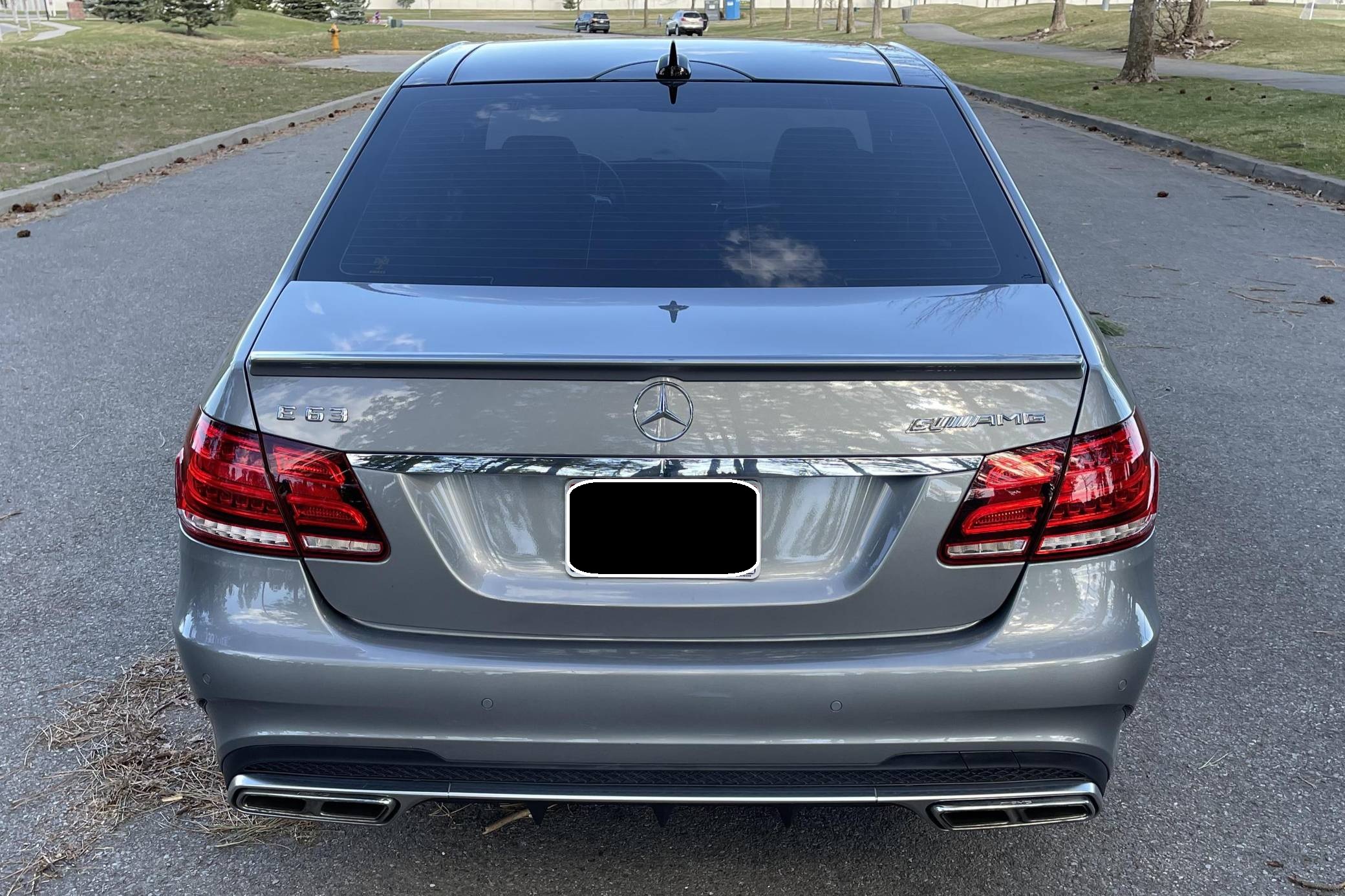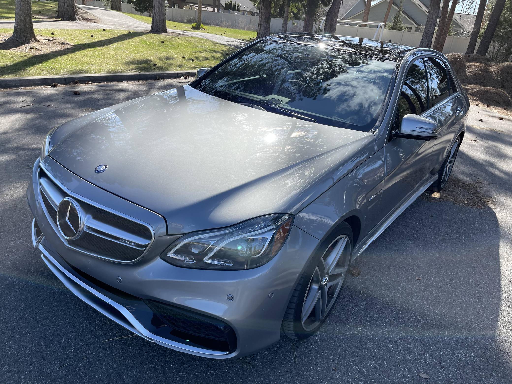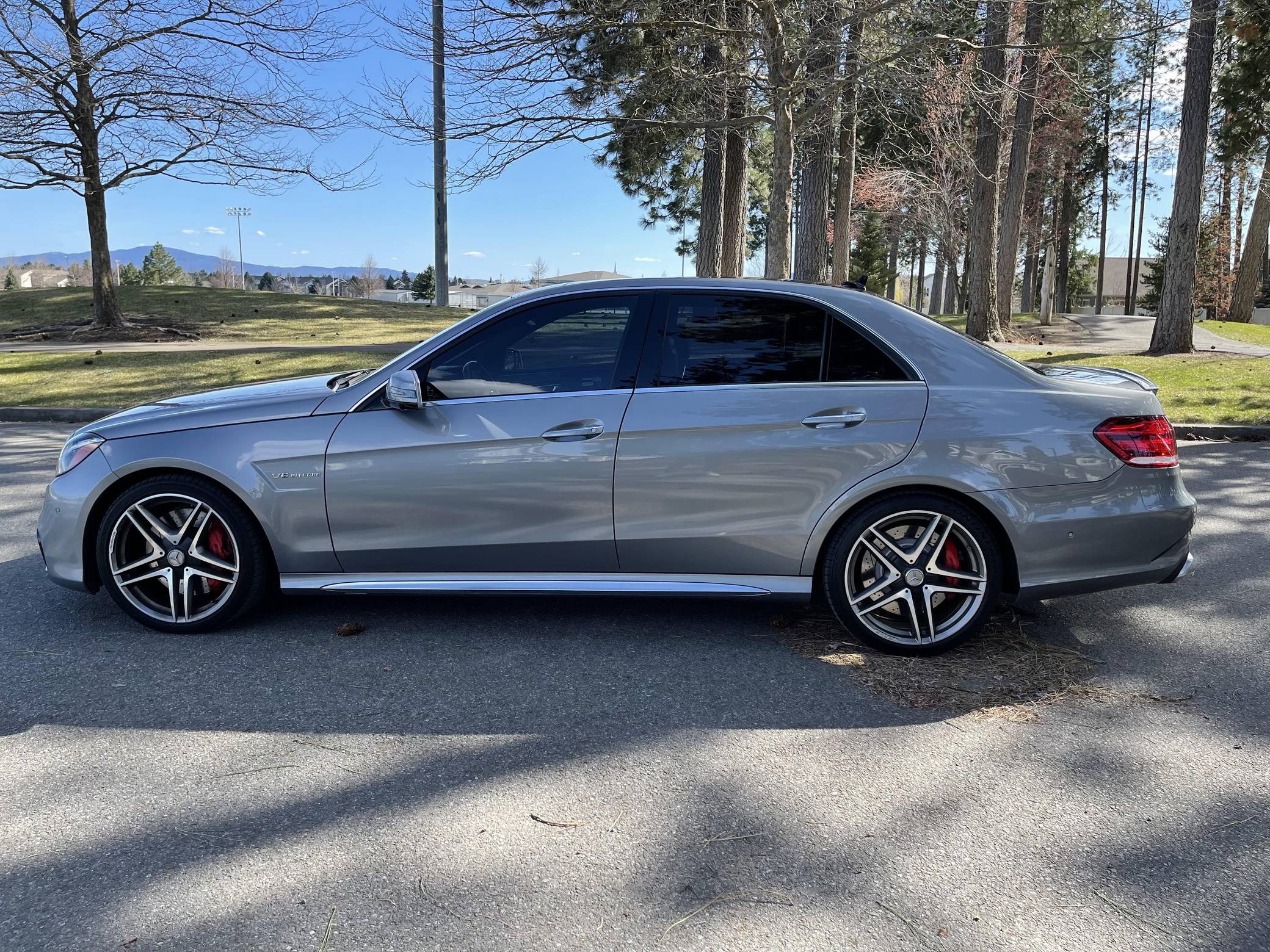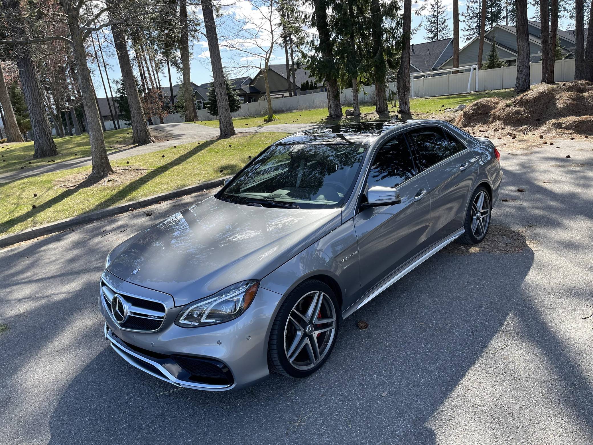 2015 Mercedes-Benz E63 S AMG, finished in Palladium Silver Metallic with a black interior. Factory equipment includes 19-inch wheels, a limited-slip differential, LED headlights, a power-operated sunroof, Nappa leather upholstery, power-adjustable heated and ventilated front Dynamic seats, and more as listed below. Modifications reported by the seller are limited to tinted windows. Mercedes-Benz released the "W212"-based E63 AMG for 2010, and it gave the model a round of significant updates for 2014. The changes included a new-look exterior design, a more powerful V8 available in two states of tune, and a rear-biased 4Matic all-wheel-drive system to help route the engine's full output to the pavement. Sedan and wagon models were available until production ended in 2016. Power comes from an “M157” twin-turbocharged 5. 5-liter V8, rated at 577 horsepower and 590 lb-ft of torque. Output is sent to all four wheels via a 7-speed automatic transmission and Mercedes-Benz's 4Matic permanent all-wheel-drive system.