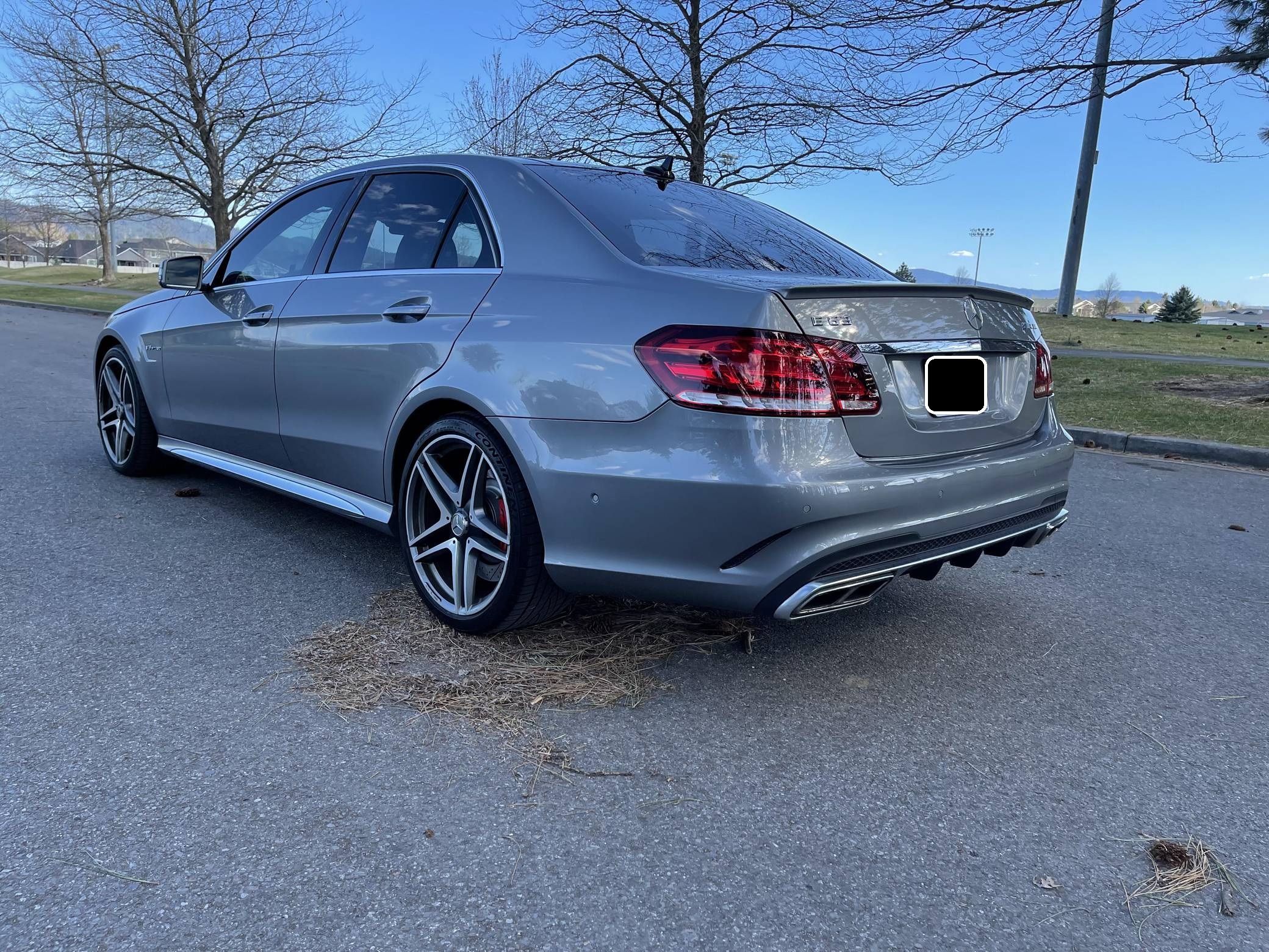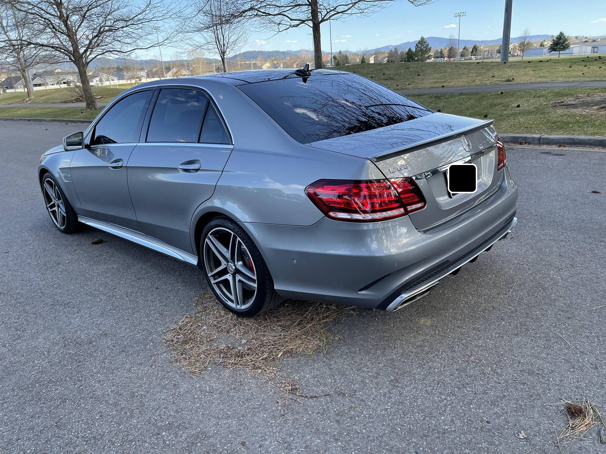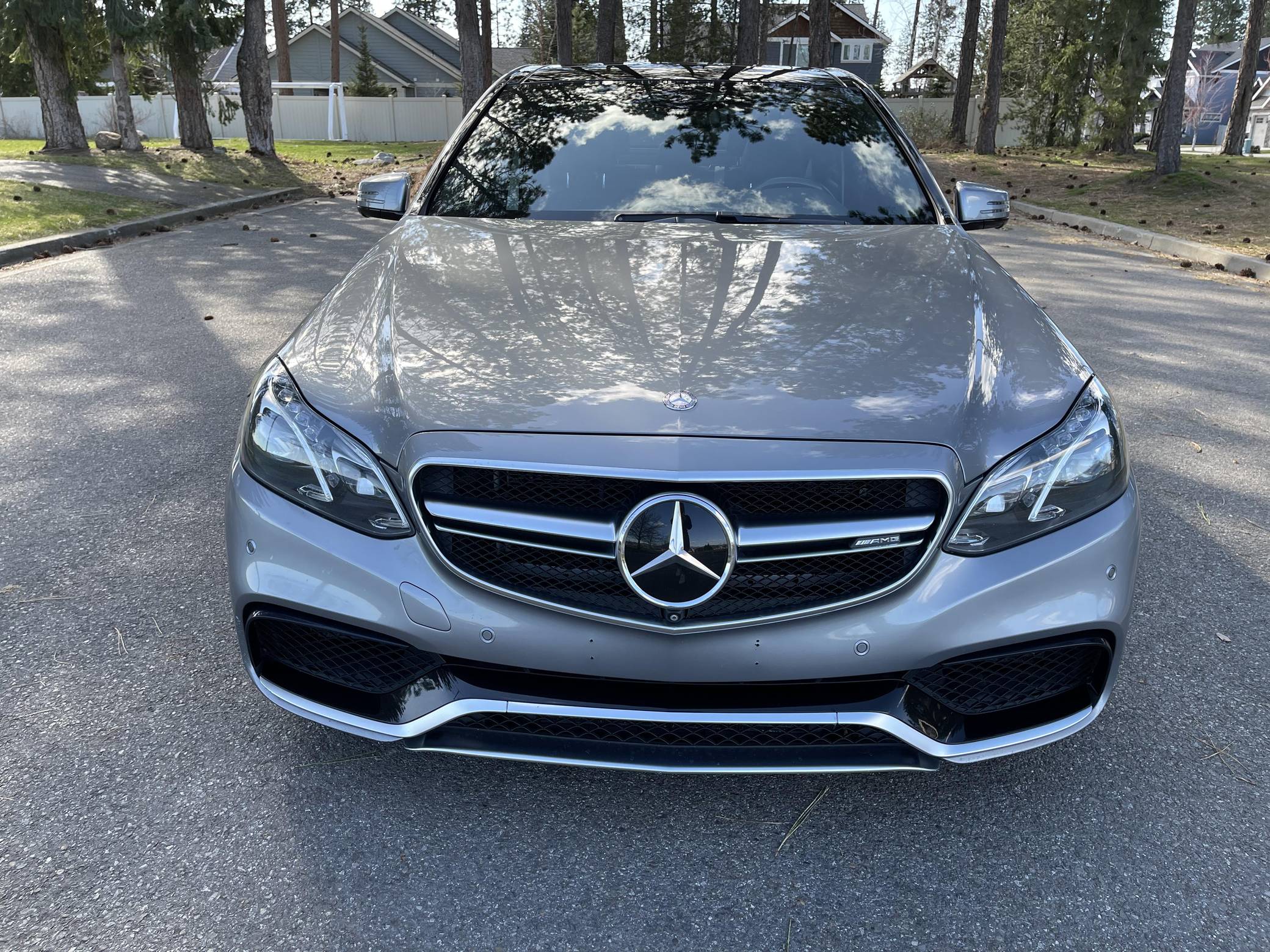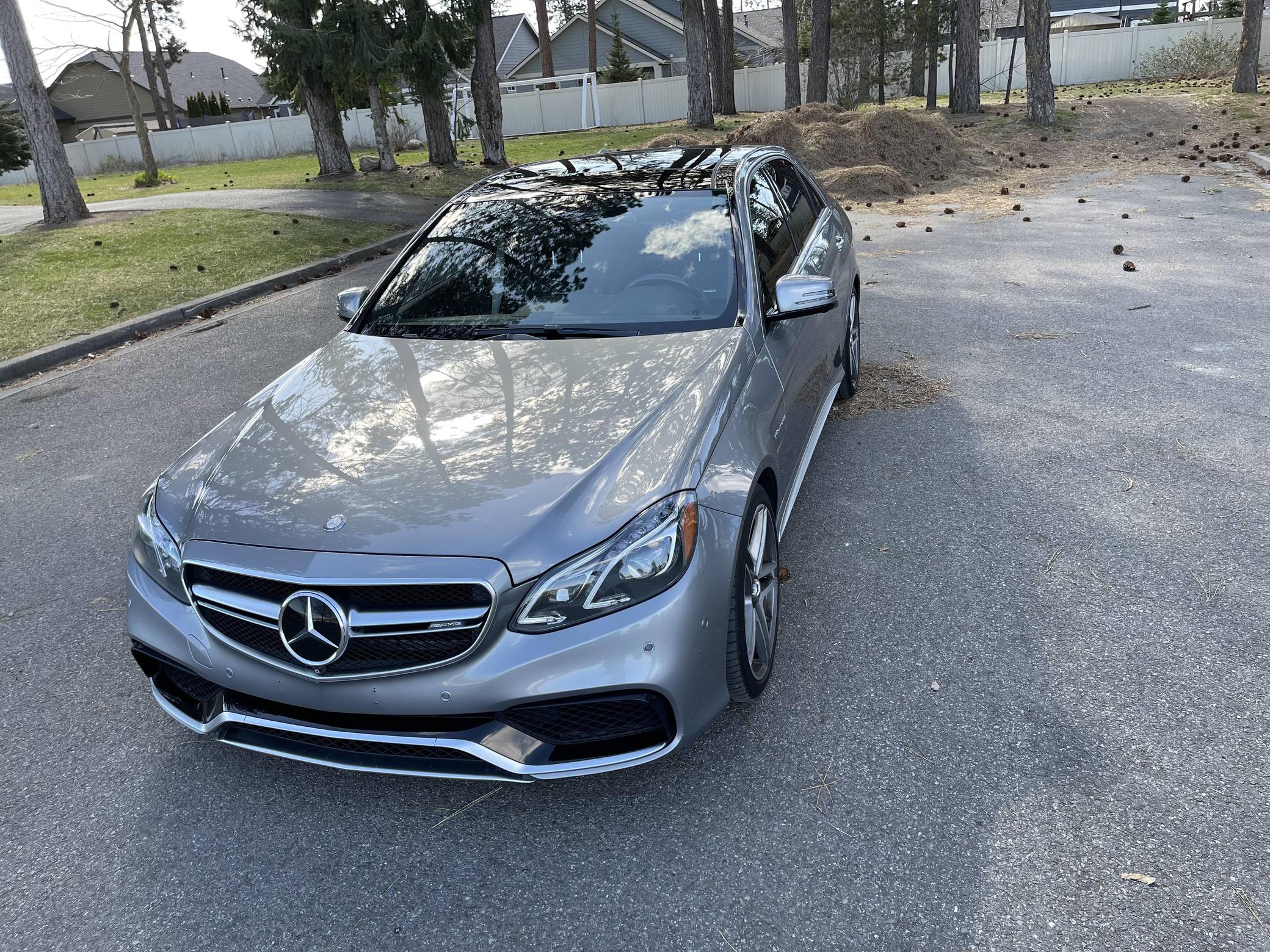 2015 Mercedes-Benz E63 S AMG, finished in Palladium Silver Metallic with a black interior. Factory equipment includes 19-inch wheels, a limited-slip differential, LED headlights, a power-operated sunroof, Nappa leather upholstery, power-adjustable heated and ventilated front Dynamic seats, and more as listed below. Modifications reported by the seller are limited to tinted windows. Mercedes-Benz released the "W212"-based E63 AMG for 2010, and it gave the model a round of significant updates for 2014. The changes included a new-look exterior design, a more powerful V8 available in two states of tune, and a rear-biased 4Matic all-wheel-drive system to help route the engine's full output to the pavement. Sedan and wagon models were available until production ended in 2016. Power comes from an “M157” twin-turbocharged 5. 5-liter V8, rated at 577 horsepower and 590 lb-ft of torque. Output is sent to all four wheels via a 7-speed automatic transmission and Mercedes-Benz's 4Matic permanent all-wheel-drive system.