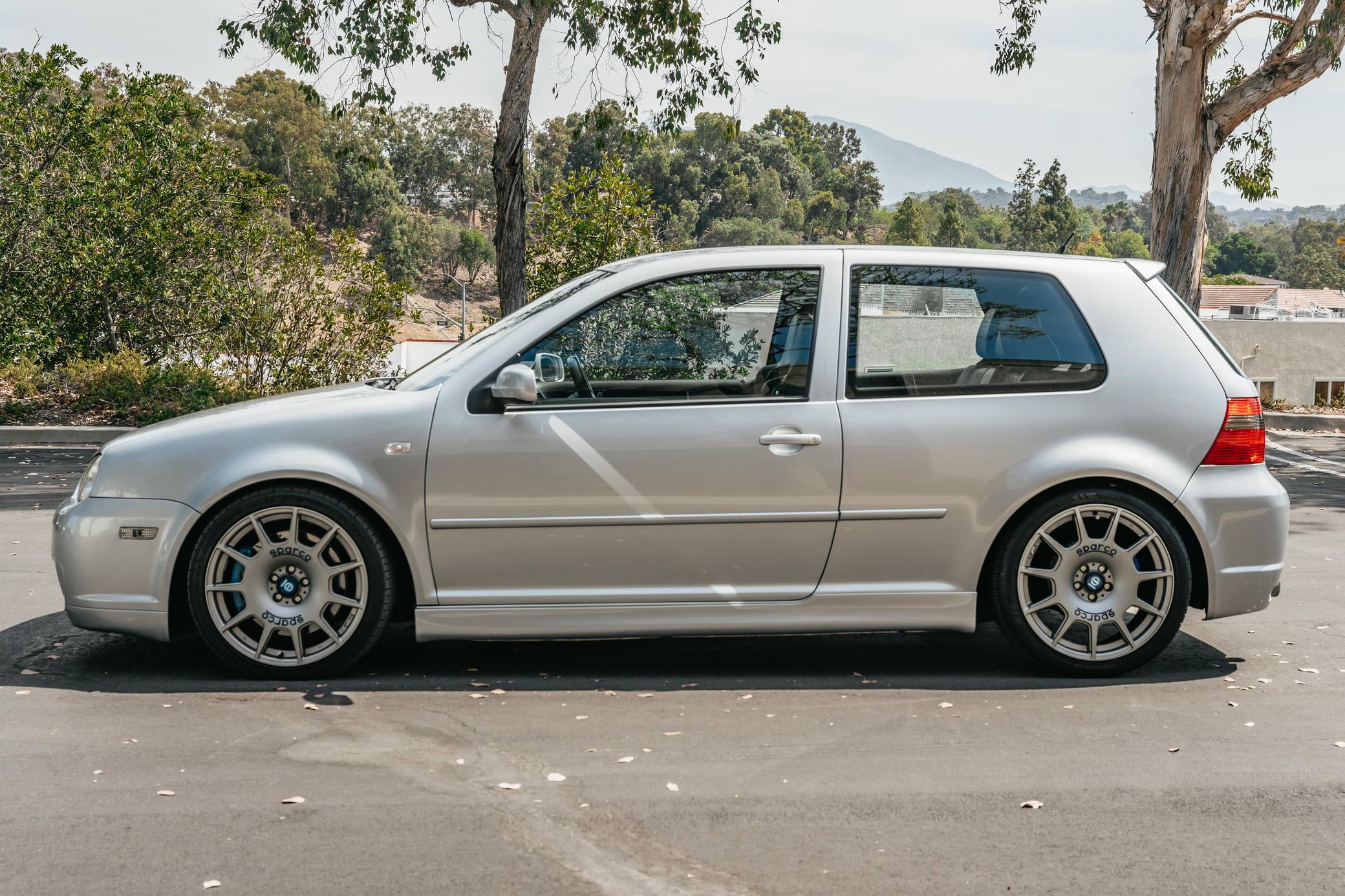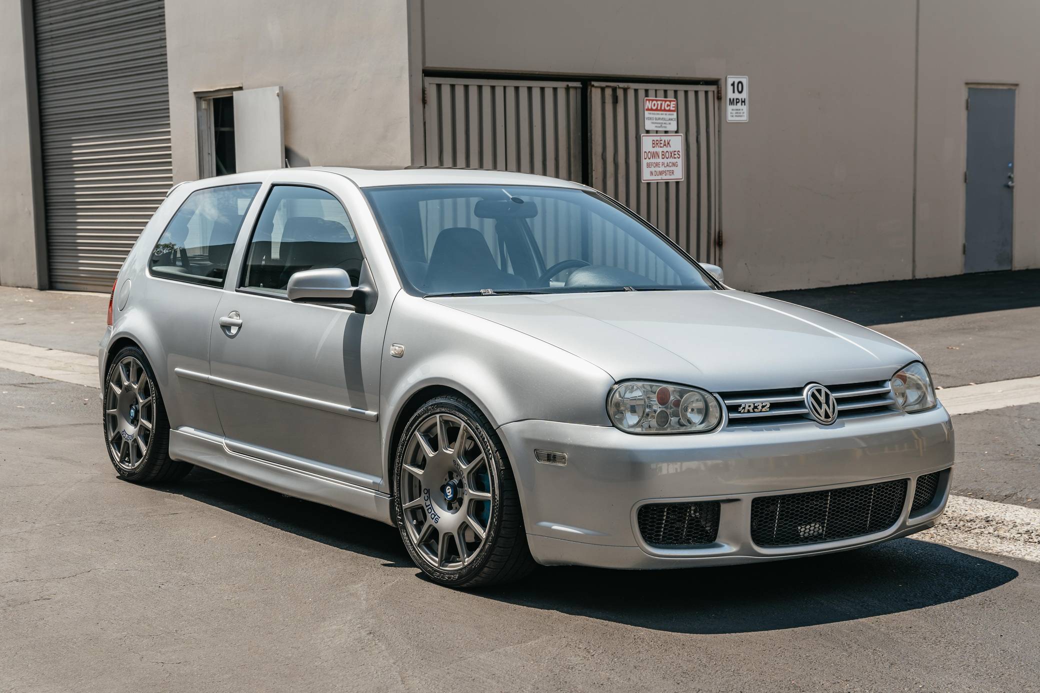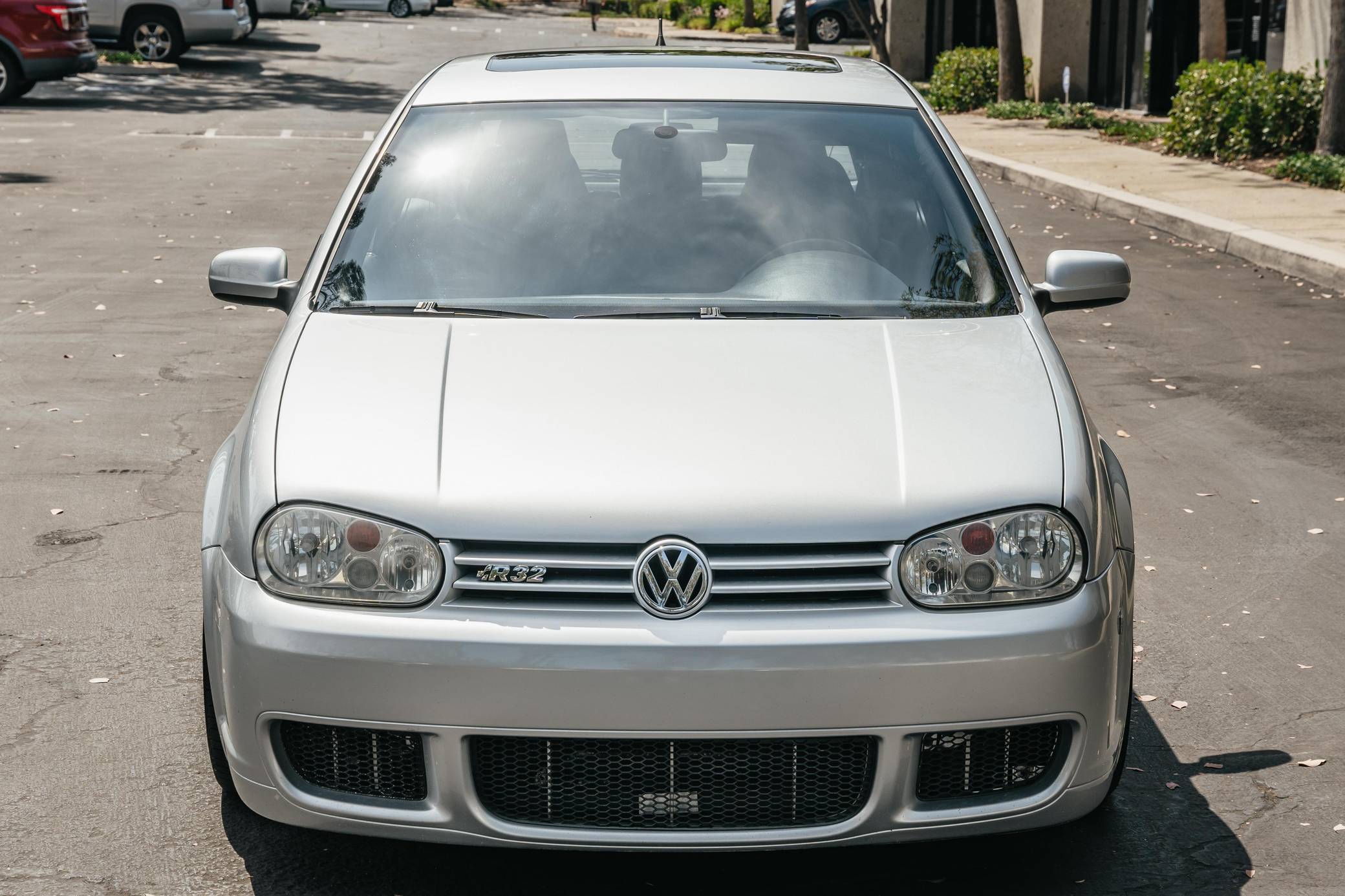 2004 Volkswagen R32, finished in Reflex Silver Metallic with a Charcoal interior. This R32 features the desirable 6-speed manual transmission. A build sheet is provided in the photo gallery, and a partial list of notable equipment includes 4-wheel independent suspension, front and rear stabilizer bars, an R32-specific body kit, a power-operated sunroof, leather upholstery, Koenig heated front sport seats, and a Monsoon audio system. Modifications reported by the seller include 18-inch Sparco wheels, a Solo Werks coilover suspension system, and Rotorpros brake rotors. After unexpected fanfare in Europe, the high-performance R32 was brought to the US with a limited, 5,000-unit production run for the 2004 model year. Representing the pinnacle of the MK4 Golf platform, all R32s came loaded with performance and luxury features including a ‘High-Output’ VR6 engine, a Haldex traction-based 4Motion all-wheel drive, an independent rear suspension system, larger brakes, and more. Power comes from a "VR6" 3. 2-liter V6, rated at 240 horsepower and 236 lb-ft of torque. Output is sent to all four wheels via a 6-speed manual transmission and Volkswagen's 4Motion Haldex-based all-wheel drive system.
