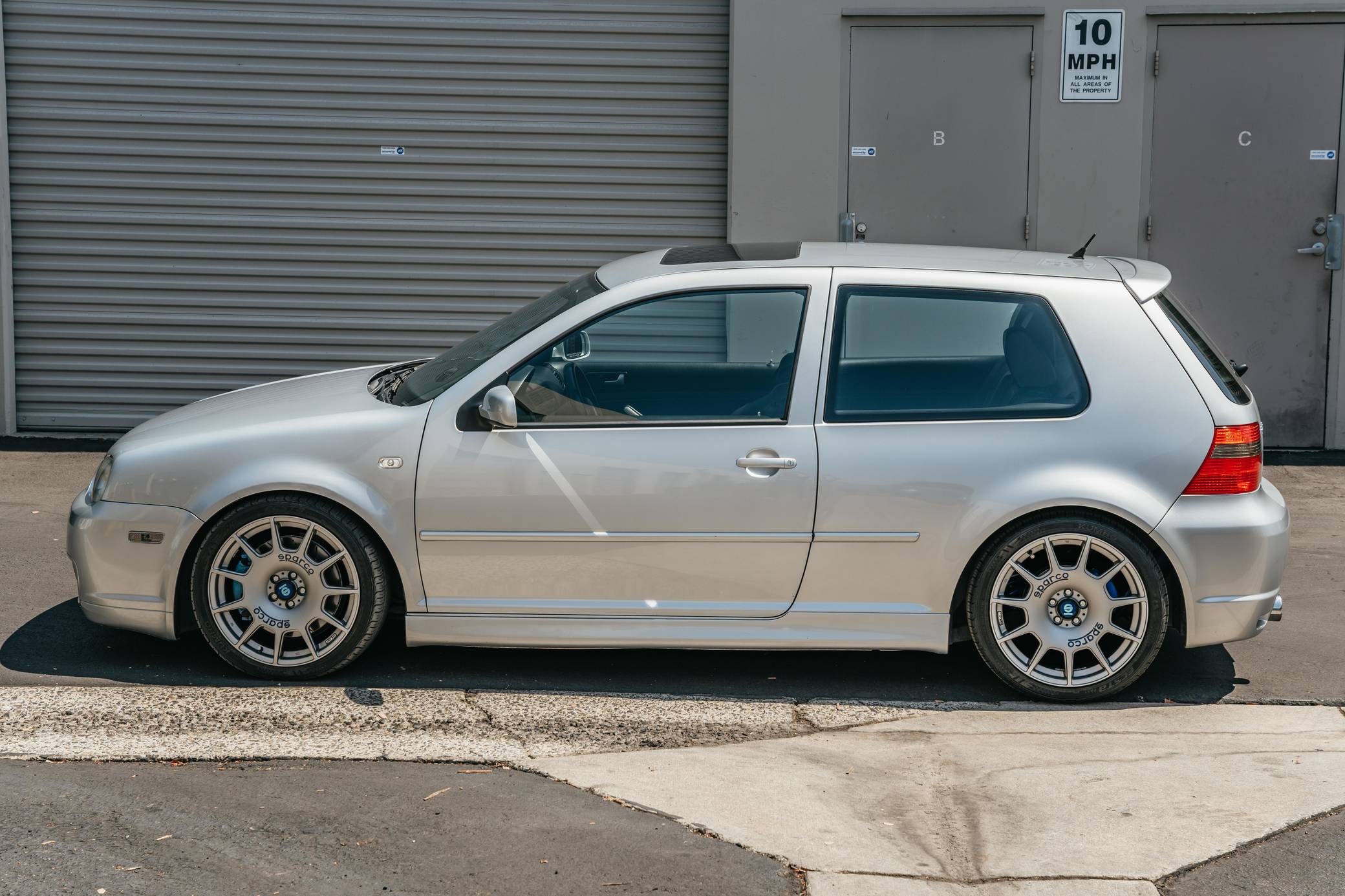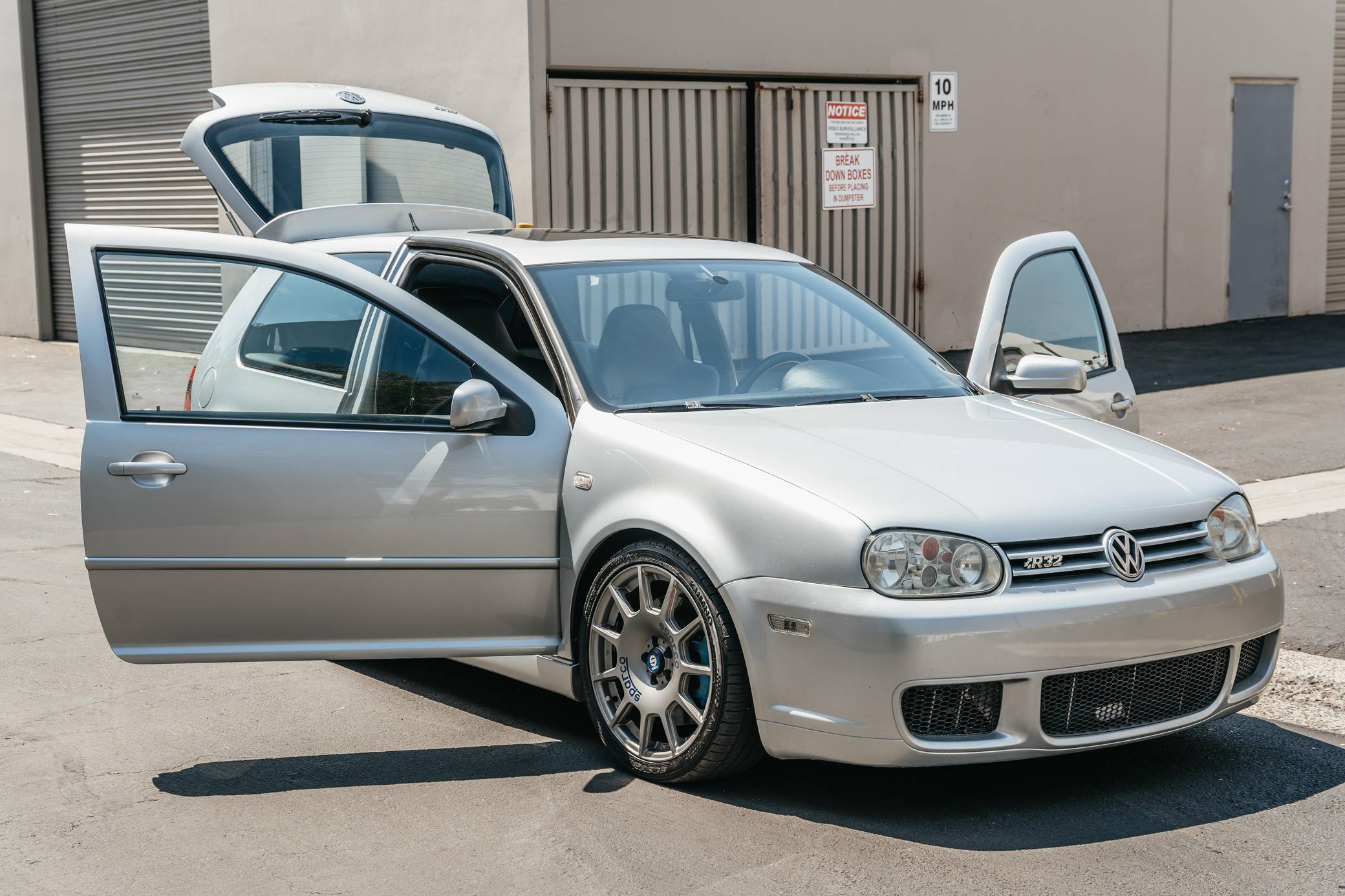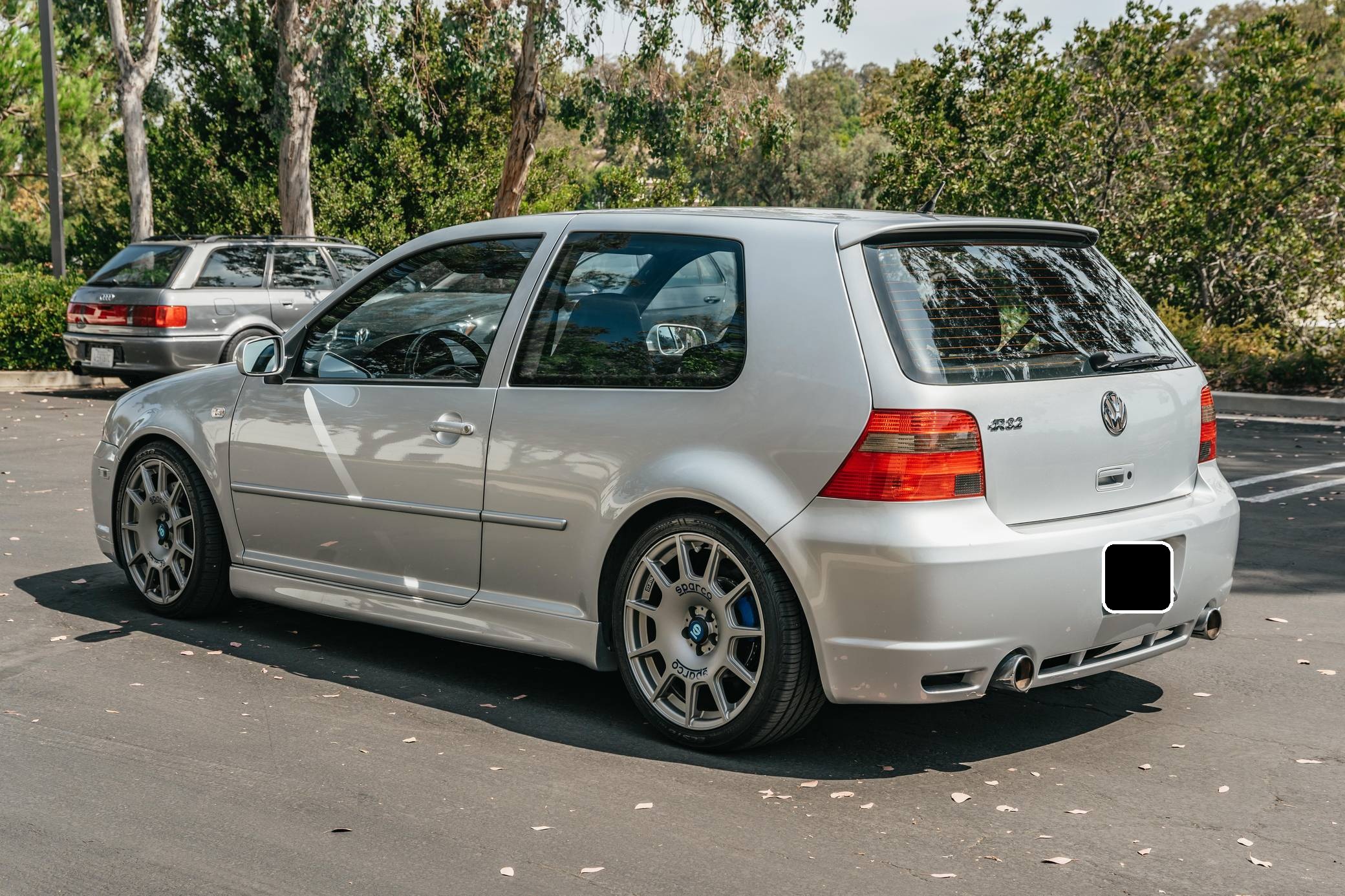2004 Volkswagen R32, finished in Reflex Silver Metallic with a Charcoal interior. This R32 features the desirable 6-speed manual transmission. A build sheet is provided in the photo gallery, and a partial list of notable equipment includes 4-wheel independent suspension, front and rear stabilizer bars, an R32-specific body kit, a power-operated sunroof, leather upholstery, Koenig heated front sport seats, and a Monsoon audio system. Modifications reported by the seller include 18-inch Sparco wheels, a Solo Werks coilover suspension system, and Rotorpros brake rotors. After unexpected fanfare in Europe, the high-performance R32 was brought to the US with a limited, 5,000-unit production run for the 2004 model year. Representing the pinnacle of the MK4 Golf platform, all R32s came loaded with performance and luxury features including a ‘High-Output’ VR6 engine, a Haldex traction-based 4Motion all-wheel drive, an independent rear suspension system, larger brakes, and more. Power comes from a "VR6" 3. 2-liter V6, rated at 240 horsepower and 236 lb-ft of torque. Output is sent to all four wheels via a 6-speed manual transmission and Volkswagen's 4Motion Haldex-based all-wheel drive system.