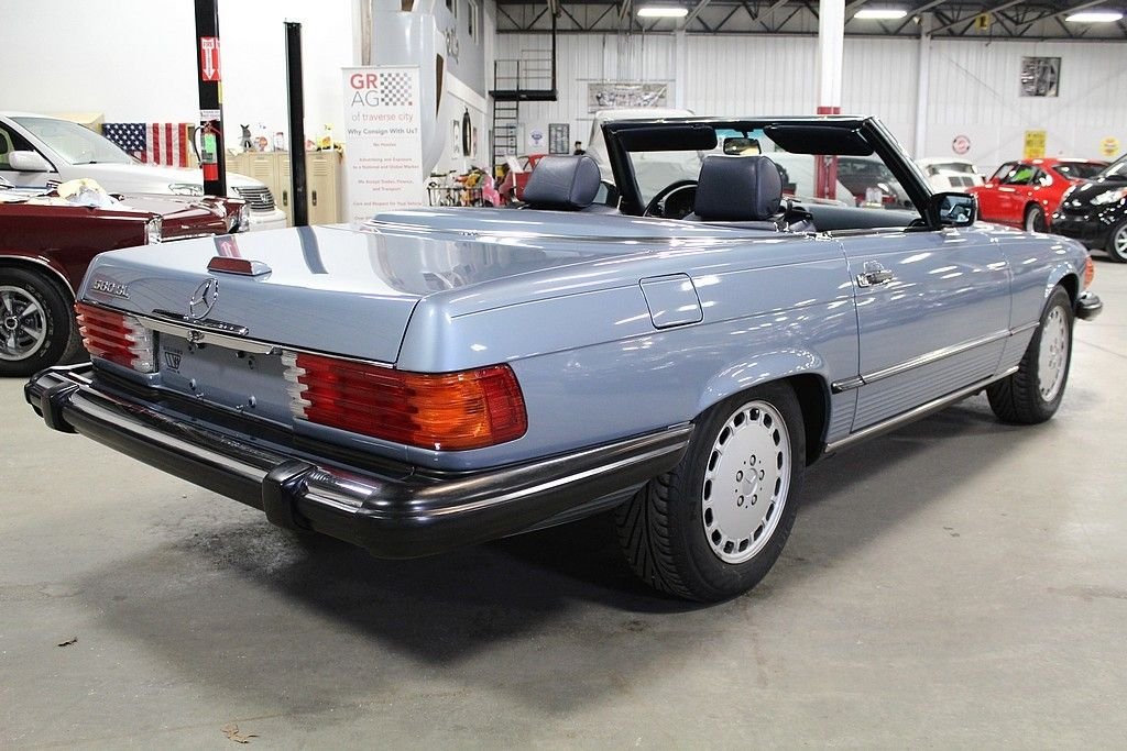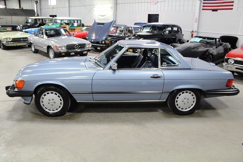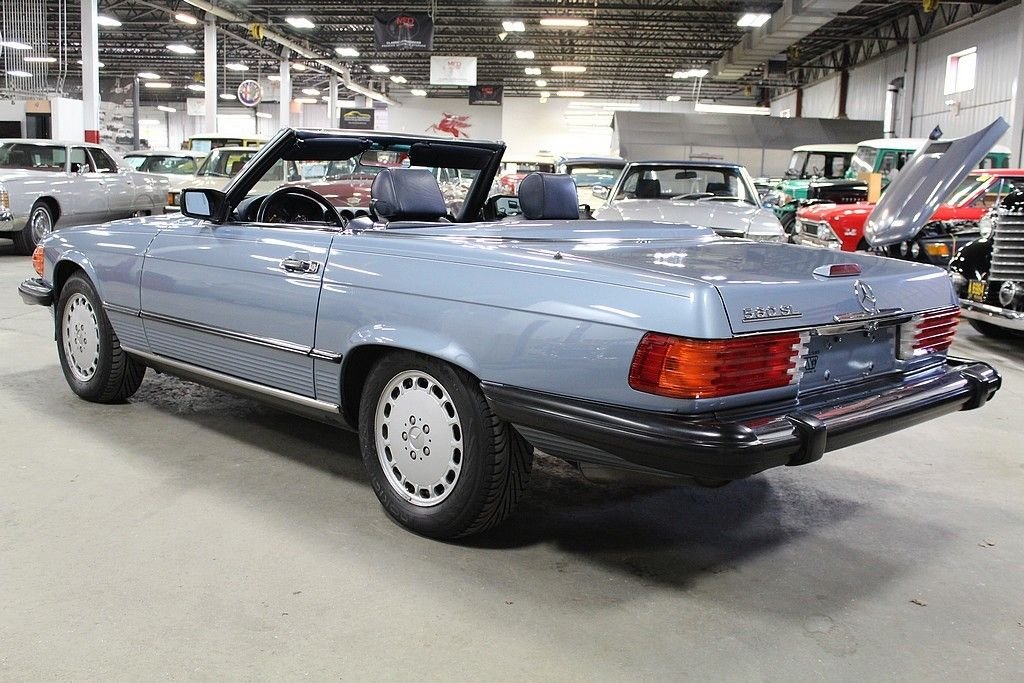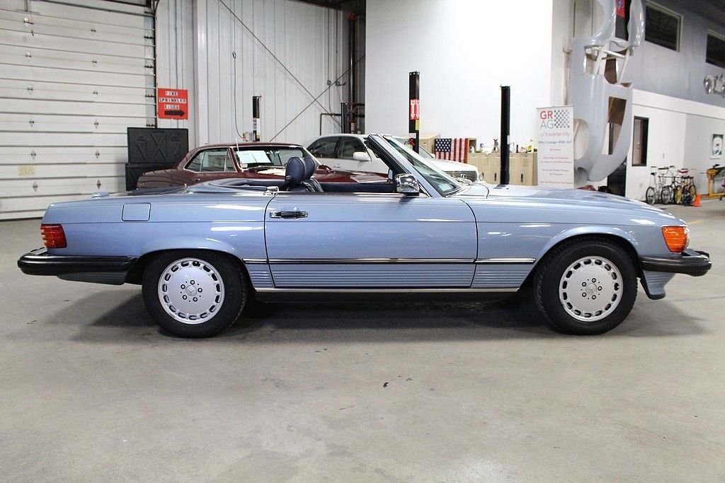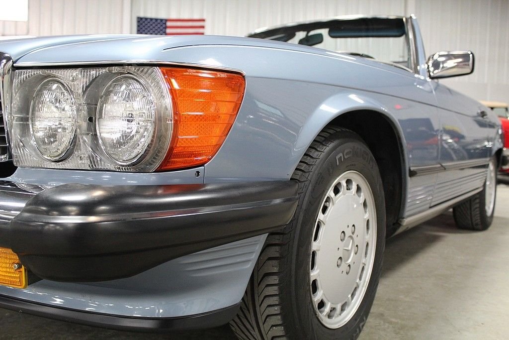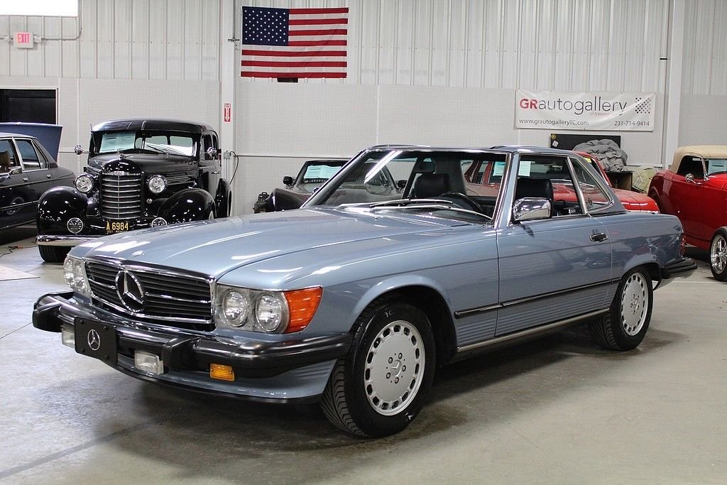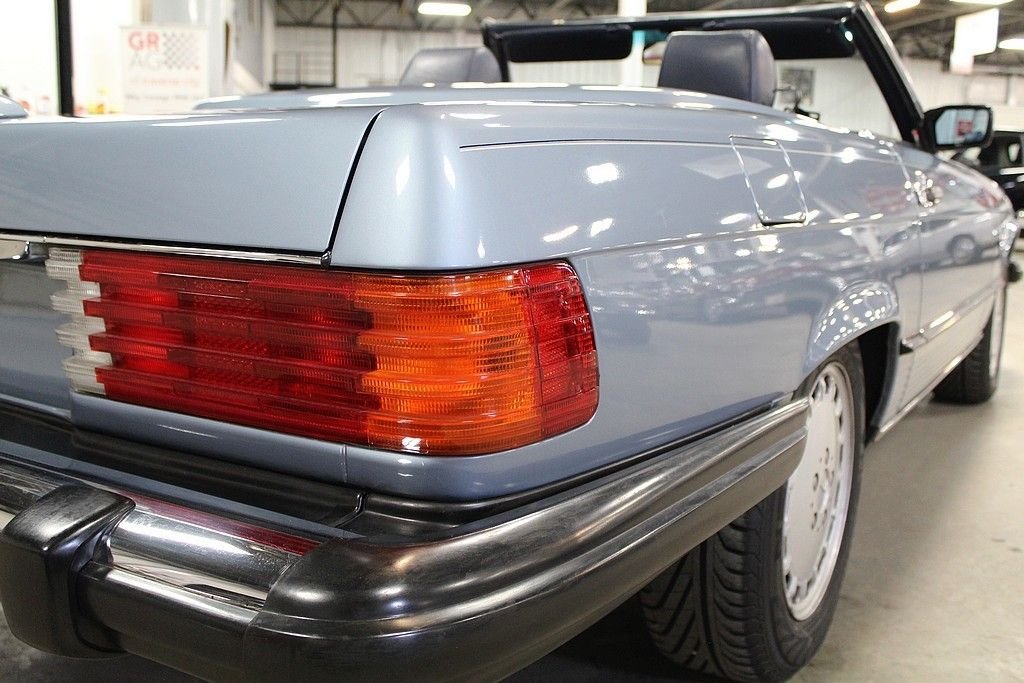 Most of us are familiar with Mercedes Benz and especially the SL class of automobiles built over six generations starting in 1954 if the form of a coupe, also knows as the Gullwing and now one of the most sought after collector cars of our time reaching prices in to the Million dollar mark. However, over the course of many body changes and engine configurations, it is with out a doubt that the 107 chassis is probably the most recognized of all time being built in a span from 1972-1989. It is also a well known fact that the last of the series cars built 1987 through early 1989 are the most coveted with plenty of power and a lot of the mechanical issues of the early cars worked out. This incredible well-preserved example is just a two-owner car from new and has traveled just 33,000 miles from new always climate-controlled garage kept. The current owner has owned this car for more than 16 years and he claims it has never seen a rain drop. It comes with service receipts, original owners manual, factory hardtop and is equipped with the optional rear seat. Both tops are like new and the beautiful diamond blue exterior is near perfect as is the very attractive interior. This car goes down the road like new and I am very confident that you will have a harder time finding a comparable at this price point. Good SL variants are increasing in value at a pretty remarkable rate. Do not miss your opportunity.
