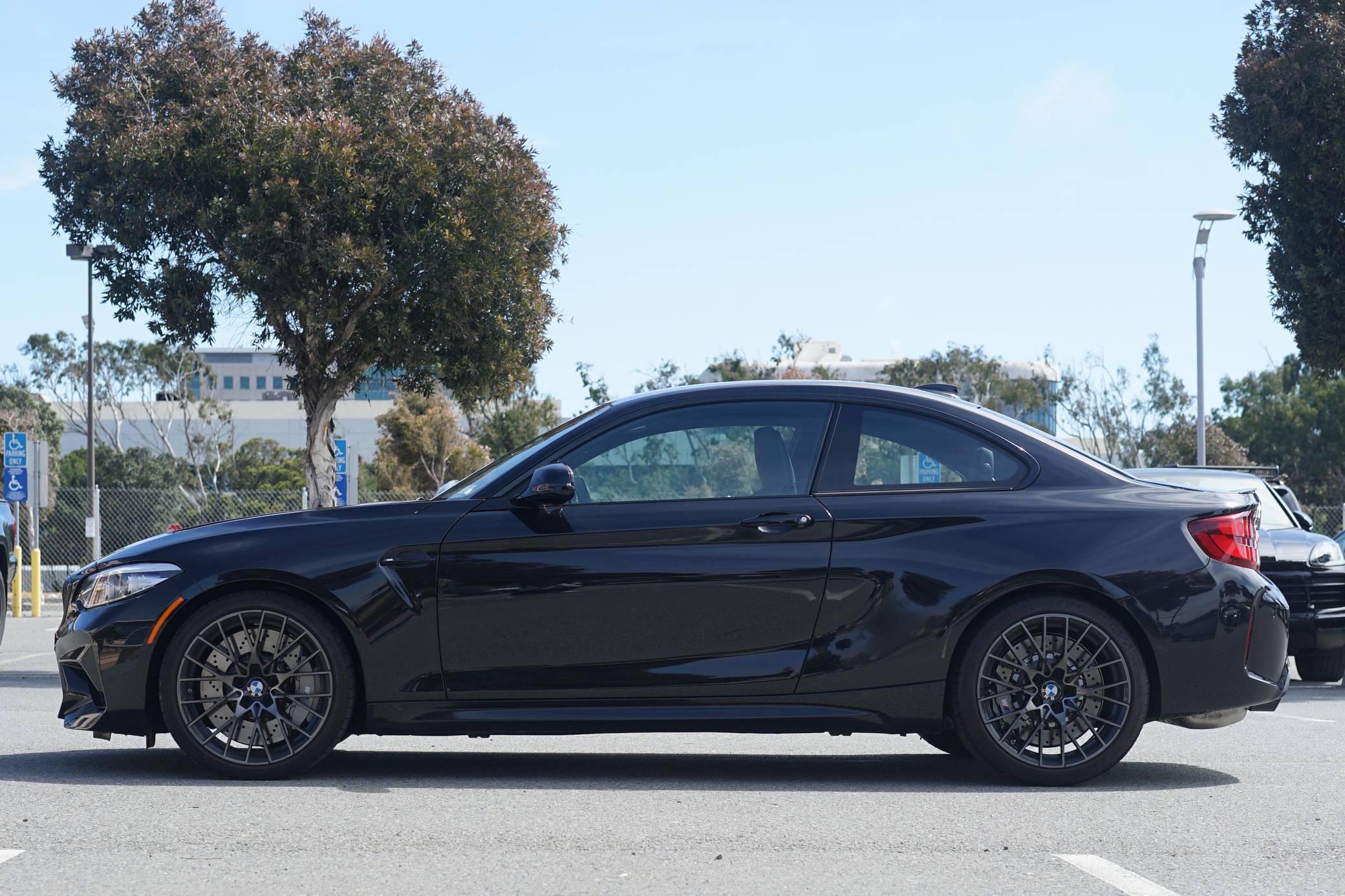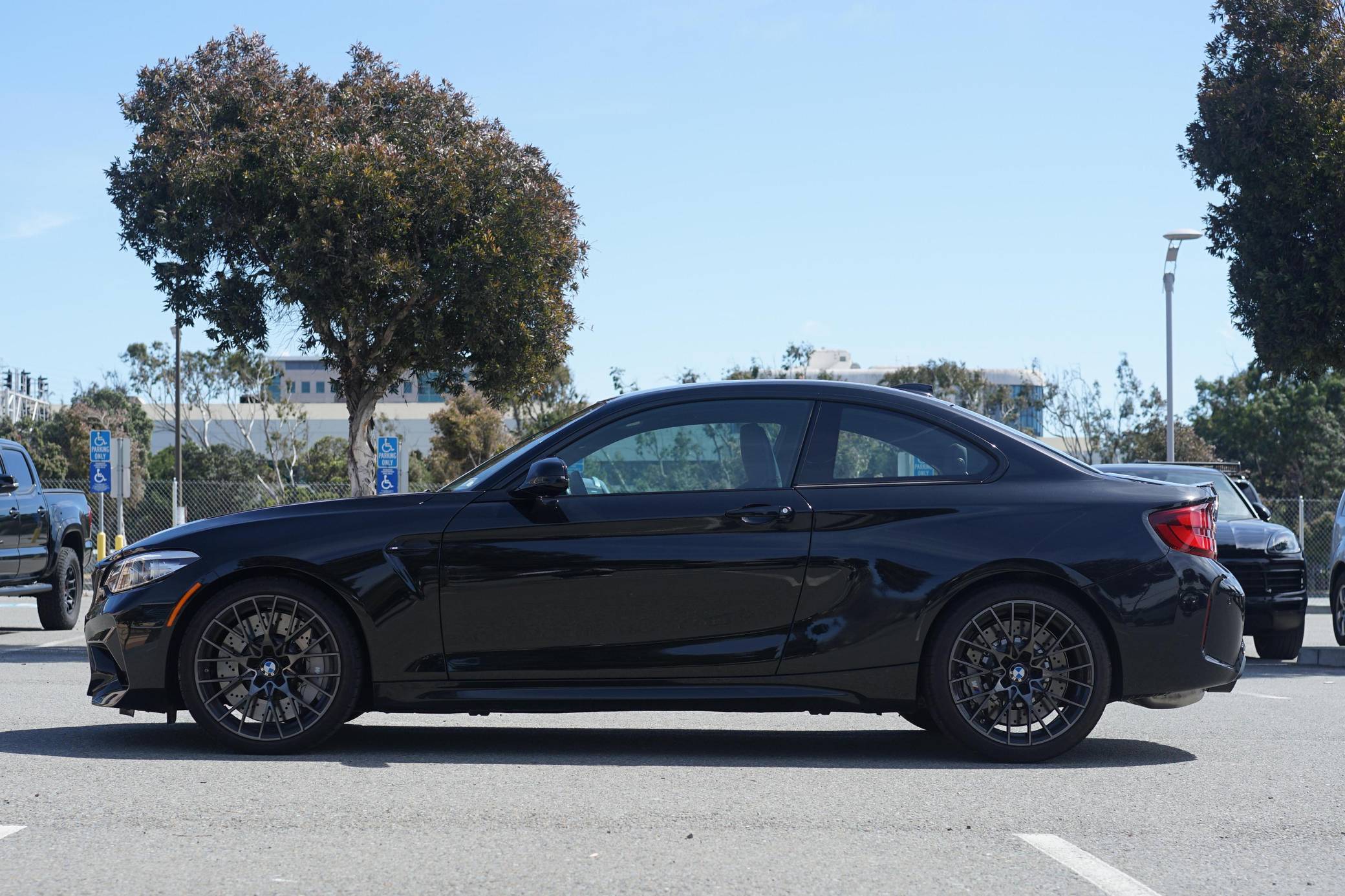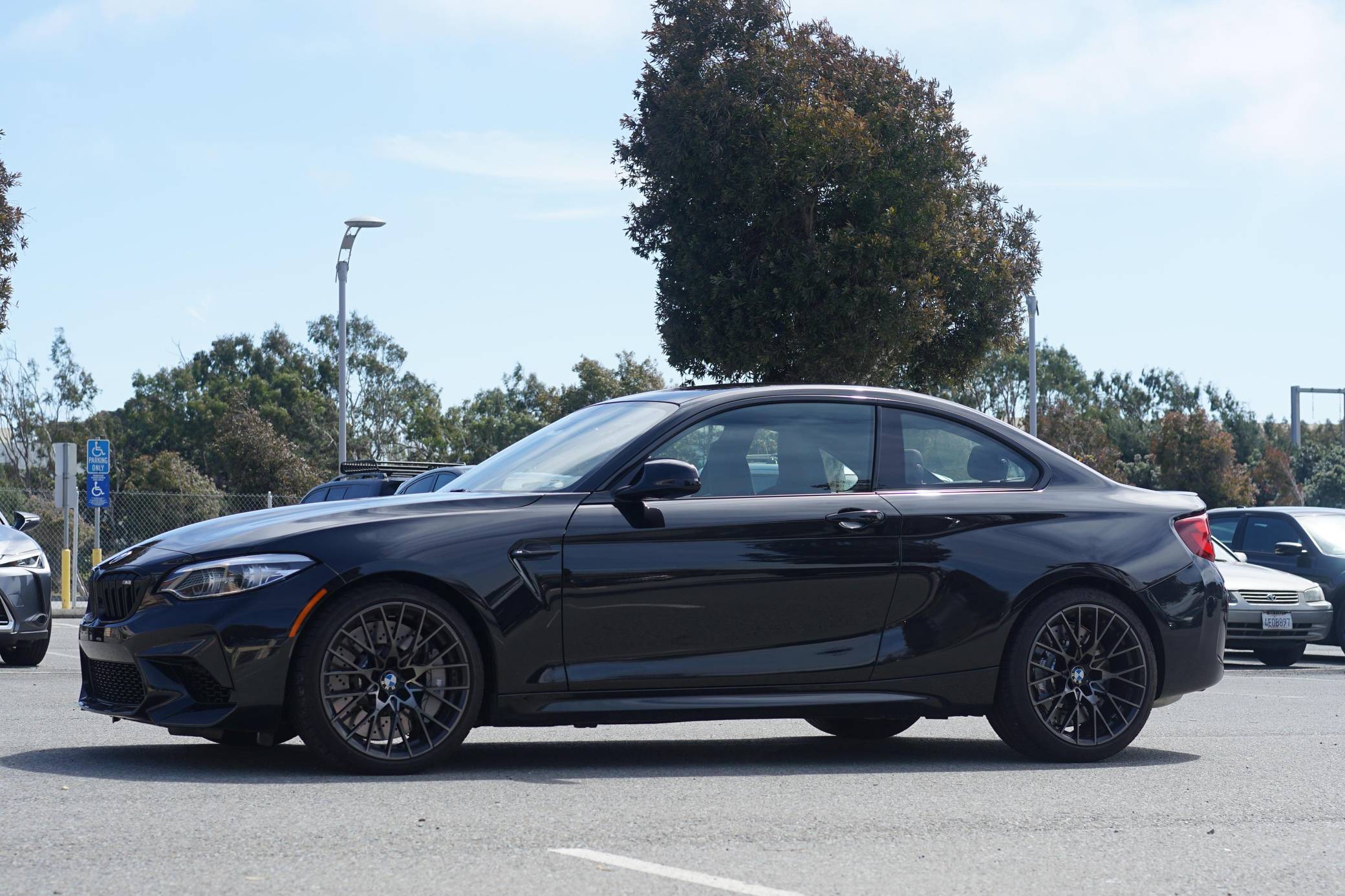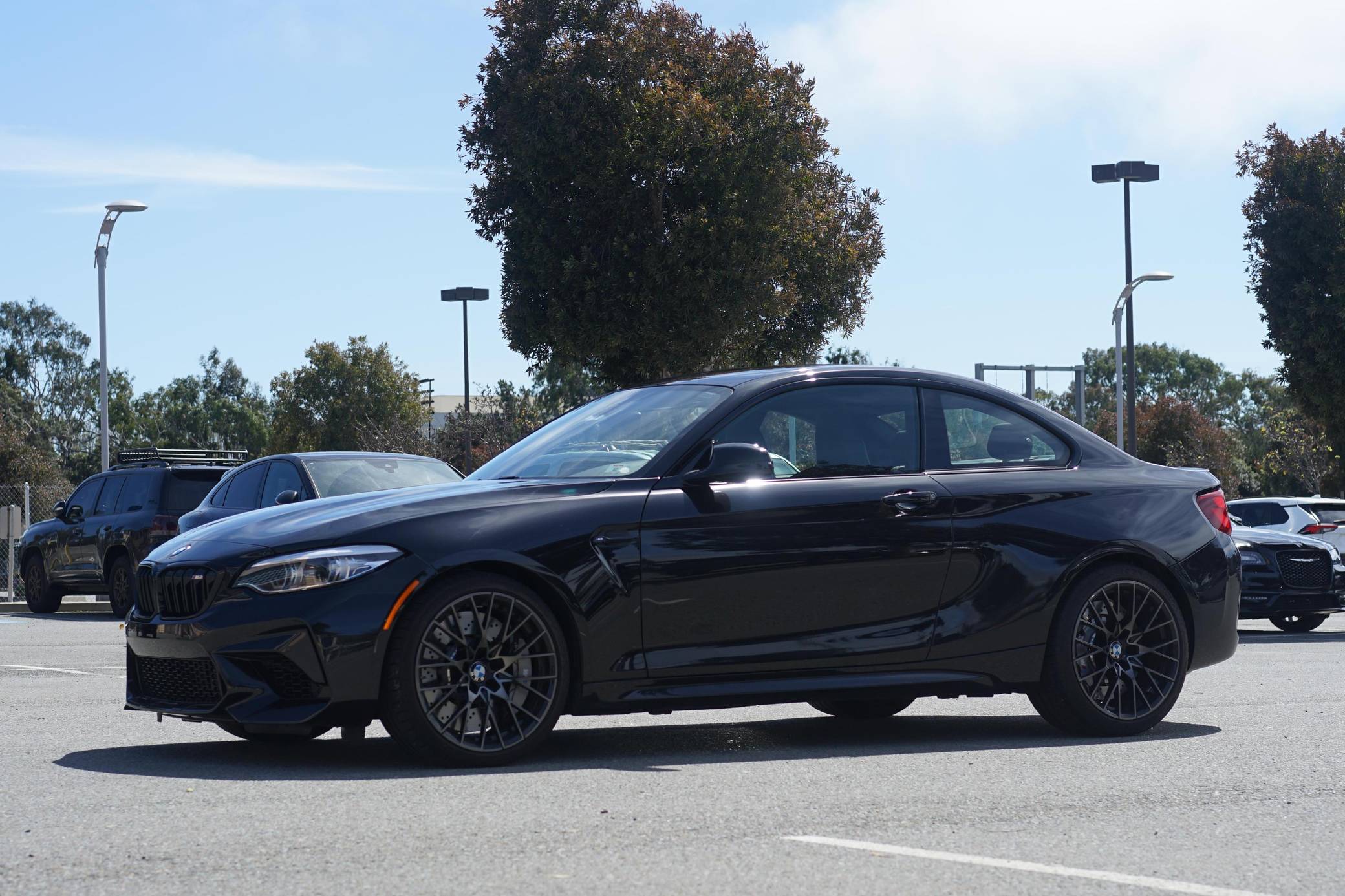 THIS. . . is a 2021 BMW M2 Competition, finished in Black Sapphire Metallic with a black interior with orange stitching. The odometer displays approximately 6,400 miles. The seller reports no modifications. BMW introduced the "F87" M2 for the 2016 model year as a high-performance evolution of the "F22"-generation 2 Series. Developed to replace the vaunted 1 Series M Coupe, it was celebrated as one of BMW M's greatest modern hits. It stood out from the standard 2 Series thanks to a more powerful engine, a revised chassis, an M-specific suspension system with aluminum components, and a more muscular-looking exterior design. BMW released the more hardcore Competition evolution of the M2 for 2019 with a more powerful engine and performance parts borrowed from the bigger M3/M4 duo. It notably received the M4 Competition's cooling system and a carbon fiber strut brace. Power comes from an "S55" twin-turbocharged 3. 0-liter inline-6, rated at 405 horsepower and 406 lb-ft of torque. Output is sent to the rear wheels via a 7-speed M double-clutch automatic transmission.