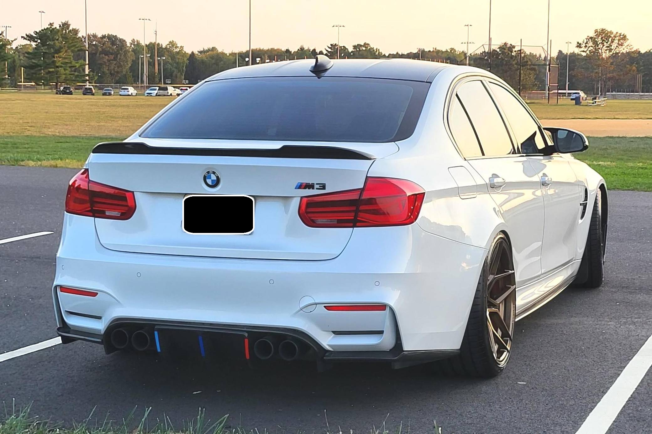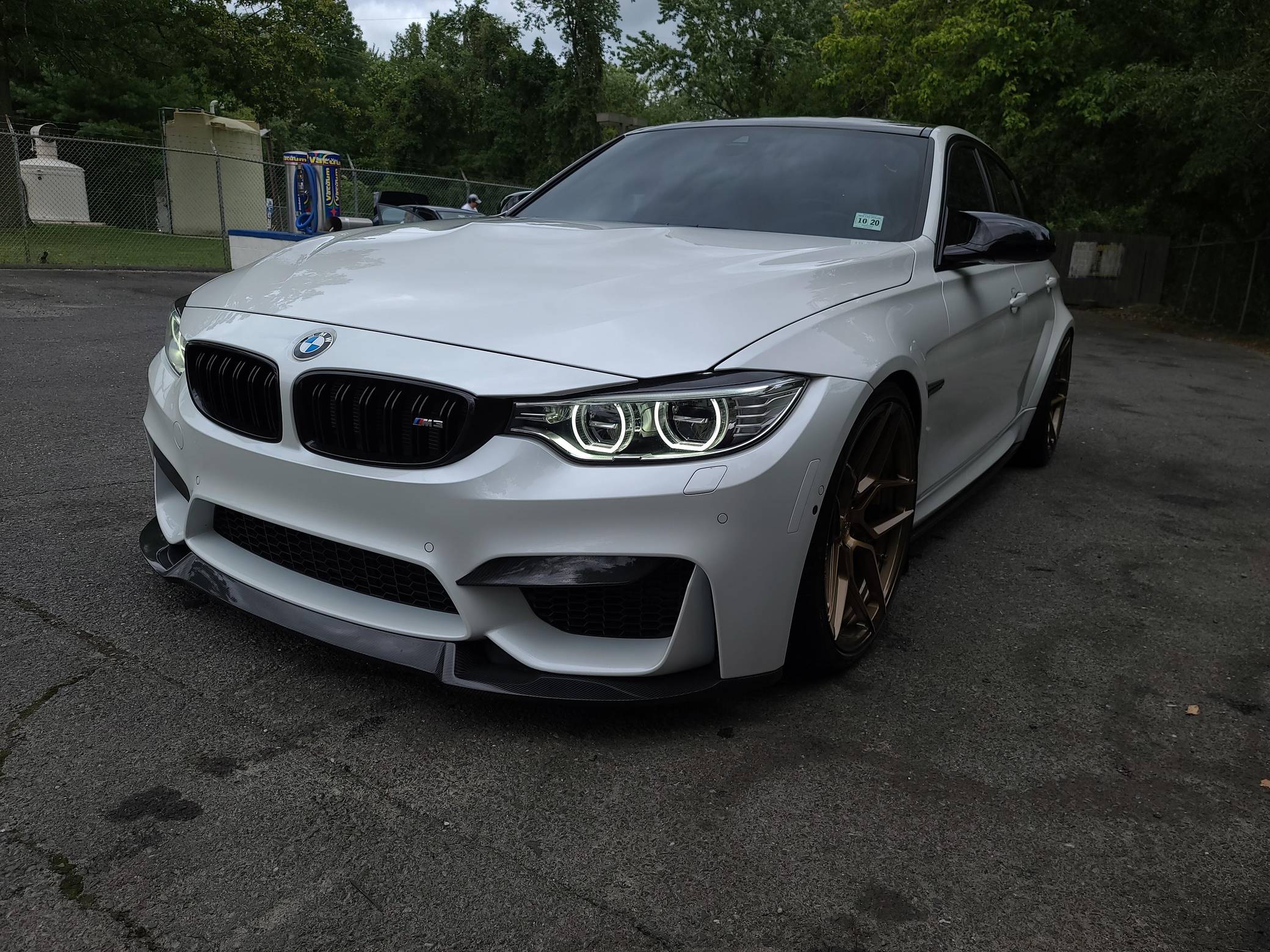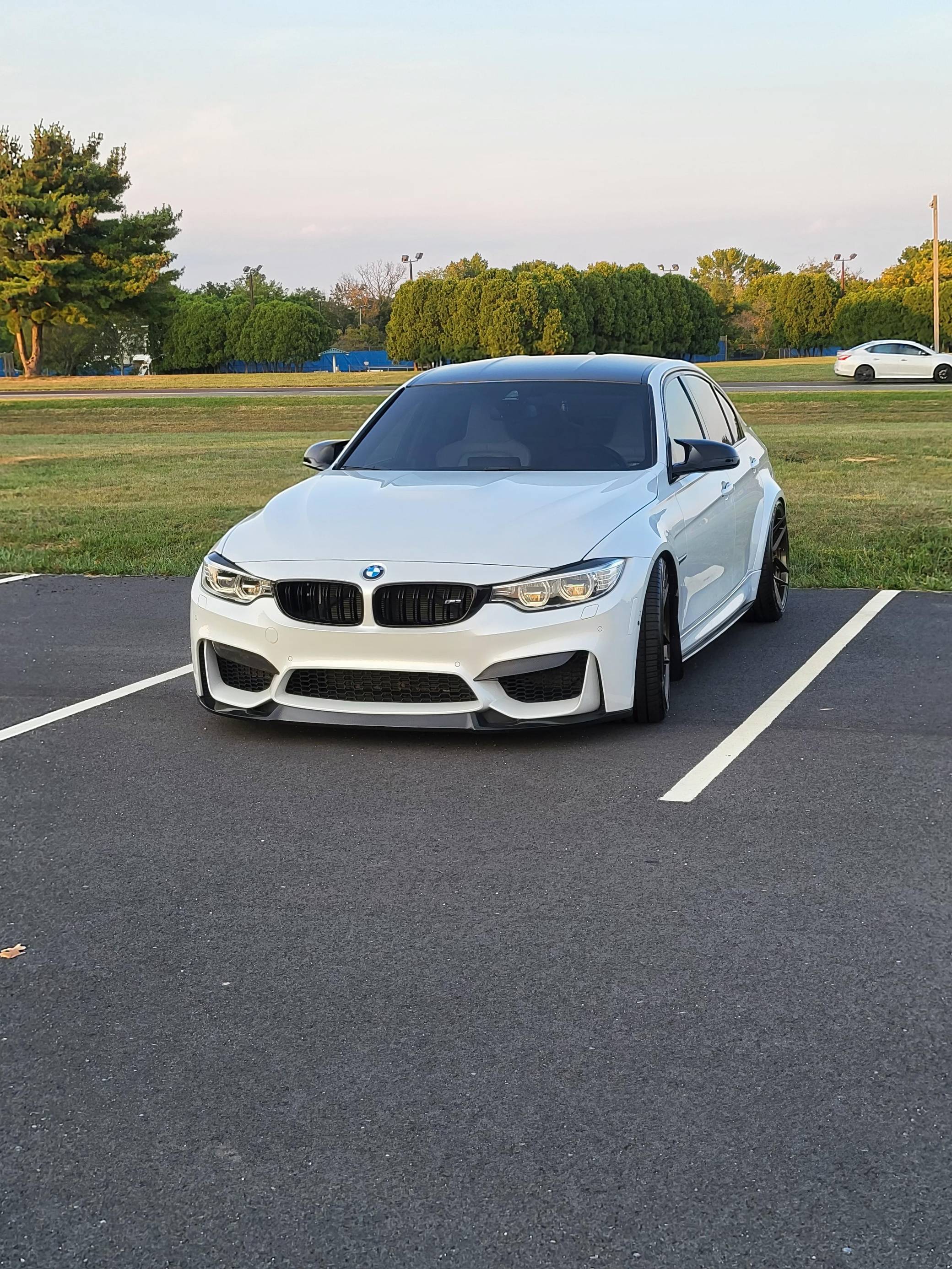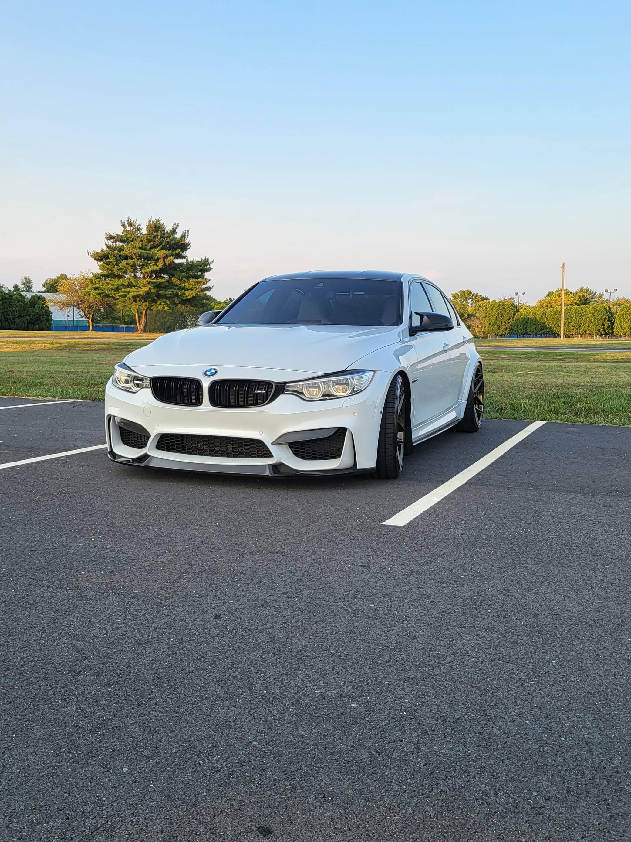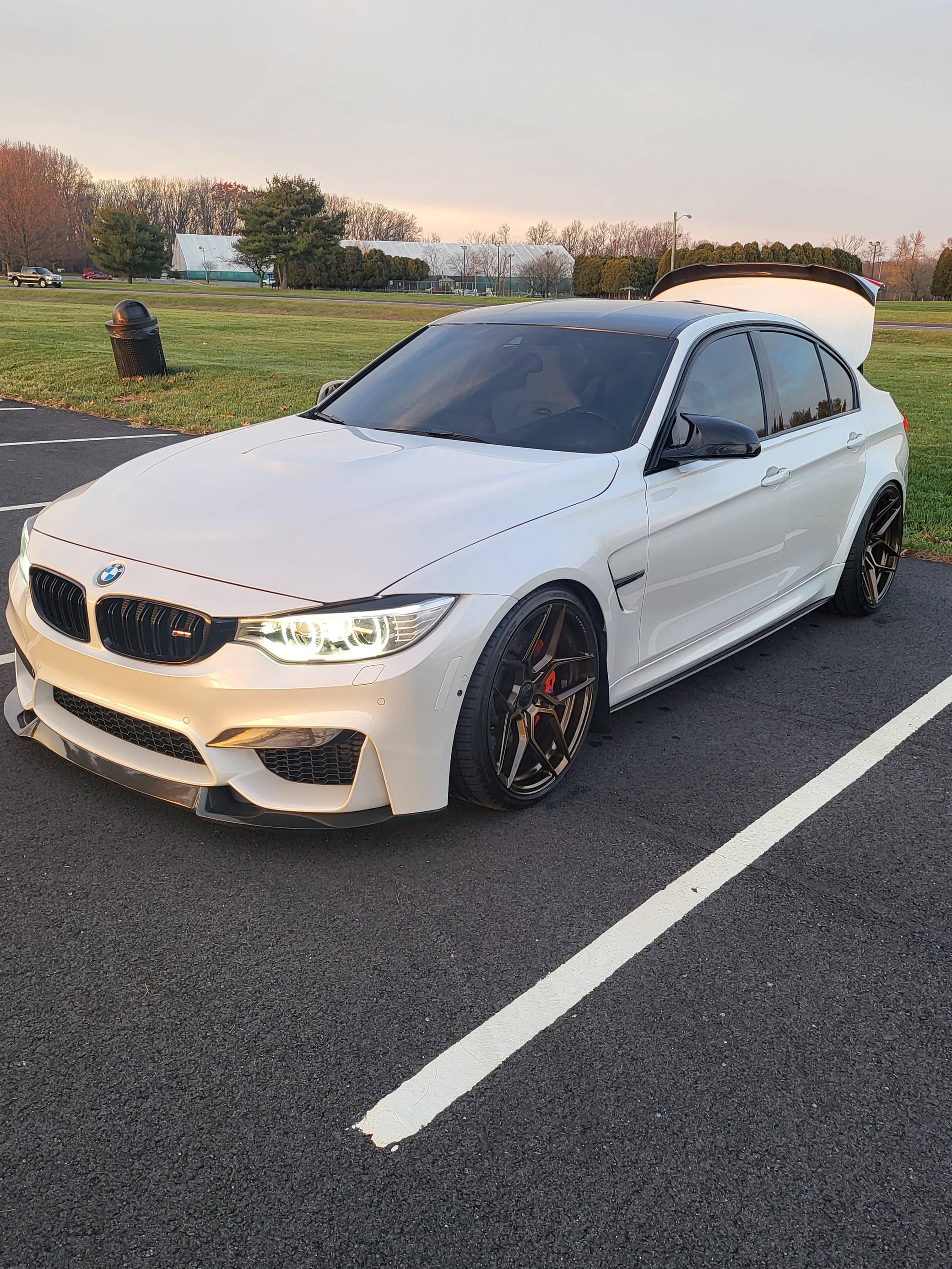 THIS… is a 2016 BMW M3, finished in Mineral White Metallic with a Silverstone interior. This M3 features the desirable 6-speed manual transmission. A build sheet is provided in the photo gallery, and a partial list of notable equipment includes the Executive Package, a carbon fiber roof panel, Merino leather upholstery, heated front and rear seats, a 360-degree camera system, and more as detailed below. Modifications reported by the seller include Rohana RFX11 bronze wheels with Falken Azenis FK510 tires, carbon fiber exterior trim, H&R lowering springs, and a red-painted engine cover. BMW's fifth-generation M3 went on sale for the 2015 model year. Based on the "F30" 3 Series, and called "F80" internally, it swapped its predecessor's V8 for a turbocharged straight-6 and picked up more horsepower and a lot more torque along the way. It wore a muscular-looking exterior design, and M added a carbon fiber roof panel to keep weight in check. Production ended in 2018. Power comes from an "S55" 3. 0-liter twin-turbocharged inline-6, rated at 425 horsepower and 406 lb-ft of torque. Output is sent to the rear wheels via a 6-speed manual transmission.