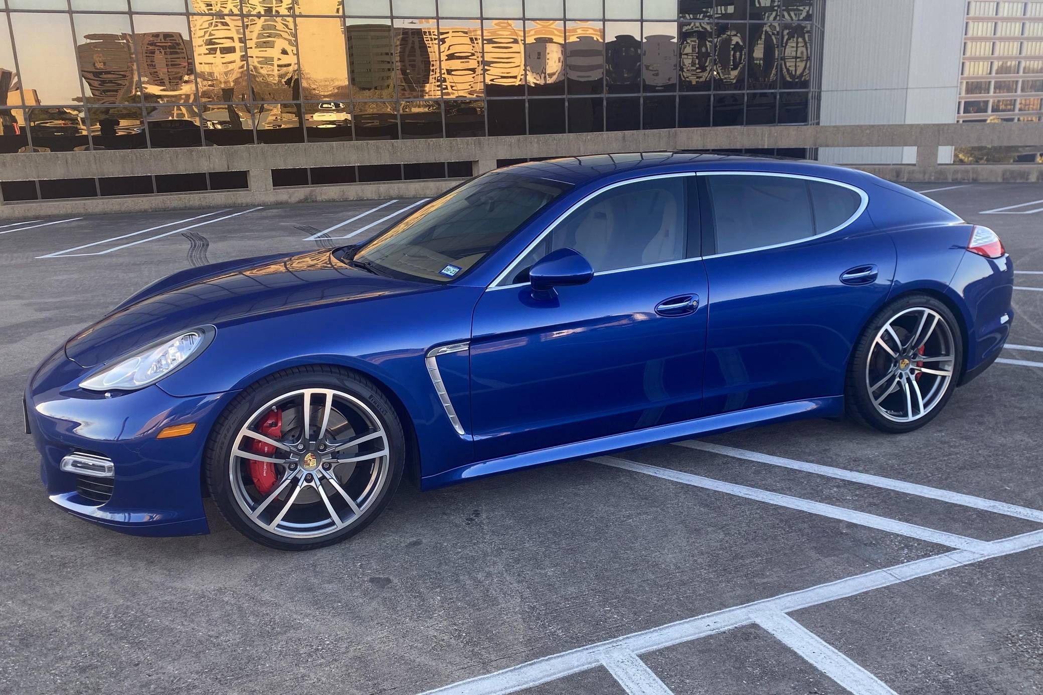 THIS. . . is a 2011 Porsche Panamera Turbo, finished in Aqua Blue Metallic with a Cognac and Cedar interior. This Porsche's odometer displays approximately 24,000 miles. It came equipped with Sport Package and Sport Chrono Package Plus, adaptive air suspension with PDCC, sport exhaust system, bi-xenon headlights, rear wiper, two-tone leather upholstery, adaptive front sport seats, heated front and rear seats, rear seat entertainment, and a Bose surround sound system, among others listed below. The sole modification reported by the seller is 21-inch 911 Turbo-style wheels. After several false starts, Porsche entered the sedan segment for the first time when it launched the original Panamera for 2010. While its design and its very existence were controversial, the Panamera ultimately drew praise as the sportiest model in its segment and it achieved this distinction without sacrificing comfort or luxury. The Turbo model slotted near the top of the line-up when it arrived for 2010. Power comes from a 4. 8-liter twin-turbocharged V8, rated at 500 horsepower and 516 lb-ft of torque. It spins the rear wheels via a 7-speed automatic transmission.