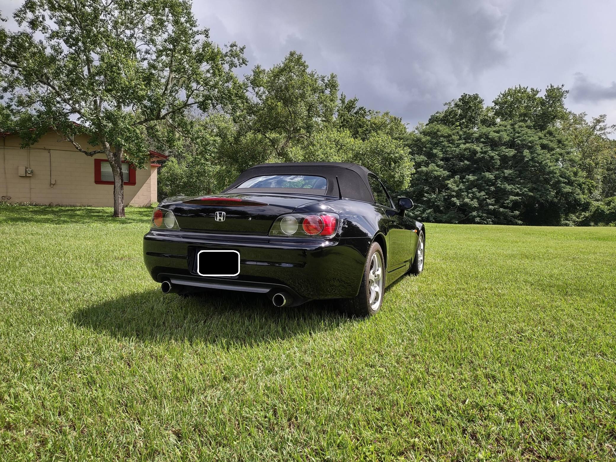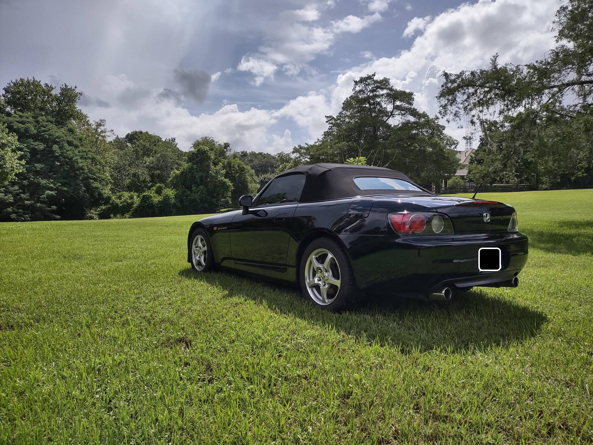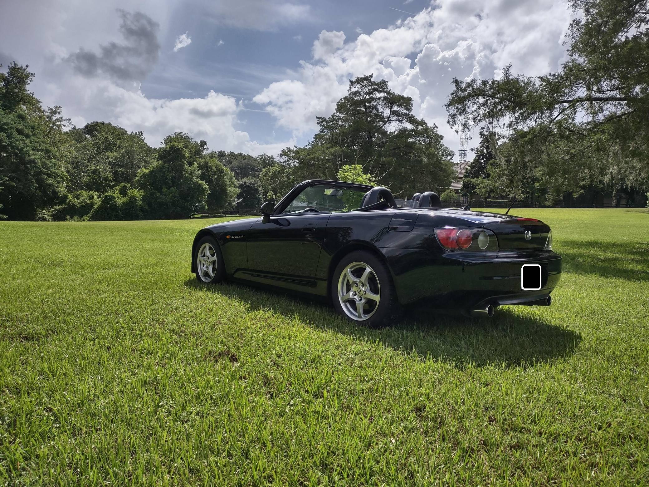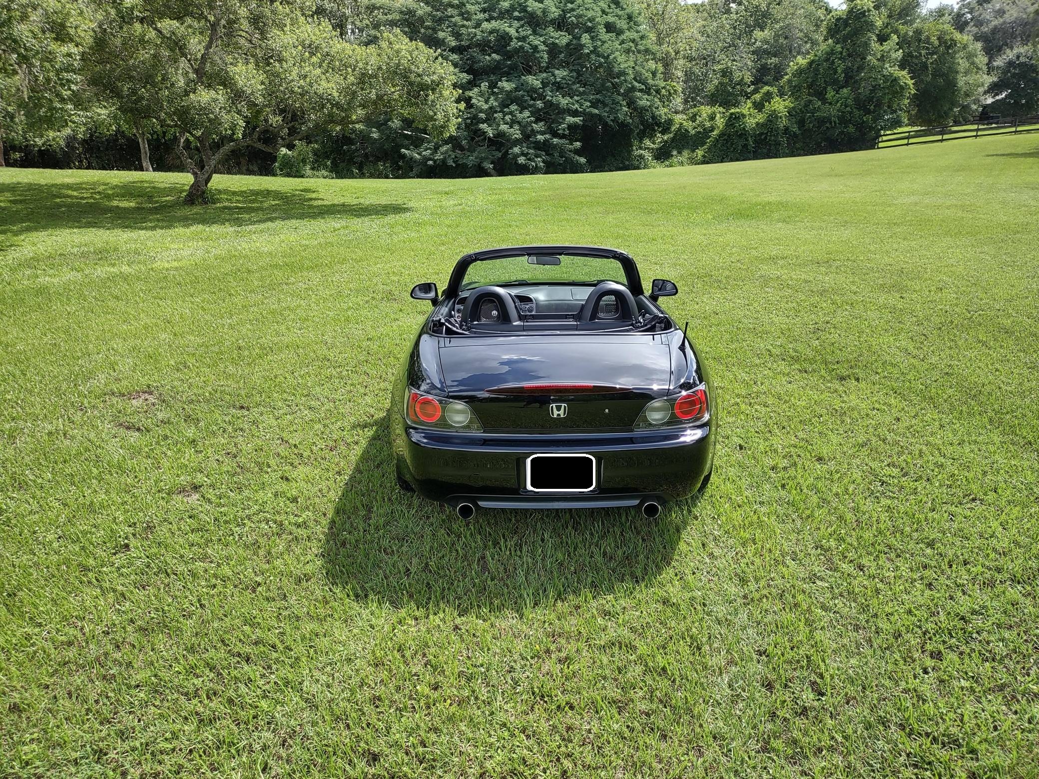 2002 Honda S2000, finished in Berlina Black with a black interior. Factory equipment includes 16-inch alloy wheels, a limited-slip differential, a power-retractable soft top, leather upholstery, an aluminum shift knob and pedals, air conditioning, cruise control, and a CD player. Modifications are limited to tinted windows. The Honda S2000 (known as "AP1" internally) was introduced for the 2000 model year; its model designation references the engine's 2000cc displacement, and its per-liter output was the highest of any naturally aspirated regular-production car. The AP1 also boasted 50/50 weight distribution and independently-sprung, double-wishbone suspension at each corner. Power comes from a 2. 0-liter inline-4 with VTEC technology, rated at 240 horsepower and 153 lb-ft of torque. Output is sent to the rear wheels via a 6-speed manual transmission.