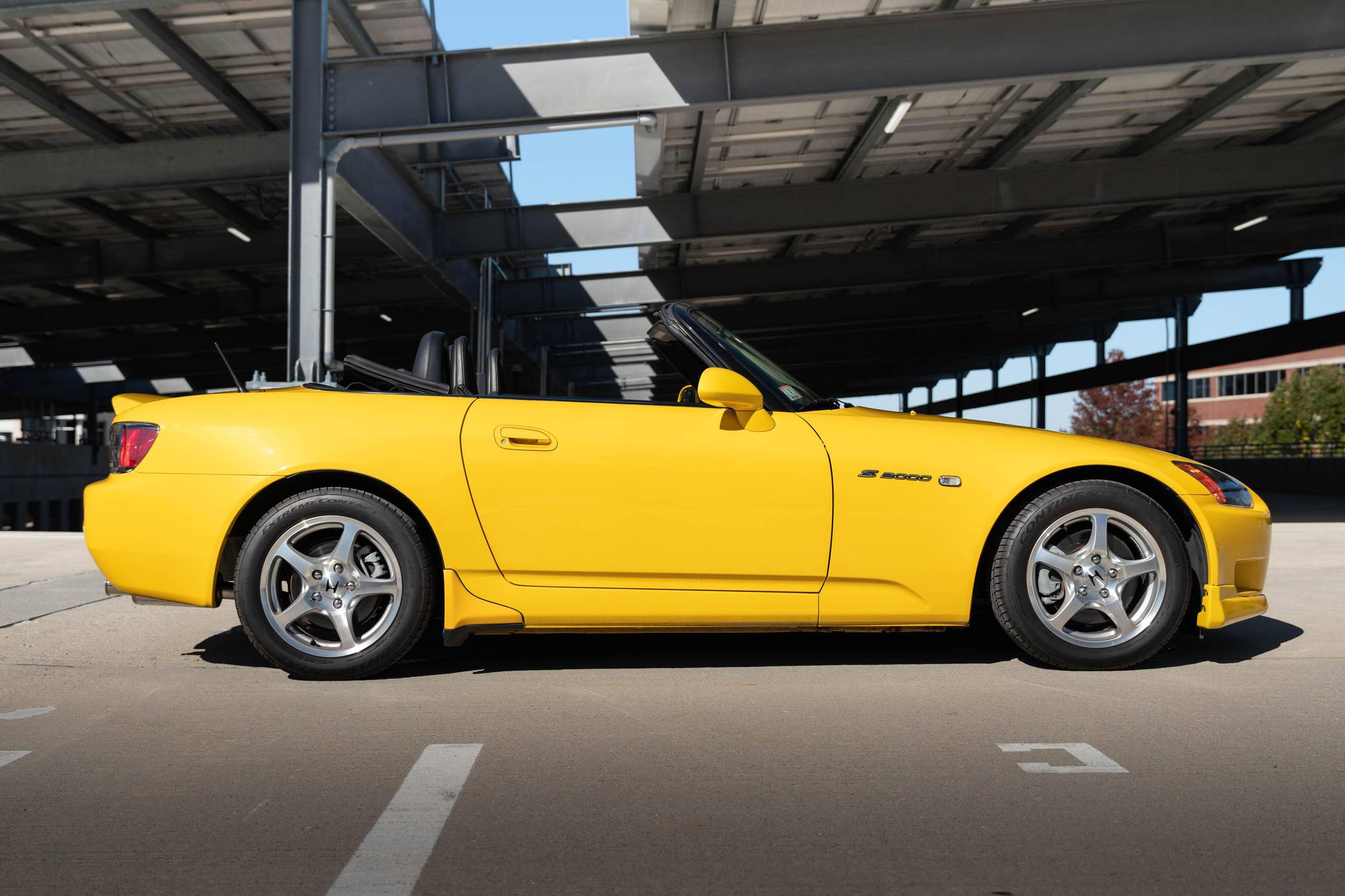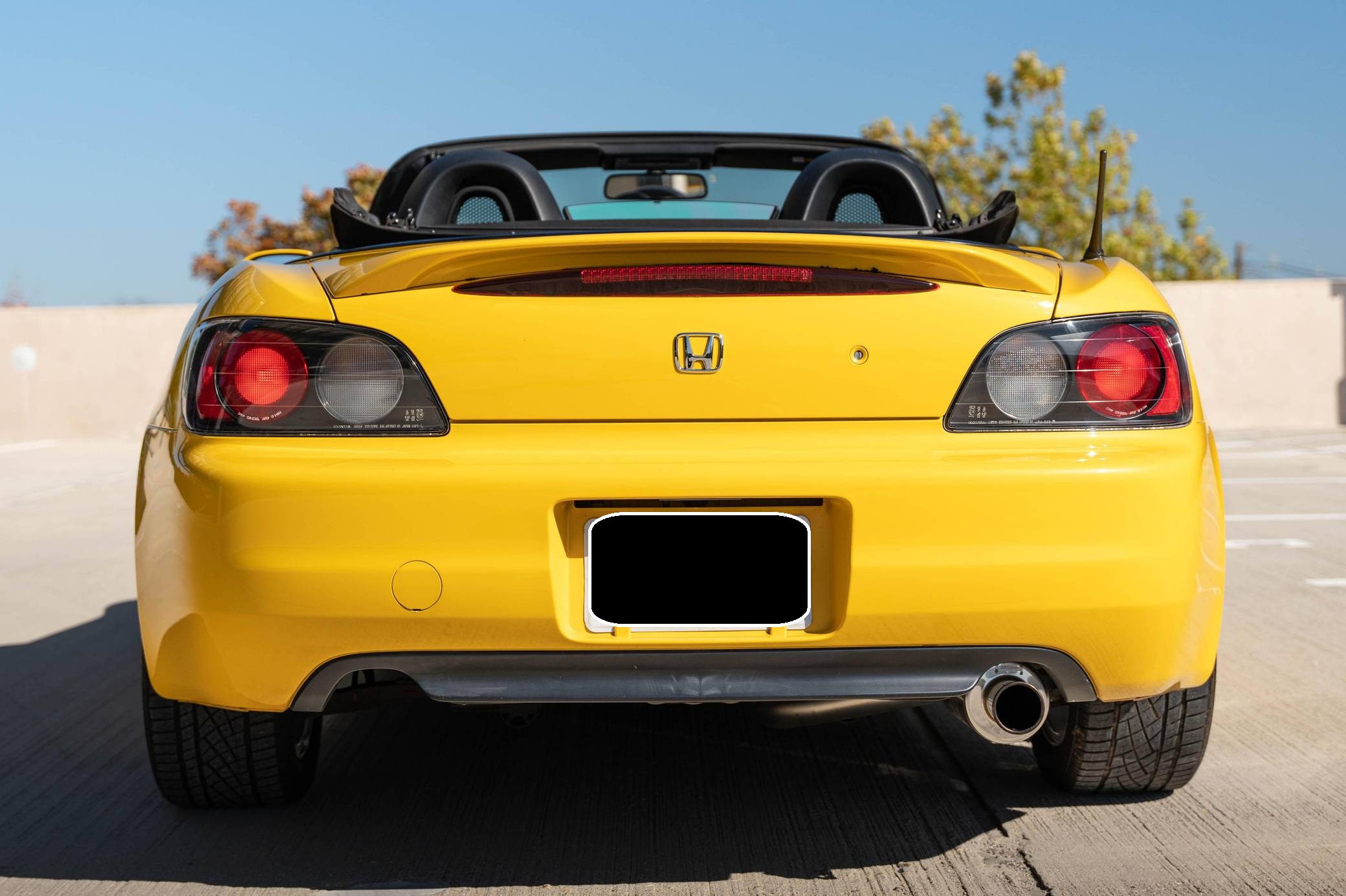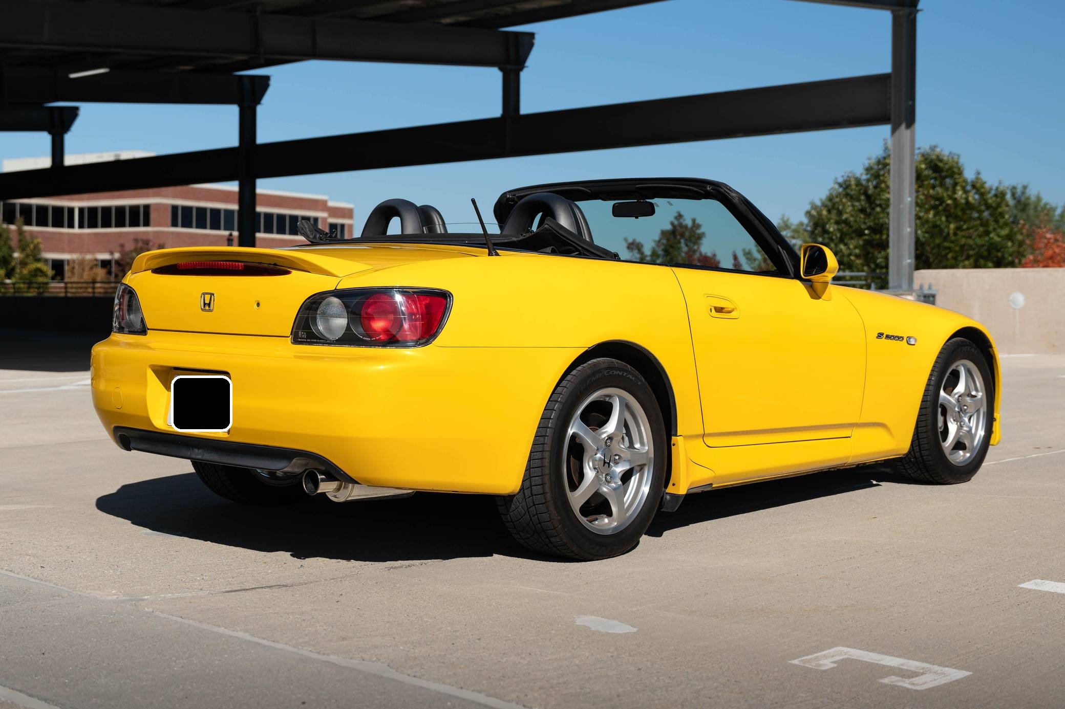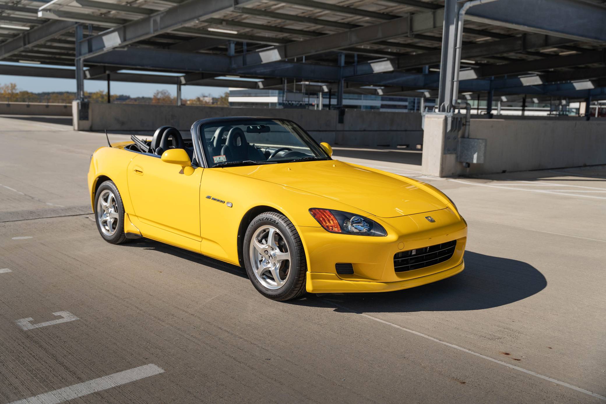 THIS. . . is a 2001 Honda S2000, finished in Spa Yellow with a black soft top and a black interior. It also shows that it was kept by its original owner until 2021. The only modifications reported by the seller are a Spoon N1 exhaust system with the catalytic converter removed, an aftermarket shift knob, and a factory aero kit. The Honda S2000 (known as "AP1" internally) was introduced for the 2000 model year; its model designation references the engine's 2000cc displacement, and its per-liter output was the highest of any naturally aspirated regular-production car. The AP1 also boasted 50/50 weight distribution and independently-sprung, double-wishbone suspension at each corner. Power comes from a 2. 0-liter inline-4 with VTEC technology, which revs to 9,000 rpm and produces 240 horsepower and 153 lb-ft of torque. Output is sent to the rear wheels via a 6-speed manual transmission.