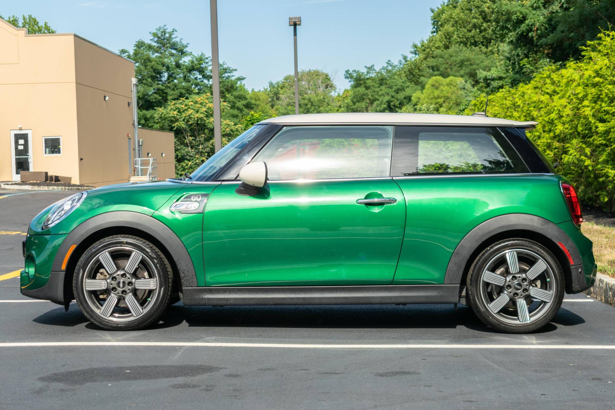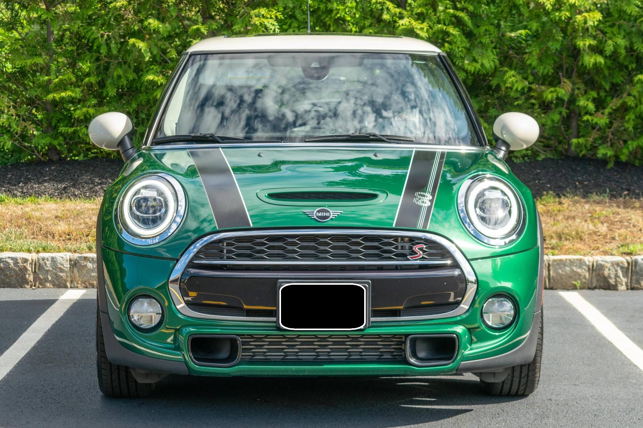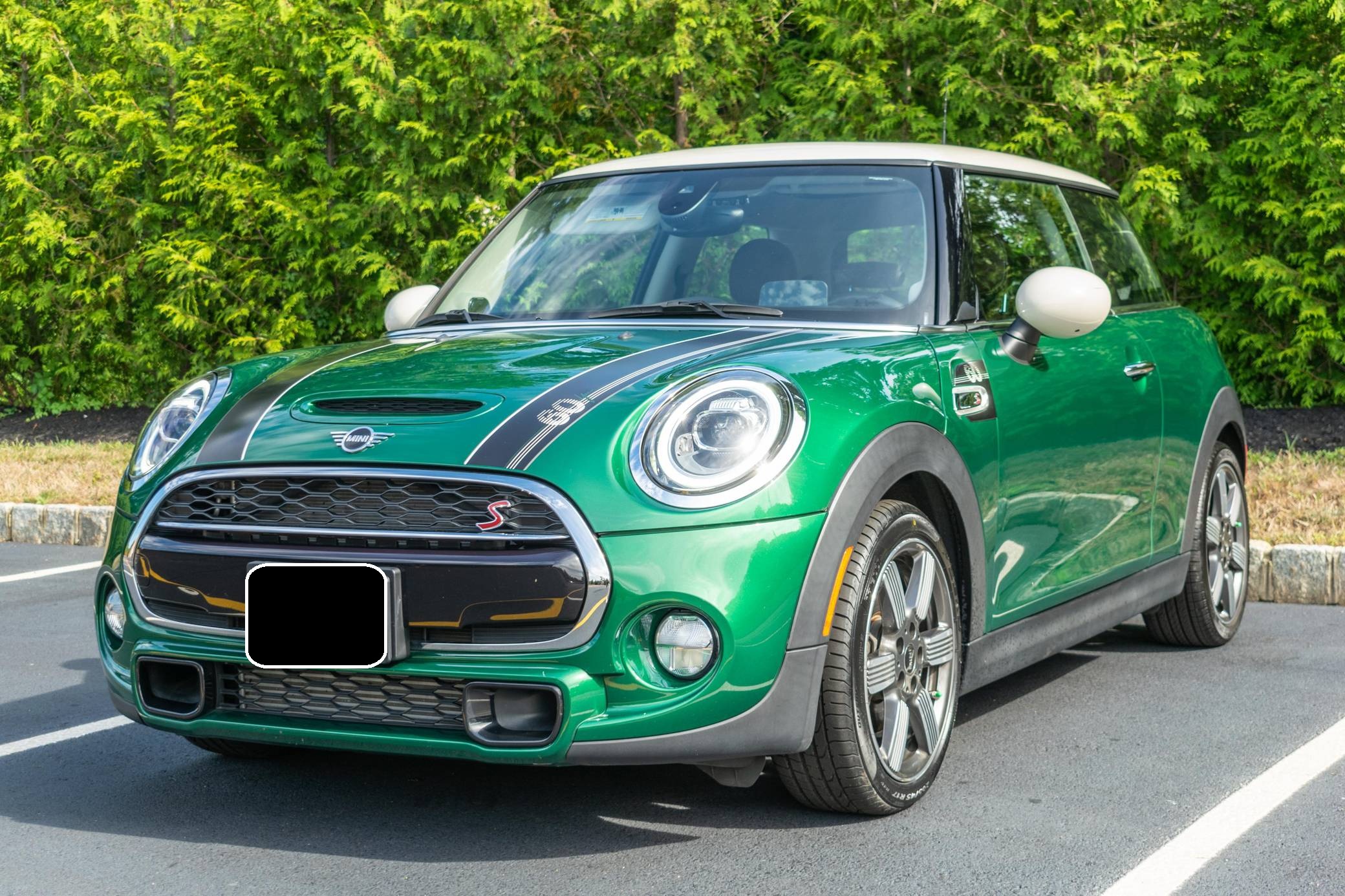 2019 Mini Cooper S, finished in British Racing Green IV Metallic with a Maroon interior. This hatchback's odometer displays about 7,300 miles. Factory equipment includes the 60 Years, Mini 60 Years Edition, and Touchscreen Navigation packages, leather upholstery, green and white stitching, front sport seats, ambient lighting, and rear parking sensors. The seller reports no modifications. Mini's retro-styled Hardtop grew up as it entered its third generation for 2014. Called F56 internally, it was bigger than its predecessor in every dimension and correspondingly more spacious inside. It gained new engines across the board, and it remains available in two- and four-door configurations. Power comes from a 2. 0-liter turbocharged 4-cylinder engine, rated at 189 horsepower and 207 lb-ft of torque. It spins the front wheels via a 6-speed automatic transmission.