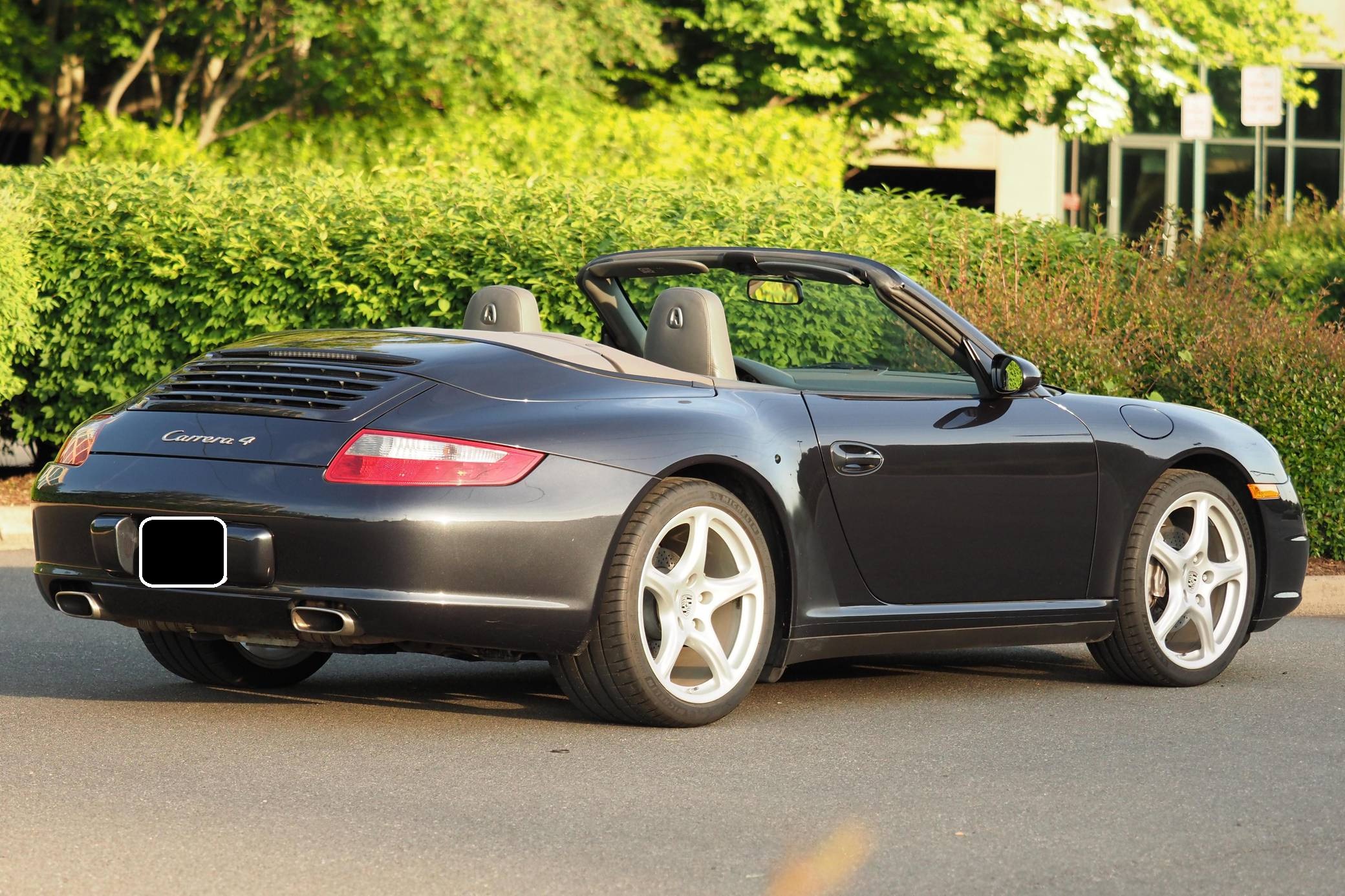 2006 Porsche 911 Carrera 4 Cabriolet, finished in Atlas Grey Metallic with a Stone Grey soft top and Stone Grey interior. This 911 features the desirable 6-speed manual transmission. Factory equipment includes 19-inch Carrera Classic wheels, bi-xenon headlights, a sport shifter, heated front seats, and a Bose sound system. The seller reports no modifications. The 997-generation 911 launched for 2005 with a more powerful flat-6 than the outgoing model, oval headlights, and an upgraded interior. By combining retro and modern design cues in a water-cooled 911, it was instantly beloved among enthusiasts — and it presents a compelling package for those looking for a smaller and lighter 911 from the modern era. Power comes from a 3. 6-liter flat-6 rated at 325 horsepower and 275 lb-ft of torque. Output is sent to all four wheels through a 6-speed manual transmission.