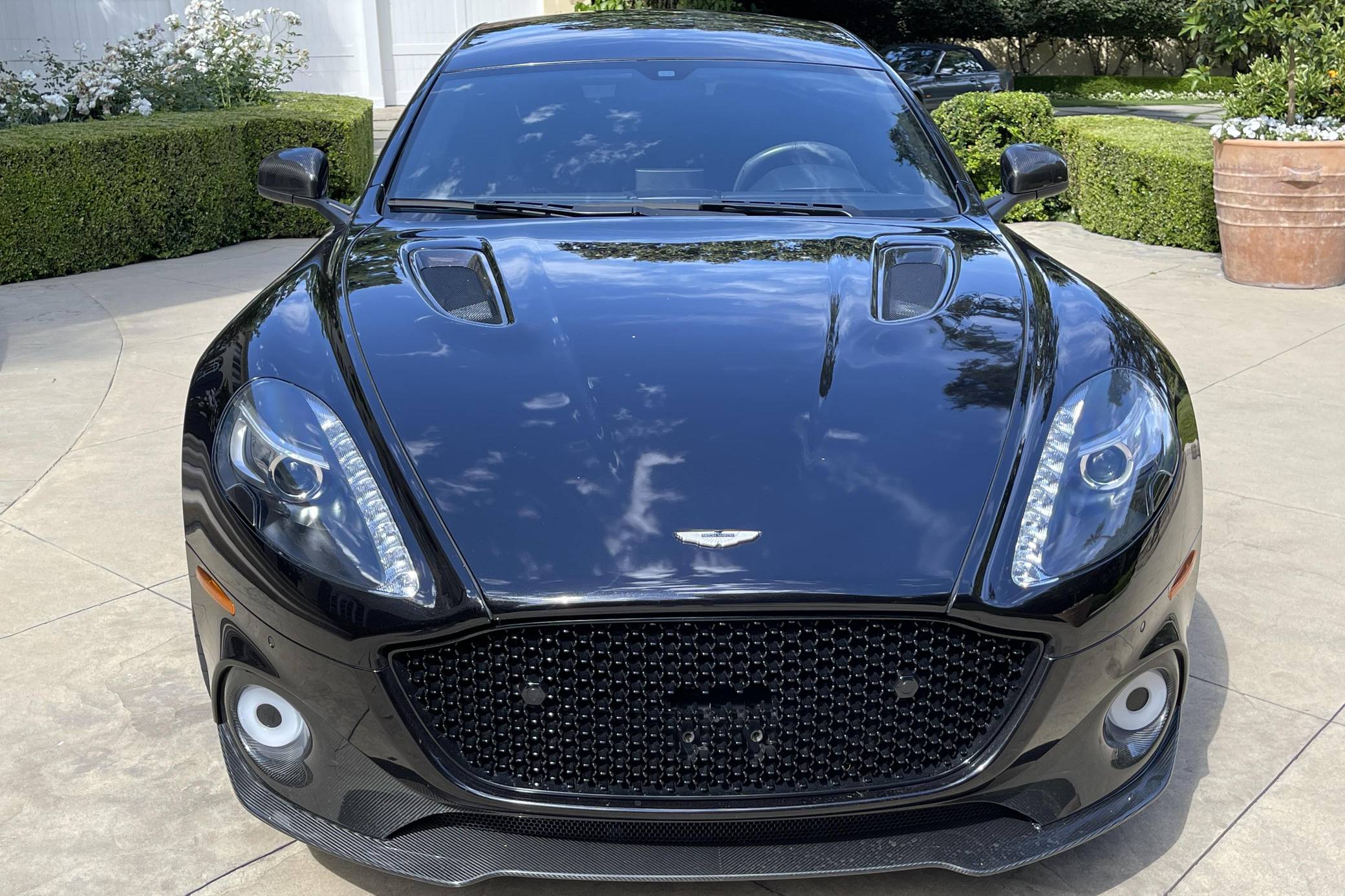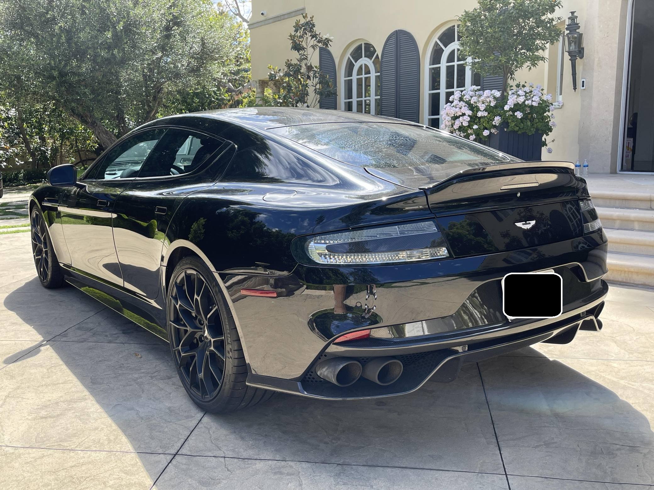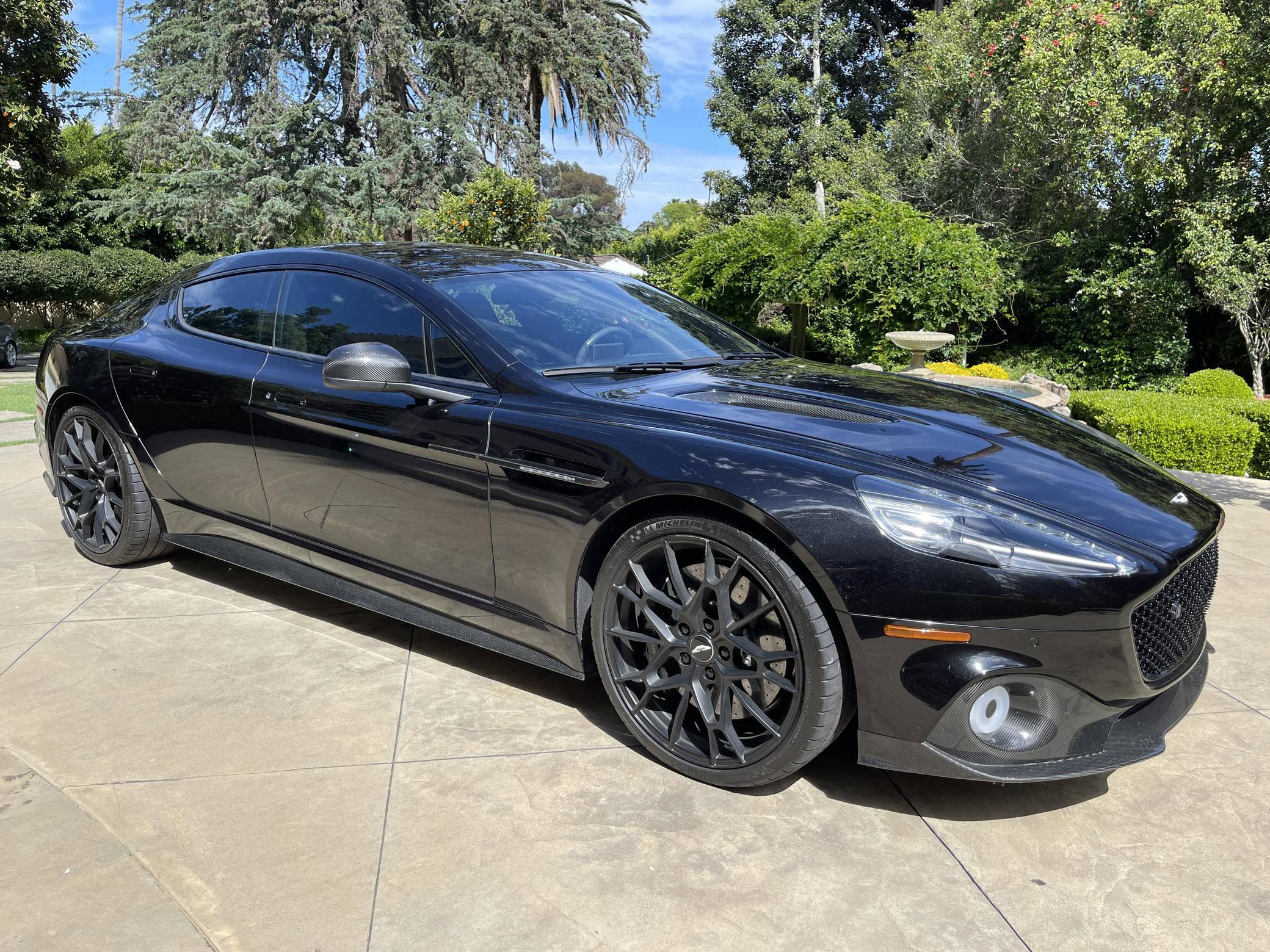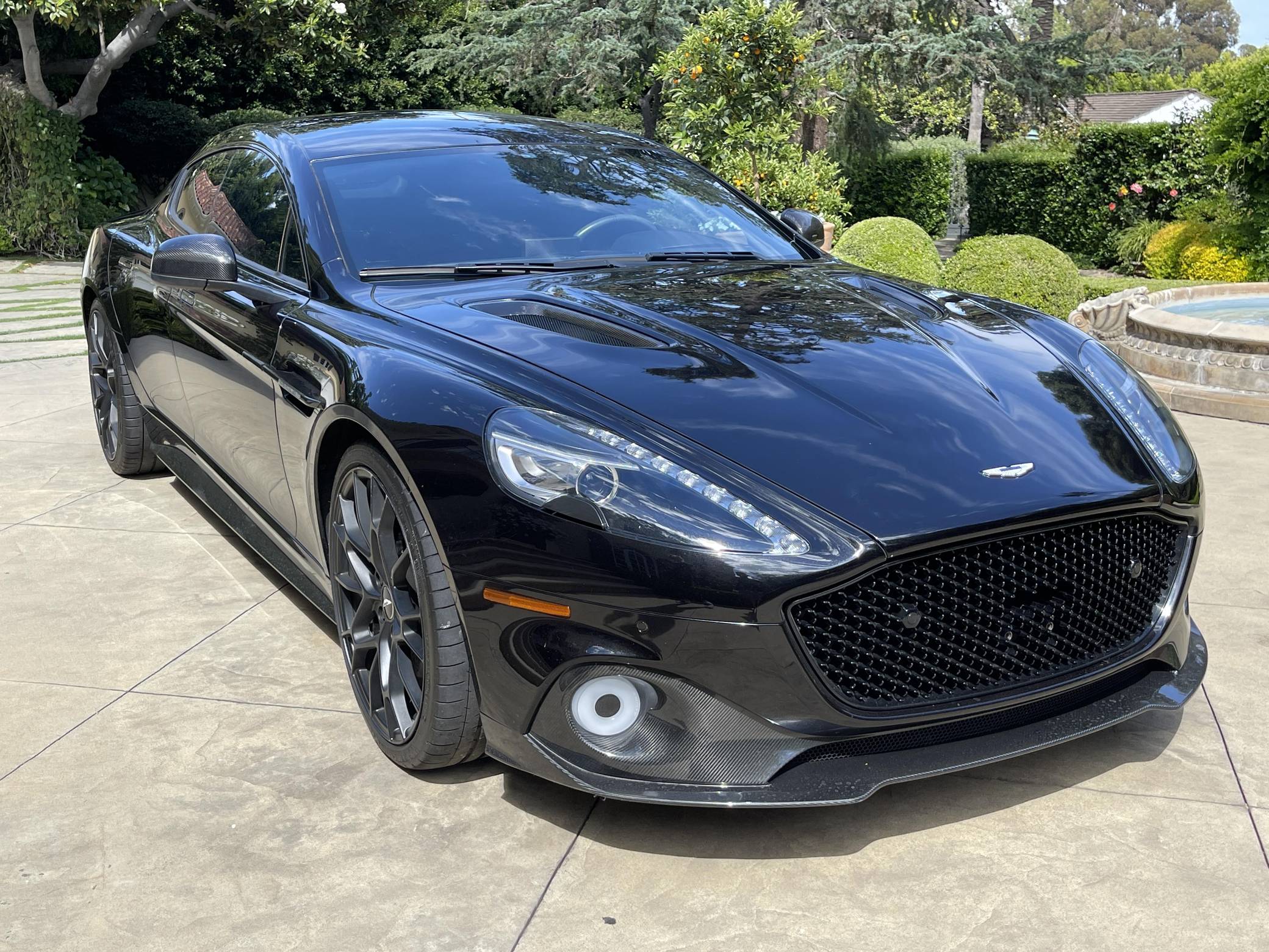 2019 Aston Martin Rapide AMR, finished in Onyx Black with an Obsidian Black interior. This Rapide AMR is one of just 210 final edition models of Aston Martin’s four-door supercar produced worldwide. Its odometer currently displays approximately 4,100 miles. It comes equipped with the Exterior Carbon package, 21-inch forged wheels, carbon ceramic brakes, 3-stage adaptive dampers, Bridge of Weir leather/Alcantara upholstery, an One77-style steering wheel, heated front seats, navigation system, Bang & Olufsen BeoSound audio system, and more as detailed below. Modifications reported by the seller are limited to tinted windows. Based on the DB9, the Aston Martin Rapide is the spiritual successor of the Lagonda Rapide of the 1960s. It's a practical four-seat liftback sedan with the design, luxury, and performance of a traditional Aston Martin. Aston Martin introduced the Rapide AMR for 2019 in limited numbers to celebrate the end of its production run. It features a more powerful V12 engine, recalibrated suspension, and a more aggressive aero kit out of carbon fiber, allowing it to reach an impressive 205 mph top speed. Power comes from a 5. 9-liter V12, rated at 580 horsepower and 465 lb-ft of torque. Output is sent to the rear wheels via an 8-speed automatic transmission.