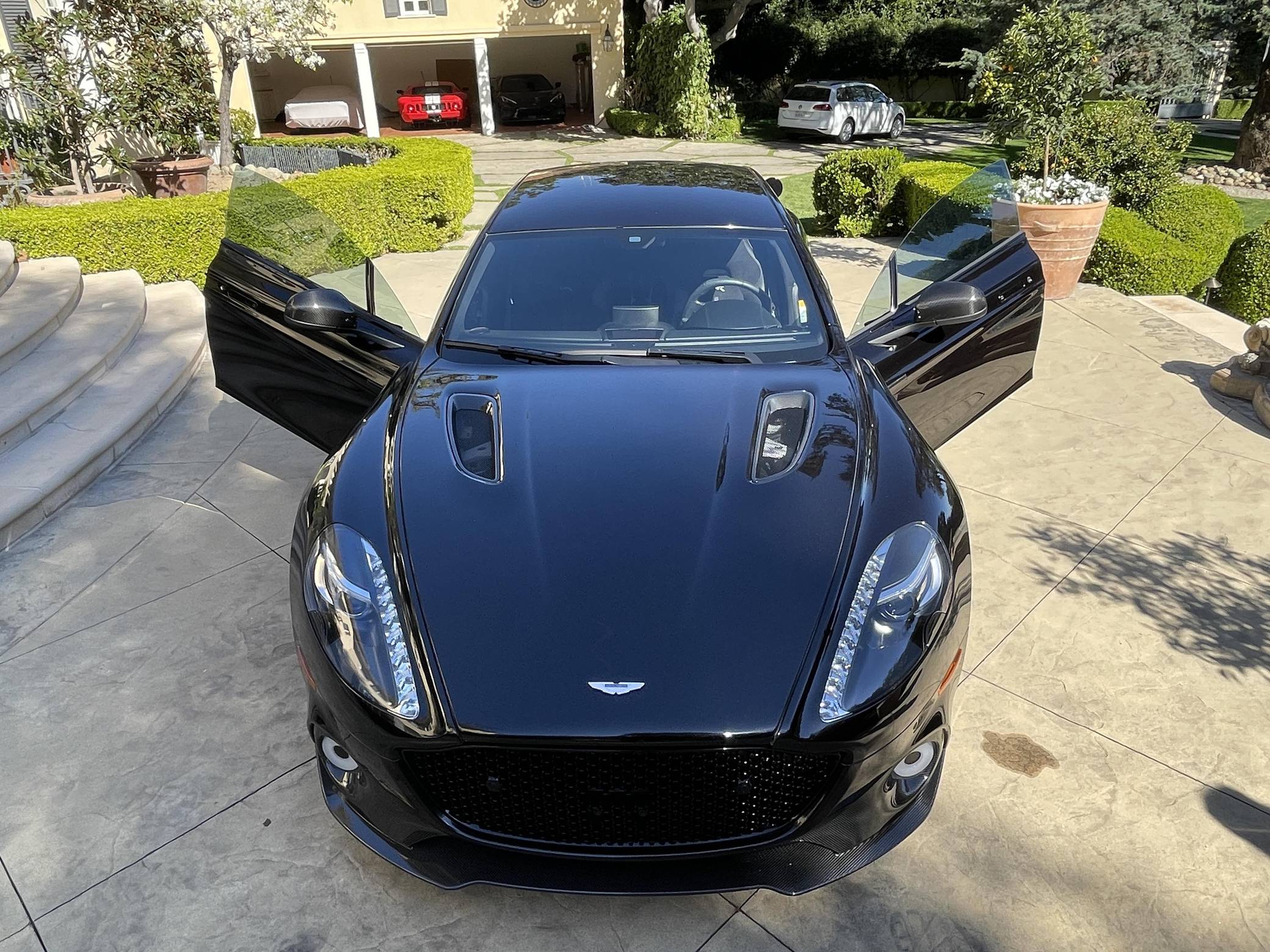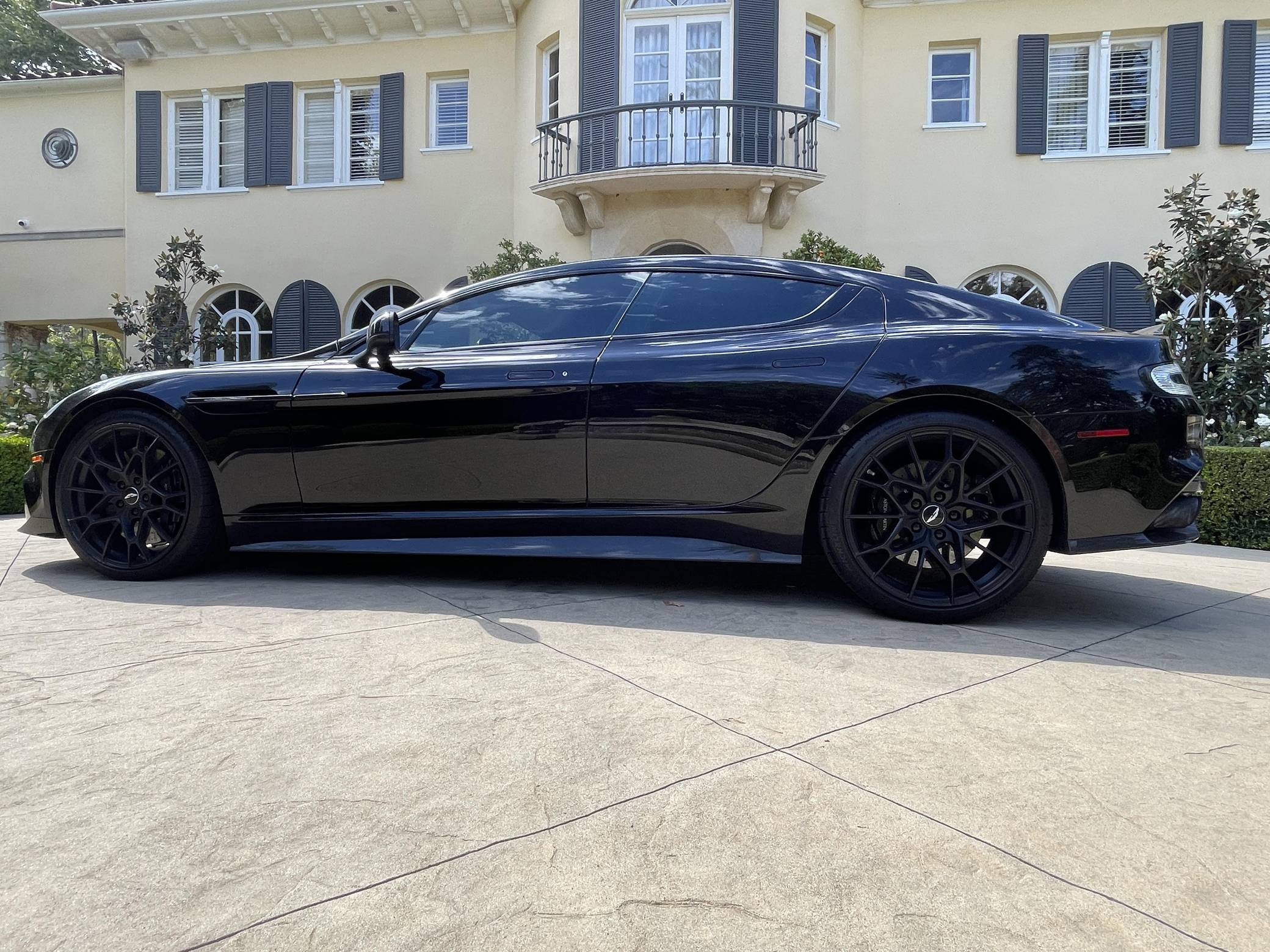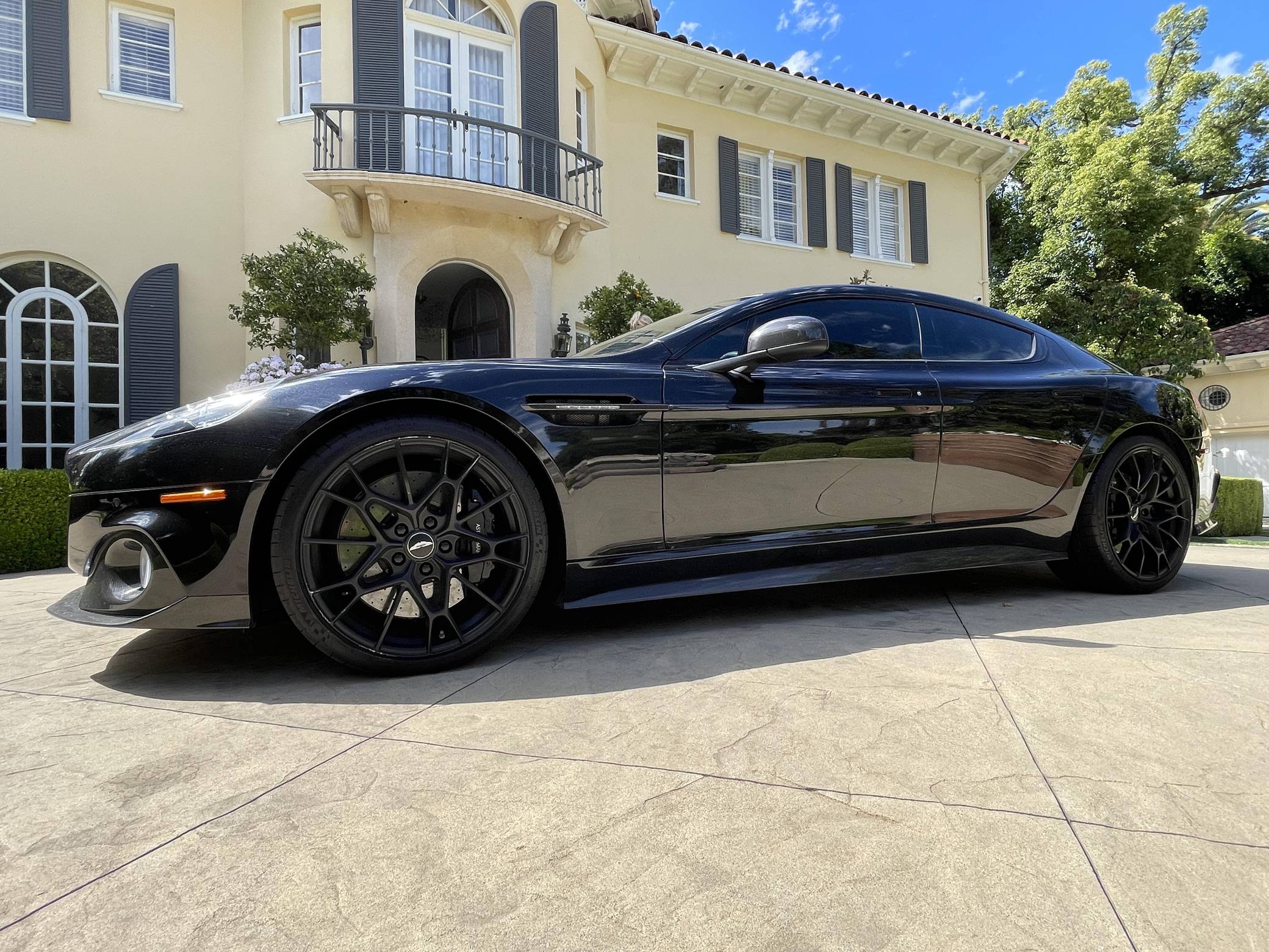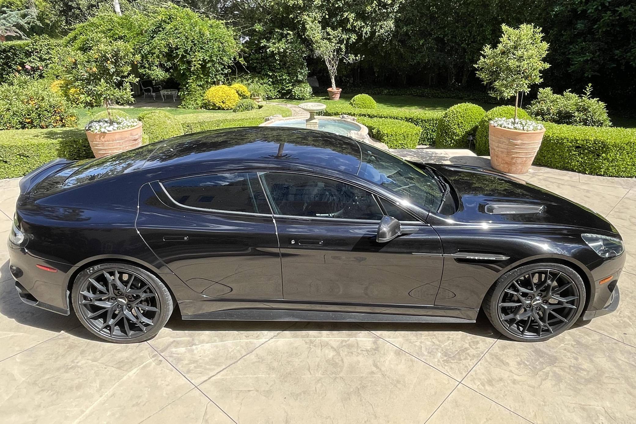 2019 Aston Martin Rapide AMR, finished in Onyx Black with an Obsidian Black interior. This Rapide AMR is one of just 210 final edition models of Aston Martin’s four-door supercar produced worldwide. Its odometer currently displays approximately 4,100 miles. It comes equipped with the Exterior Carbon package, 21-inch forged wheels, carbon ceramic brakes, 3-stage adaptive dampers, Bridge of Weir leather/Alcantara upholstery, an One77-style steering wheel, heated front seats, navigation system, Bang & Olufsen BeoSound audio system, and more as detailed below. Modifications reported by the seller are limited to tinted windows. Based on the DB9, the Aston Martin Rapide is the spiritual successor of the Lagonda Rapide of the 1960s. It's a practical four-seat liftback sedan with the design, luxury, and performance of a traditional Aston Martin. Aston Martin introduced the Rapide AMR for 2019 in limited numbers to celebrate the end of its production run. It features a more powerful V12 engine, recalibrated suspension, and a more aggressive aero kit out of carbon fiber, allowing it to reach an impressive 205 mph top speed. Power comes from a 5. 9-liter V12, rated at 580 horsepower and 465 lb-ft of torque. Output is sent to the rear wheels via an 8-speed automatic transmission.