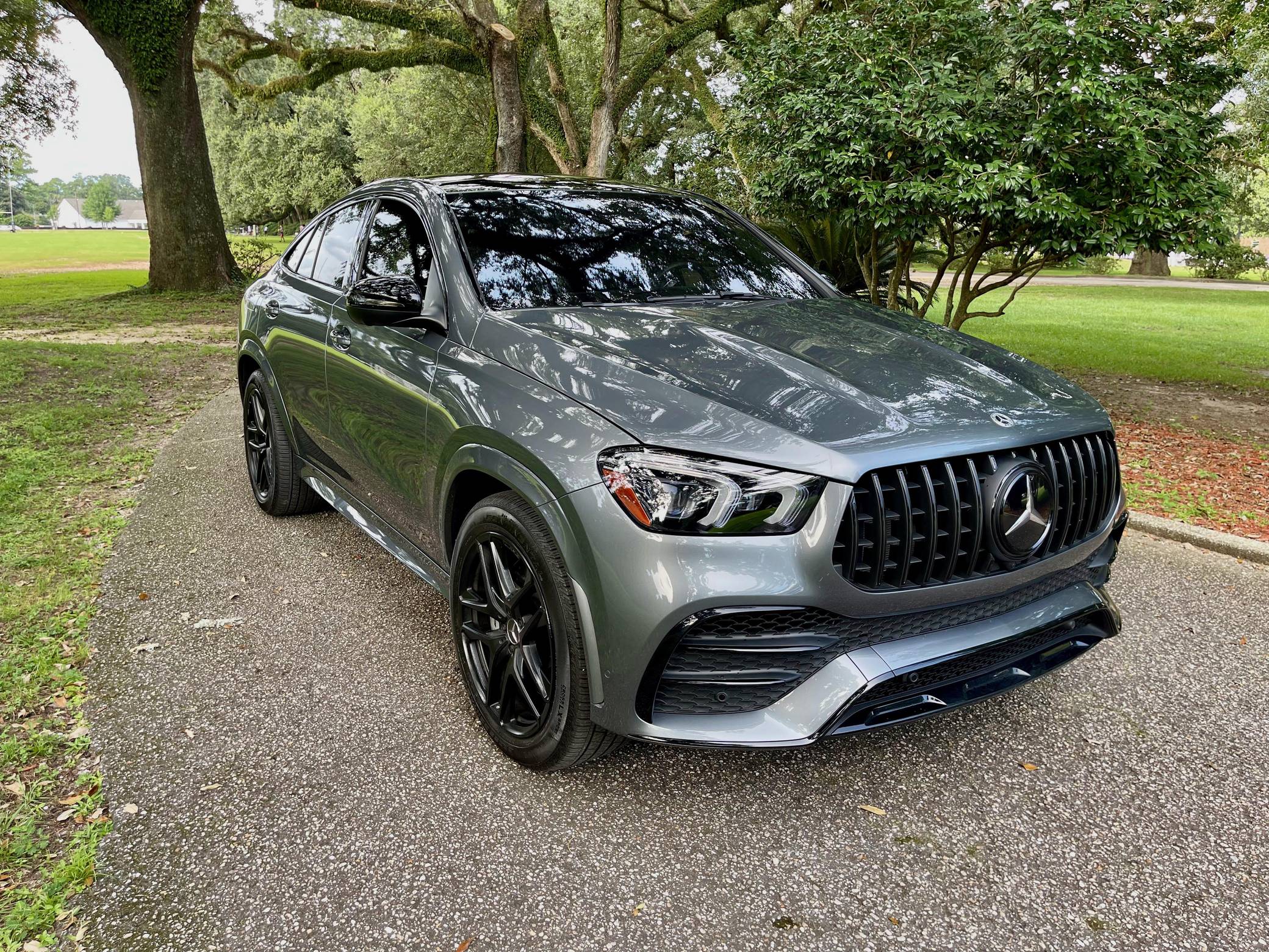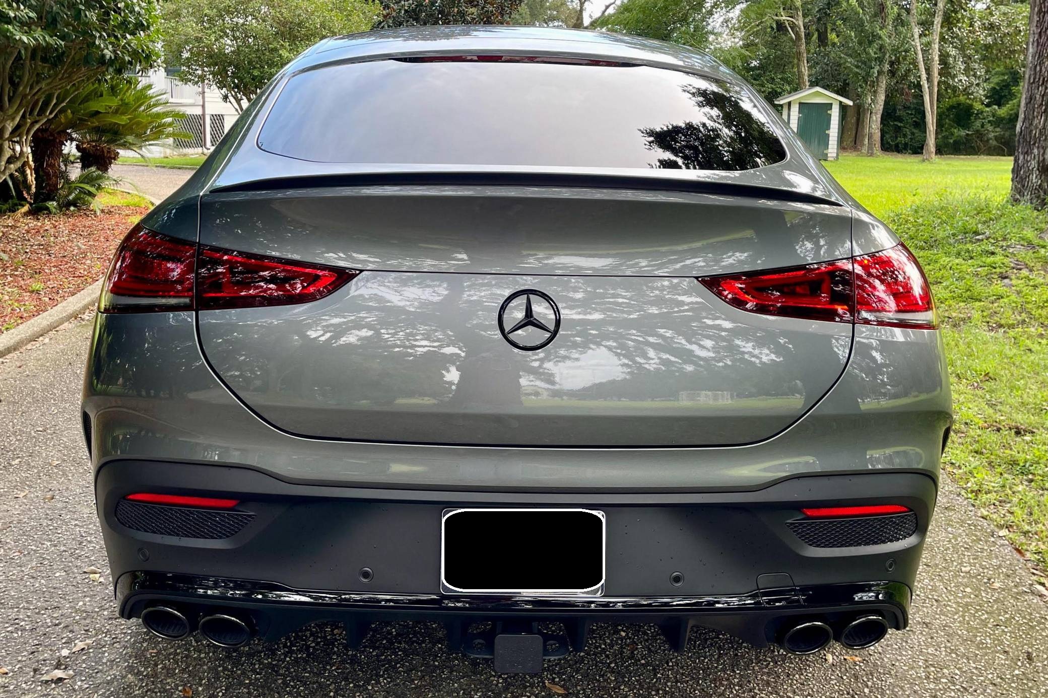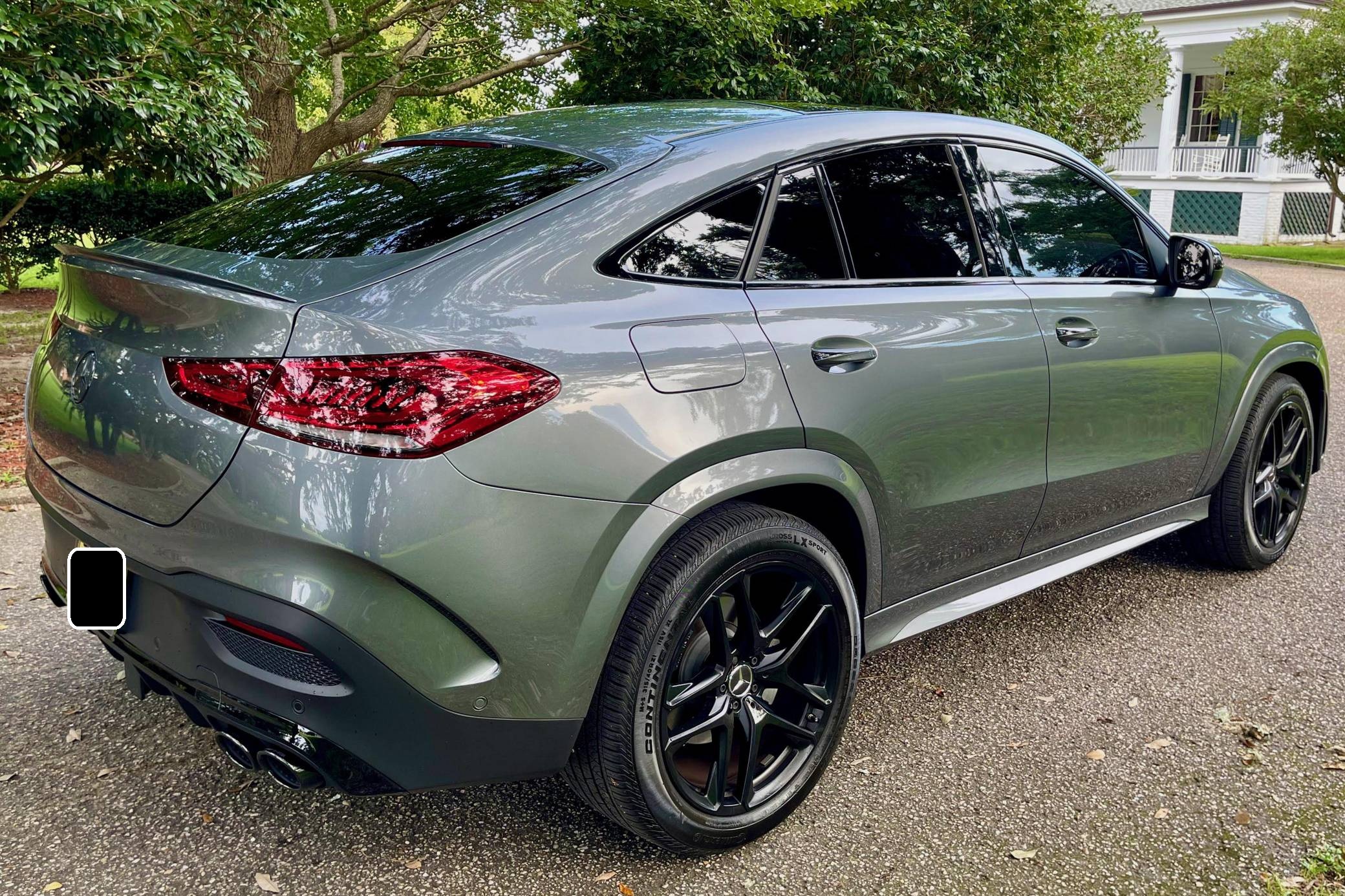 2021 Mercedes-AMG GLE53 Coupe, finished in Selenite Grey with a black interior. Factory equipment includes the AMG Night Package, 21-inch AMG wheels, AMG Ride Control air suspension, a sunroof, leather upholstery, power-adjustable heated and ventilated front seats, a Burmester surround sound system, and a navigation system. Modifications reported by the seller are limited to tinted windows, the exterior chrome trim wrapped in black, and the factory wheels refinished in black. Launched for 2020, the W167-generation GLE offers a more spacious interior than its predecessor, a sleeker-looking exterior design, and a much longer list of standard and optional tech features. It's new from the ground up and offered in two body styles: the regular SUV and the sportier-looking Coupe (called C167 internally) with a fastback-like roof line, such as this one. Production continues in 2022. Power comes from an “M256” 3. 0-liter turbocharged straight-6 linked to a 48-volt mild-hybrid system, rated at 429 horsepower and 384 lb-ft of torque. Output is sent to all four wheels via a 9-speed automatic transmission and Mercedes-Benz's permanent 4Matic all-wheel-drive system.
