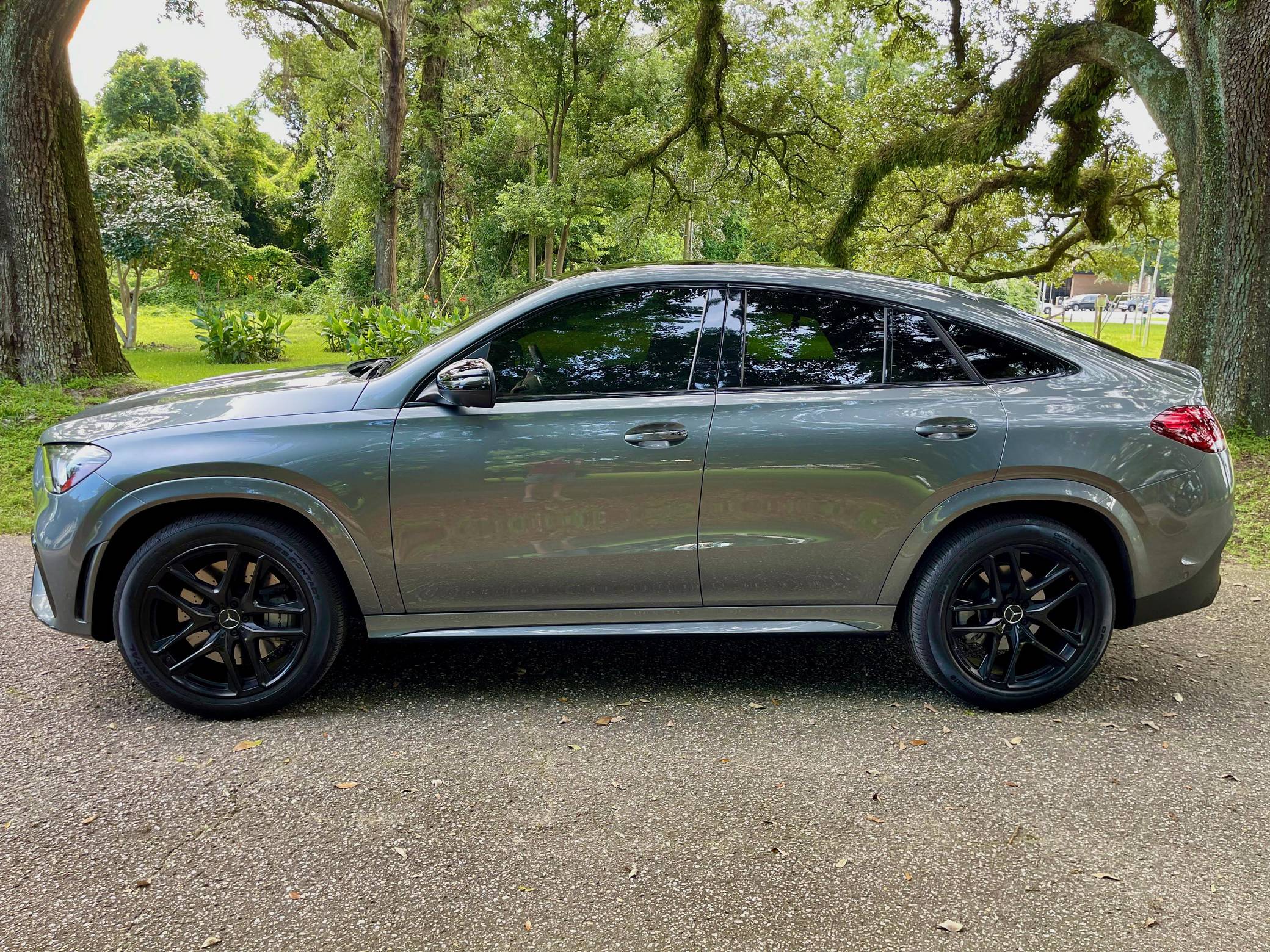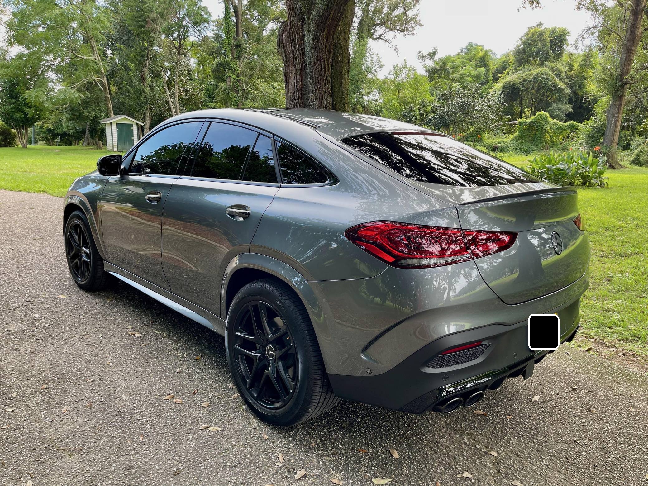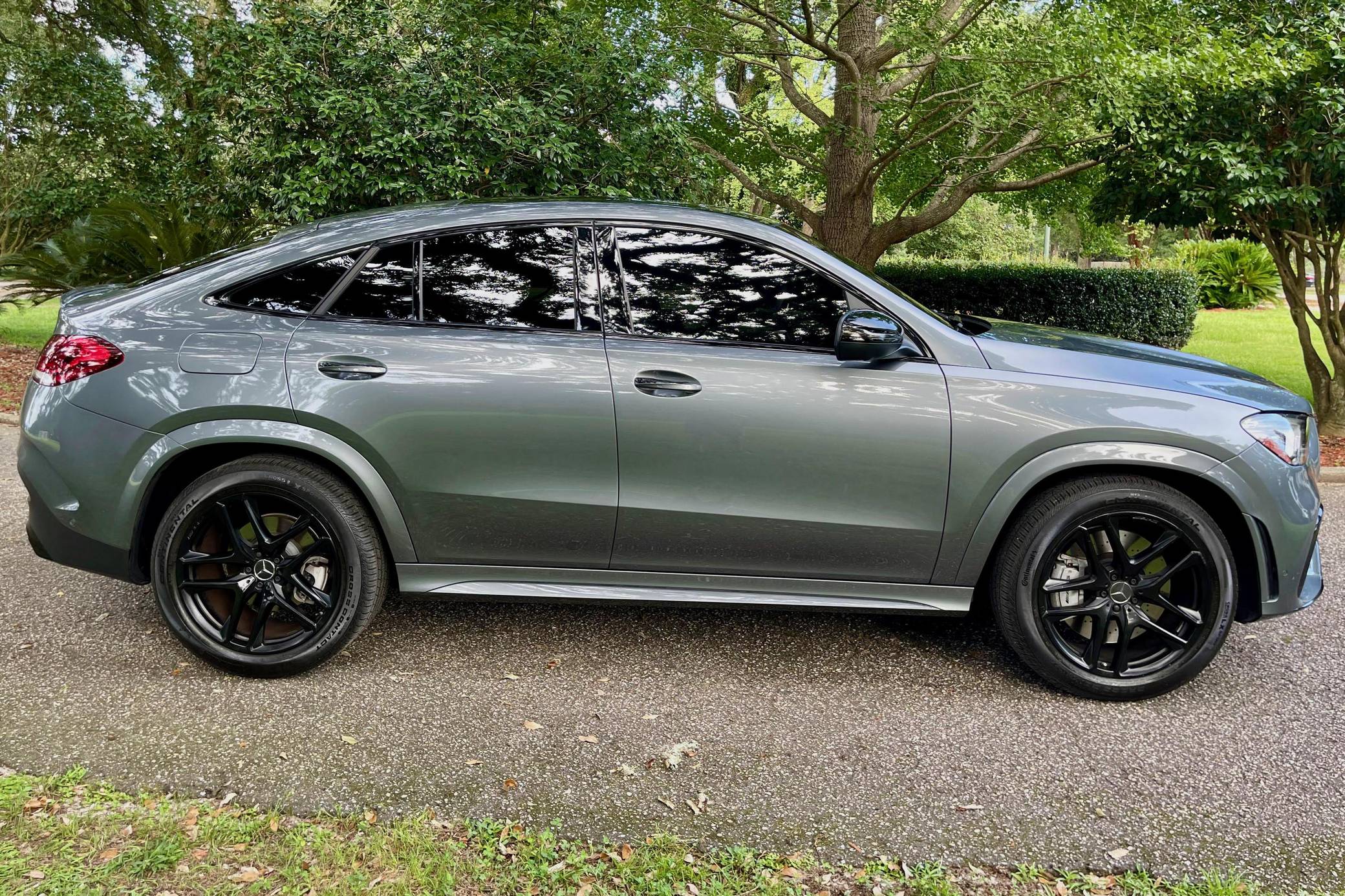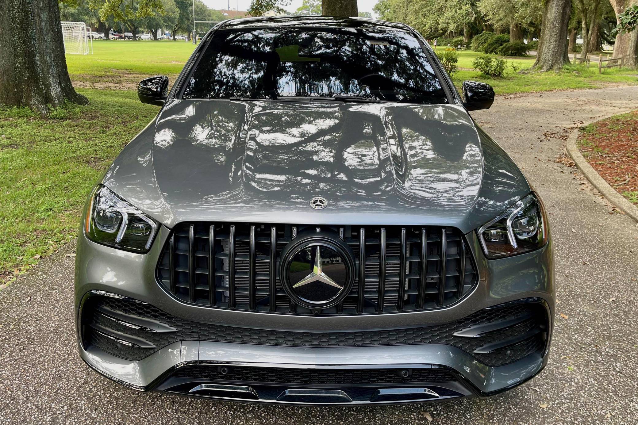 2021 Mercedes-AMG GLE53 Coupe, finished in Selenite Grey with a black interior. Factory equipment includes the AMG Night Package, 21-inch AMG wheels, AMG Ride Control air suspension, a sunroof, leather upholstery, power-adjustable heated and ventilated front seats, a Burmester surround sound system, and a navigation system. Modifications reported by the seller are limited to tinted windows, the exterior chrome trim wrapped in black, and the factory wheels refinished in black. Launched for 2020, the W167-generation GLE offers a more spacious interior than its predecessor, a sleeker-looking exterior design, and a much longer list of standard and optional tech features. It's new from the ground up and offered in two body styles: the regular SUV and the sportier-looking Coupe (called C167 internally) with a fastback-like roof line, such as this one. Production continues in 2022. Power comes from an “M256” 3. 0-liter turbocharged straight-6 linked to a 48-volt mild-hybrid system, rated at 429 horsepower and 384 lb-ft of torque. Output is sent to all four wheels via a 9-speed automatic transmission and Mercedes-Benz's permanent 4Matic all-wheel-drive system.