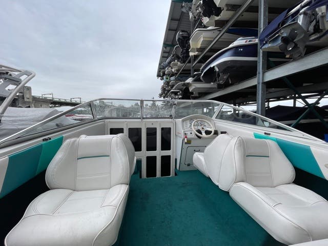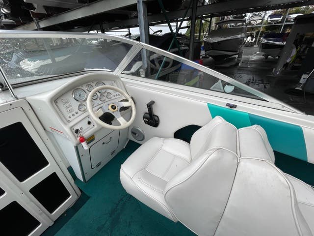 1998 Reinell 197 Cuddy! Classic Teal with Grey Interior. Powered by a Mercruiser 5.7L/V8/Alpha One Outdrive with a Stainless Steel Prop! Options include Convertible Top, Cockpit Tonneau Cover, Tilt Steering Wheel, Stereo, Fire Extinguisher, Swim Ladder, Back to Back Sleeper Seats, and More! Packaged on a Galvanized Calkins Bunk Trailer!