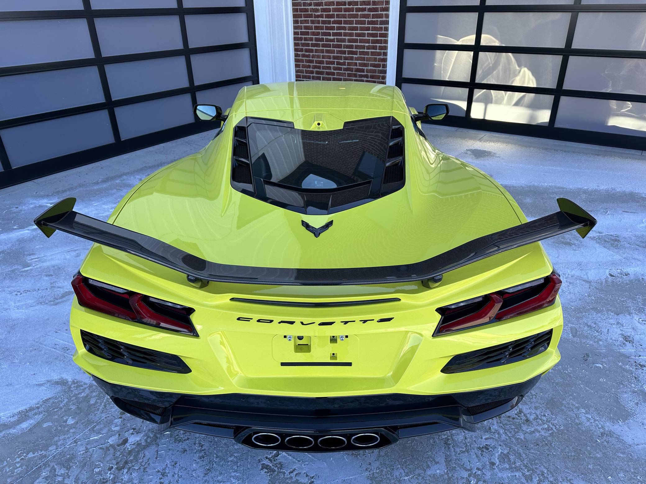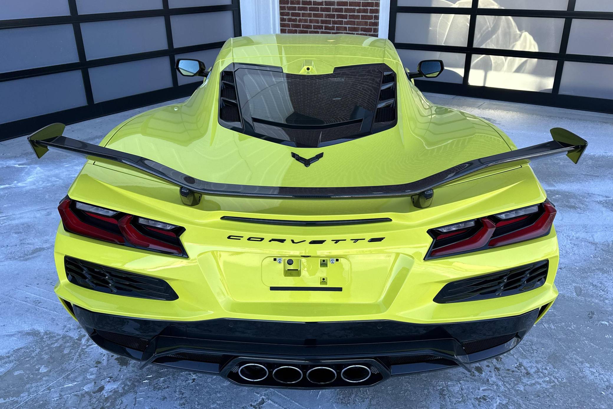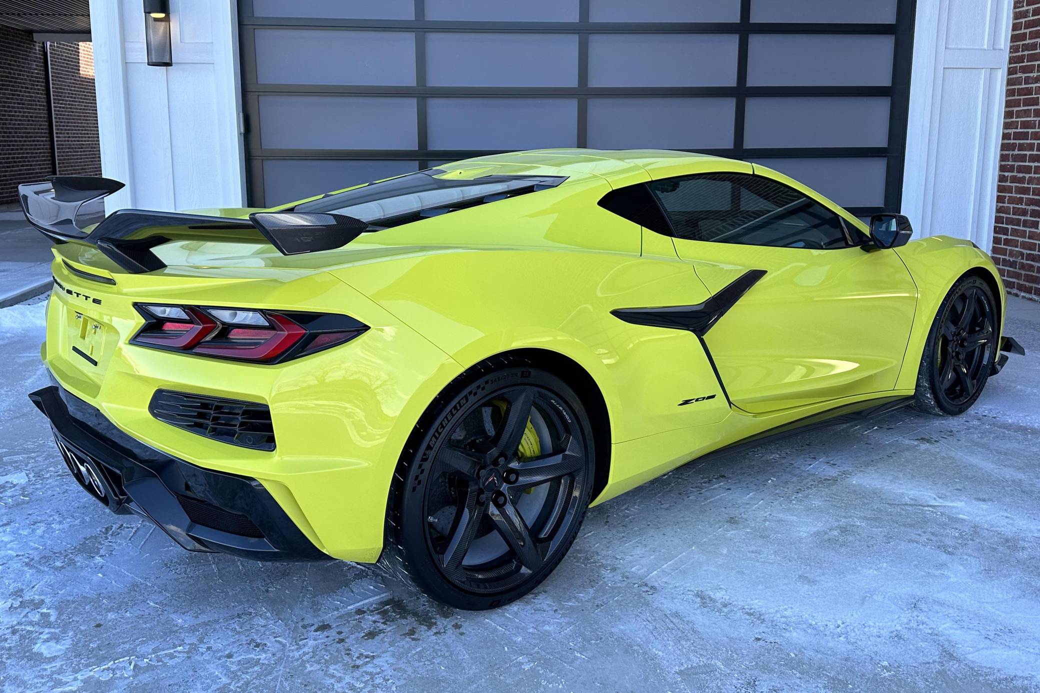 THIS… is a 2023 Chevrolet Corvette Z06, finished in Accelerate Yellow with a Jet Black interior. No modifications have been reported by the seller. The switch to a mid-engine layout was liberating for the C8 Corvette engineers as they finally had a proper base to build a Z06 infused with world-class performance and handling. The C8 Corvette Z06 arrived for 2023, boasting a howling flat-plane-crank 5. 5-liter V8, a wider body, and a razor-sharp driving character. Released for 2020, the eighth-generation Corvette switched to a mid-mounted engine, a configuration that represented the most drastic change in the nameplate's decades-long history. Placing the V8 behind the passenger compartment allowed designers to completely reinvent the Corvette's proportions, while engineers took advantage of the rear-biased weight distribution to dial in sharper handling. Power comes from a naturally-aspirated "LT6" 5. 5-liter V8 rated at 670 horsepower and 460 lb-ft of torque. Output is sent to the rear wheels via an 8-speed dual-clutch automatic transmission.