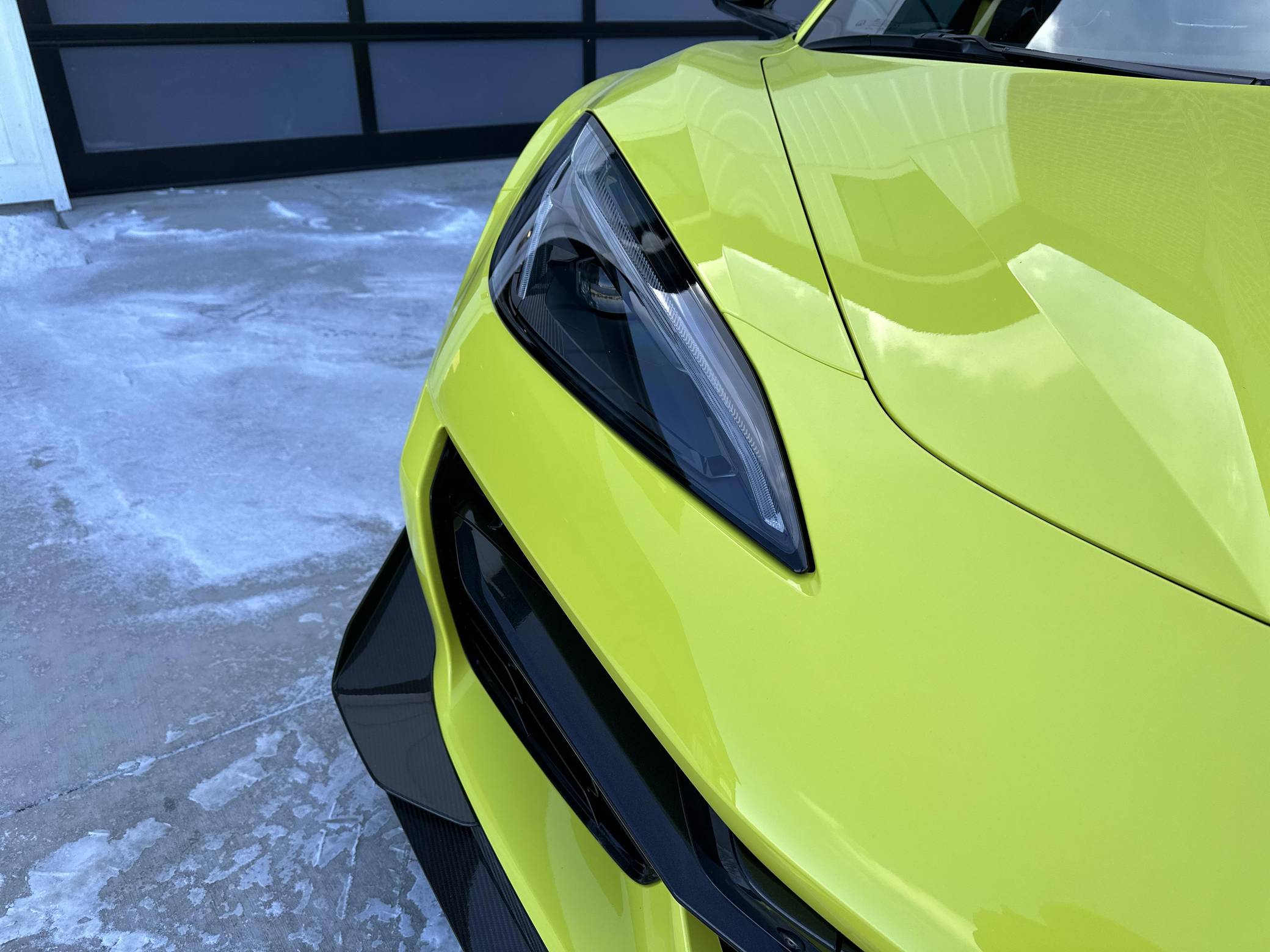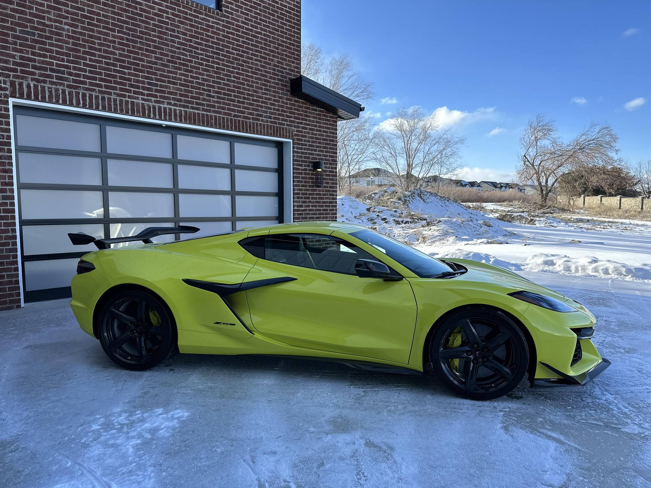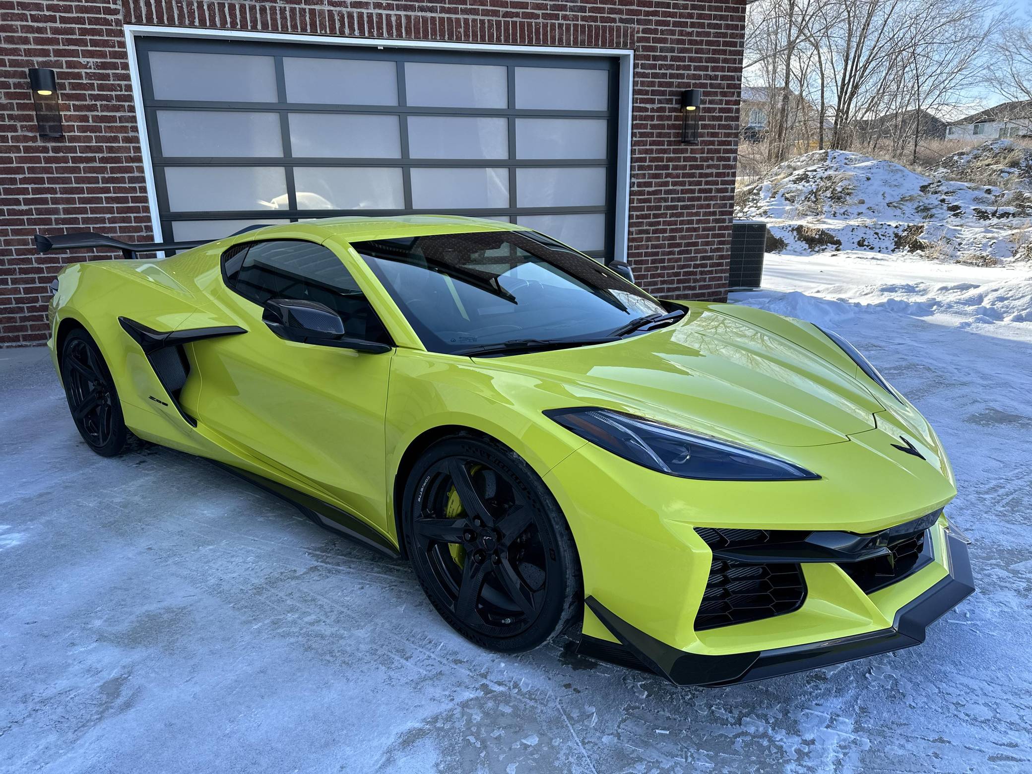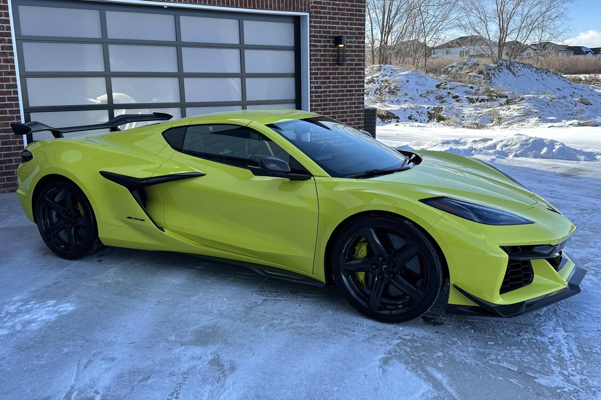 THIS… is a 2023 Chevrolet Corvette Z06, finished in Accelerate Yellow with a Jet Black interior. No modifications have been reported by the seller. The switch to a mid-engine layout was liberating for the C8 Corvette engineers as they finally had a proper base to build a Z06 infused with world-class performance and handling. The C8 Corvette Z06 arrived for 2023, boasting a howling flat-plane-crank 5. 5-liter V8, a wider body, and a razor-sharp driving character. Released for 2020, the eighth-generation Corvette switched to a mid-mounted engine, a configuration that represented the most drastic change in the nameplate's decades-long history. Placing the V8 behind the passenger compartment allowed designers to completely reinvent the Corvette's proportions, while engineers took advantage of the rear-biased weight distribution to dial in sharper handling. Power comes from a naturally-aspirated "LT6" 5. 5-liter V8 rated at 670 horsepower and 460 lb-ft of torque. Output is sent to the rear wheels via an 8-speed dual-clutch automatic transmission.