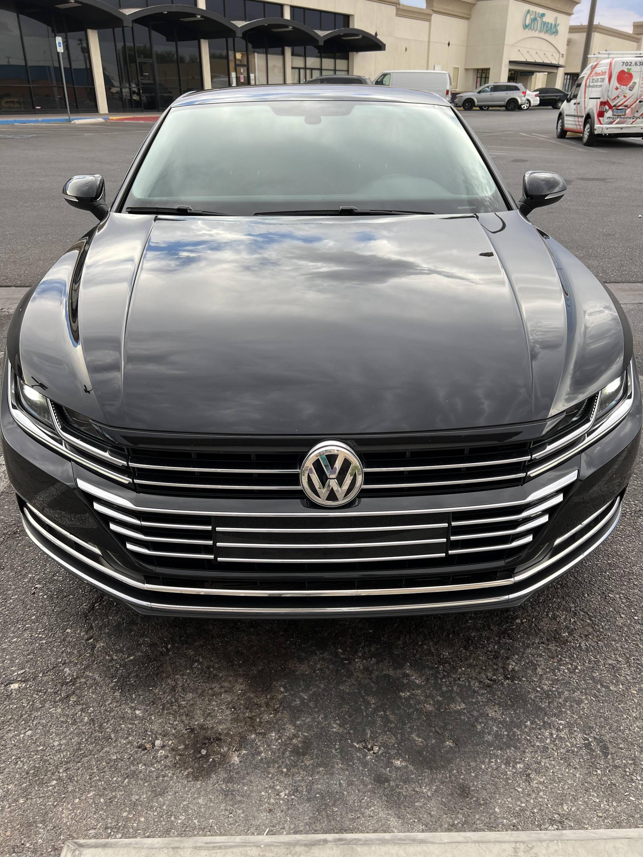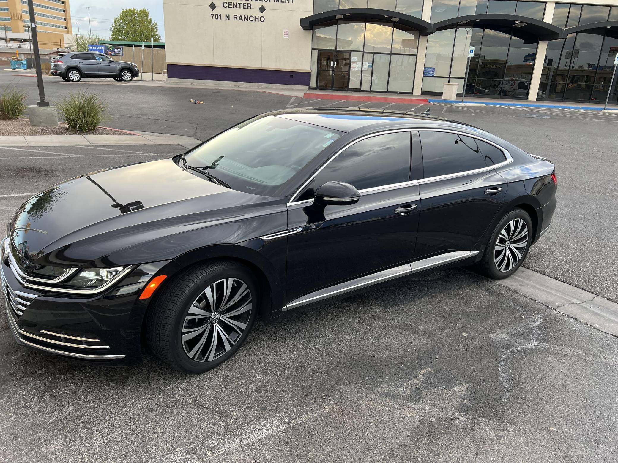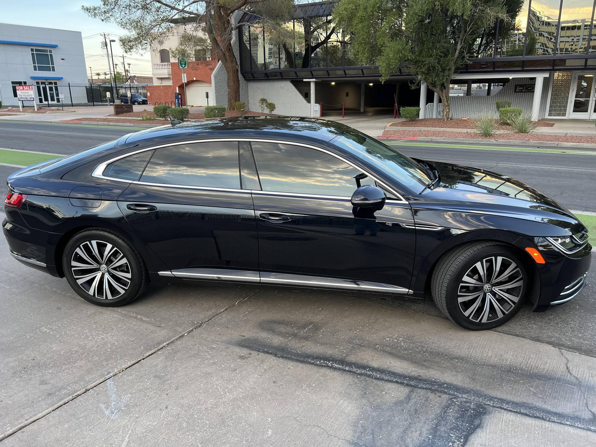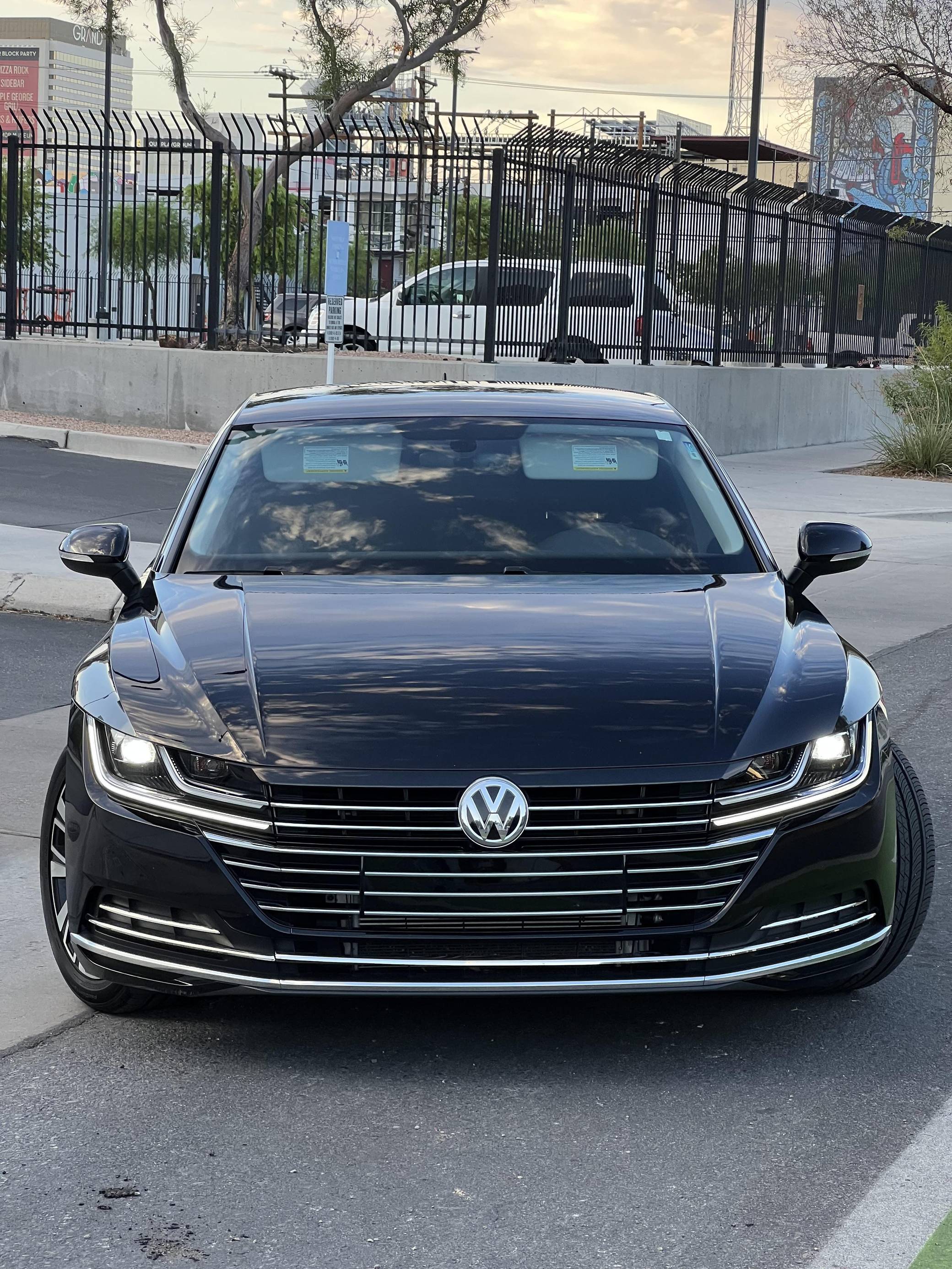 2020 Volkswagen Arteon SE, finished in Deep Black Pearl with a Titan Black interior. Factory equipment includes 18-inch wheels, remote engine start, LED daytime running lights, leatherette upholstery, heated and power-adjustable front sport seats, aluminum interior trim, leather-wrapped steering wheel, automatic climate control, and Apple CarPlay and Android Auto capabilities. The sole modification reported by the seller is tinted windows. Volkswagen released the Arteon for 2017 as an updated version of the CC, and as an affordable alternative to upmarket fastbacks like the Audi A7. It wore a swoopy design accented by a fast-sloping roofline and is positioned to be more up-market than the outgoing Volkswagen CC. Power comes from a 2. 0-liter turbocharged inline-4, rated at 268 horsepower and 258 lb-ft of torque. Output is sent to all four wheels through an 8-speed automatic transmission.