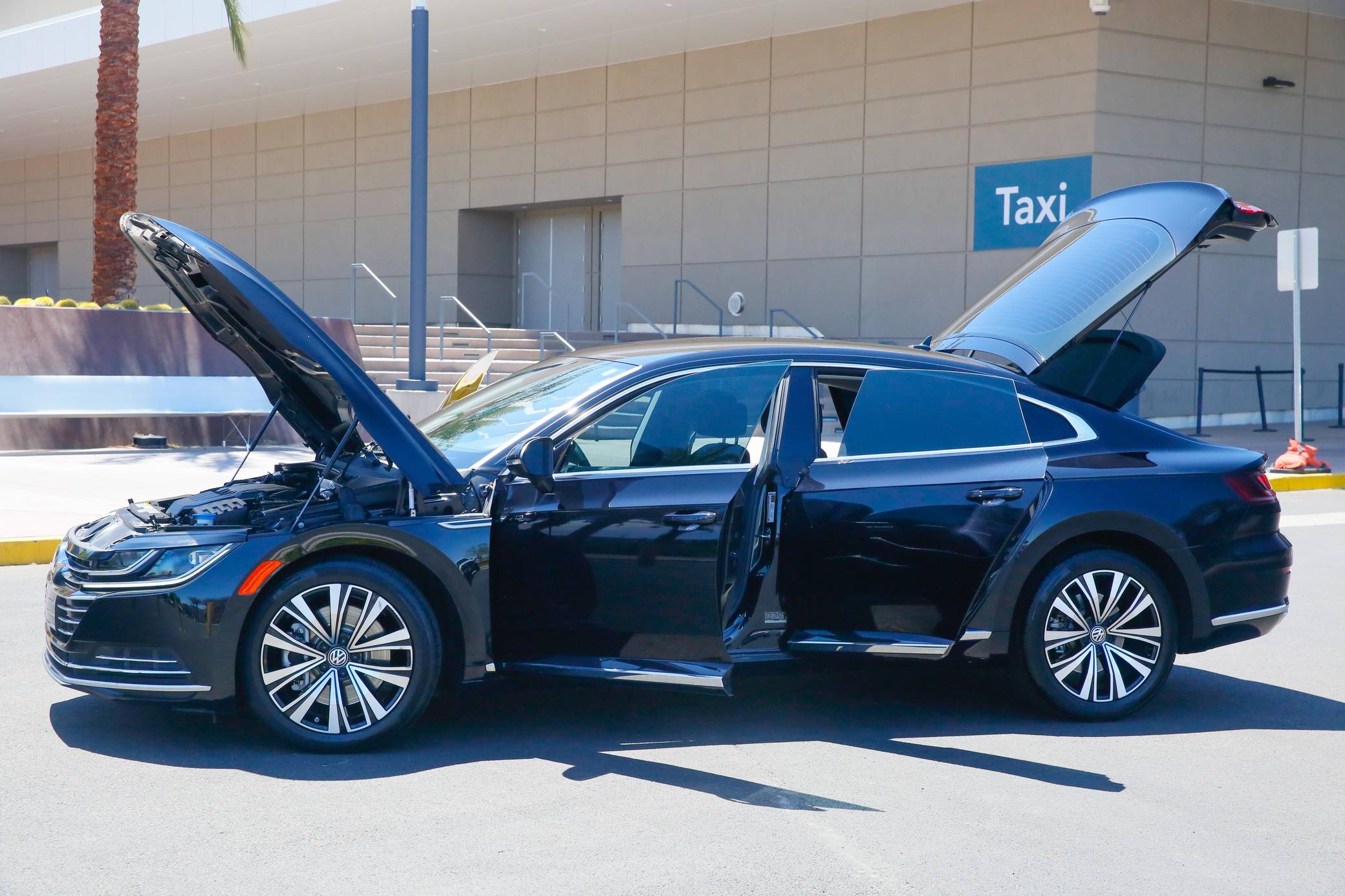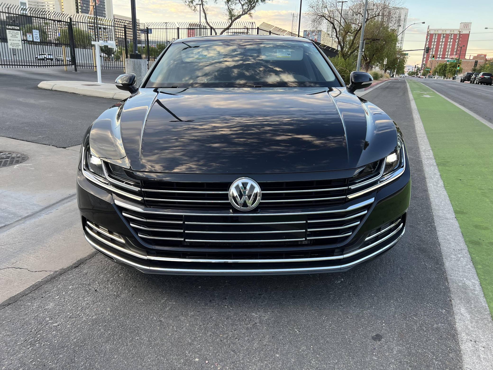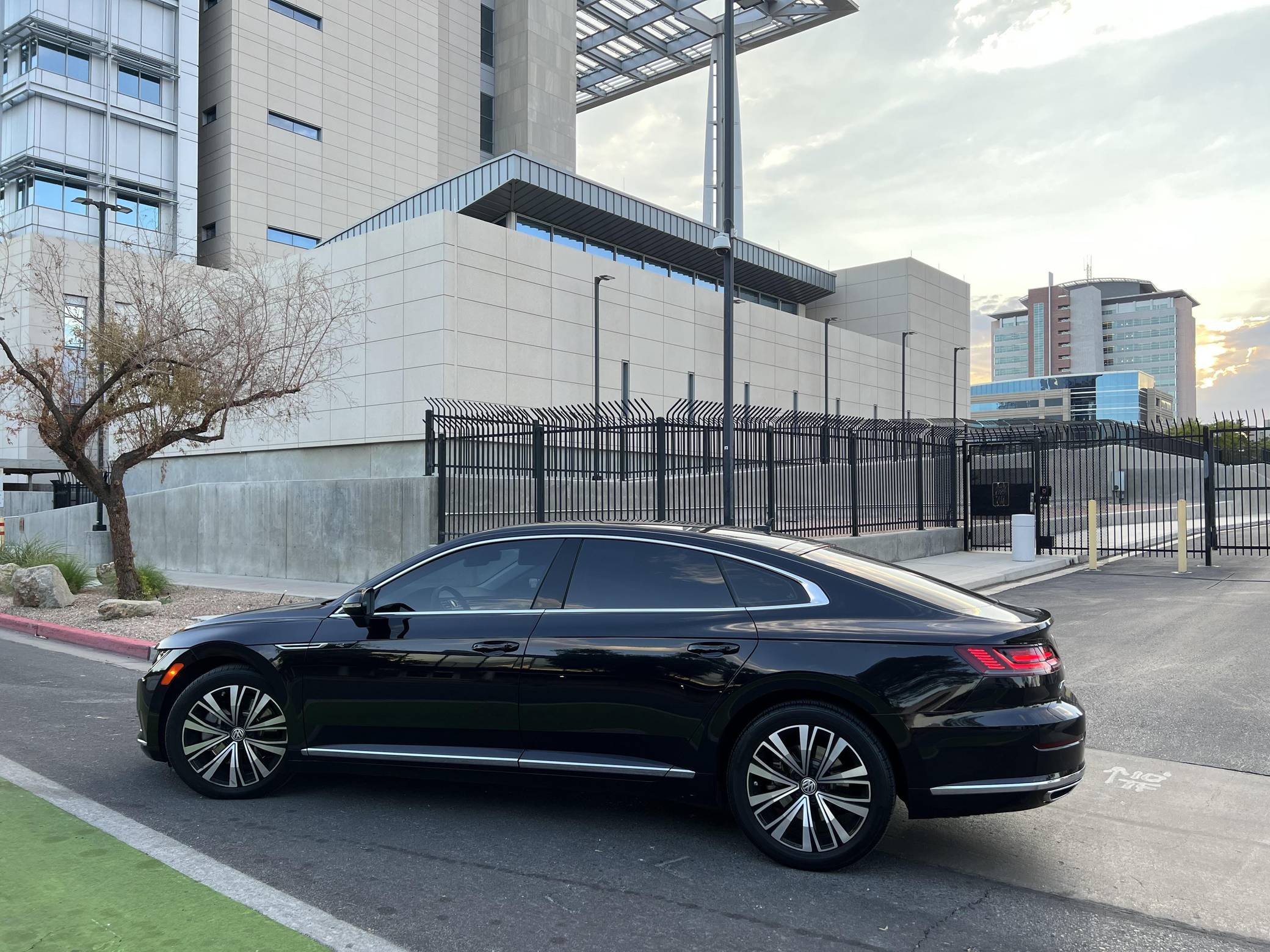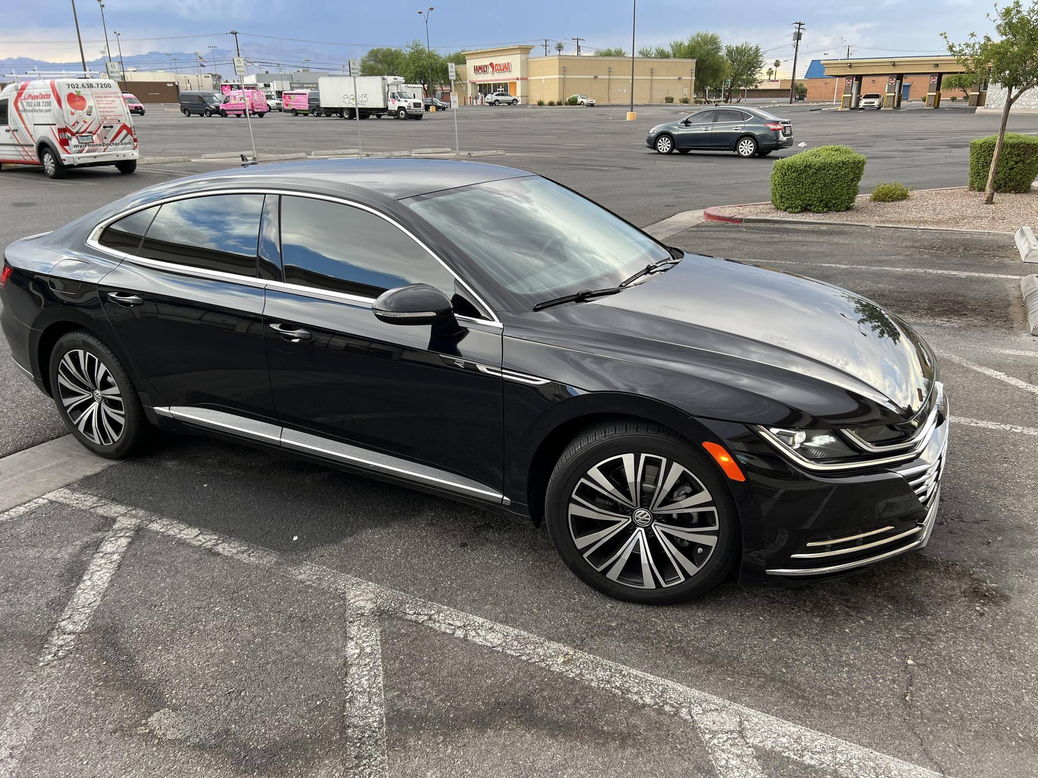 2020 Volkswagen Arteon SE, finished in Deep Black Pearl with a Titan Black interior. Factory equipment includes 18-inch wheels, remote engine start, LED daytime running lights, leatherette upholstery, heated and power-adjustable front sport seats, aluminum interior trim, leather-wrapped steering wheel, automatic climate control, and Apple CarPlay and Android Auto capabilities. The sole modification reported by the seller is tinted windows. Volkswagen released the Arteon for 2017 as an updated version of the CC, and as an affordable alternative to upmarket fastbacks like the Audi A7. It wore a swoopy design accented by a fast-sloping roofline and is positioned to be more up-market than the outgoing Volkswagen CC. Power comes from a 2. 0-liter turbocharged inline-4, rated at 268 horsepower and 258 lb-ft of torque. Output is sent to all four wheels through an 8-speed automatic transmission.
