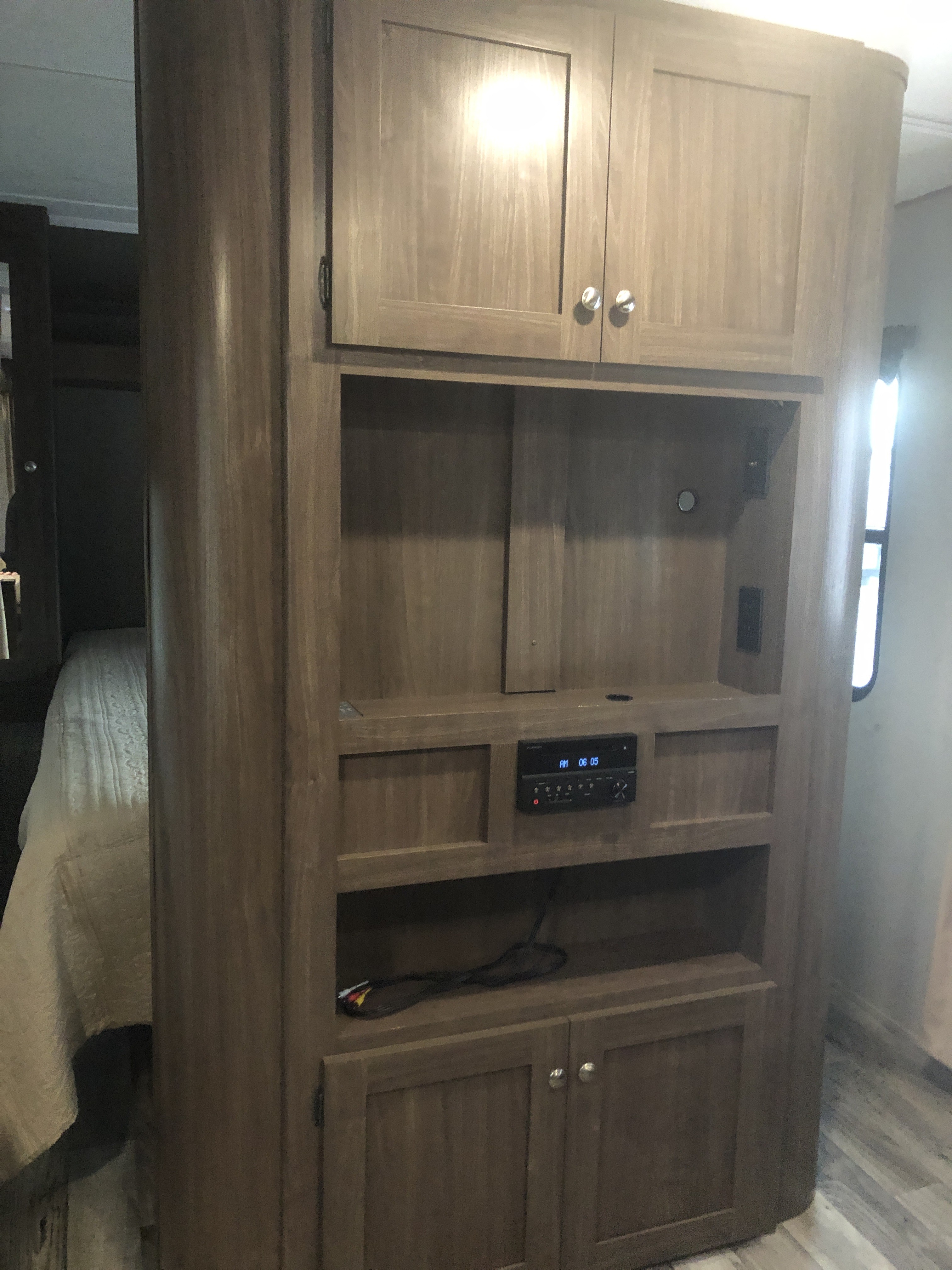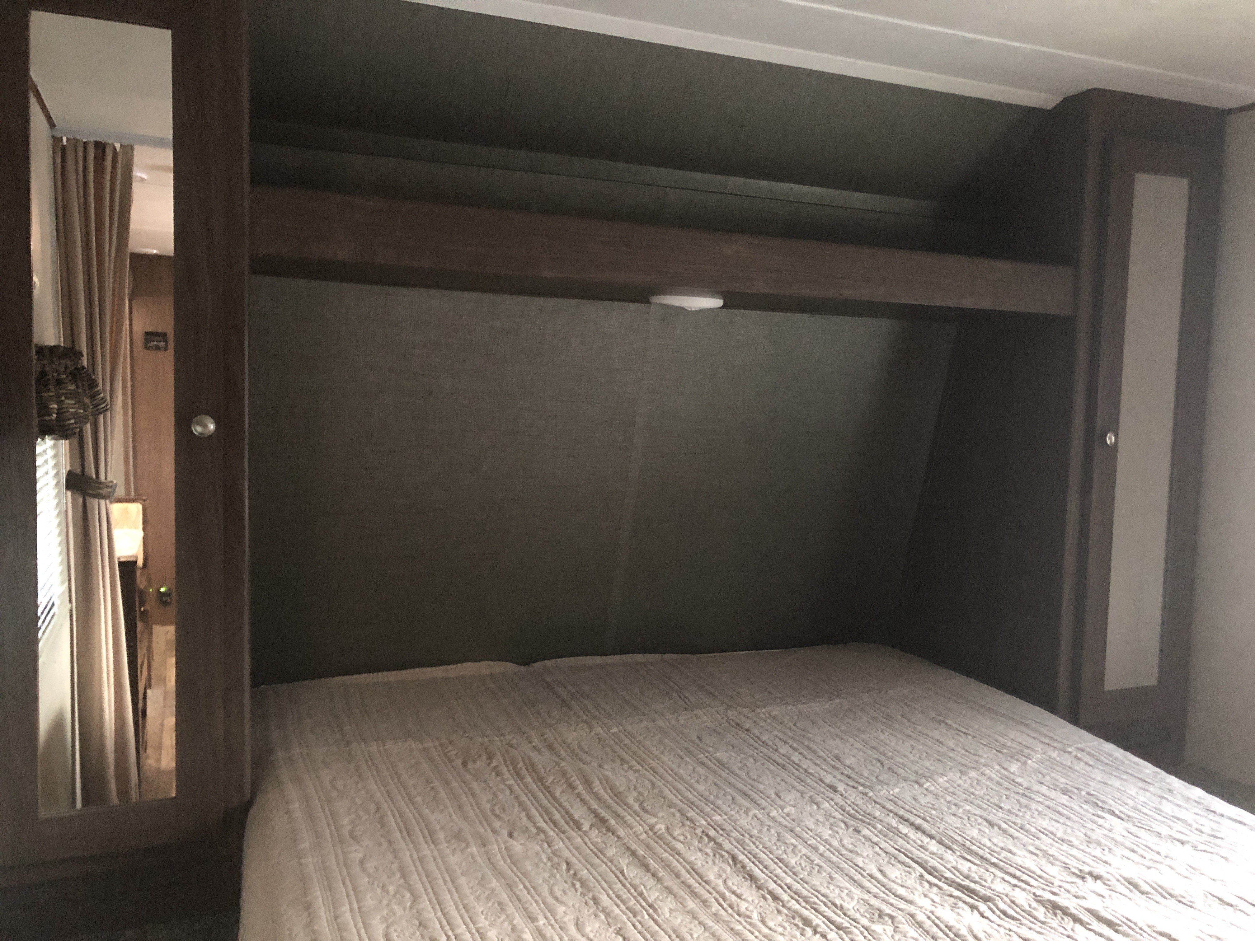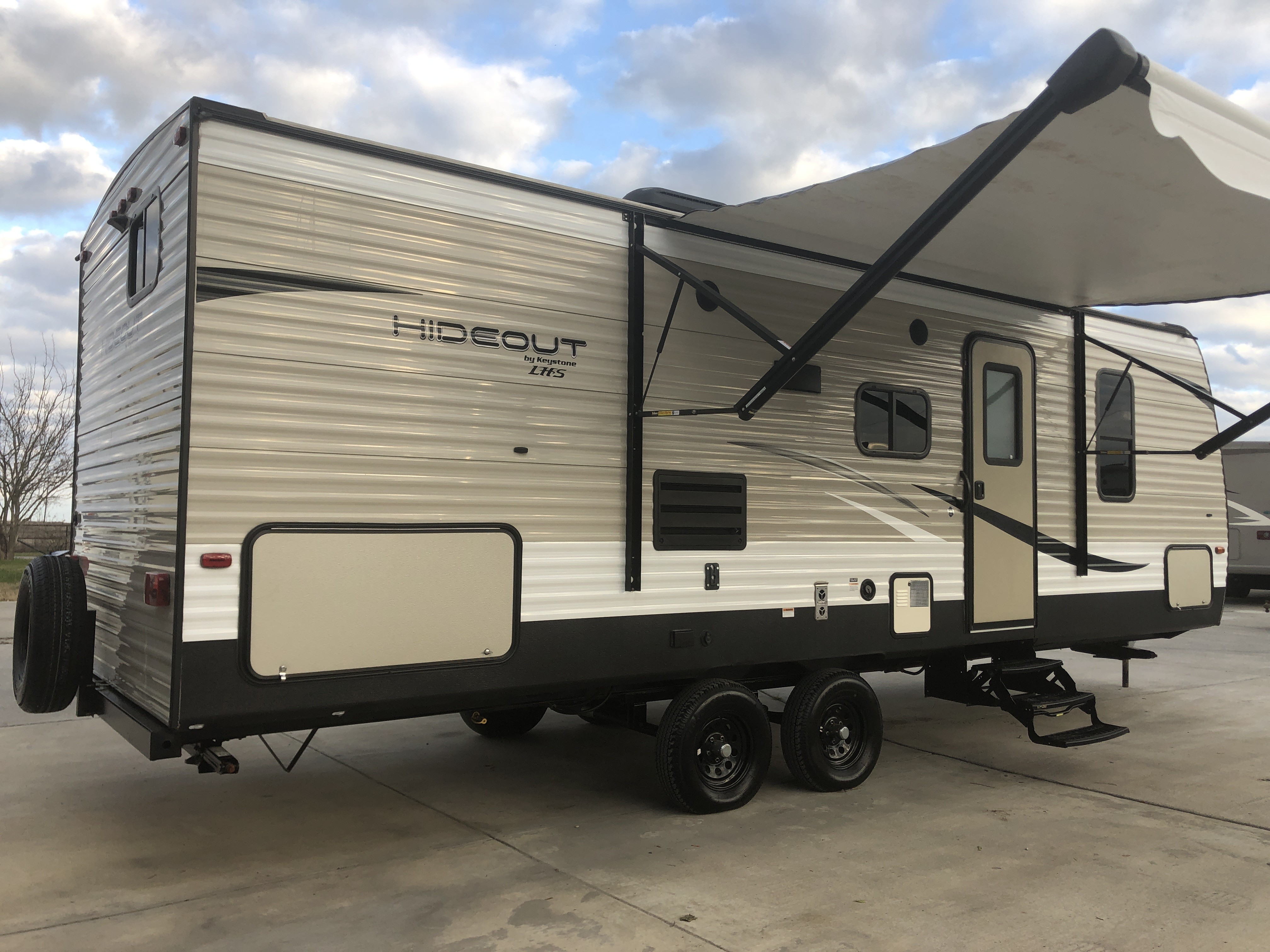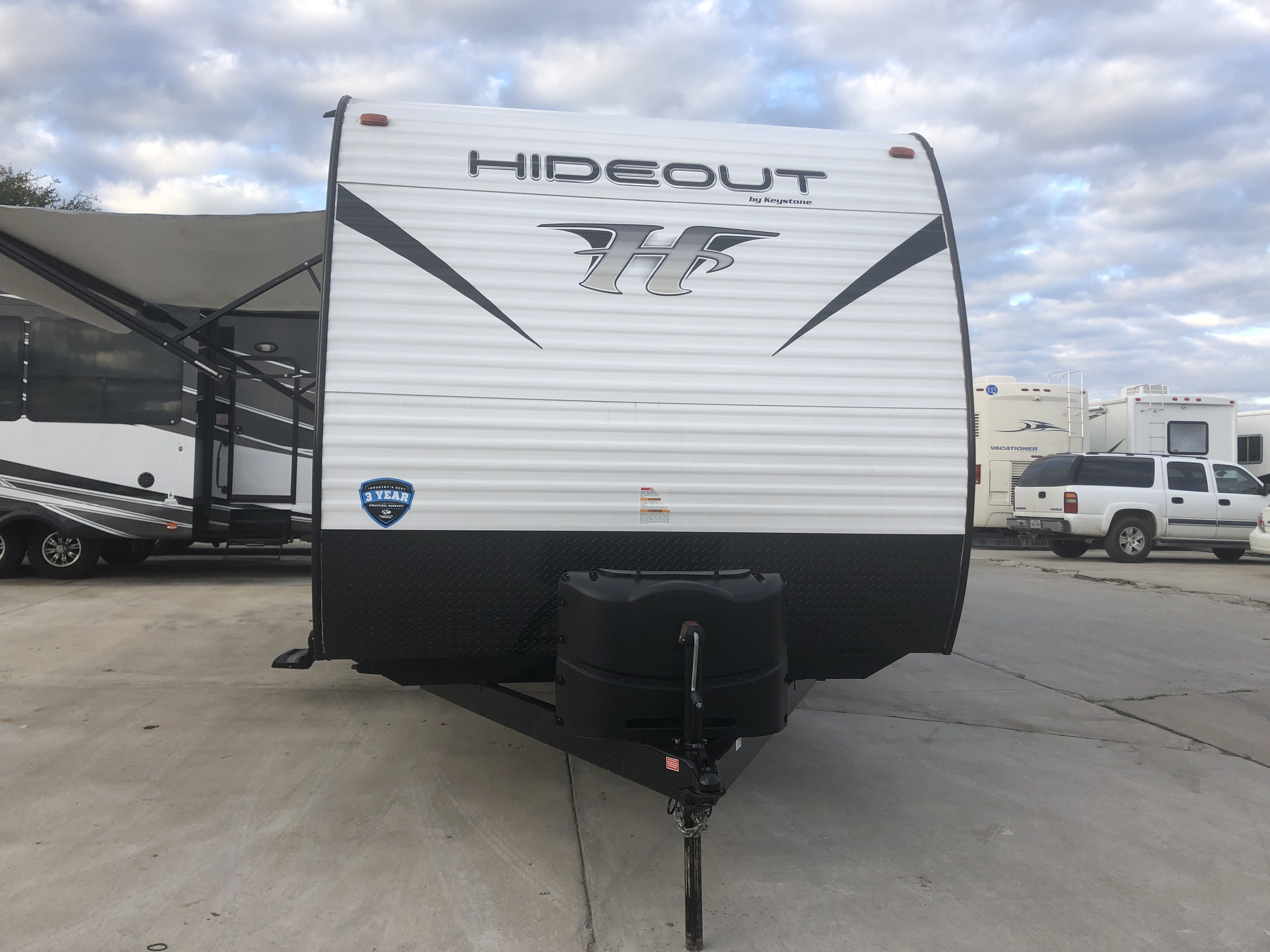 This 2017 Hideout Model 242LHS by Keystone is in EXCELLENT condition, very clean with bunk beds, master bedroom, full kitchen, full bathroom, self-contained, and sleeps 6 people comfortably. The kitchen is equipped with stainless steel microwave and 3 burner stove top with an oven, mid-size fridge, pantry, sink, booth dining that converts into a bed. Entertainment center with stereo CD/DVD/Radio, interior speakers, and exterior speakers. The master bedroom has a queen bed with under-storage, overhead storage, and 2 T-shirt closets. The 242LHS has a power patio awning, backup camera ready, central ducted air, exterior kitchen to prepare your meals outside so that you don't have to miss out on any of the fun, exterior storage, and a spare tire and carrier.