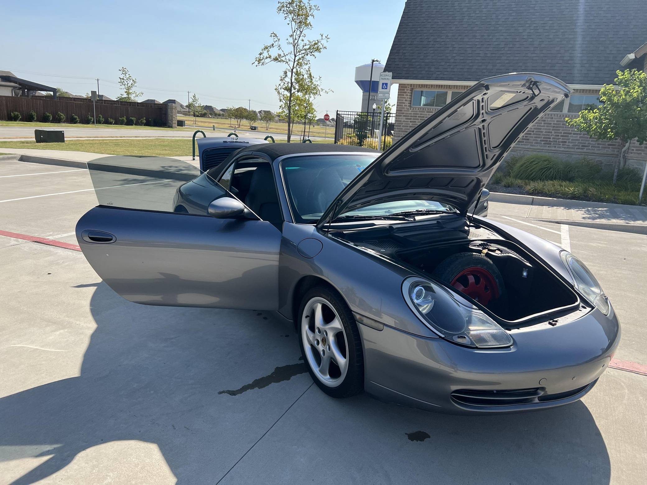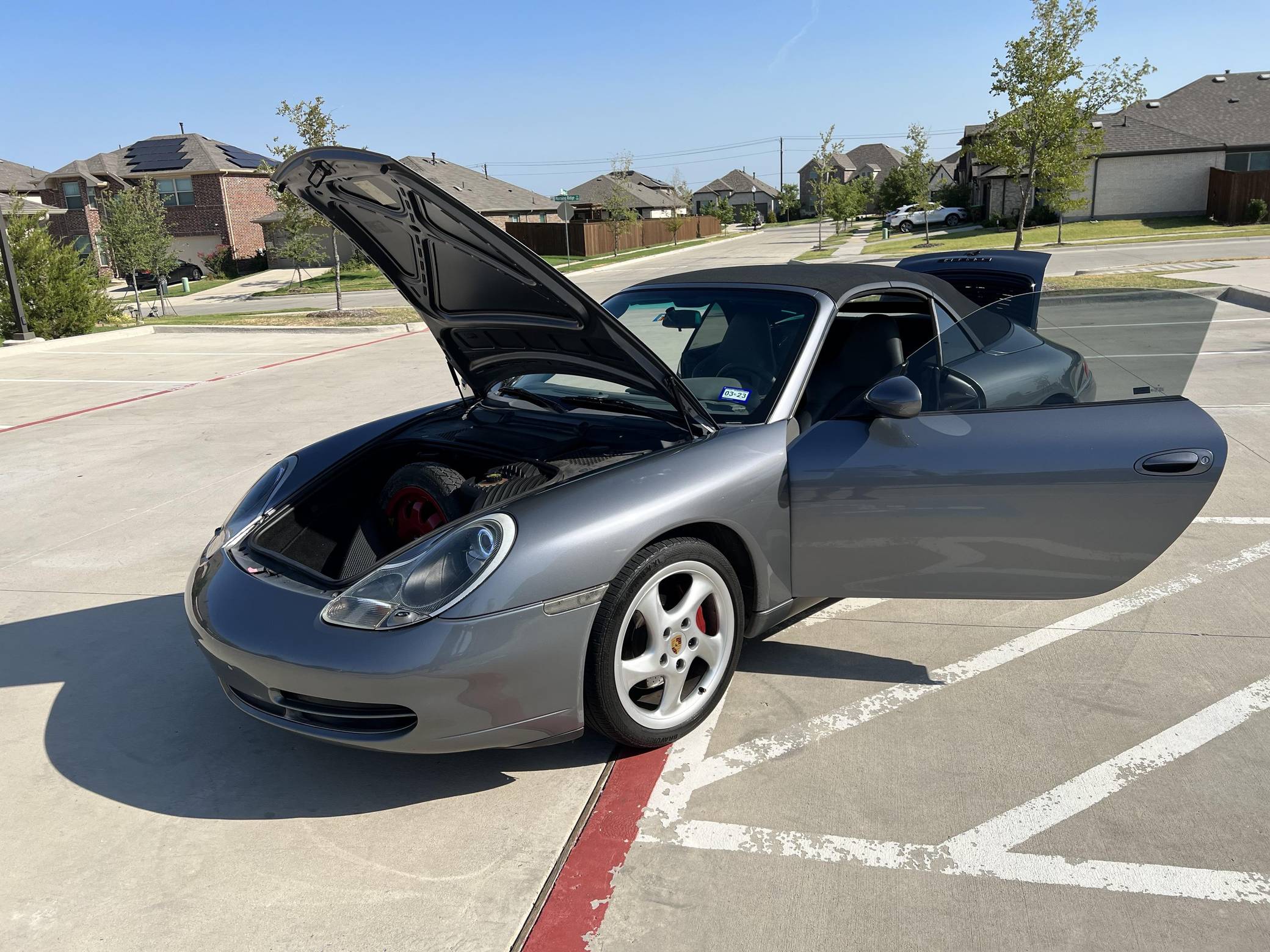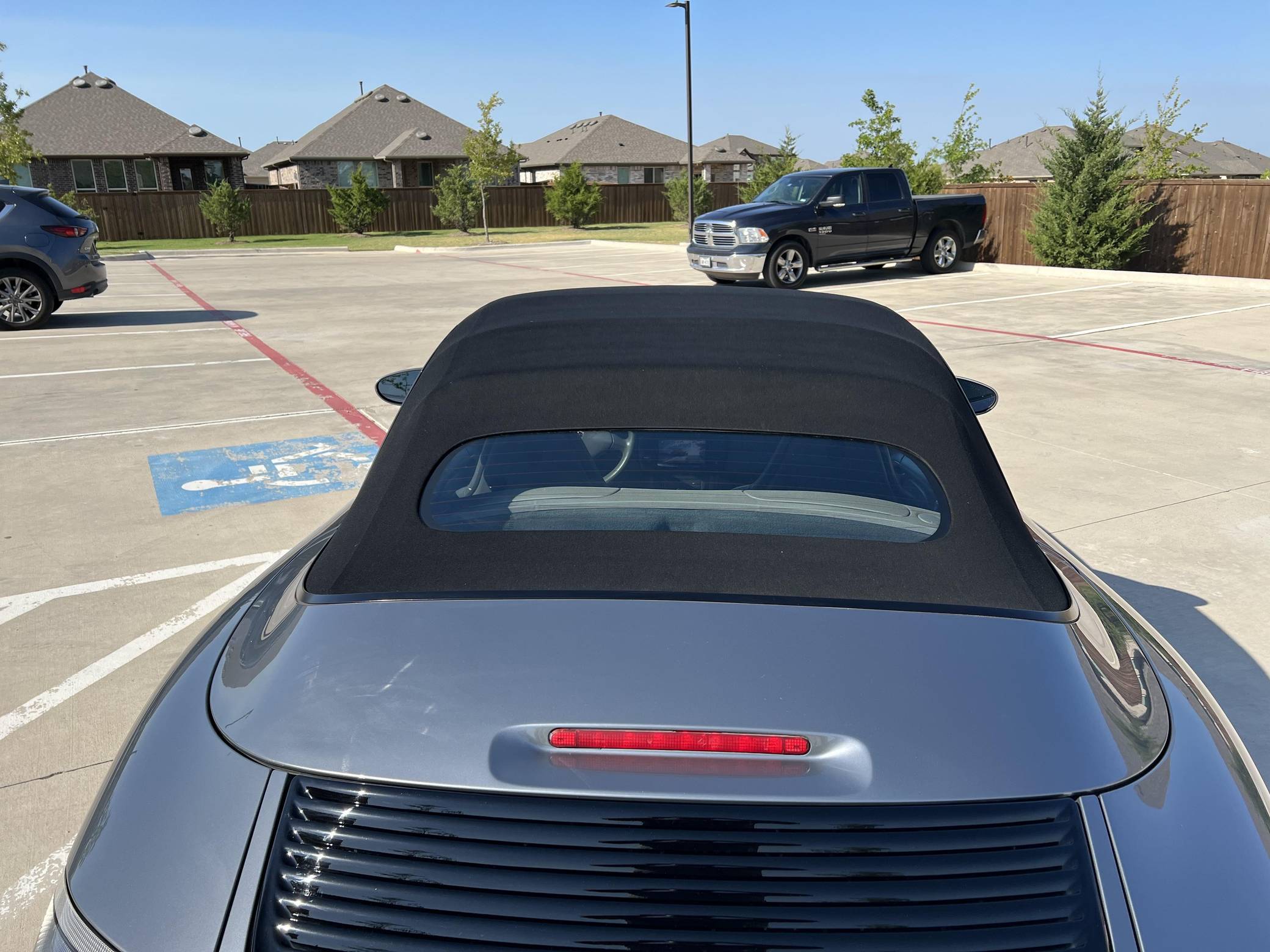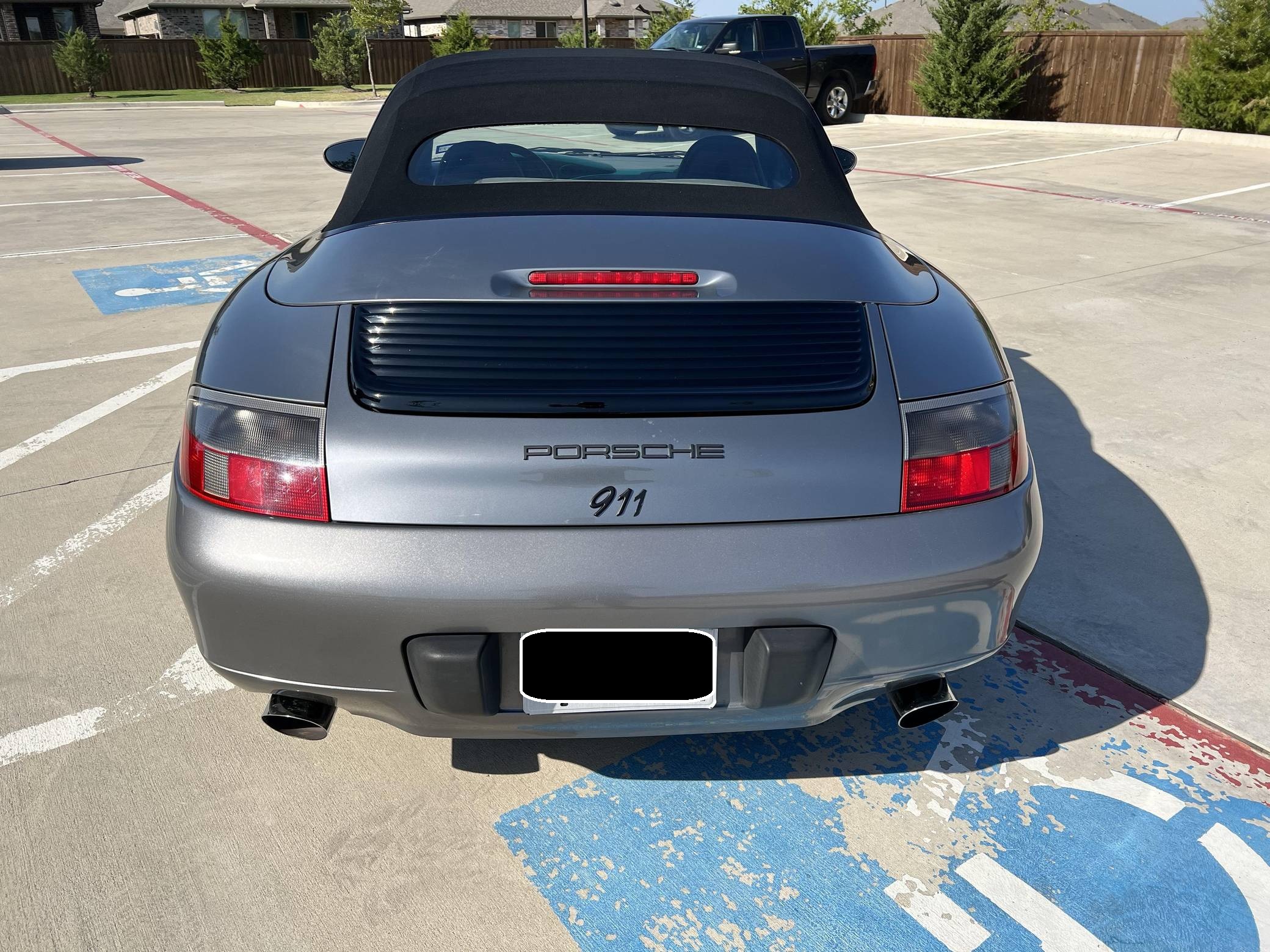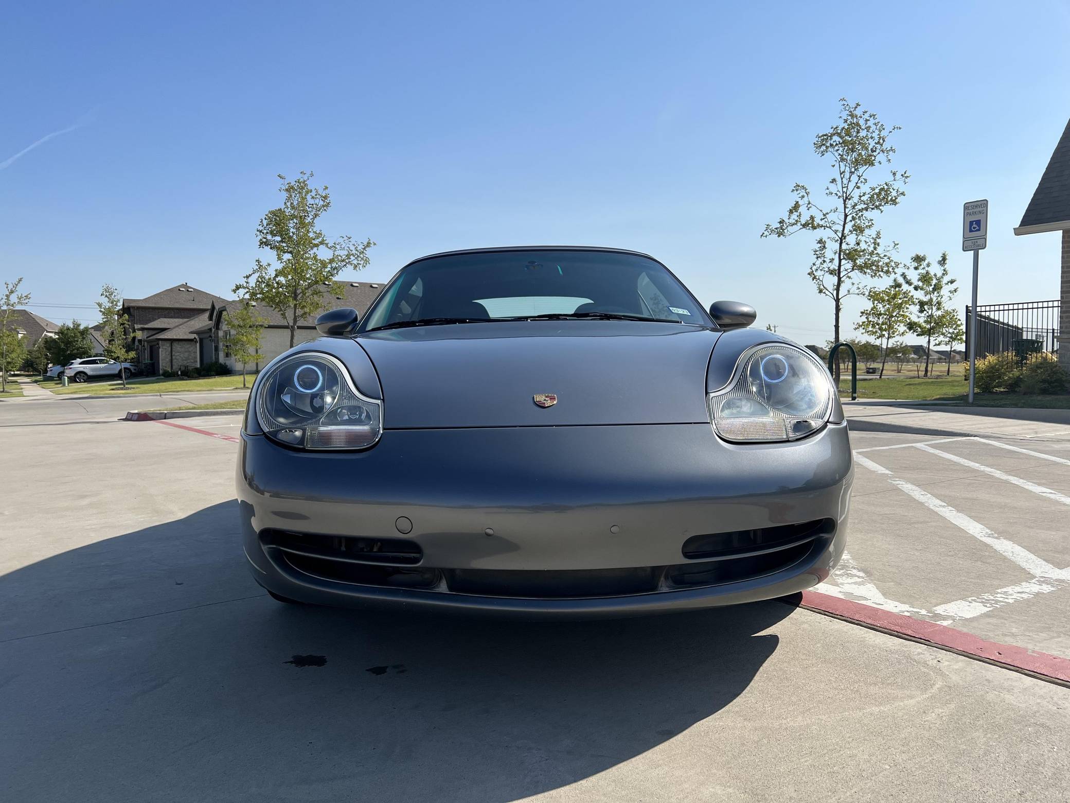 2001 Porsche 911 Carrera Cabriolet, finished in Seal Grey Metallic with a black soft top and a Graphite Grey interior. This 911 features the desirable 6-speed manual transmission, and its odometer currently displays approximately 56,500 miles. According to the build sheet provided in the gallery, factory equipment includes cross-drilled brake rotors, a power-retractable soft top, leather upholstery, heated sport seats, automatic climate control, and cruise control. The full list of modifications reported by the seller is detailed below. include an LN Engineering IMS bearing retrofit kit, 18-inch Turbo Look wheels, and a Pioneer touchscreen head unit with aftermarket rear view camera. The fifth-generation "996" 911 was introduced for the 1999 model year and was the first 911 to be completely redesigned from its predecessors. While its water-cooled engine and distinctive headlights irked some Porsche purists, the 996 is appreciated by enthusiasts for providing an analog driving experience compared to later generations and is considered to be the last "affordable" 911. As a result, the 996 and its unique styling has experienced a recent rise in popularity. Power comes from a 3. 4-liter flat-6, rated at 300 horsepower and 258 lb-ft of torque. Output is sent to the rear wheels via a 6-speed manual transmission.