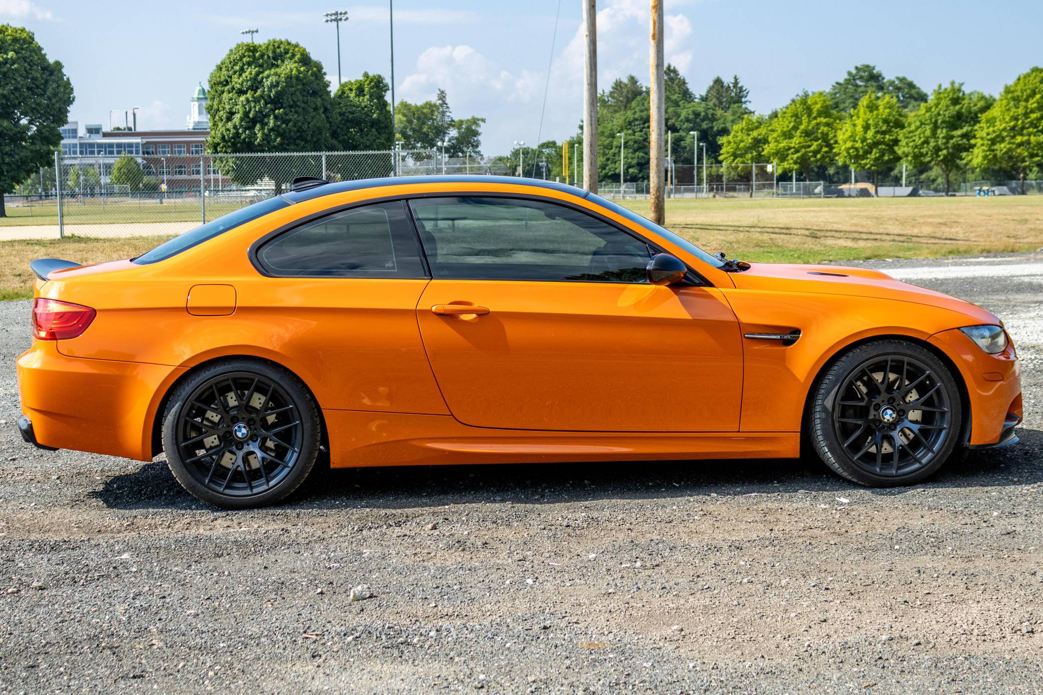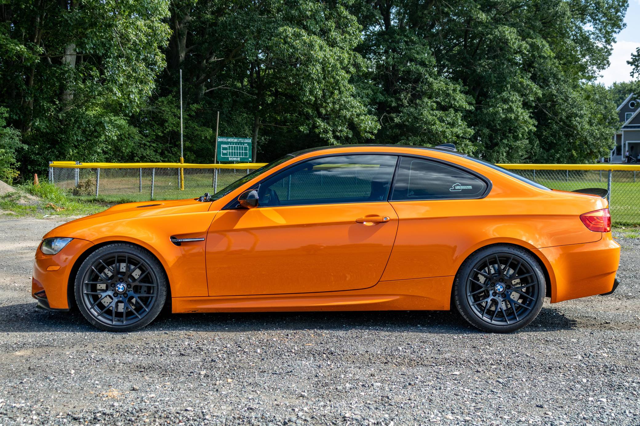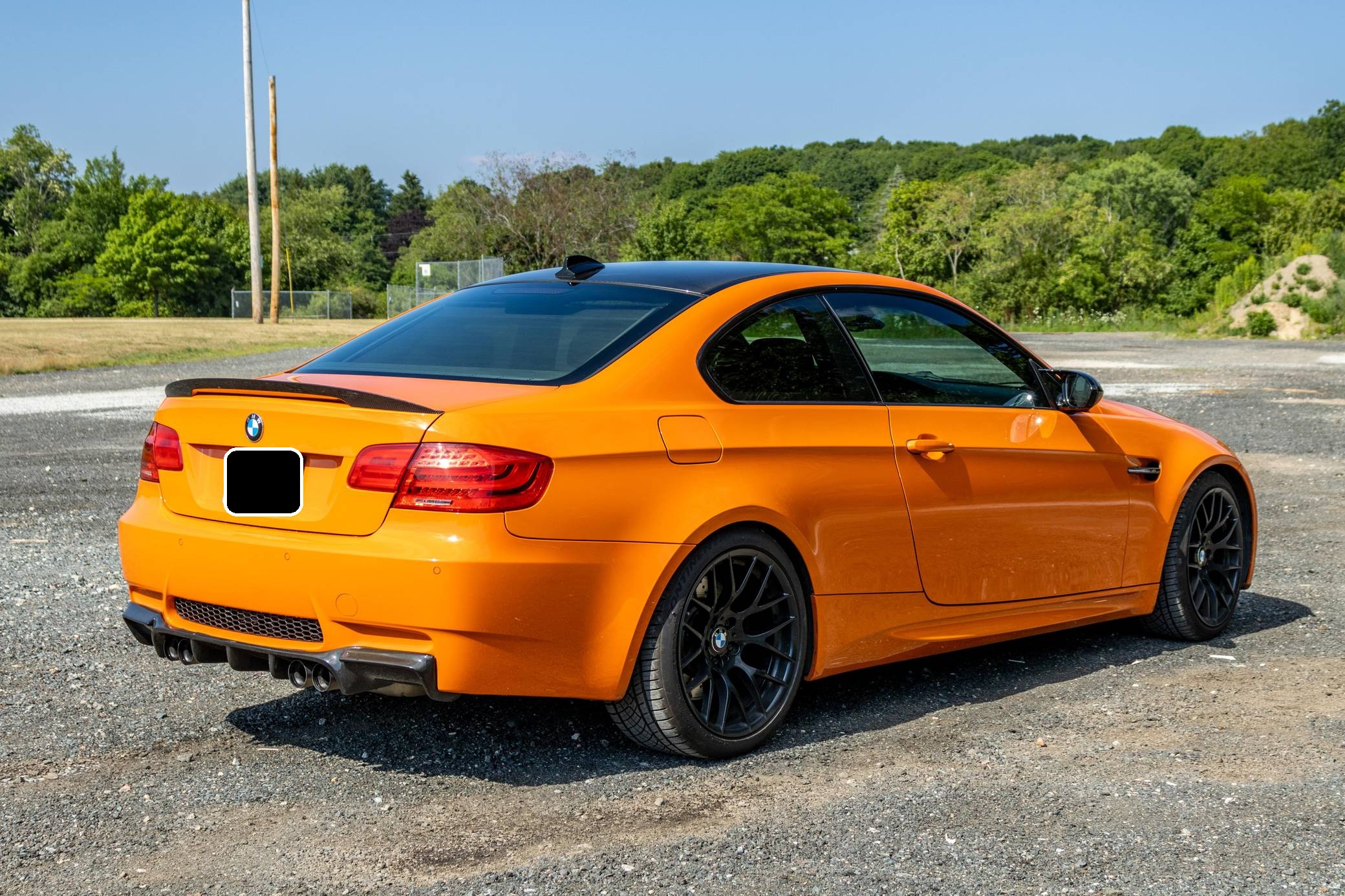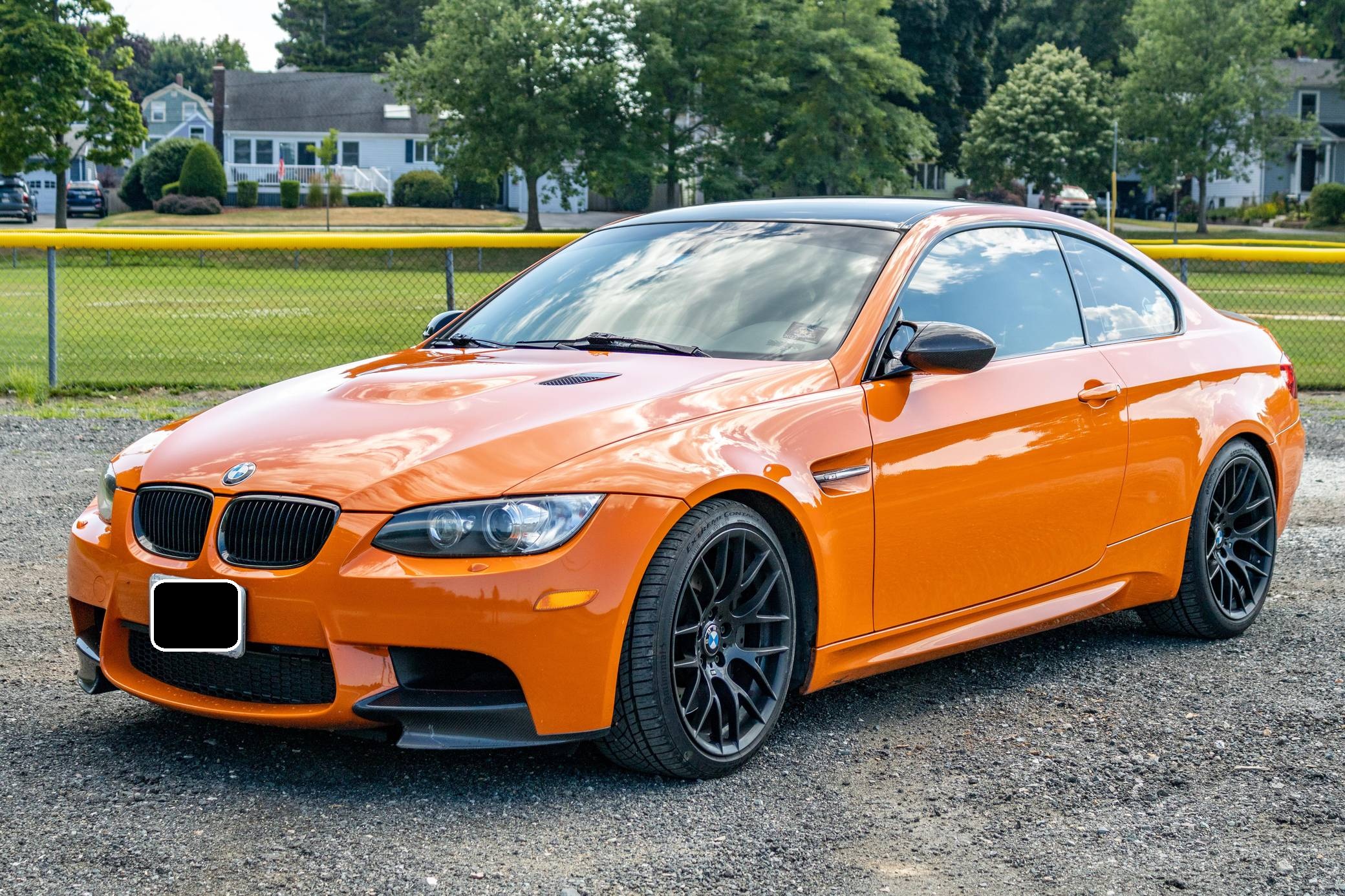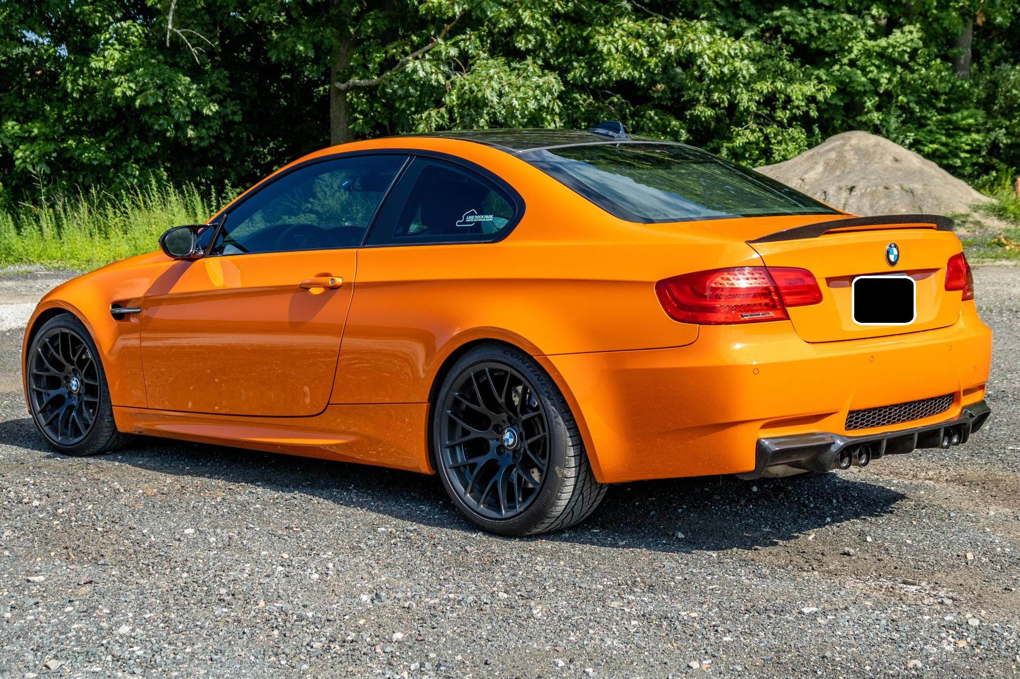 2013 BMW M3 Lime Rock Park Edition, finished in Fire Orange with a black interior. This M3 Lime Rock Park edition is one of 200 units made. Every Lime Rock Park Edition was equipped with the Competition Package, which includes a revised suspension system and Electronic Damper Control (EDC) settings, a revised Dynamic Stability Control (DSC) system, a slightly lower ride height, and Competition-specific 19-inch "Style 359" wheels. Factory equipment includes adaptive xenon headlights, a carbon fiber roof panel, Novillo leather upholstery, heated and power-adjustable front seats, and a navigation system. Modifications reported by the seller include the engine plenum painted orange, a rear M3 badge delete, a Vorsteiner carbon fiber rear diffuser, interior plastic pieces painted orange, and a BimmerTech MMI Prime system with Apple CarPlay and Android Auto capabilities. The Lime Rock Park Edition M3 was released in 2013 for the final model year of the E92 M3, and production was limited to 200 units for the U. S market. These "LRP" Edition M3 models share the name with Connecticut's famous natural-terrain 1. 53-mile race track situated in the Berkshire mountains. Power comes from a 4. 0-liter V8 engine, rated at 414 horsepower and 295 lb-ft of torque. Output is sent to the rear wheels via a 7-speed automatic transmission.