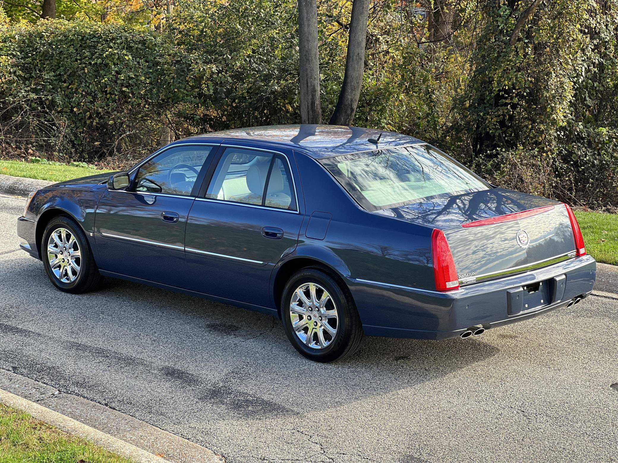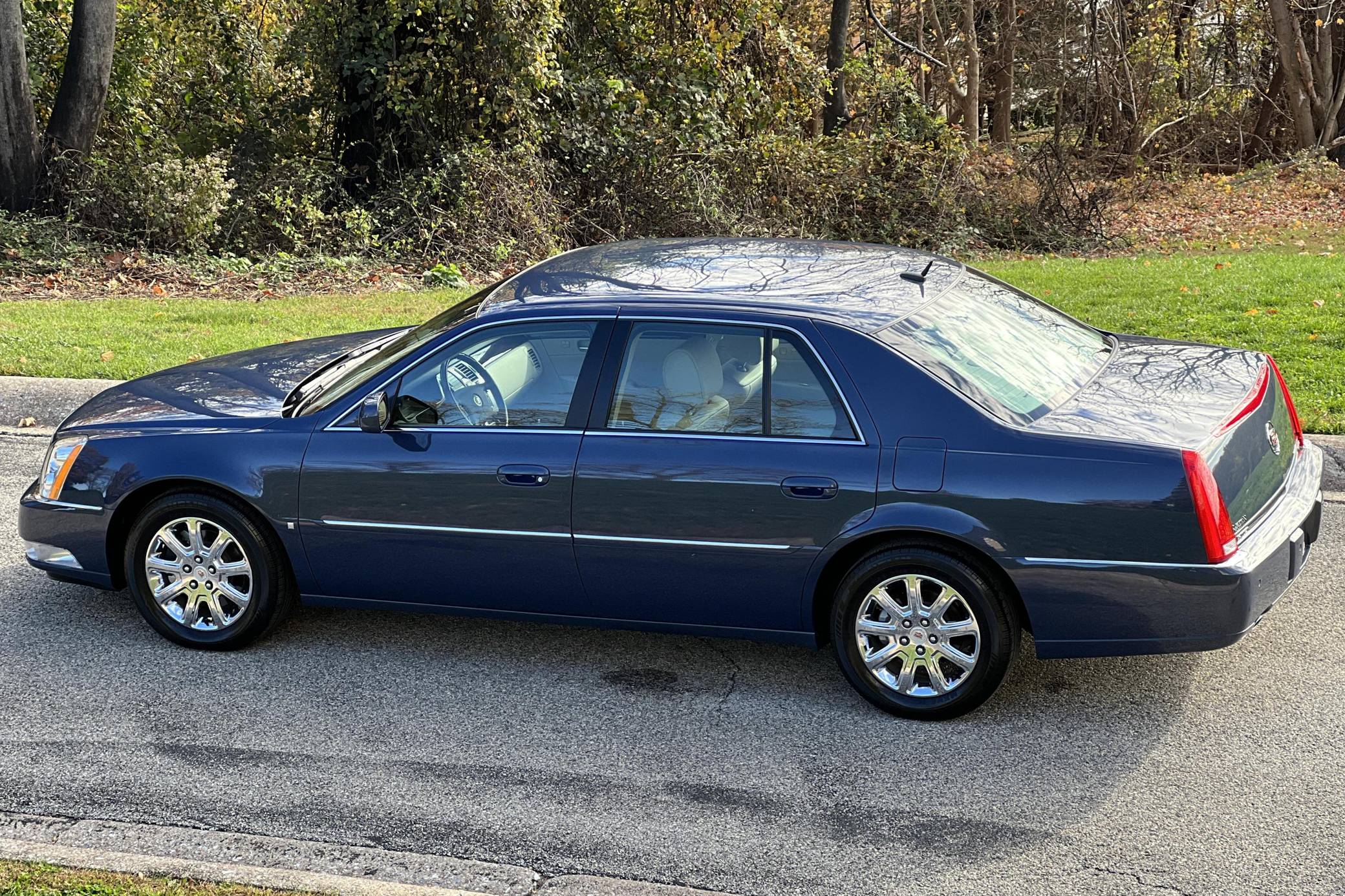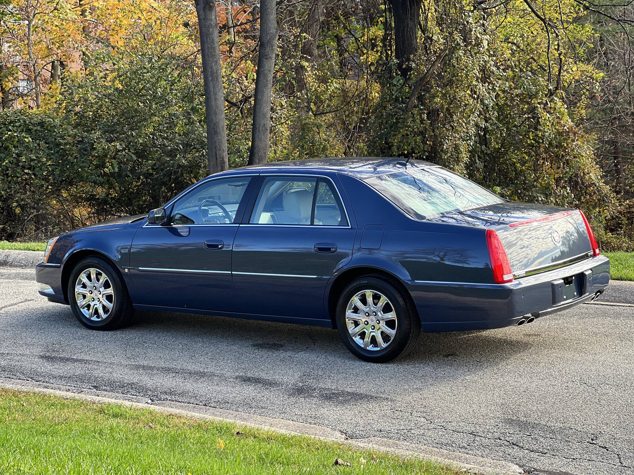 THIS. . . is a 2008 Cadillac DTS, finished in Blue Diamond Tricoat with a Shale interior. The odometer on this DTS indicates about 1,700 miles. It also confirms that it was a one-owner car until 2022. This DTS features the Luxury III trim, and factory equipment includes 17-inch chrome wheels, leather upholstery, heated, cooled, and massaging front seats, heated rear seats, front and rear lumbar control, a heated steering wheel, 3-zone climate control, a power rear sunshade, rear vanity mirrors, a 6-disc CD changer, and a Bose audio system. The seller reports no modifications. The short-lived Cadillac DTS was introduced for the 2006 model year as the successor to the long-running DeVille. It was one of the last of its kind as a full-size, V8-powered, American luxury sedan. Riding on GM's K platform, it was replaced by the XTS after a 5-year run as the luxury brand's biggest FWD sedan. Power comes from a "Northstar" 4. 6-liter V8 engine, rated at 275 horsepower and 295 lb-ft of torque. Output is sent to the front wheels via a 4-speed automatic transmission.