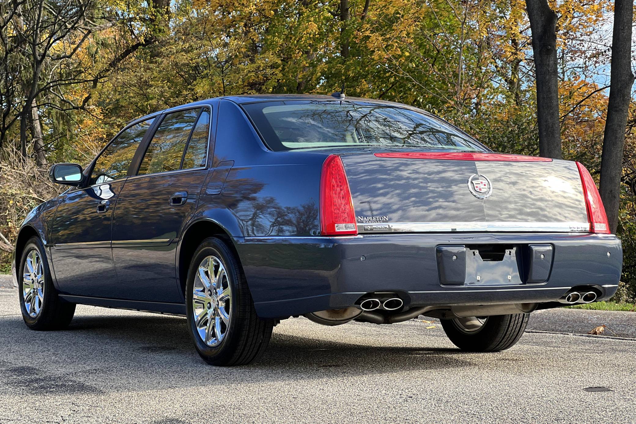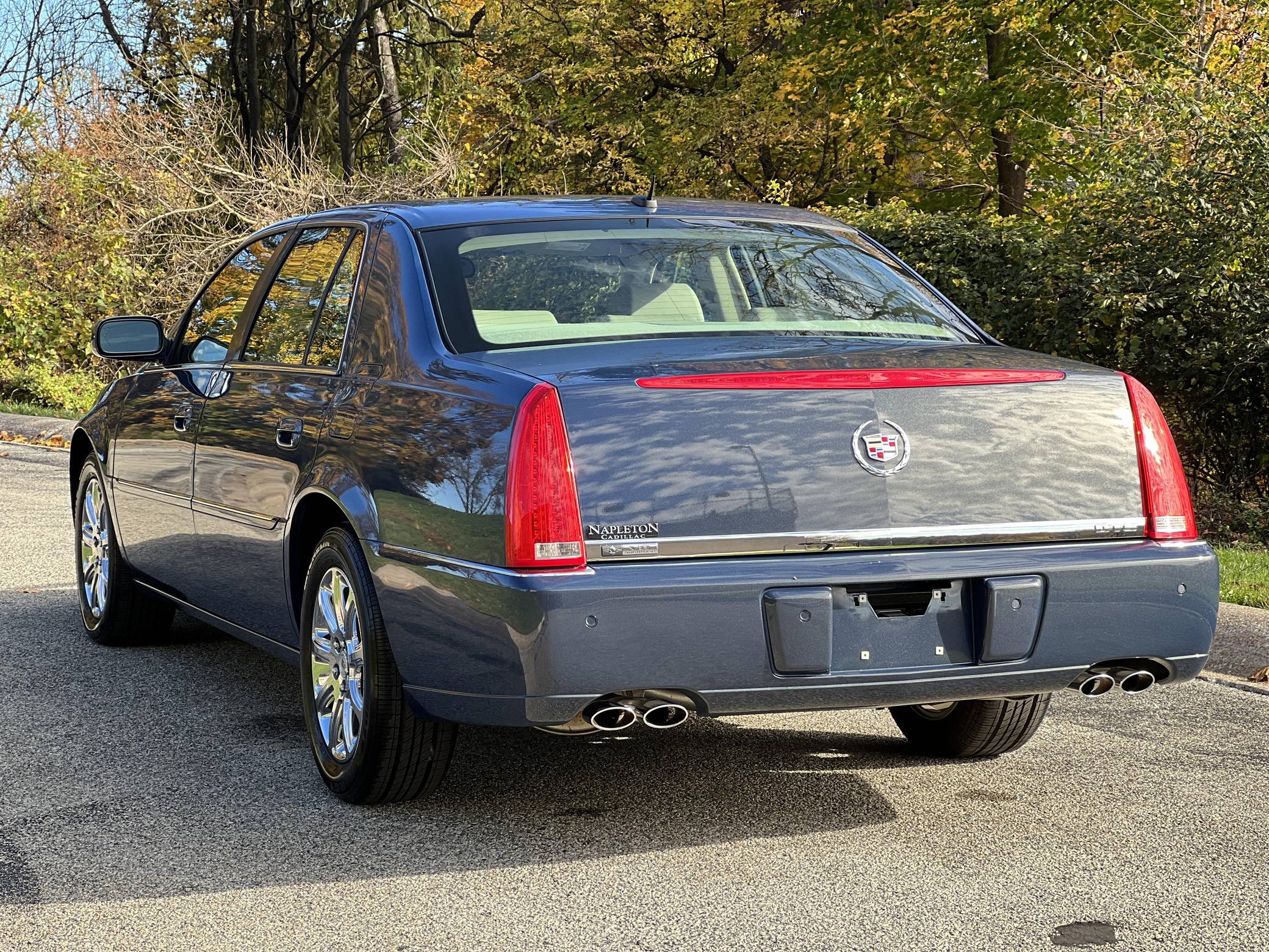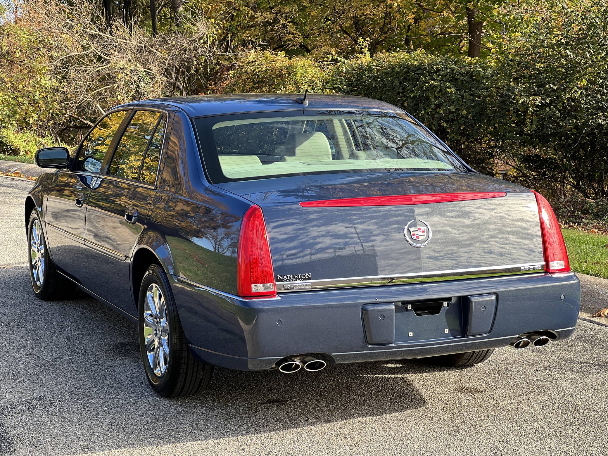 THIS. . . is a 2008 Cadillac DTS, finished in Blue Diamond Tricoat with a Shale interior. The odometer on this DTS indicates about 1,700 miles. It also confirms that it was a one-owner car until 2022. This DTS features the Luxury III trim, and factory equipment includes 17-inch chrome wheels, leather upholstery, heated, cooled, and massaging front seats, heated rear seats, front and rear lumbar control, a heated steering wheel, 3-zone climate control, a power rear sunshade, rear vanity mirrors, a 6-disc CD changer, and a Bose audio system. The seller reports no modifications. The short-lived Cadillac DTS was introduced for the 2006 model year as the successor to the long-running DeVille. It was one of the last of its kind as a full-size, V8-powered, American luxury sedan. Riding on GM's K platform, it was replaced by the XTS after a 5-year run as the luxury brand's biggest FWD sedan. Power comes from a "Northstar" 4. 6-liter V8 engine, rated at 275 horsepower and 295 lb-ft of torque. Output is sent to the front wheels via a 4-speed automatic transmission.