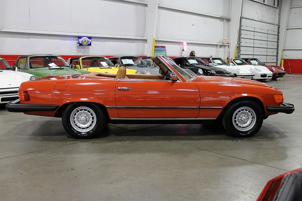 The SL class has been a top luxury line of production cars for decades producing ahead of the pack features, comforts, and performance. The R107 model SL came on to the scene in 1972. With the debut of a V8 engine in this lineup, the 450SL was larger and produced a much more modern ride. The fuel injected V8 features an overhead cam and delivered 230 horsepower paired with a 3-speed automatic transmission. The suspension is fully independent and 4-wheel disc brakes came standard. Enjoy the great ride with the removable hardtop on, with the convertible soft top, or an awesome open air roadster experience. This low-mileage 1978 450SL came out of Mercedes Motoring (out of Glendale, California) who are known for their tenacious attention to detail. This was completely gone over to bring this car to the pristine condition it is in, but the paint and sheet metal are 100% original. This is a true under 30,000 original miles masterpiece, and may well be the best R107 on the road today. This is a car that has been restored to stock condition while featuring vinyl seats, power windows, power steering, power brakes, climate control, and the original wheels. The removable hardtop and retracting soft top are both in excellent condition. The only thing better than seeing this car in our pictures, is seeing it in person. This museum piece runs and drives great!