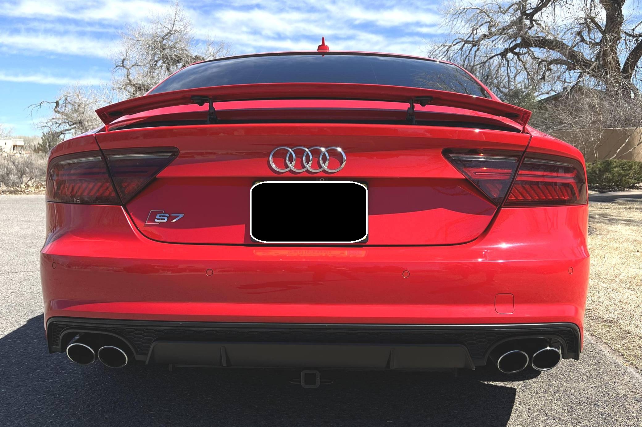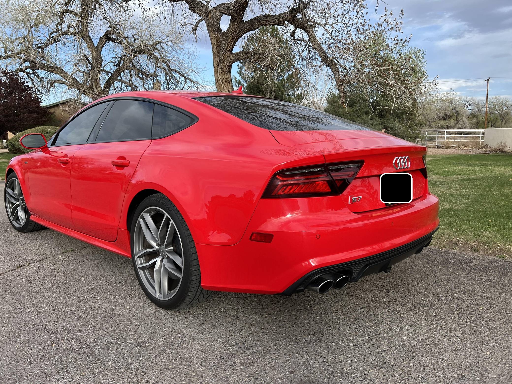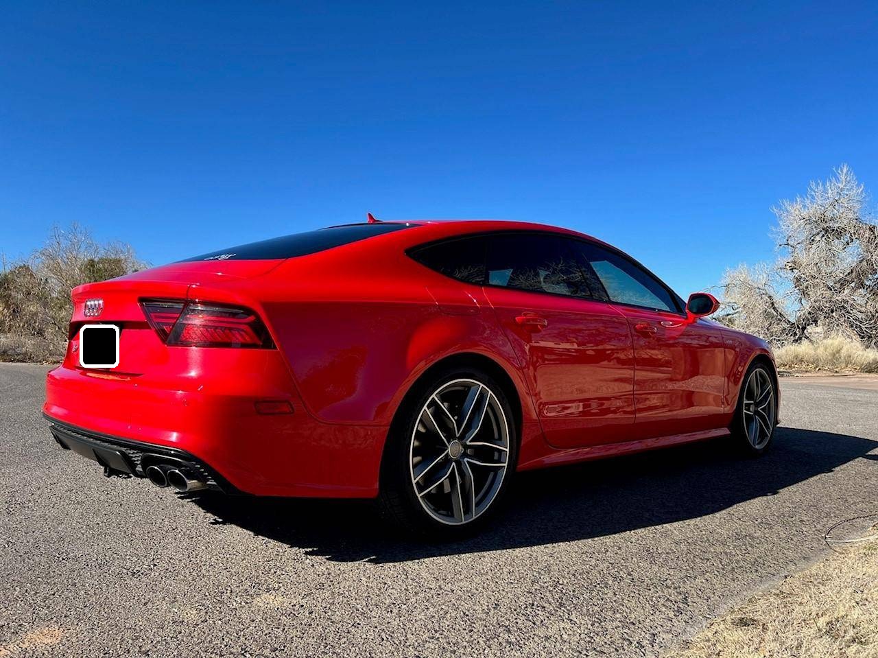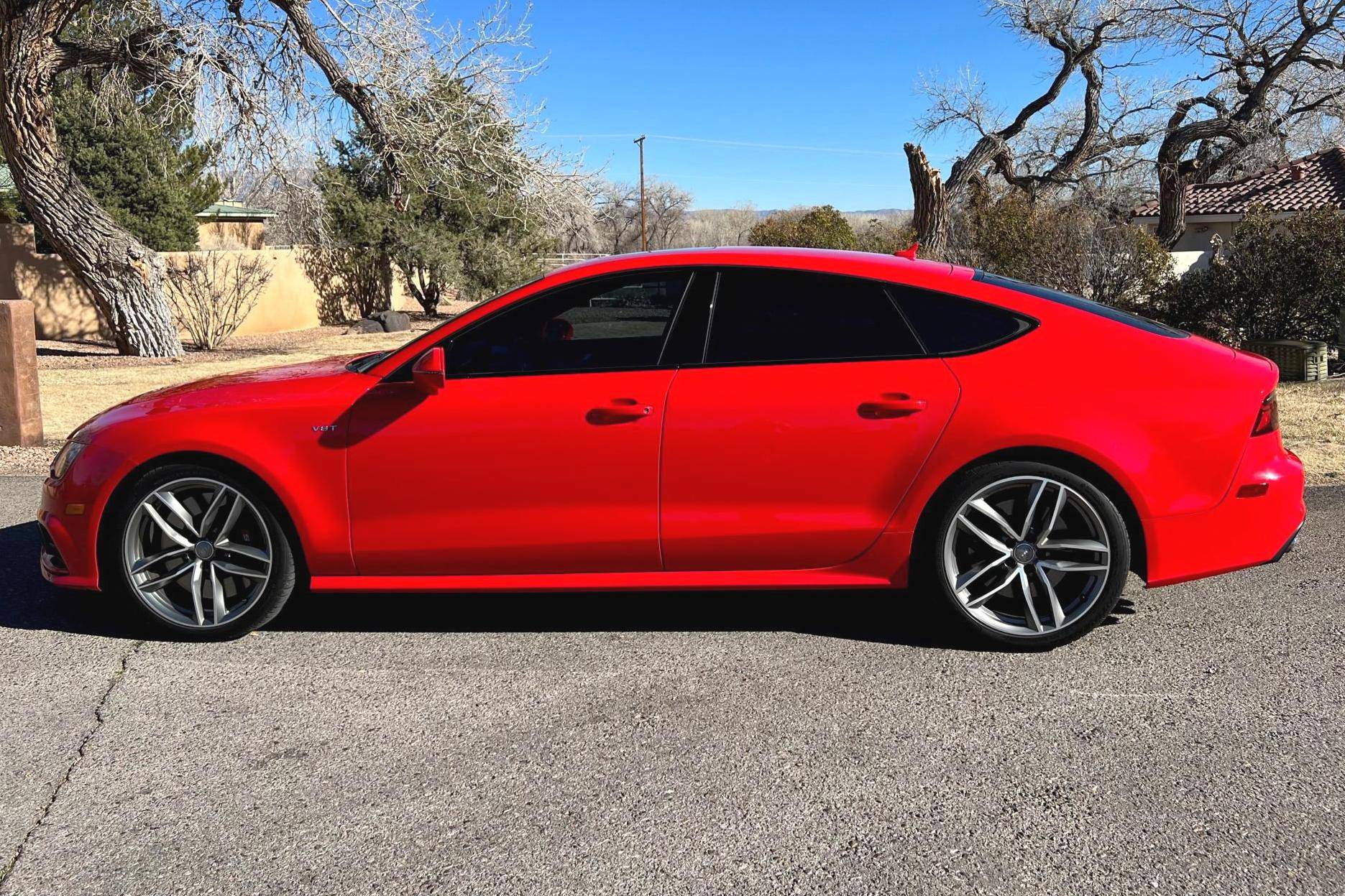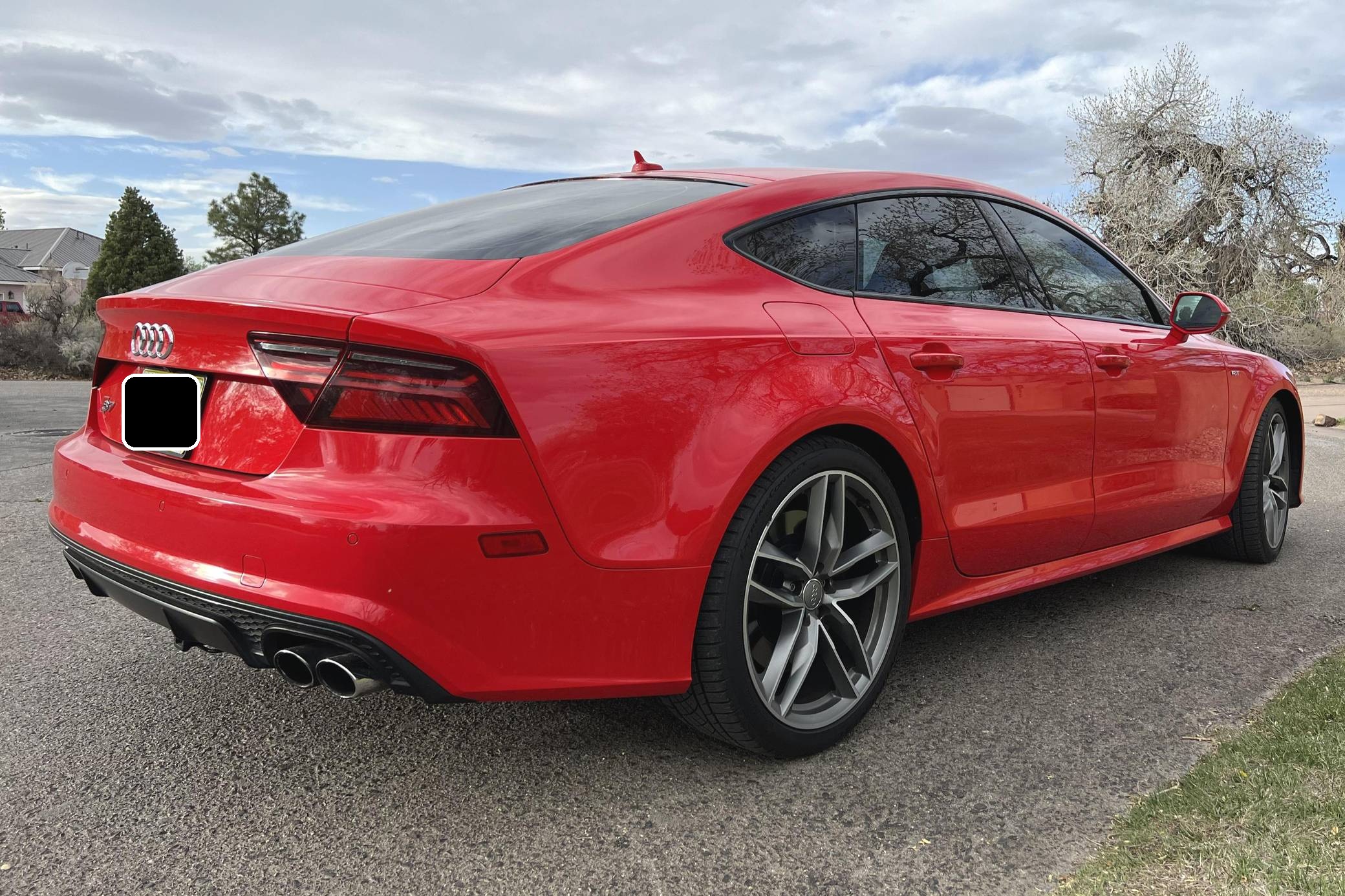 2017 Audi S7, finished in Misano Red Pearl Effect with a black interior. Factory equipment includes the Black Optic Package, the Cold Weather Package, the Driver Assistance Package, full LED headlights, a power sunroof, an active rear spoiler, Valcona leather upholstery, Carbon Atlas decorative inlays, power-adjustable and heated front sport seats with driver memory, a black Alcantara headliner, a Bose surround-sound system, Audi navigation plus with MMI touch, a power liftgate, and more as detailed below. Modifications reported by the seller are limited to a class 1 trailer hitch with a 1. 25-inch receiver and tinted windows. Audi launched the first-generation A7 for the 2012 model year as its style icon, and it expanded the range with the V8-powered S7 for 2013. Both were related to the A6 under the sheet metal, but they stood out with a gorgeous design and surprising practicality thanks to a large hatch. An update for the 2016 model year brought revised sheet metal and a significant bump in power, making the S7 quicker and more luxurious than before. Power comes from a 4. 0-liter turbocharged V8 engine, rated at 450 horsepower and 406 lb-ft of torque. Output is sent to all four wheels via a 7-speed automatic transmission and Audi's Quattro all-wheel-drive system.