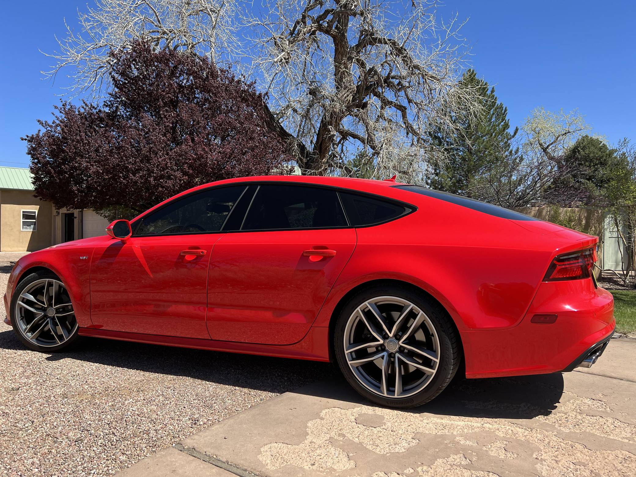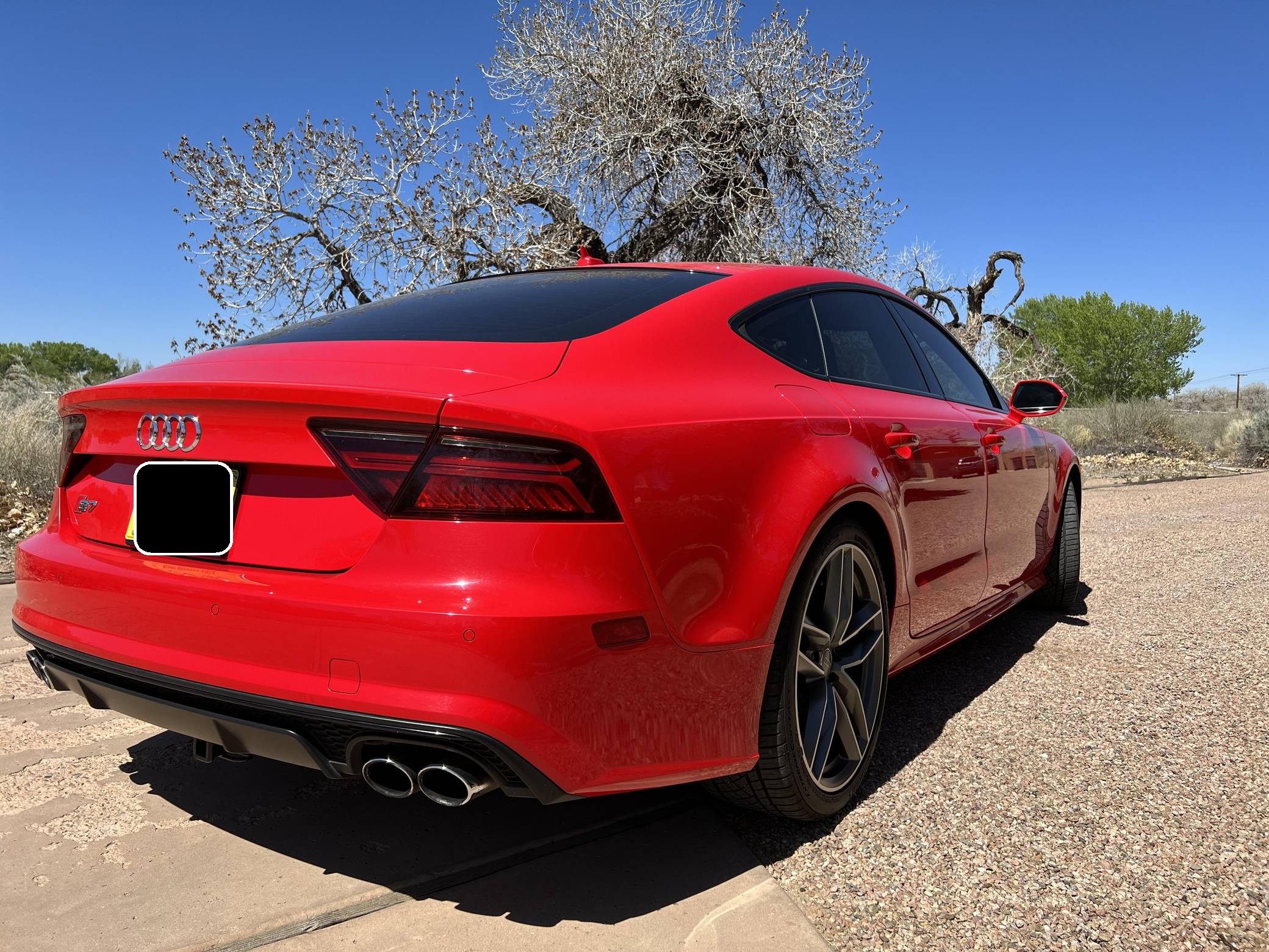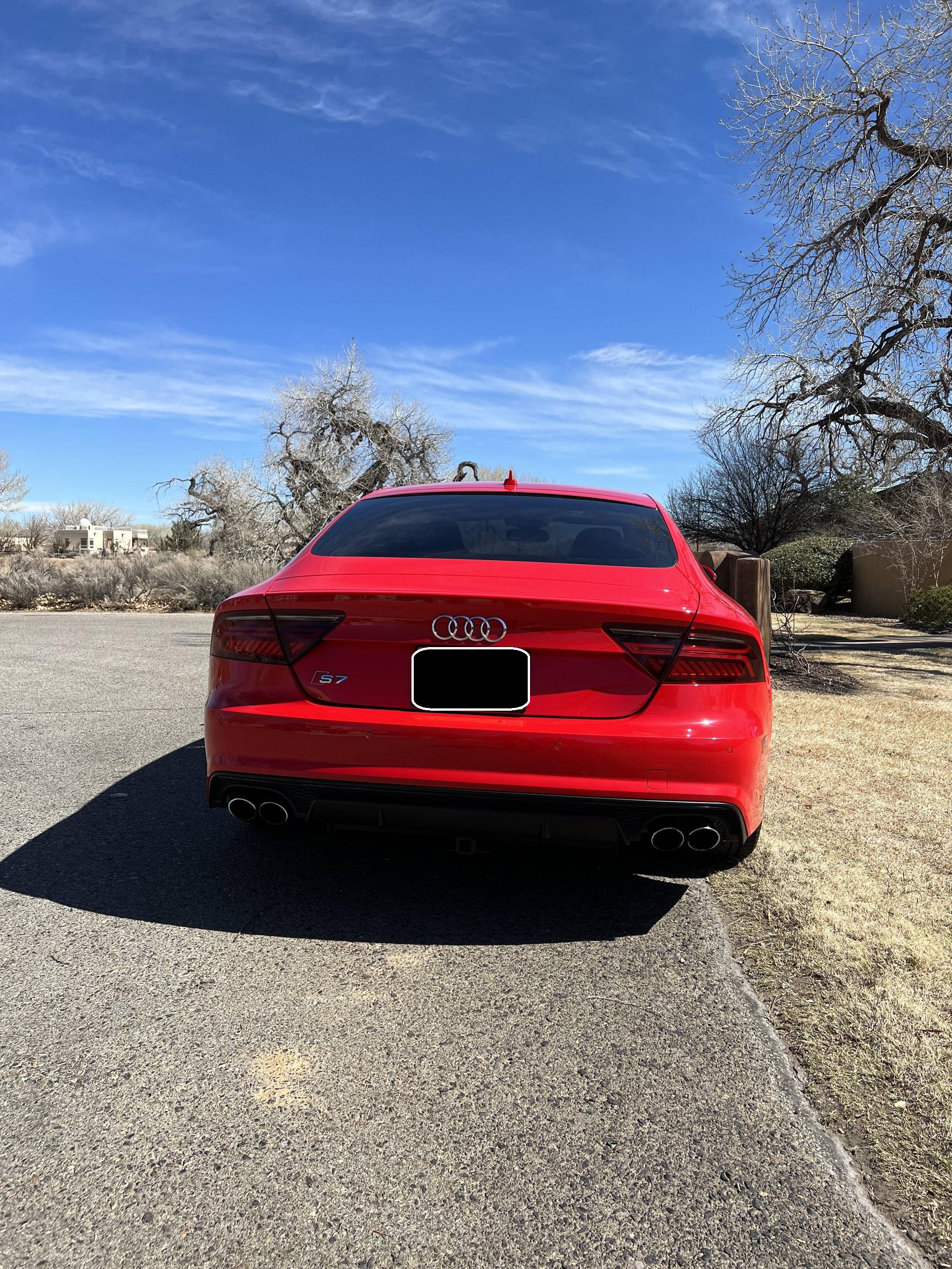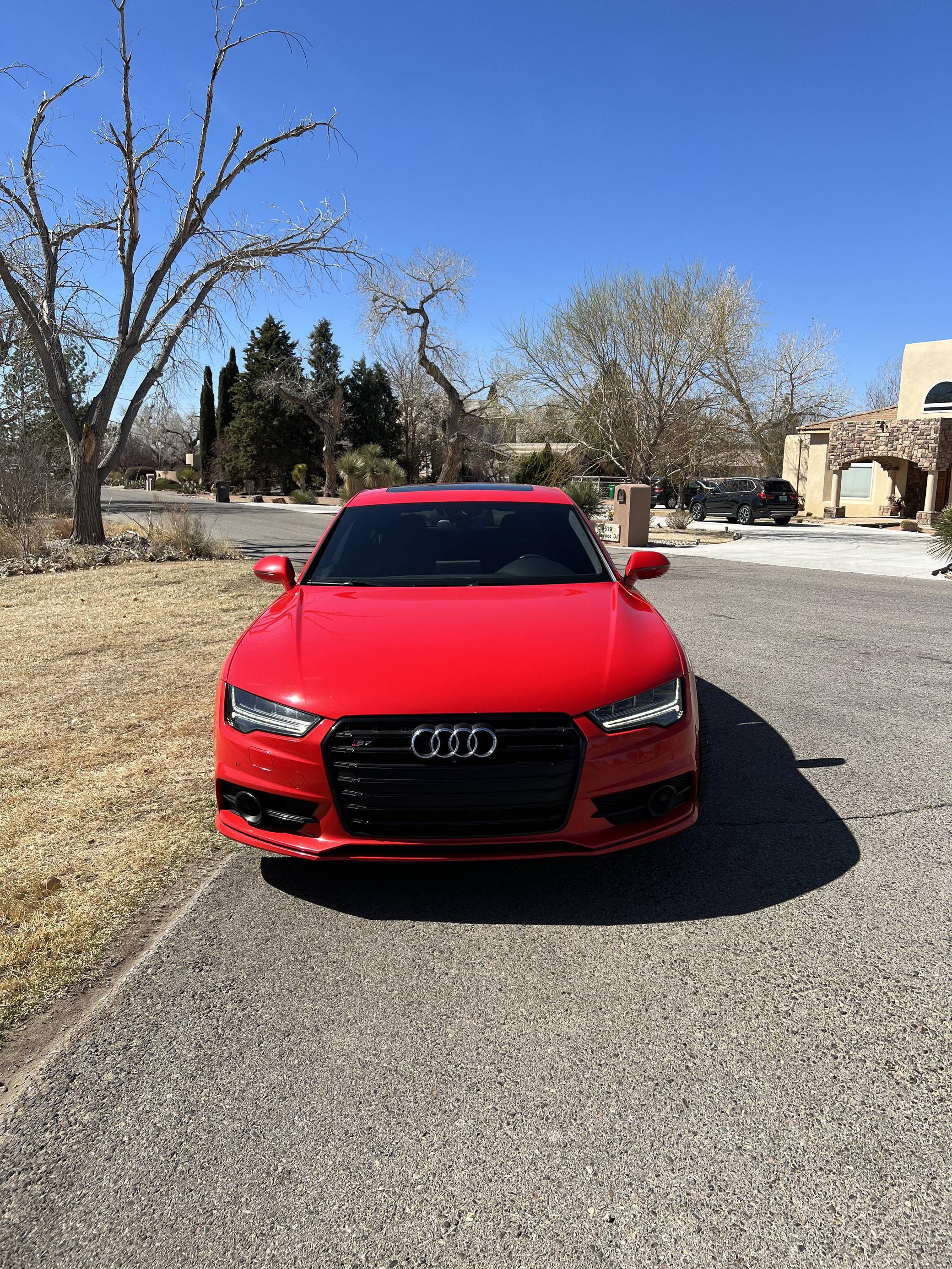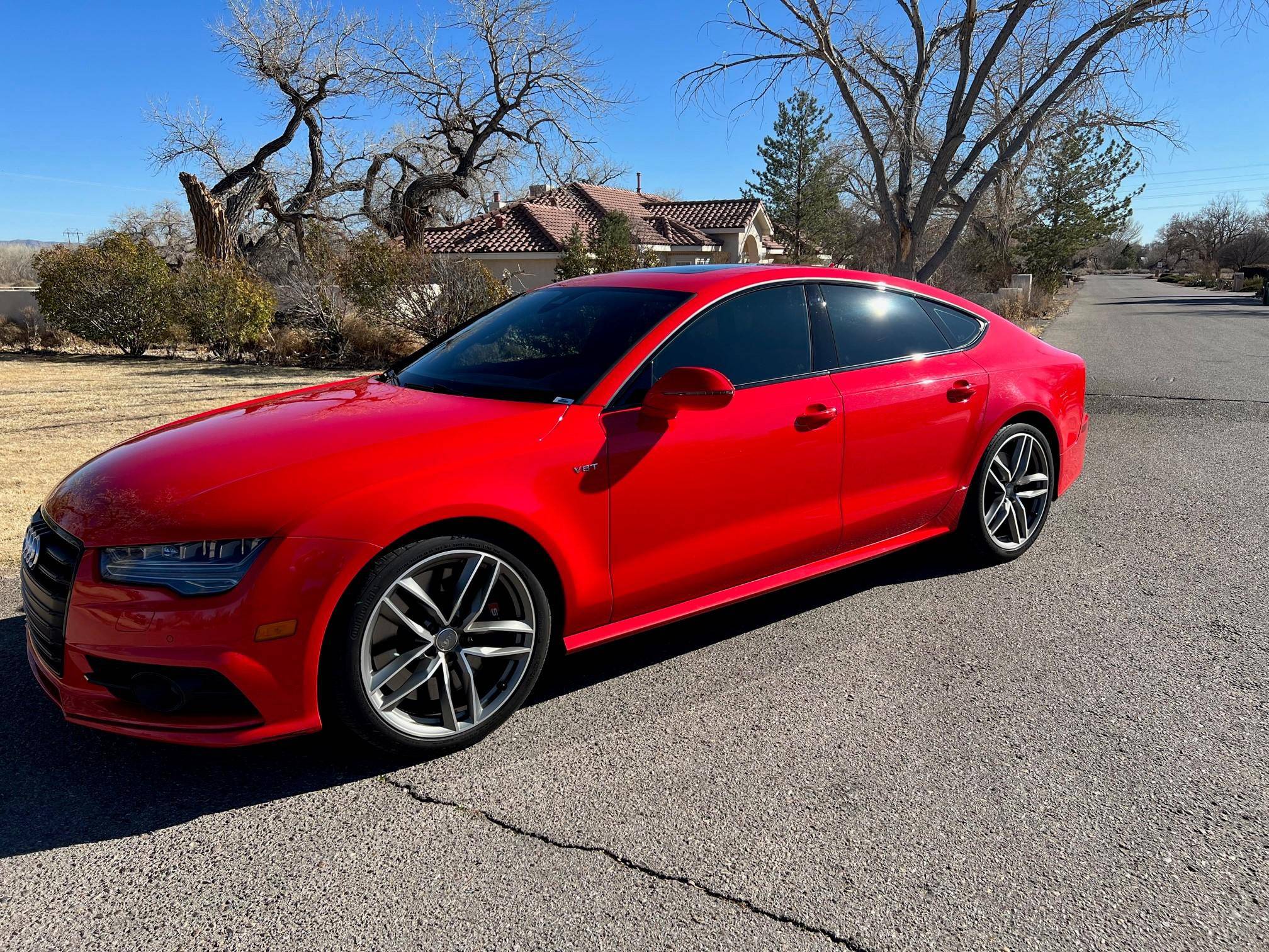 2017 Audi S7, finished in Misano Red Pearl Effect with a black interior. Factory equipment includes the Black Optic Package, the Cold Weather Package, the Driver Assistance Package, full LED headlights, a power sunroof, an active rear spoiler, Valcona leather upholstery, Carbon Atlas decorative inlays, power-adjustable and heated front sport seats with driver memory, a black Alcantara headliner, a Bose surround-sound system, Audi navigation plus with MMI touch, a power liftgate, and more as detailed below. Modifications reported by the seller are limited to a class 1 trailer hitch with a 1. 25-inch receiver and tinted windows. Audi launched the first-generation A7 for the 2012 model year as its style icon, and it expanded the range with the V8-powered S7 for 2013. Both were related to the A6 under the sheet metal, but they stood out with a gorgeous design and surprising practicality thanks to a large hatch. An update for the 2016 model year brought revised sheet metal and a significant bump in power, making the S7 quicker and more luxurious than before. Power comes from a 4. 0-liter turbocharged V8 engine, rated at 450 horsepower and 406 lb-ft of torque. Output is sent to all four wheels via a 7-speed automatic transmission and Audi's Quattro all-wheel-drive system.