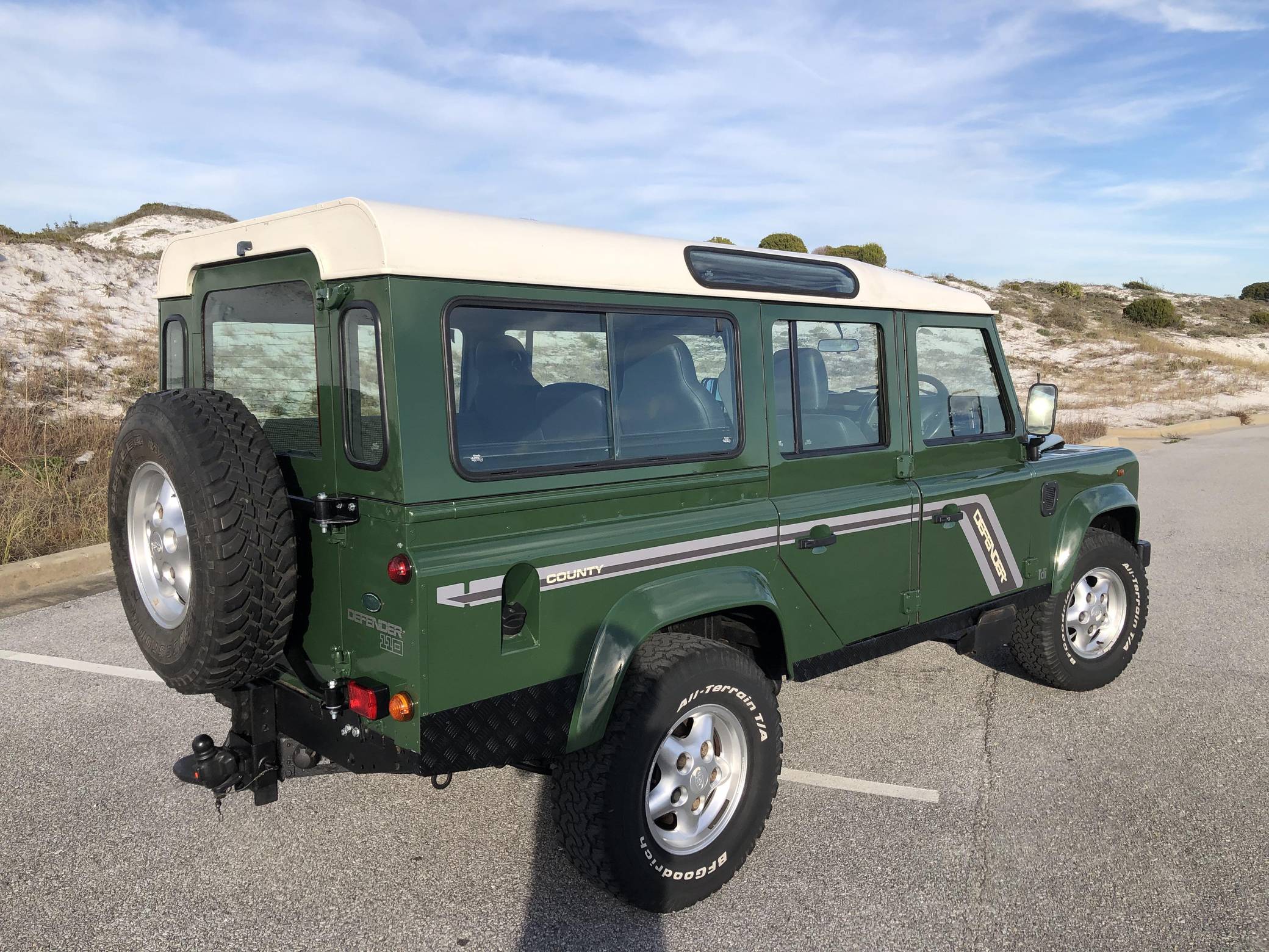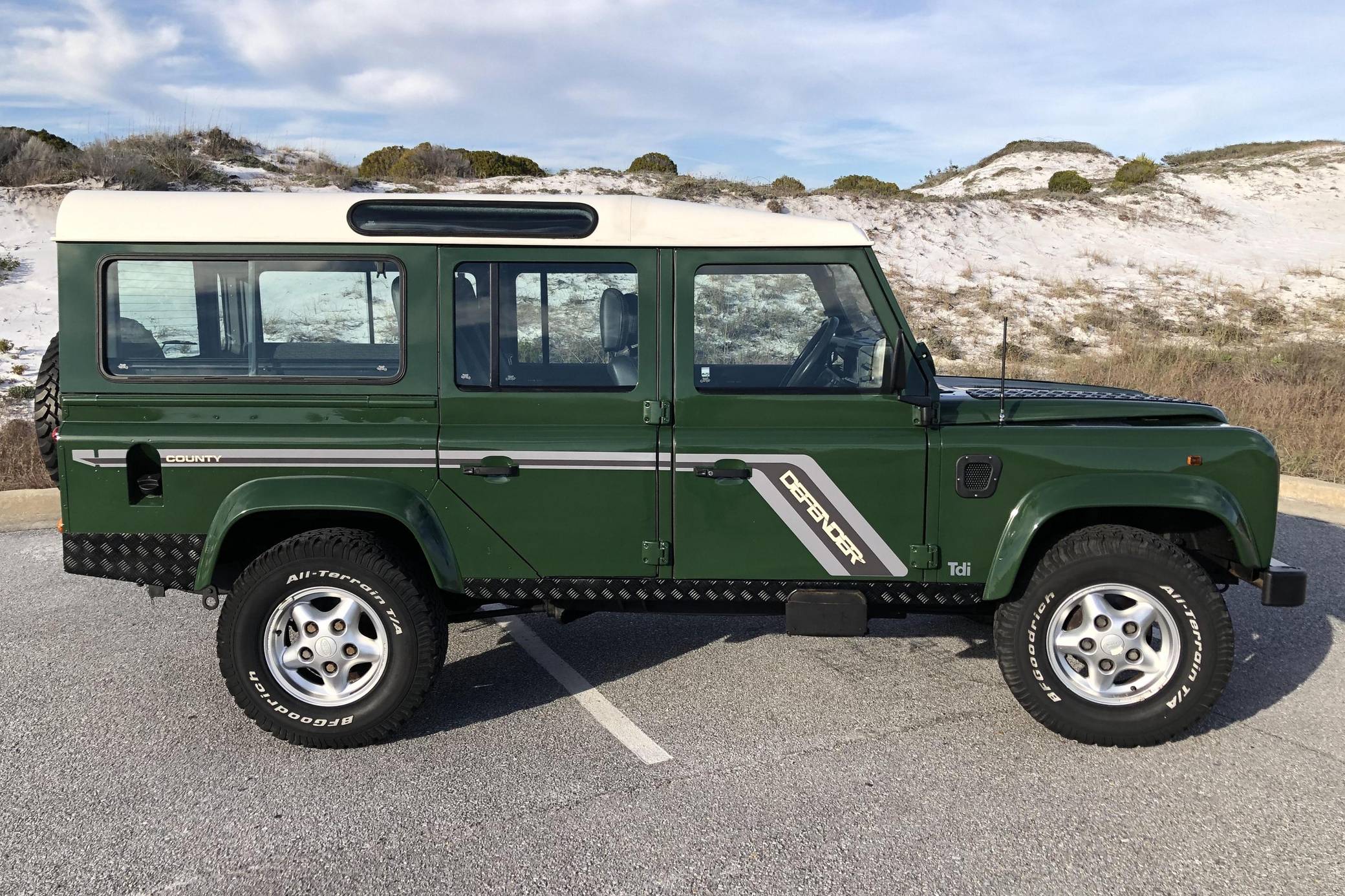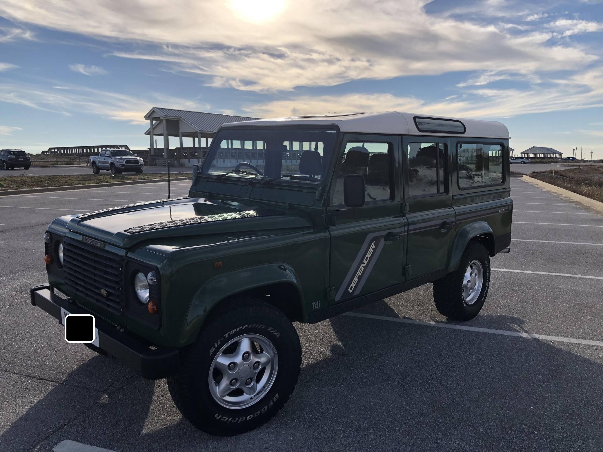 1995 Land Rover Defender 110, finished in Coniston Green with a gray interior. This is a right-hand-drive, British-spec SUV that was reportedly imported from England in 2020. Factory equipment on this 12-seater Defender includes 16-inch wheels, a trailer hitch, a sunroof, and sliding rear windows. Modifications reported by the seller include diamond plating on some of the exterior surfaces, an aftermarket antenna, a JVC CD player, and blue hoses in the engine bay. Land Rover introduced the four-door 110 and the two-door 90 in 1983 and 1984, respectively, to replace the long-running Series III. While both models looked a lot like their predecessors, they offered users a more up-to-date interior, a permanent 4-wheel-drive system, and a coil spring suspension system. The 110 and the 90 morphed into the original Defender in 1990, though the numerical designations remained to differentiate two- and four-door models, and production carried on with minor updates until 2016. Power comes from a 2. 5-liter "300 TDi" 4-cylinder turbodiesel engine, rated at 111 horsepower and 195 lb-ft of torque. It spins the four wheels via a 5-speed manual transmission and a 2-speed transfer case.