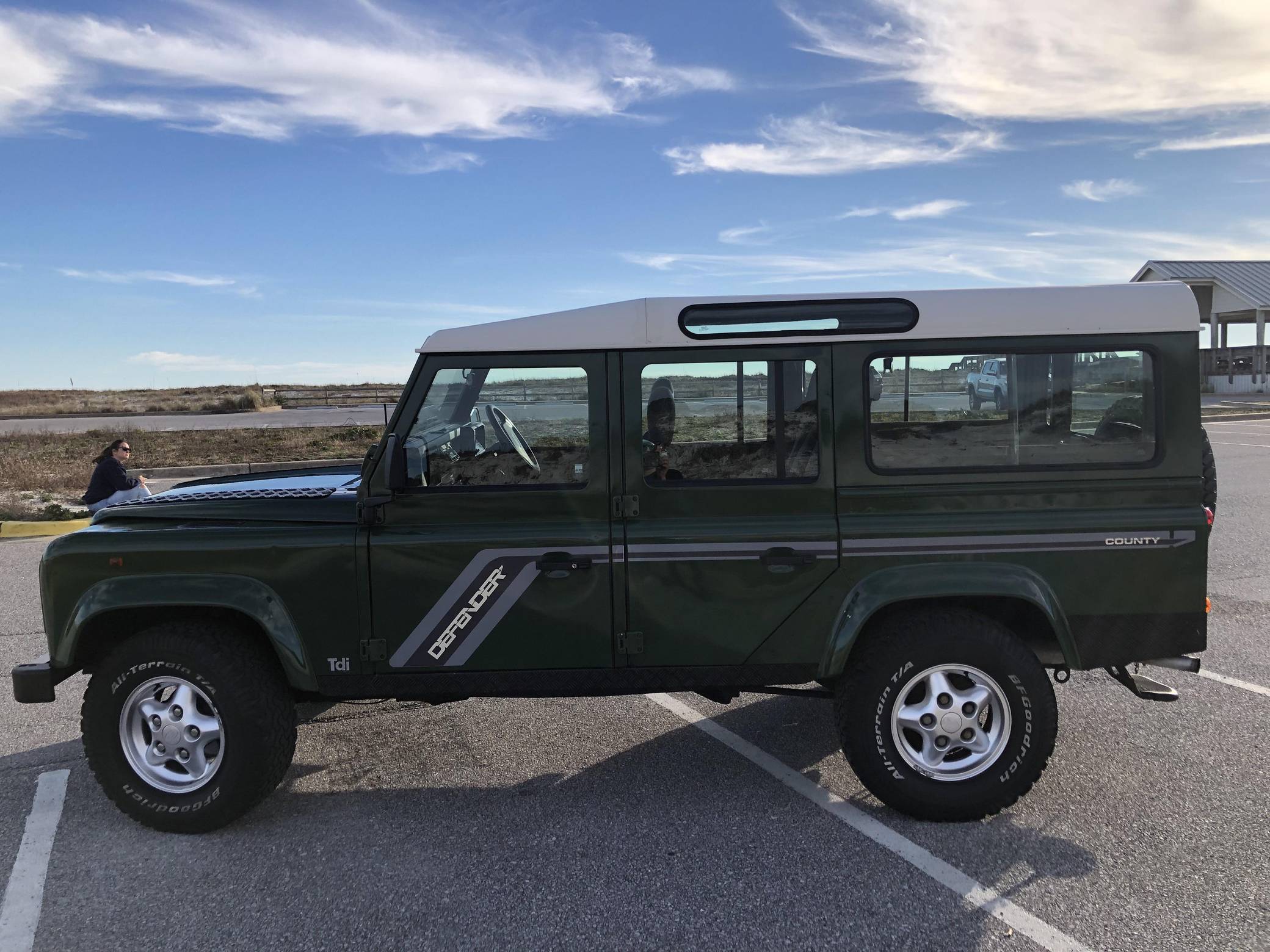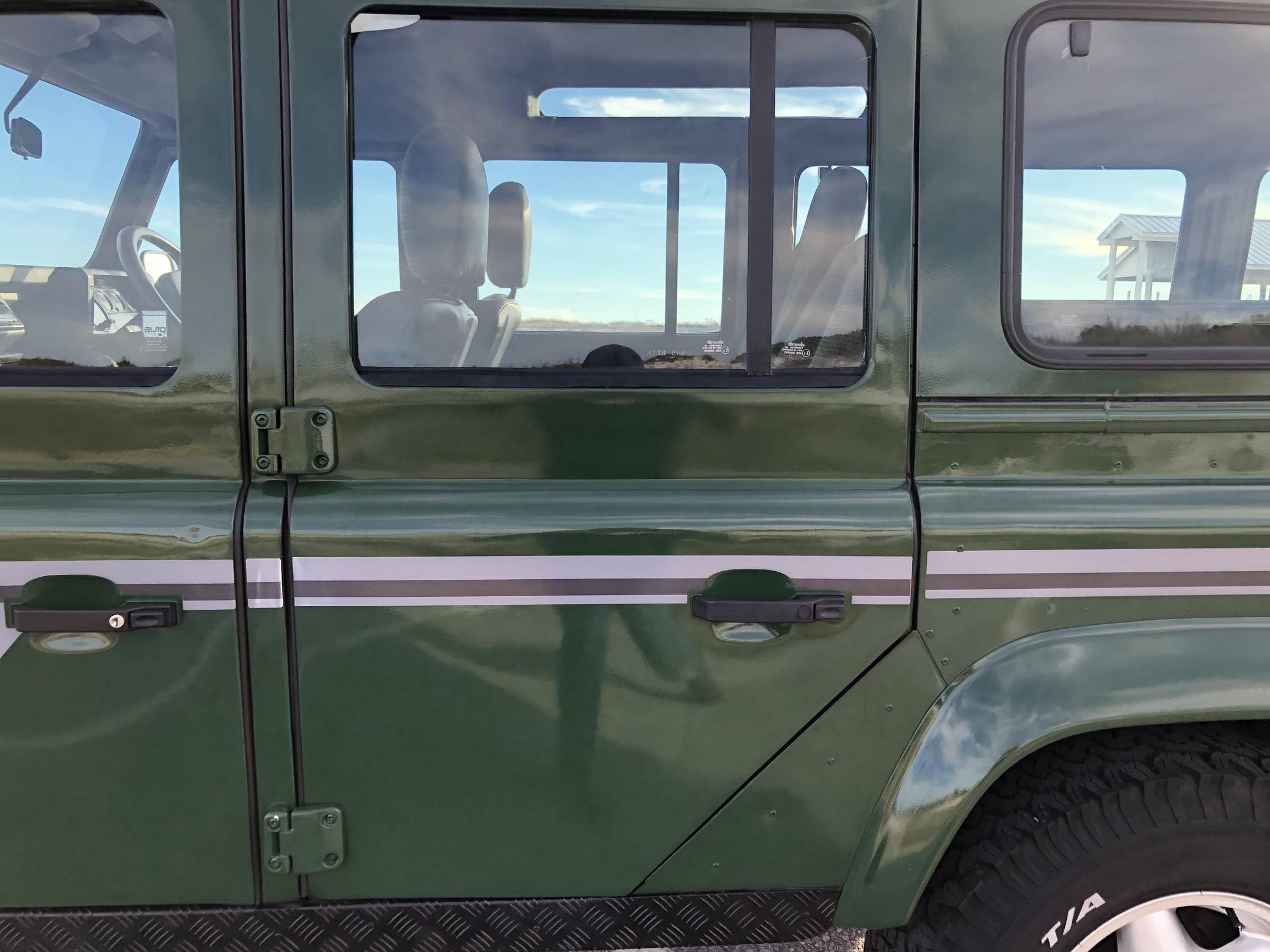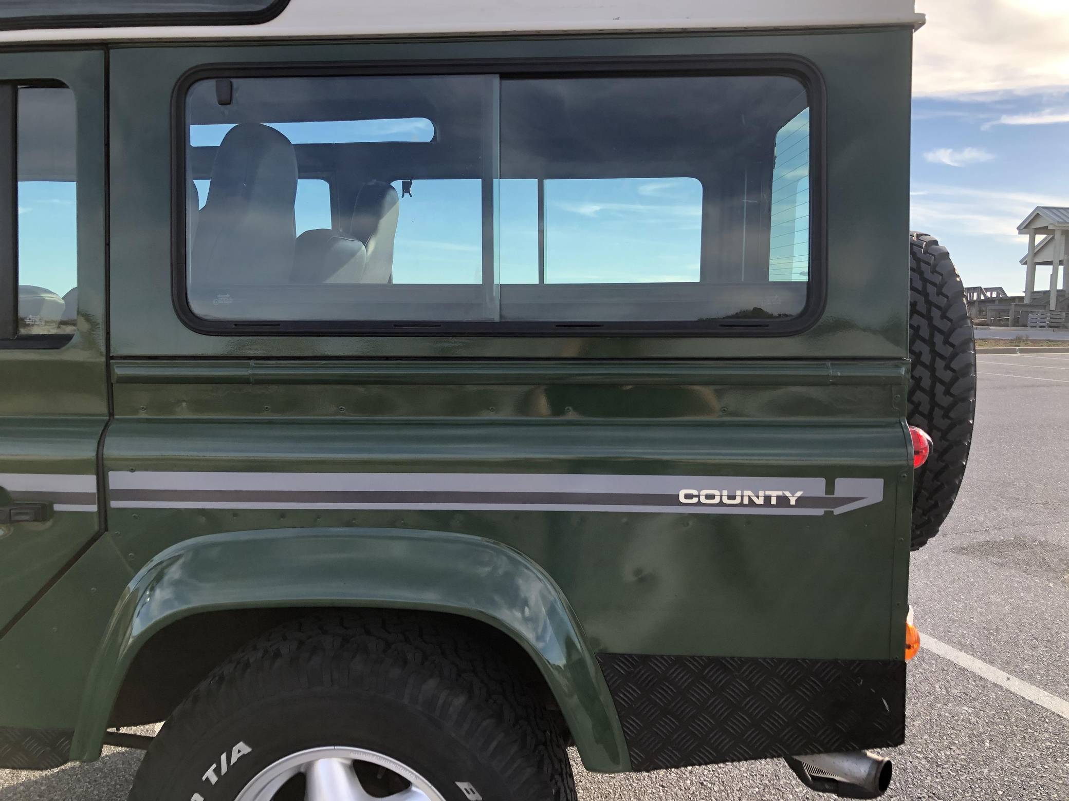 1995 Land Rover Defender 110, finished in Coniston Green with a gray interior. This is a right-hand-drive, British-spec SUV that was reportedly imported from England in 2020. Factory equipment on this 12-seater Defender includes 16-inch wheels, a trailer hitch, a sunroof, and sliding rear windows. Modifications reported by the seller include diamond plating on some of the exterior surfaces, an aftermarket antenna, a JVC CD player, and blue hoses in the engine bay. Land Rover introduced the four-door 110 and the two-door 90 in 1983 and 1984, respectively, to replace the long-running Series III. While both models looked a lot like their predecessors, they offered users a more up-to-date interior, a permanent 4-wheel-drive system, and a coil spring suspension system. The 110 and the 90 morphed into the original Defender in 1990, though the numerical designations remained to differentiate two- and four-door models, and production carried on with minor updates until 2016. Power comes from a 2. 5-liter "300 TDi" 4-cylinder turbodiesel engine, rated at 111 horsepower and 195 lb-ft of torque. It spins the four wheels via a 5-speed manual transmission and a 2-speed transfer case.