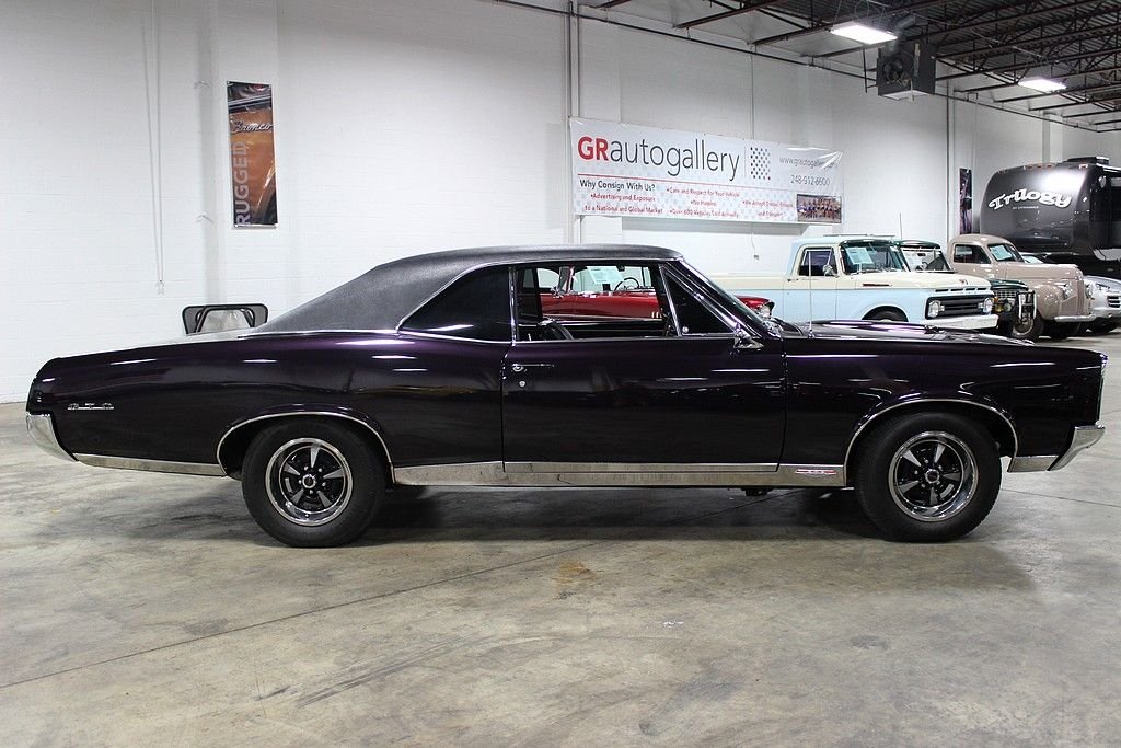 This is a real deal VIN 242 GTO that is a 3-owner beauty. The car originally was Signet Gold with a Parchment interior and an Ivory vinyl top, a 400ci V8, and a 4-speed. Now it is a deep purple color called Black Plum with a black interior and a black vinyl top. But now stuffed under the hood is a non-numbers matching balanced and blue printed 455ci bored .030 over to 463ci with dual quad carbs making an estimated 450hp matted to a Super T-10 4-speed transmission. The original numbers matching 400ci V8 does come with the car though! The car underwent a full in-depth restoration in 2010 with the body receiving most of the work to get it laser straight. The body work involved replacing both rear quarter panels, the trunk and braces, lower A-Pillars, some of the floor pan, lower front fenders, rocker panels, and lower door skins. The car also received a brand new frame, new suspension, and new interior. The dash gauges are now Dakota Digital and the car features power brakes with front discs. The car also has Mickey Thompson drag radials on the back and BF Goodrich radials on the front. Decoding the VIN reveals: • 242 = Pontiac GTO , • 17 = Hard Top • 7 = 1967 • P = Pontiac, MI assembly • 1 = 8cyl less than 100,000 built • 31,495 = 31,495th manufactured in 1967. Decoding the cowl tag reveals: • 10C = Built 3rd week of October 1967 • ST 67-24217 = 1967 Pontiac GTO • PON = Pontiac, MI assembly • Body 4477 = 4,477th produced at Pontiac, MI facility • TR 224 = Parchment interior • Paint G-1 = Signet Gold with Ivory vinyl top • Accessory Codes = 2LGT in line 4 and 4F 5Y in line 5 There were 81,722 GTO's produced in '67. 65,176 were produced as Hard Tops (80% of production) and only 13,827 (17% of production) came equipped with the 400ci 335hp engine such as the one this originally came with and that is included in this sale. Don't miss out on this spectacular '67 Goat!