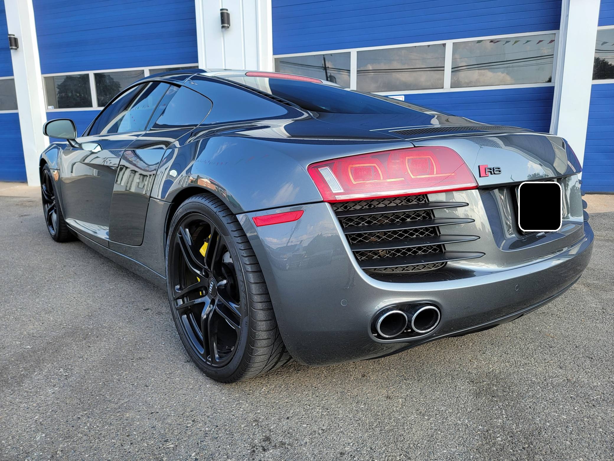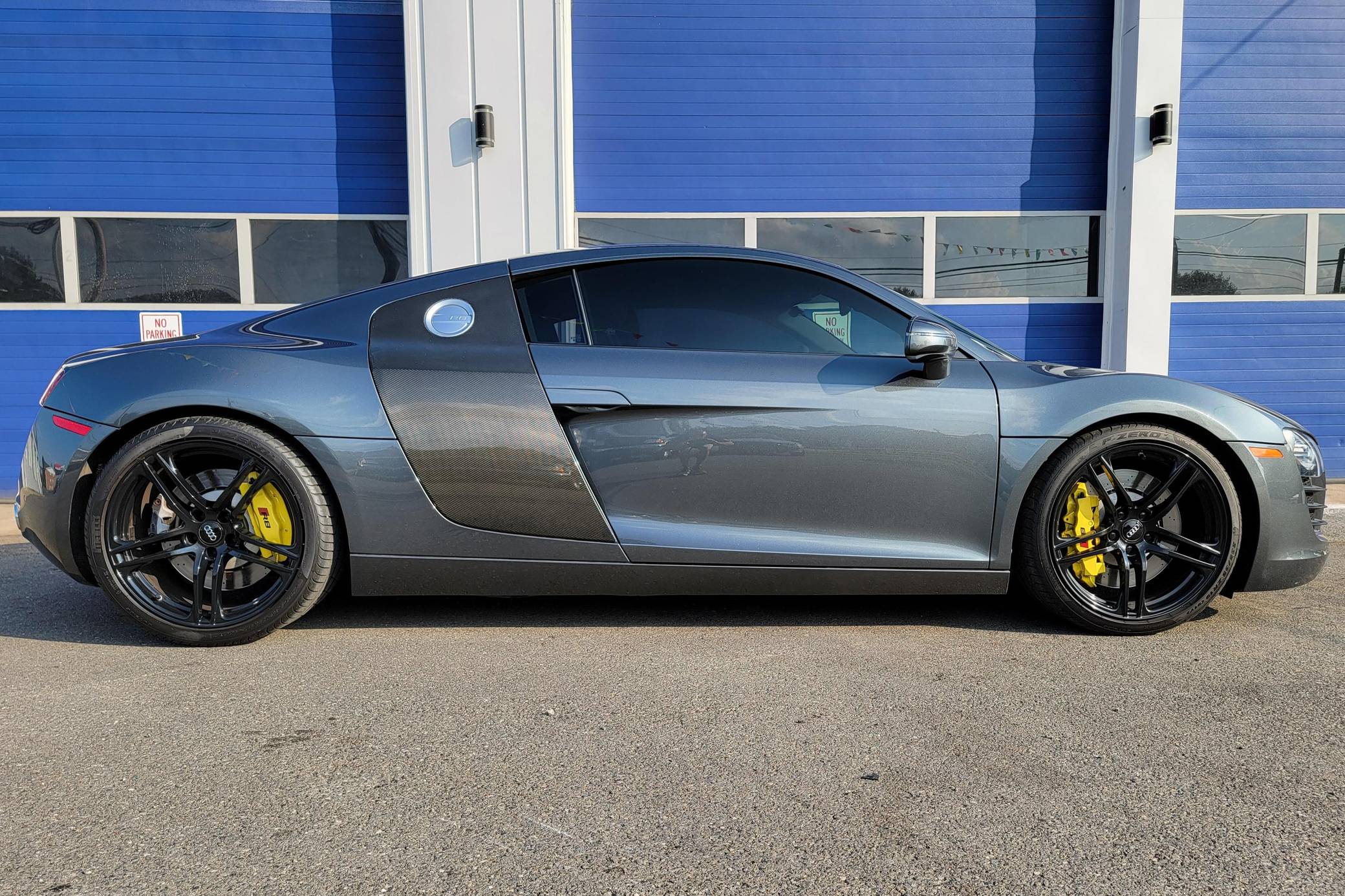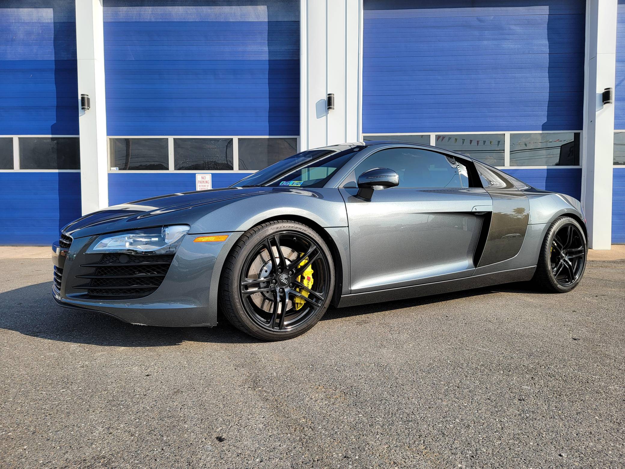 2009 Audi R8 Coupe, finished in Daytona Gray Pearl Effect with a black interior. This R8 is equipped with the desirable gated 6-speed manual transmission. According to the build sheet provided in the gallery, factory equipment includes 19-inch forged alloy wheels, Carbon Sigma side blades, HID headlights, leather and Alcantara upholstery, heated and power-adjustable seats with adjustable lumbar, and a Bang & Olufsen audio system. Modifications noted by the seller are limited to H&R coilovers, painted brake calipers, K&N air filters, illuminated door sills, and a DMP Car Design head unit. Audi broke new ground when it released the first-generation R8 for the 2008 model year. Low and wide, the R8 benefitted from Audi's expertise in using aluminum to save weight, and it launched with a V8 engine mounted behind the passenger compartment. It shared several parts with the Lamborghini Gallardo, though it was a fundamentally different car. Production of the original R8 (called "Type 42" internally) ended in 2015. Power comes from a 4. 2-liter V8, rated at 420 horsepower and 317 lb-ft of torque. Output is sent to all 4 wheels via a 6-speed manual transmission and Audi's Quattro permanent all-wheel-drive system.