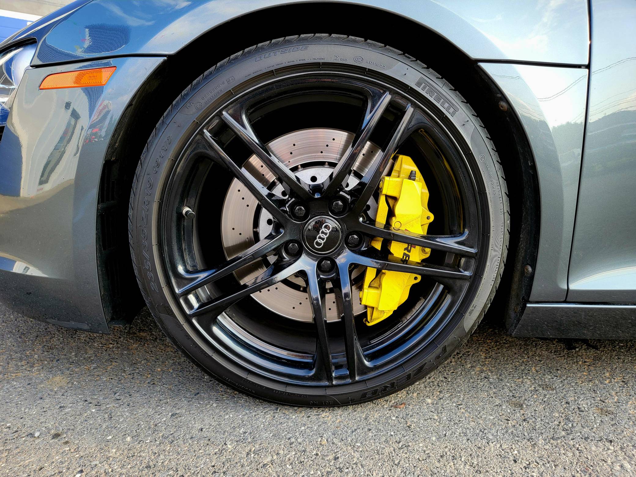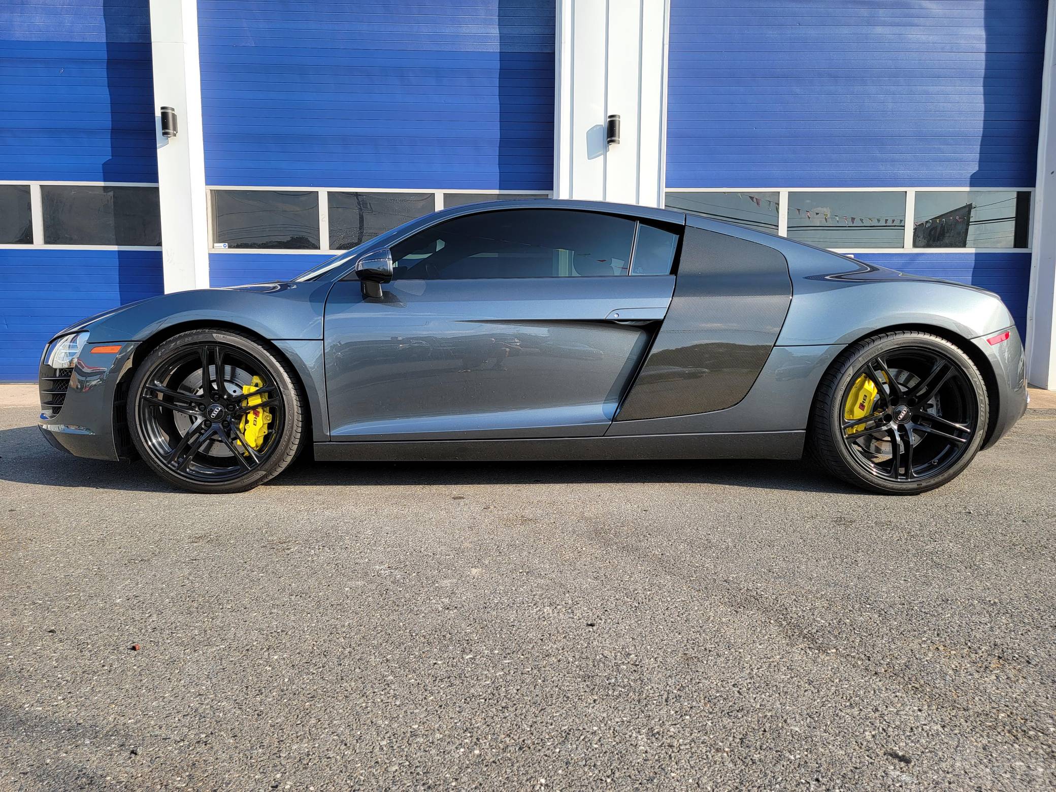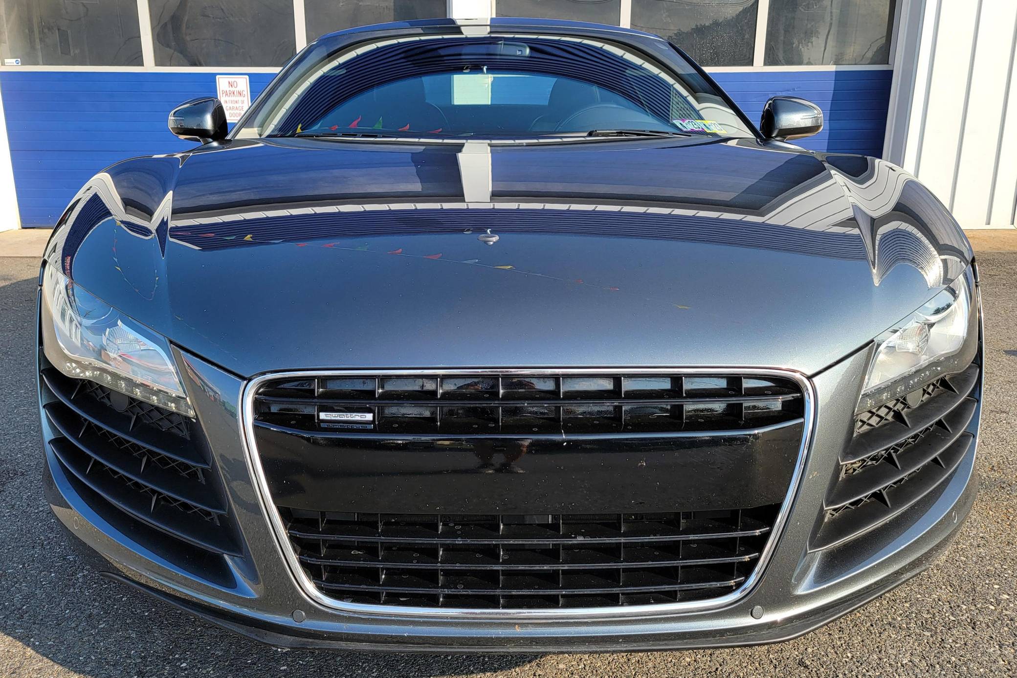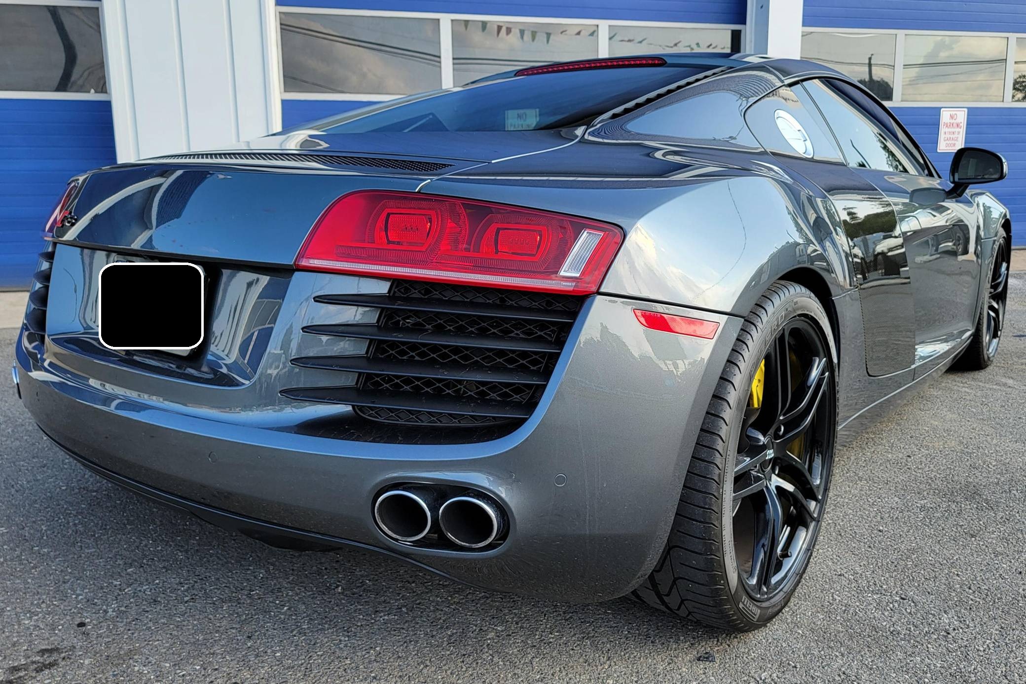 2009 Audi R8 Coupe, finished in Daytona Gray Pearl Effect with a black interior. This R8 is equipped with the desirable gated 6-speed manual transmission. According to the build sheet provided in the gallery, factory equipment includes 19-inch forged alloy wheels, Carbon Sigma side blades, HID headlights, leather and Alcantara upholstery, heated and power-adjustable seats with adjustable lumbar, and a Bang & Olufsen audio system. Modifications noted by the seller are limited to H&R coilovers, painted brake calipers, K&N air filters, illuminated door sills, and a DMP Car Design head unit. Audi broke new ground when it released the first-generation R8 for the 2008 model year. Low and wide, the R8 benefitted from Audi's expertise in using aluminum to save weight, and it launched with a V8 engine mounted behind the passenger compartment. It shared several parts with the Lamborghini Gallardo, though it was a fundamentally different car. Production of the original R8 (called "Type 42" internally) ended in 2015. Power comes from a 4. 2-liter V8, rated at 420 horsepower and 317 lb-ft of torque. Output is sent to all 4 wheels via a 6-speed manual transmission and Audi's Quattro permanent all-wheel-drive system.