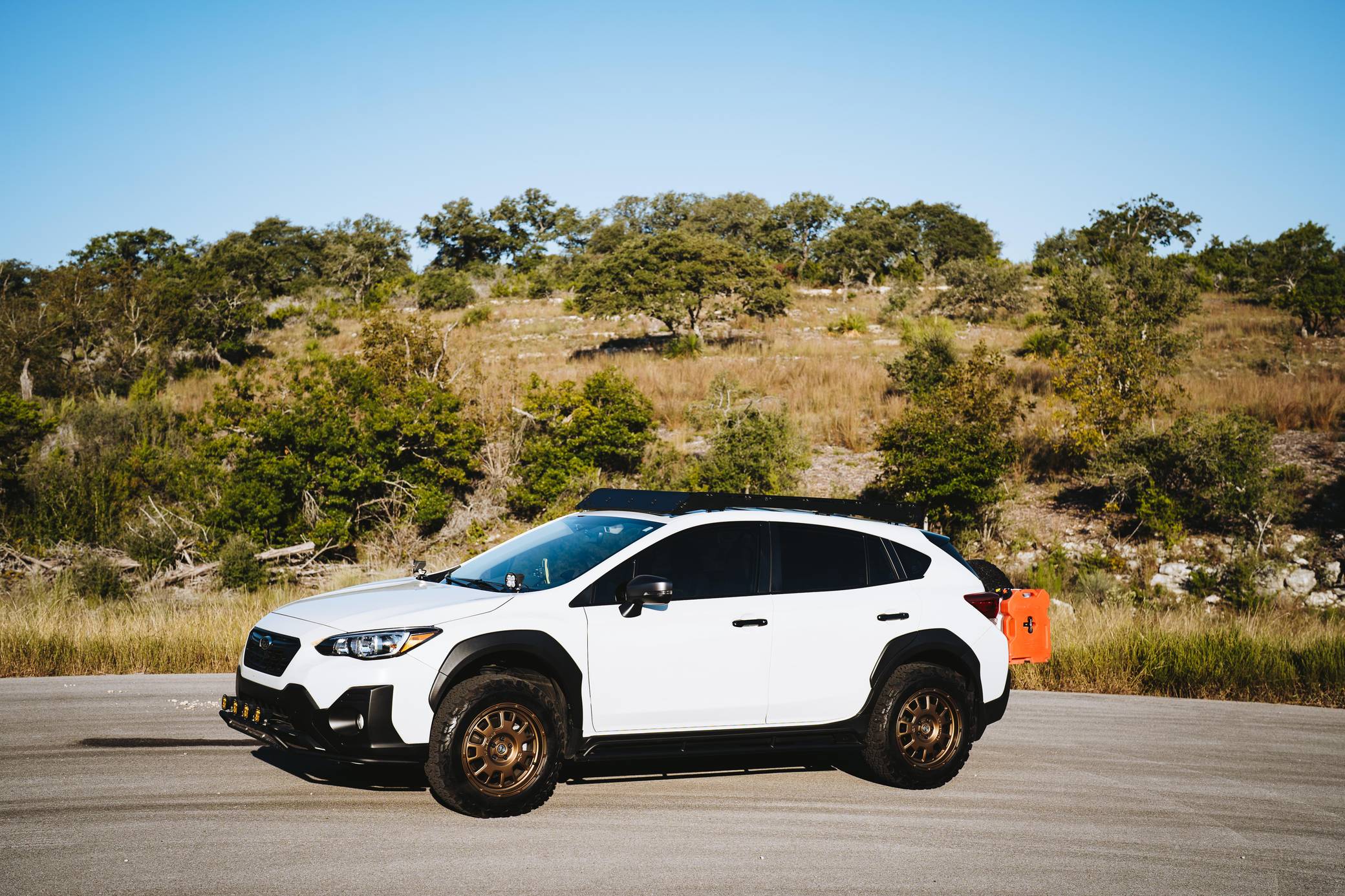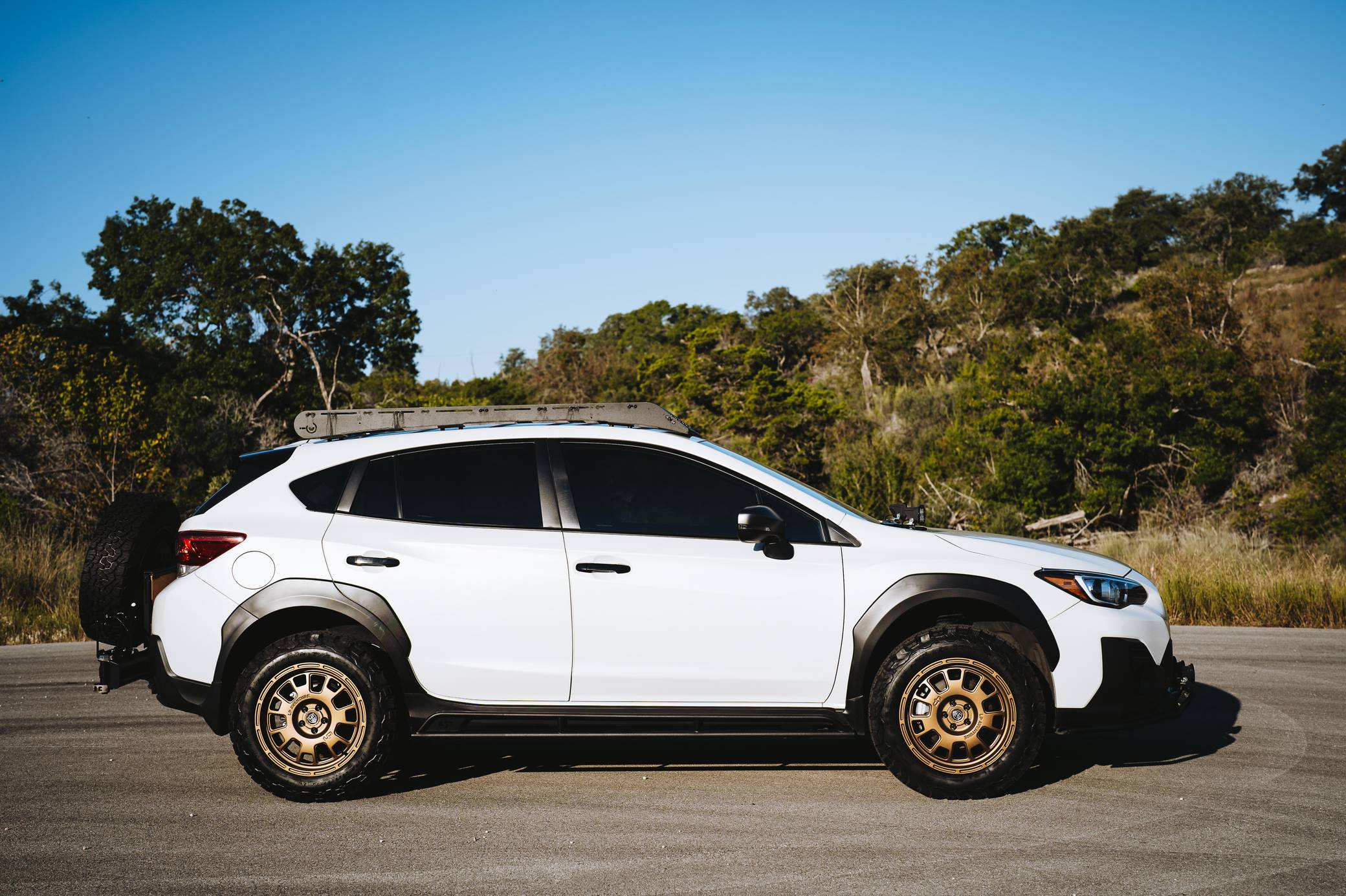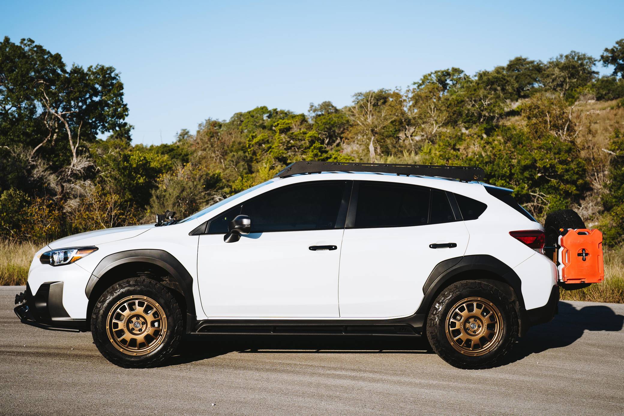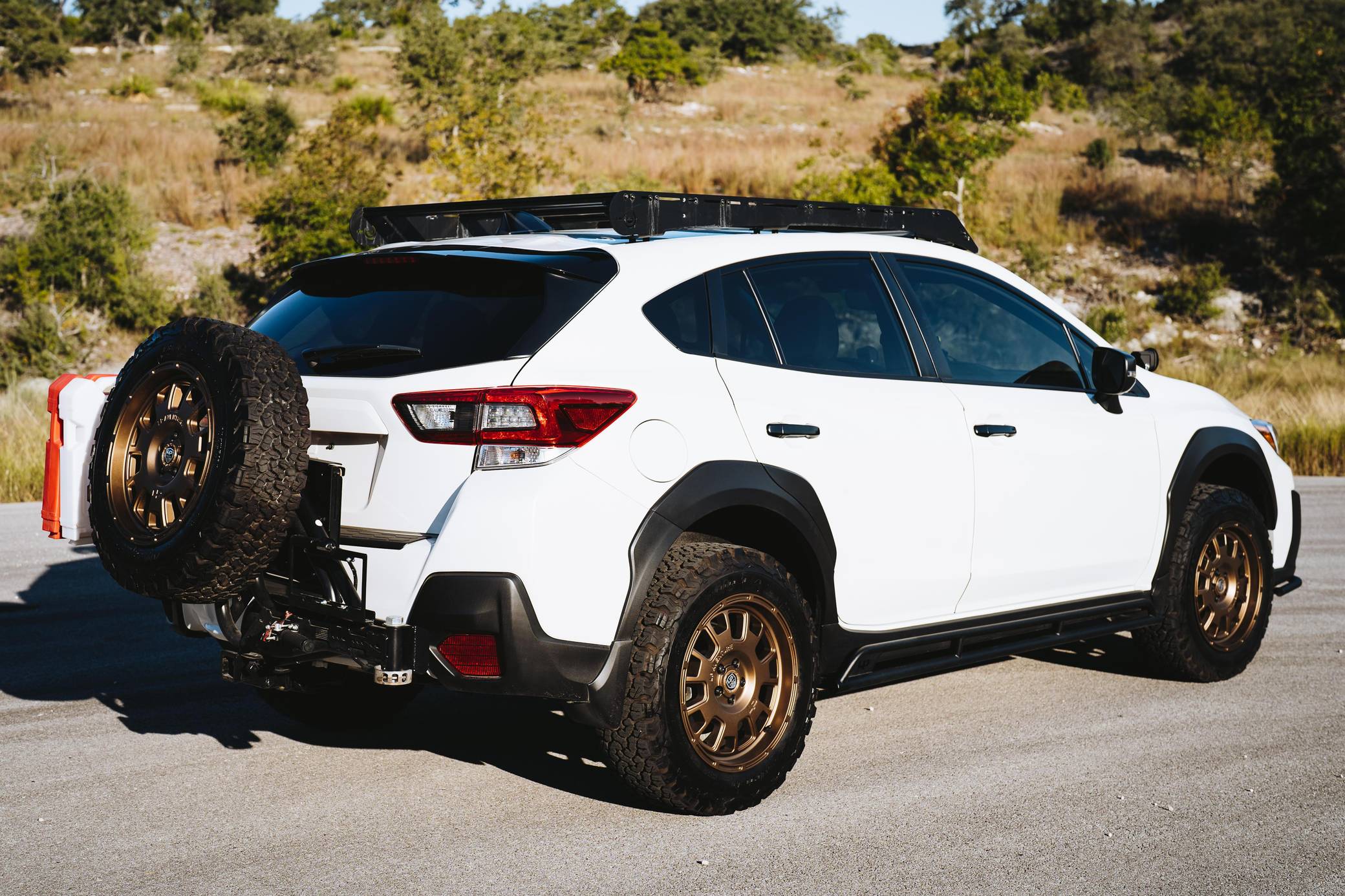 THIS… is a 2021 Subaru Crosstrek Sport, finished in Crystal White Pearl with a gray interior. The full list of modifications reported by the seller is detailed below. include 17-inch LP Aventure LP7 wheels, an LP Aventure 1. 5-inch lift kit, an LP Aventure front bumper guard, a Prinsu roof rack, a Dirtcom Trail Swing tire carrier with drop-down table and rear-view camera, and a Dometic CFX3 45 powered cooler. The Subaru Crosstrek was first introduced for the 2012 model year as a lifted version of the Impreza hatchback. Initially called "XV Crosstrek," its adventure theme is further emphasized by a Symmetrical All-Wheel Drive system, water-repellent seats, contrasting wheel arch moldings, and roof rails. Power comes from a 2. 5-liter flat-4, rated at 182 horsepower and 176 lb-ft of torque. Output is sent to all four wheels via Subaru's Symmetrical All-Wheel Drive system and a continuously variable transmission.