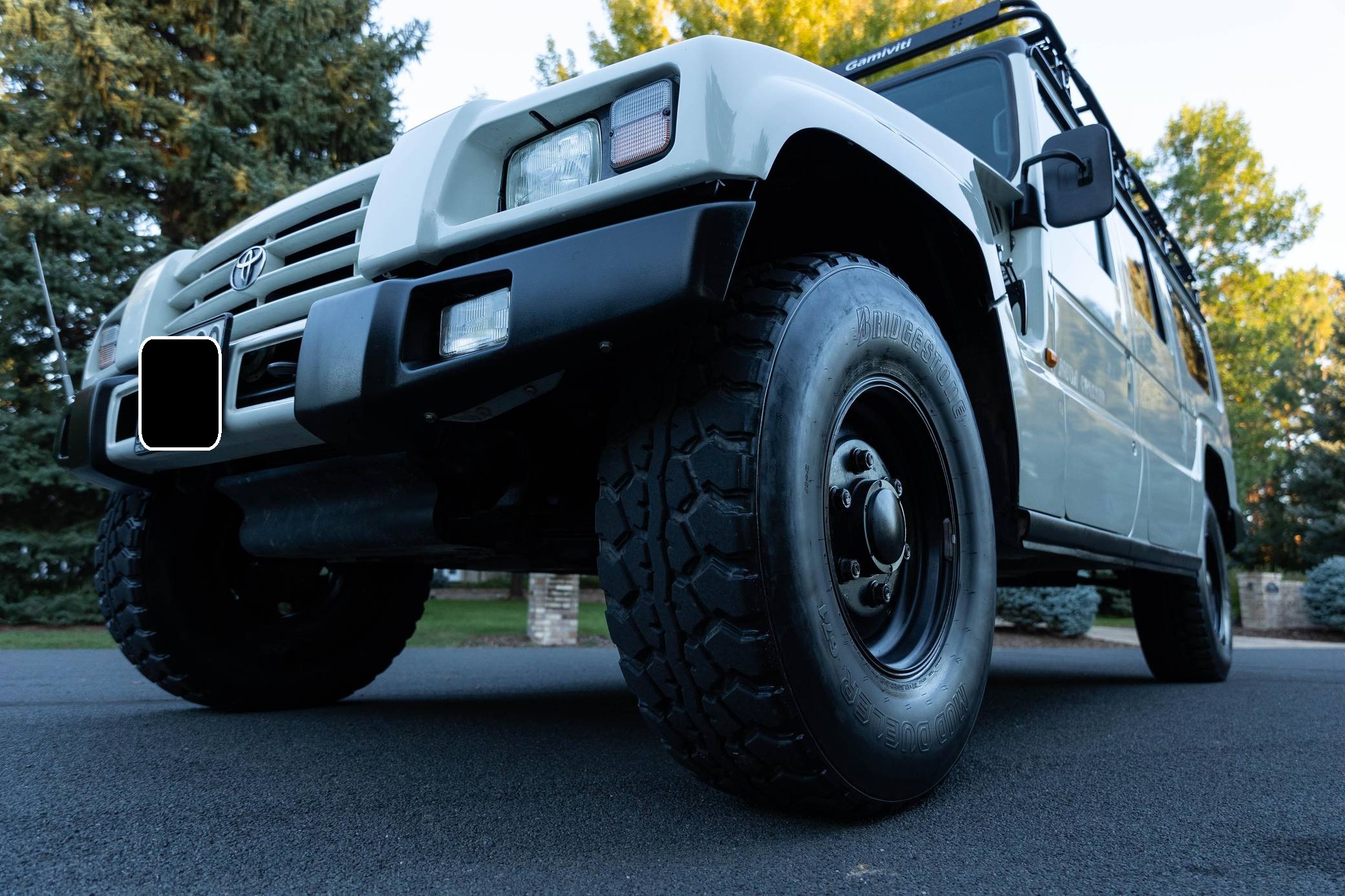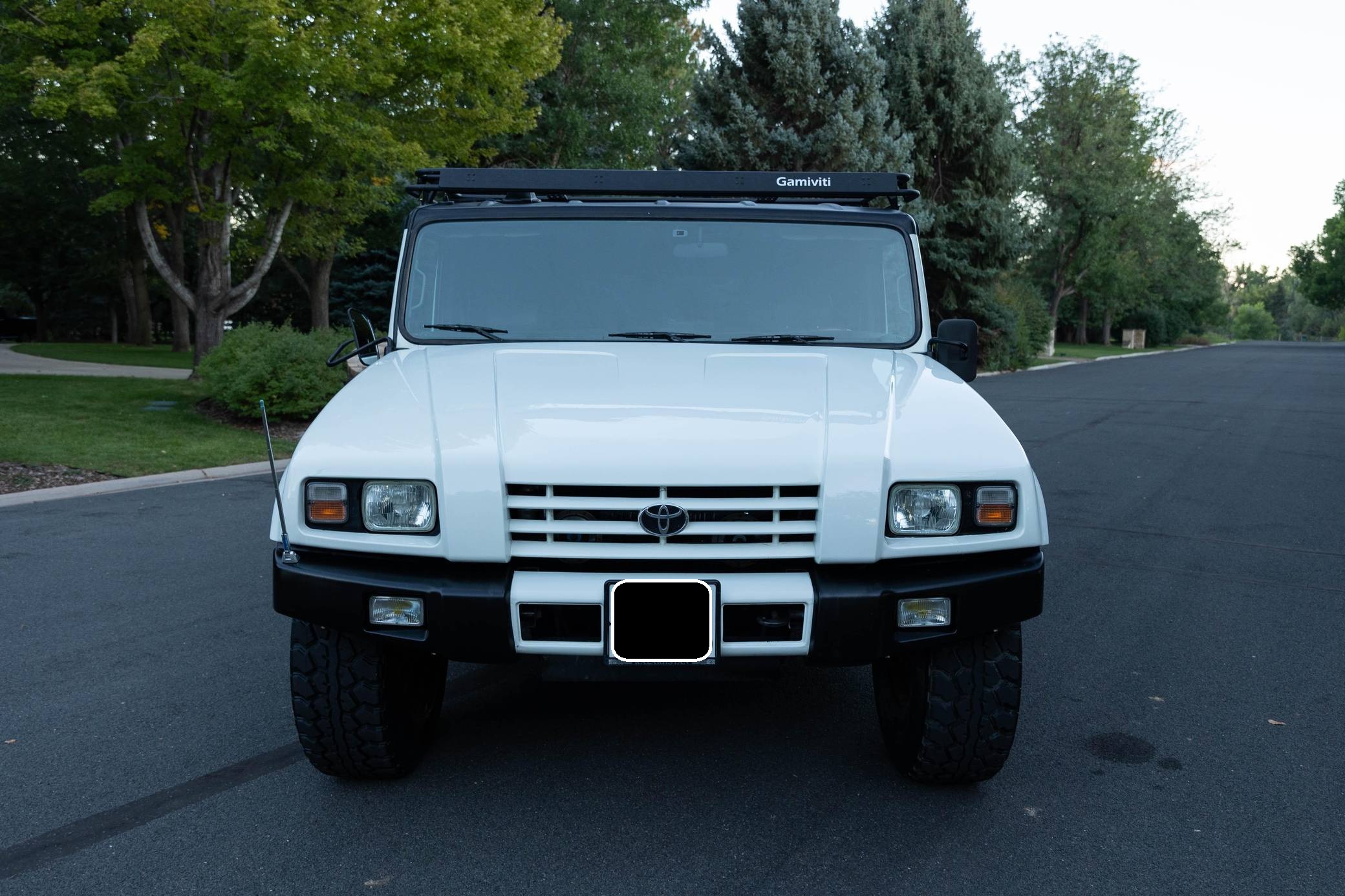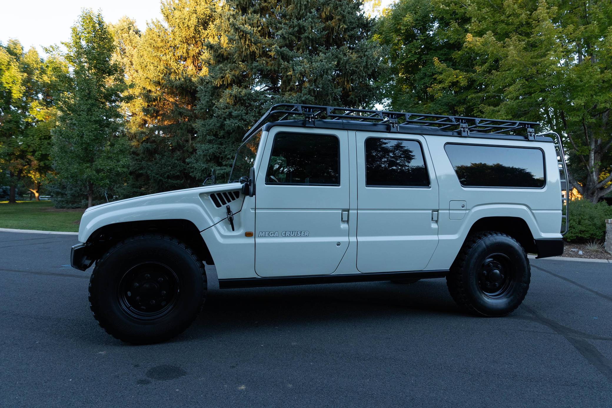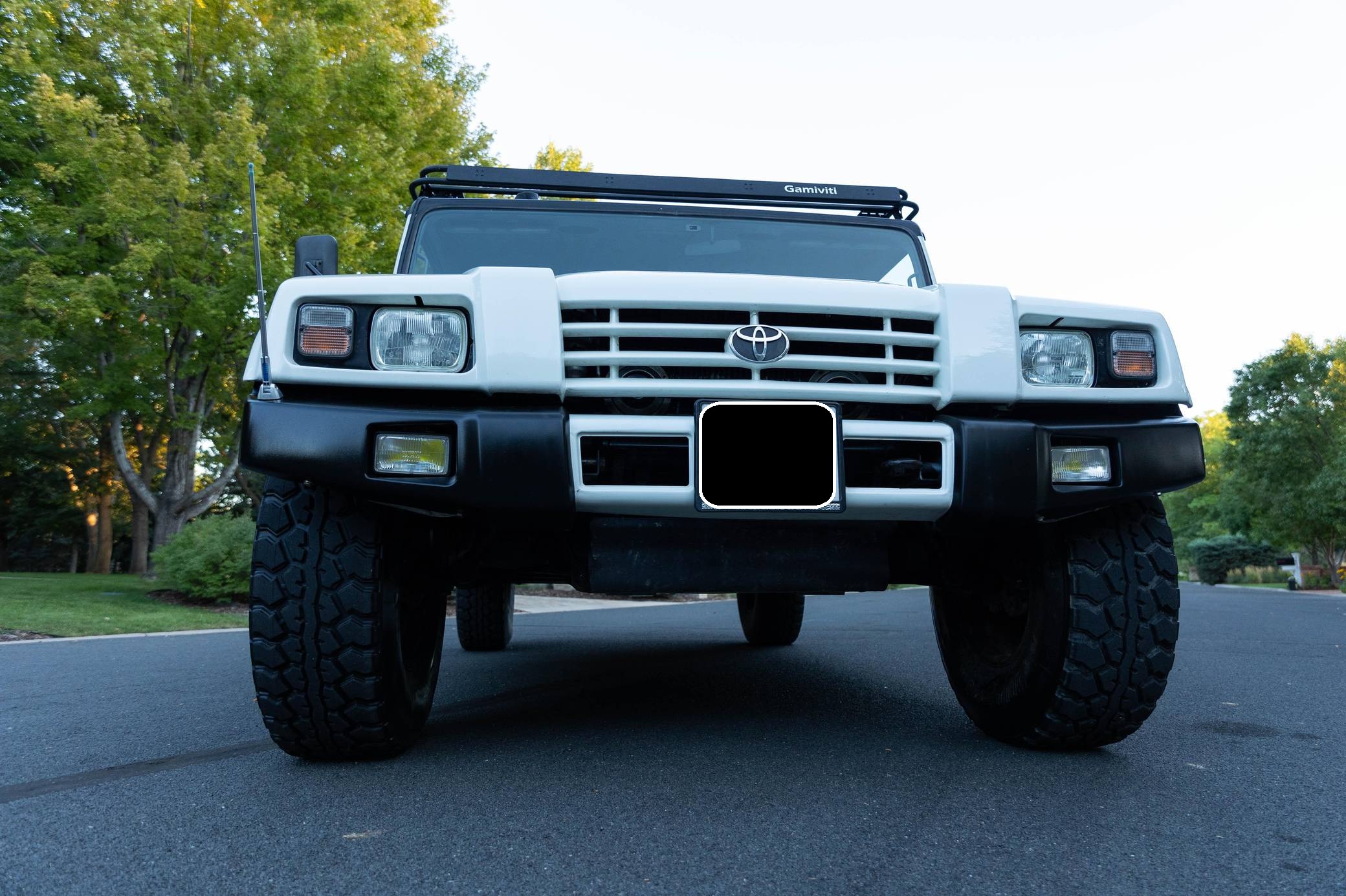 THIS. . . is a 1996 Toyota Mega Cruiser, finished in white with a gray interior. Reportedly imported from Kazakhstan, it's equipped with a metric instrument cluster and its odometer displays about 90,900 kilometers, which represents around 56,500 miles. Doug DeMuro recently reviewed this Mega Cruiser and his video is viewable below. Factory equipment includes 17. 5-inch wheels, portal axles, locking front, center, and rear differentials, a four-wheel steering system, a rear-mounted ladder, and a folding rear step. This Mega Cruiser has been converted from right-hand-drive to left-hand-drive. The list of modifications reported by the seller also includes a fuel system pre-heating kit, a parking pole, a Gamiviti roof rack, wood interior trim, heated front and rear seats, LED interior lighting, and a trunk-mounted subwoofer. Like the Hummer H1, the Toyota Mega Cruiser started life as a tough, go-anywhere off-roader designed for military use. Toyota launched a civilian model, called "BXD20" internally, in 1996 and marketed it as its flagship SUV. Buyers got what they paid for: big enough to dwarf a Land Cruiser, the aptly-named Mega Cruiser featured portal axles, locking differentials, a four-wheel steering system, and a cavernous interior. Production ended in 2001 and most historians agree fewer than 150 civilian units were built. Power comes from a 4. 1-liter turbodiesel 4-cylinder engine, rated at about 155 horsepower and 282 lb-ft of torque. Called "15B-FT" internally, it spins the four wheels via a 4-speed automatic transmission and a 2-speed transfer case.
