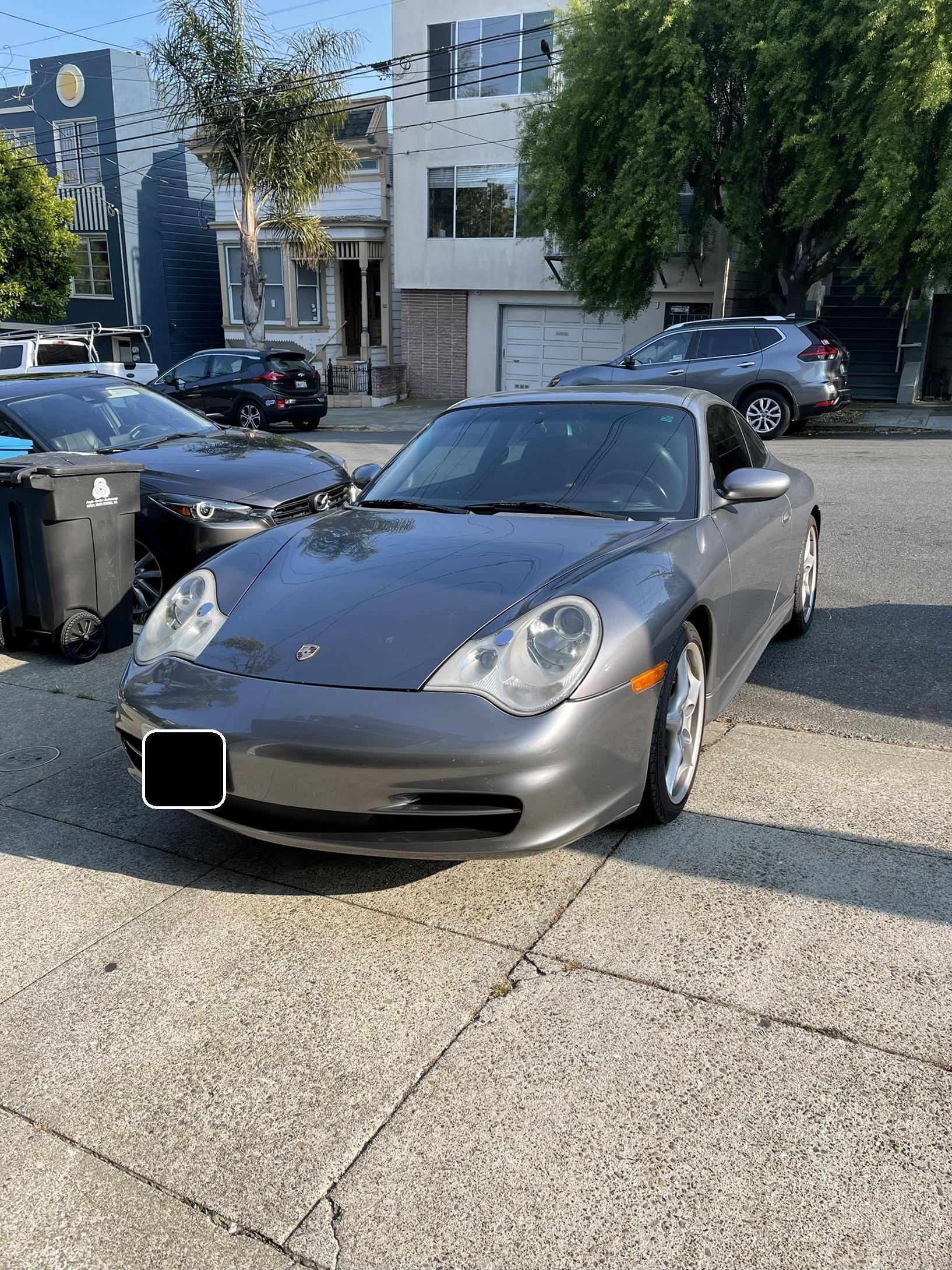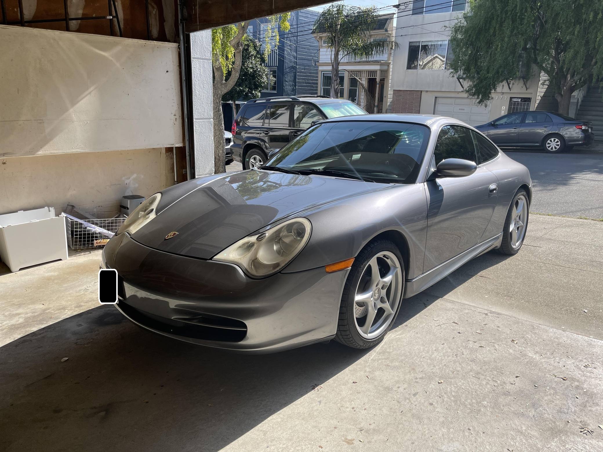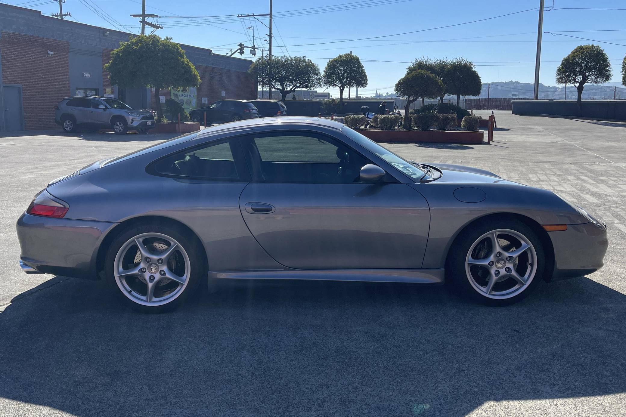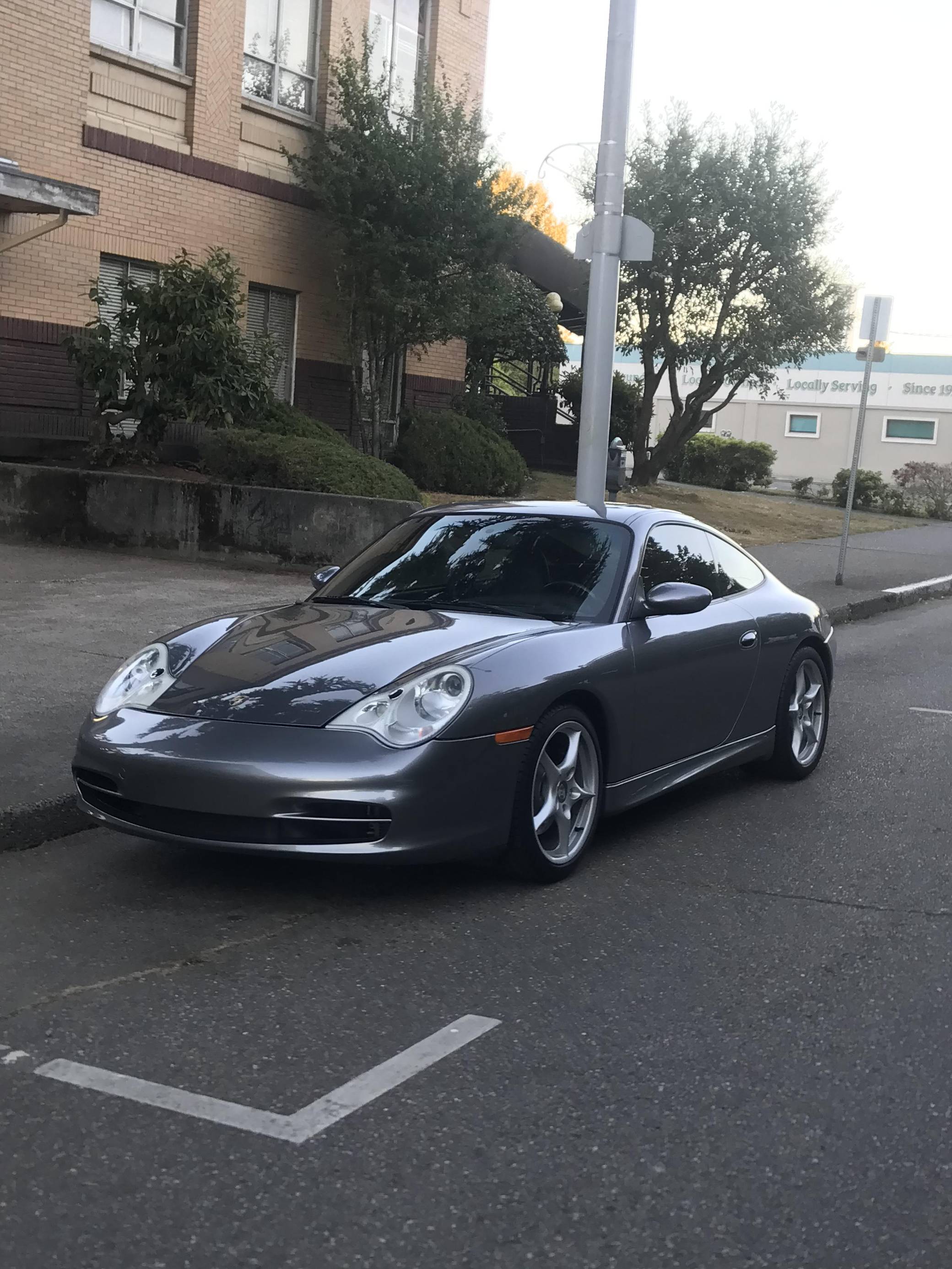 2003 Porsche 911, finished in Seal Grey Metallic with a black interior. This 911 is equipped with the desirable 6-speed manual transmission. Factory equipment includes 18-inch Carrera II wheels, a power sunroof, leather upholstery, a Bose sound system, and more as detailed below. Modifications are limited to the installation of an LN Engineering IMS bearing, MagnaFlow catalytic converters, a lower center console delete, and tinted windows. The fifth-generation "996" 911 was introduced for the 1999 model year and was the first 911 to be completely redesigned from its predecessors. While its water-cooled engine and distinctive headlights irked some Porsche purists, the 996 is appreciated by enthusiasts for providing an analog driving experience in a smaller, lighter package than the 911s that followed it. A major update for the 2002 model year brought larger engines, a stiffer chassis, revised front fascia with Turbo-style headlights, pop-out cup holders, and a glovebox to the Carrera. Power comes from an "M96" 3. 6-liter flat-6, rated at 315 horsepower and 273 lb-ft of torque. Output is sent to the rear wheels via a 6-speed manual transmission.