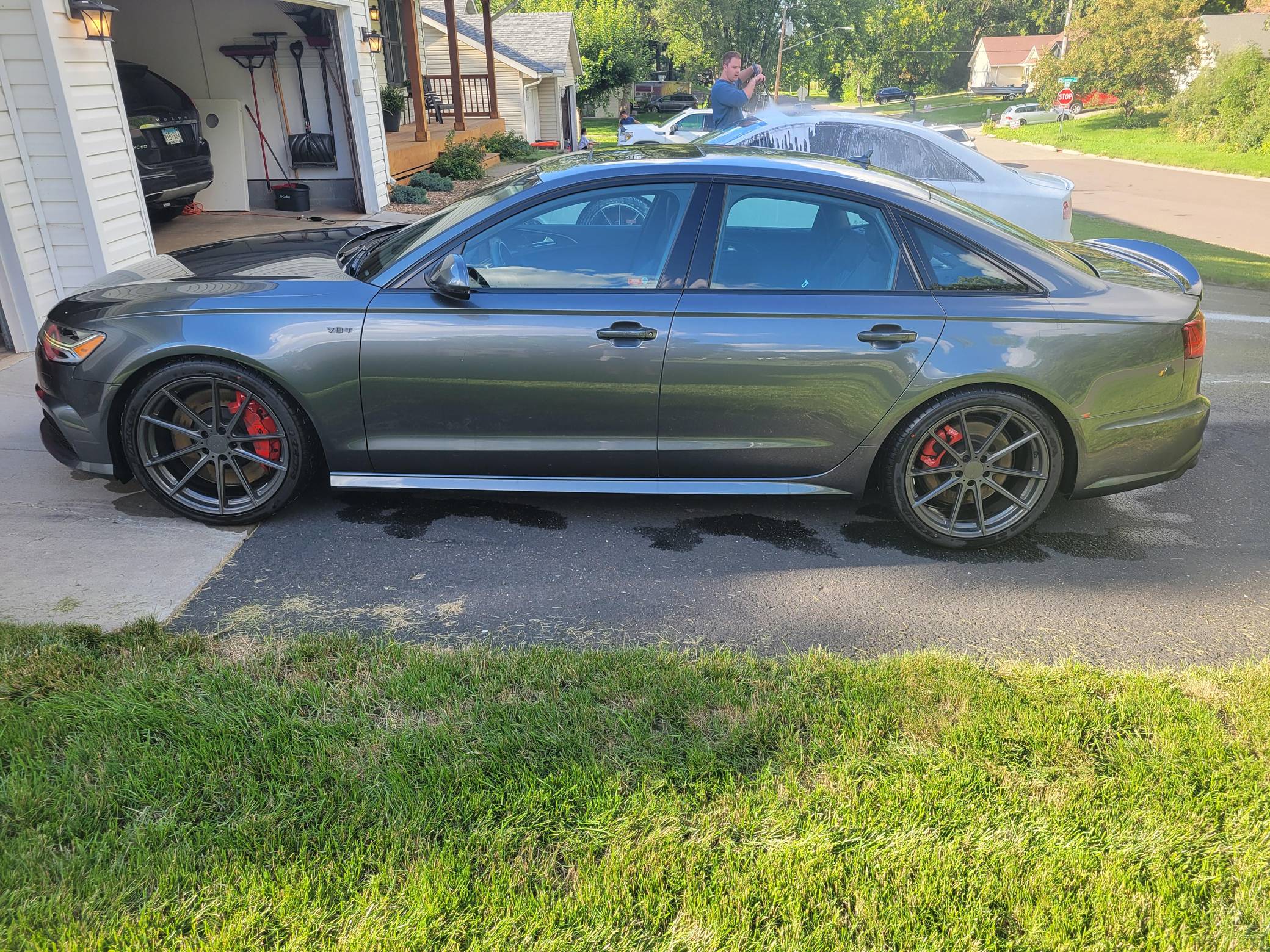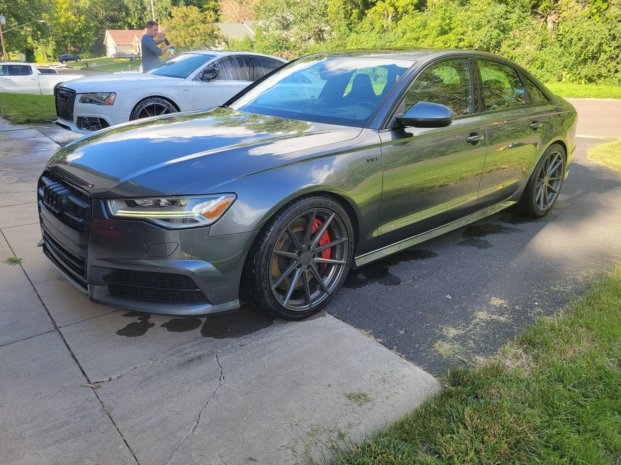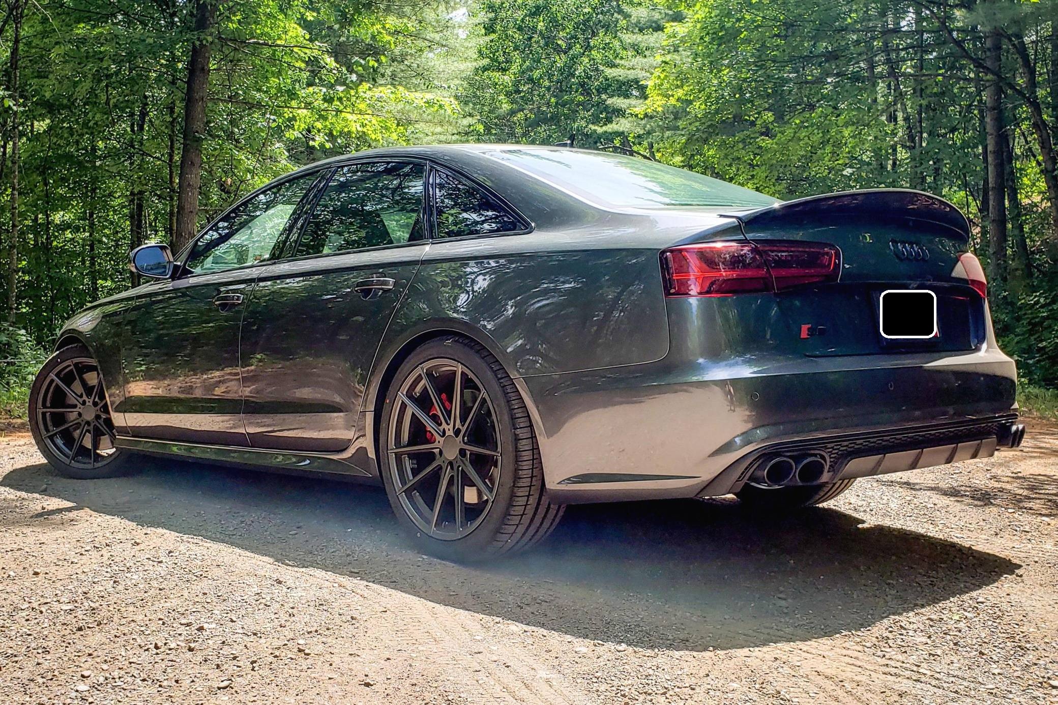 THIS… is a 2016 Audi S6, finished in Daytona Gray Pearlescent with a black interior. A build sheet is provided in the photo gallery, and a partial list of notable equipment includes the Prestige trim, Sport, and Black Optic packages, a power sunroof, Valcona leather upholstery, Carbon Atlas interior inlays, power-adjustable and heated front sport seats, an Audi Navigation Plus system with MMI Touch, and more as detailed below. Modifications to this S6 are extensive, and the full list is detailed below. include 20-inch TSW Bathurst alloy wheels, a Dyno Spectrum DS1 Stage 2 tune and Silly Rabbit Motorsport (SRM) TCU tune, an aftermarket x-pipe with resonator delete, 034Motorsport transmission and sport differential performance inserts, and an Audi MMI software upgrade (includes Apple CarPlay and Android Auto compatibility). Audi released the "C7"-generation A6 for 2012 offering a lighter structure, a sharper-looking design, and a more luxurious interior largely shared with the swoopy A7. 2013 brought the return of the high-performance S6 model, but the V10 was gone, downsized to a torquier and more efficient turbocharged V8. An update for the 2016 model year brought revised sheet metal and a significant bump in power, making the S6 quicker and more luxurious than ever before. Power comes from a 4. 0-liter twin-turbocharged "TFSI" V8, rated at 450 horsepower and 406 lb-ft of torque in stock form. The seller estimates that this S6 current produces 610 horsepower and 720 lb-ft of torque at the crank, but a dyno sheet was not provided to confirm. Output is sent to all four wheels via a 7-speed automatic transmission and Audi's Quattro permanent all-wheel drive system.